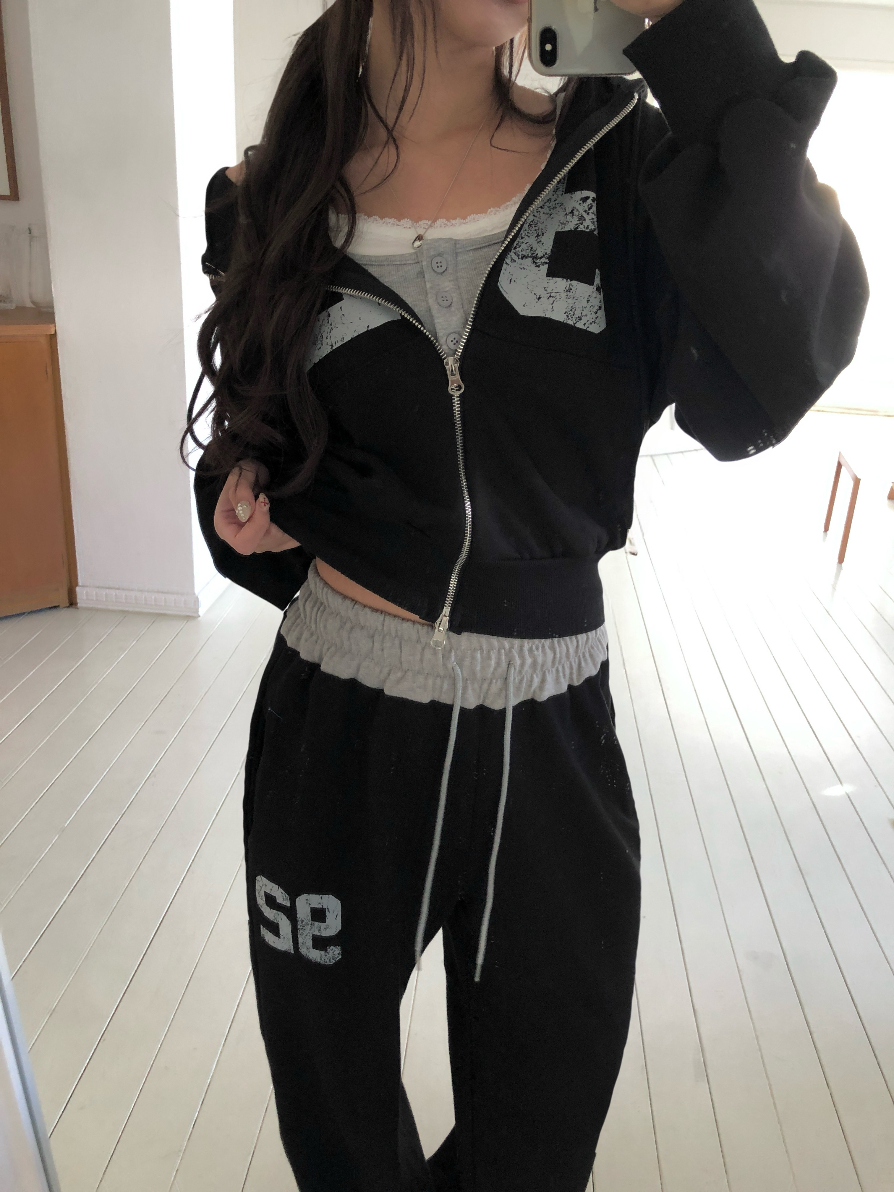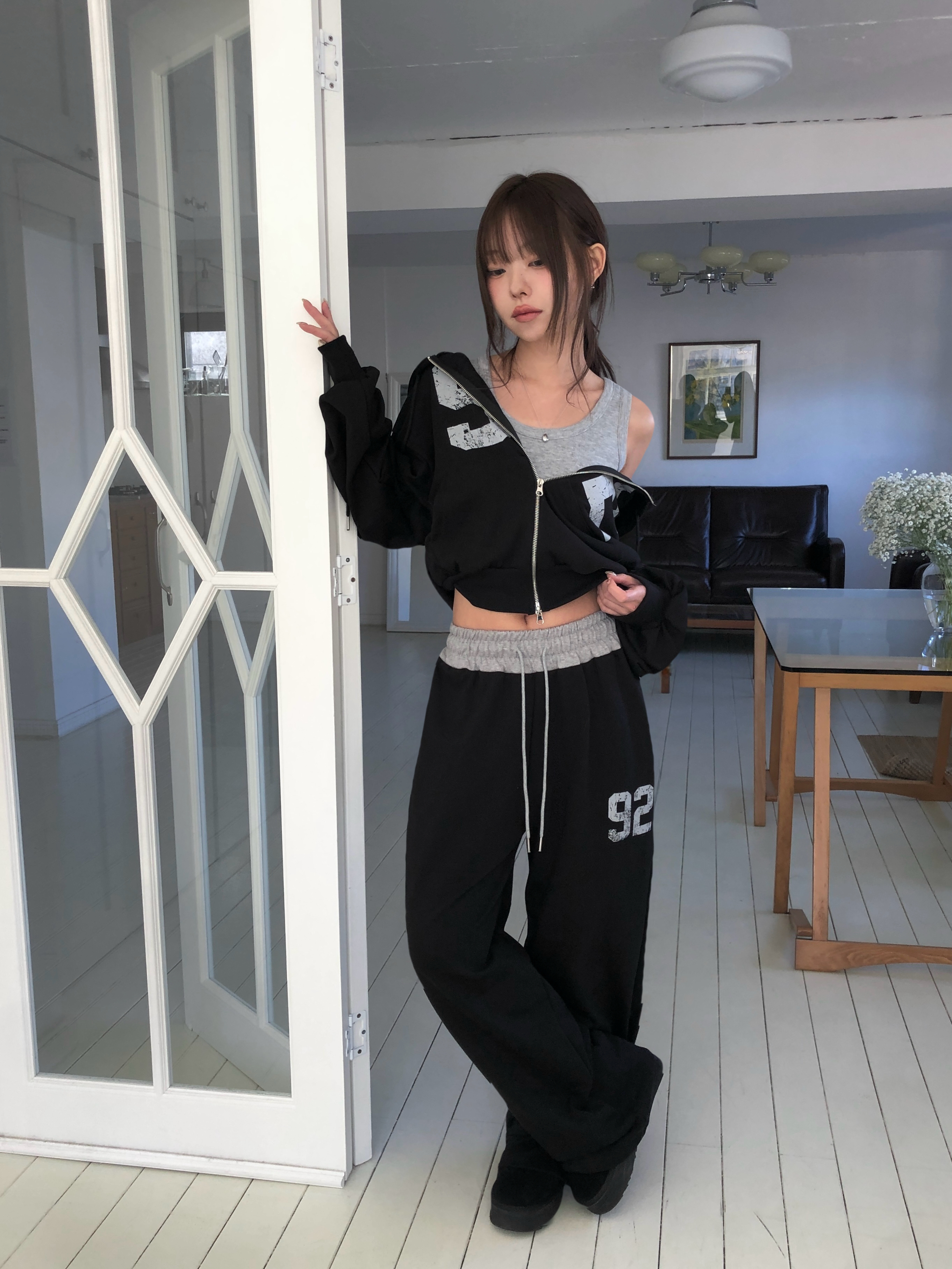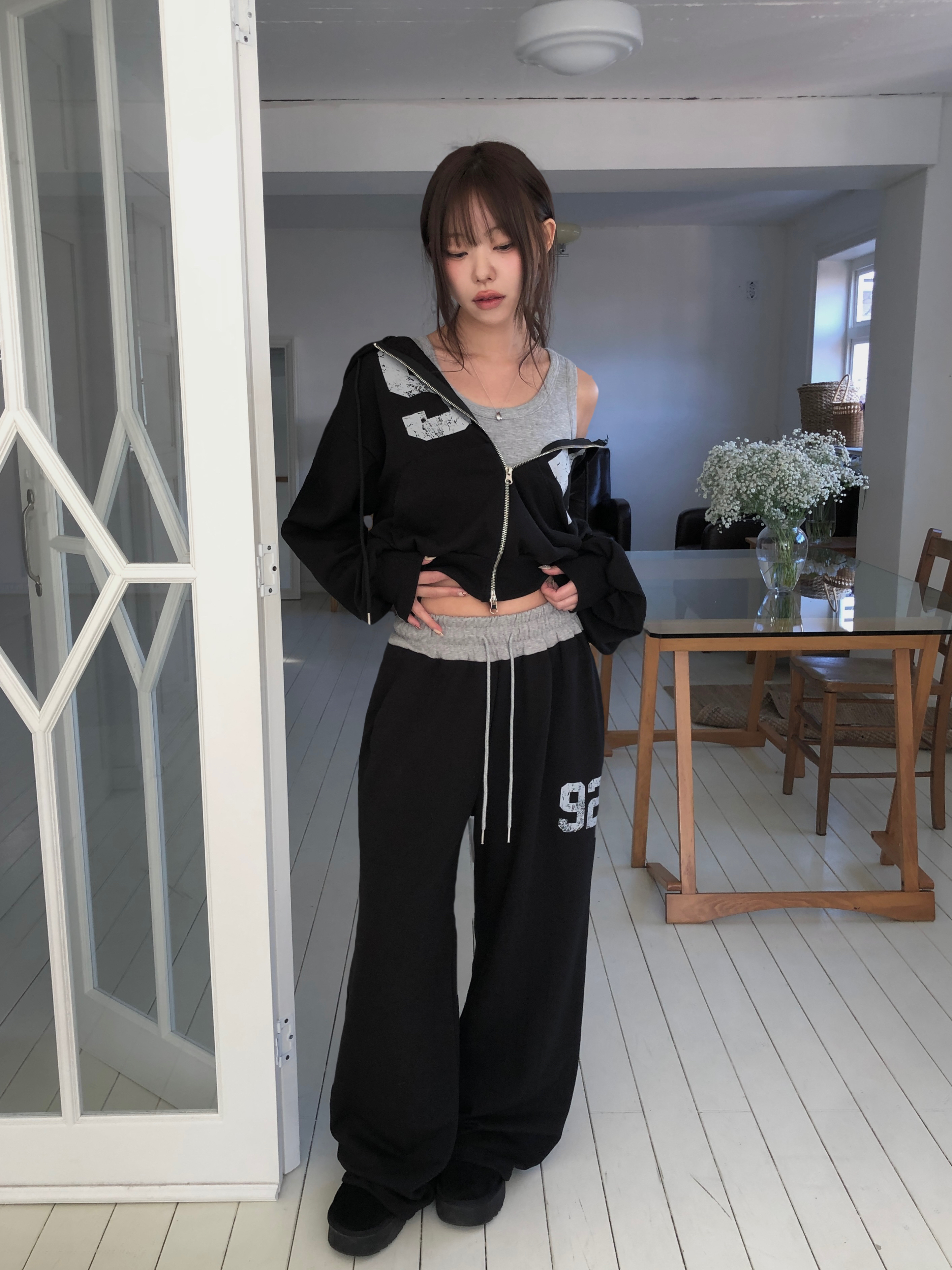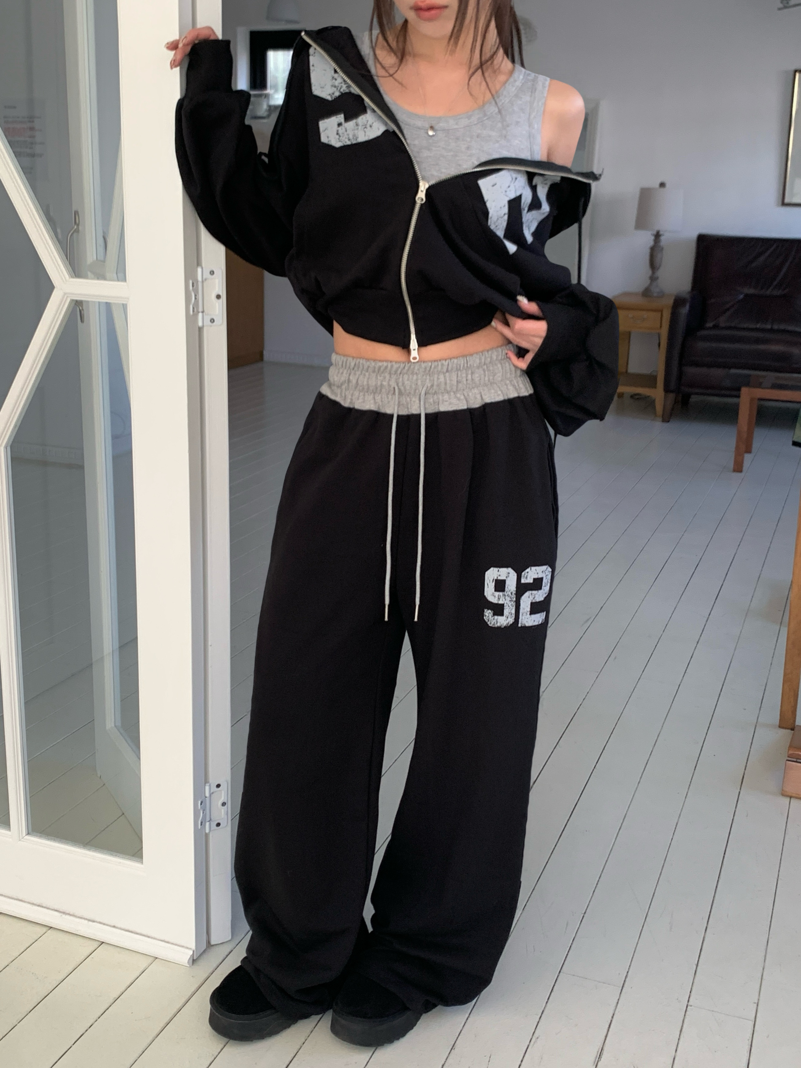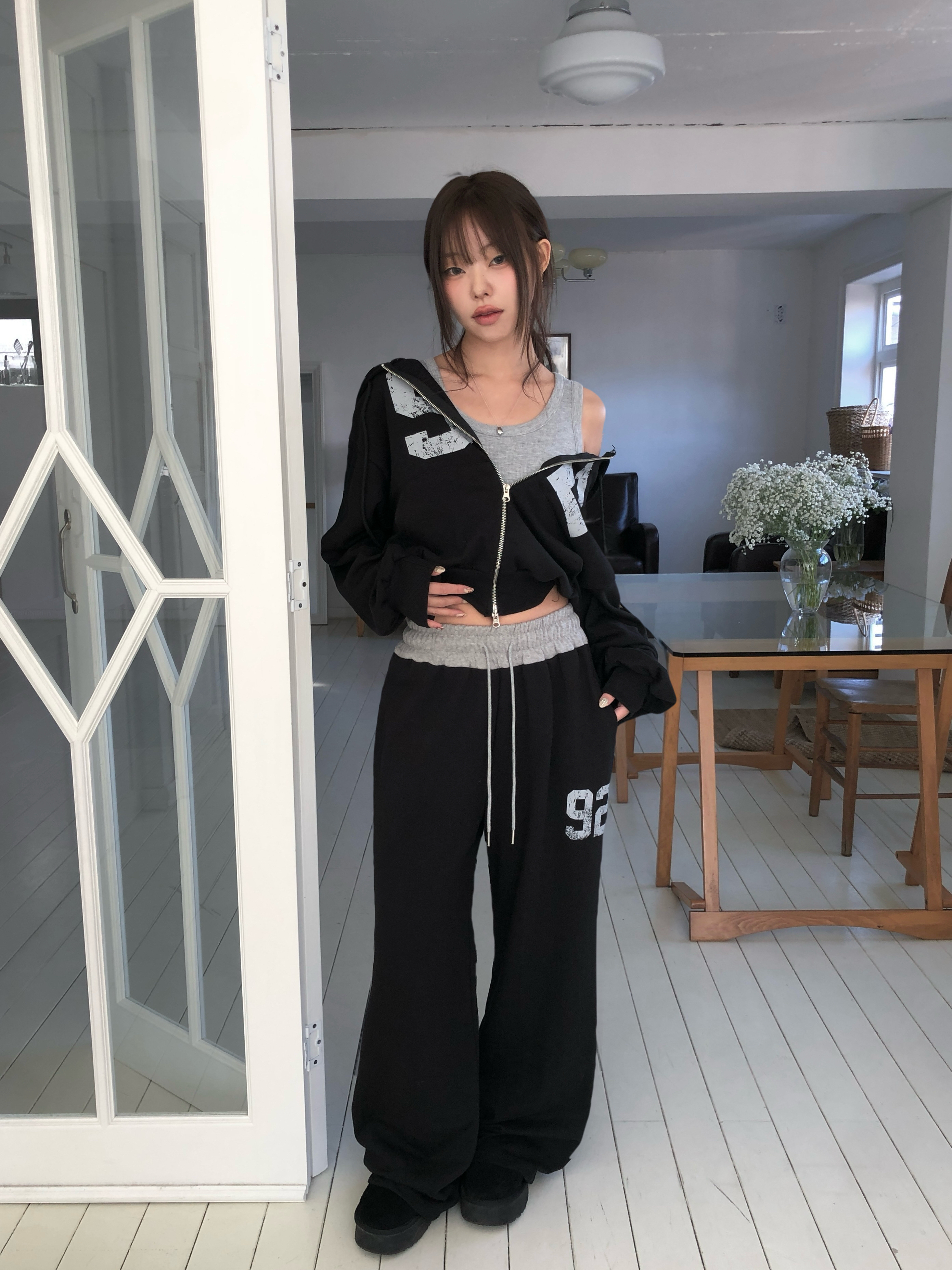 ナンバーダブルジップパーカー+ウエストゴムパンツトレーニングセットアップ