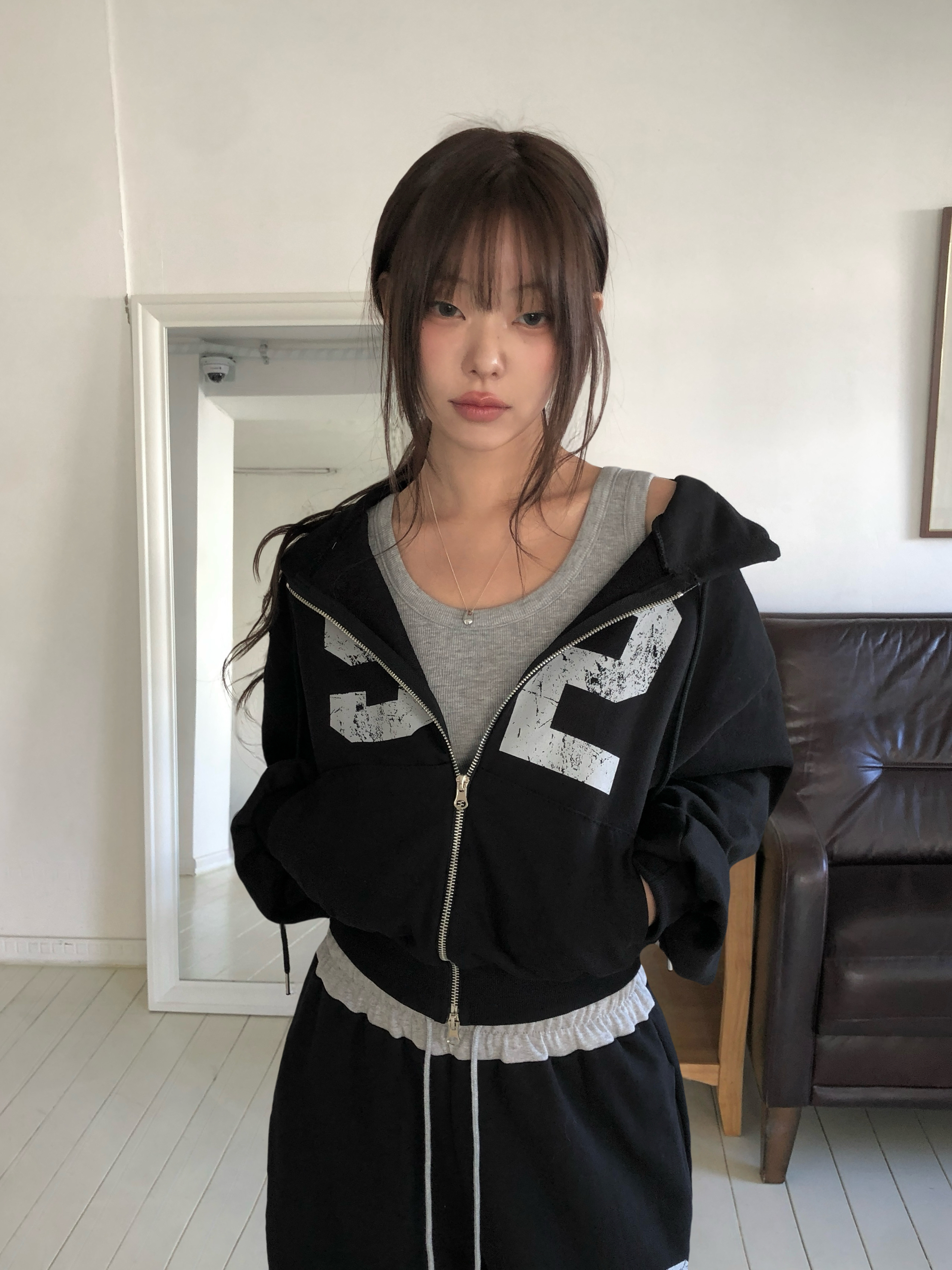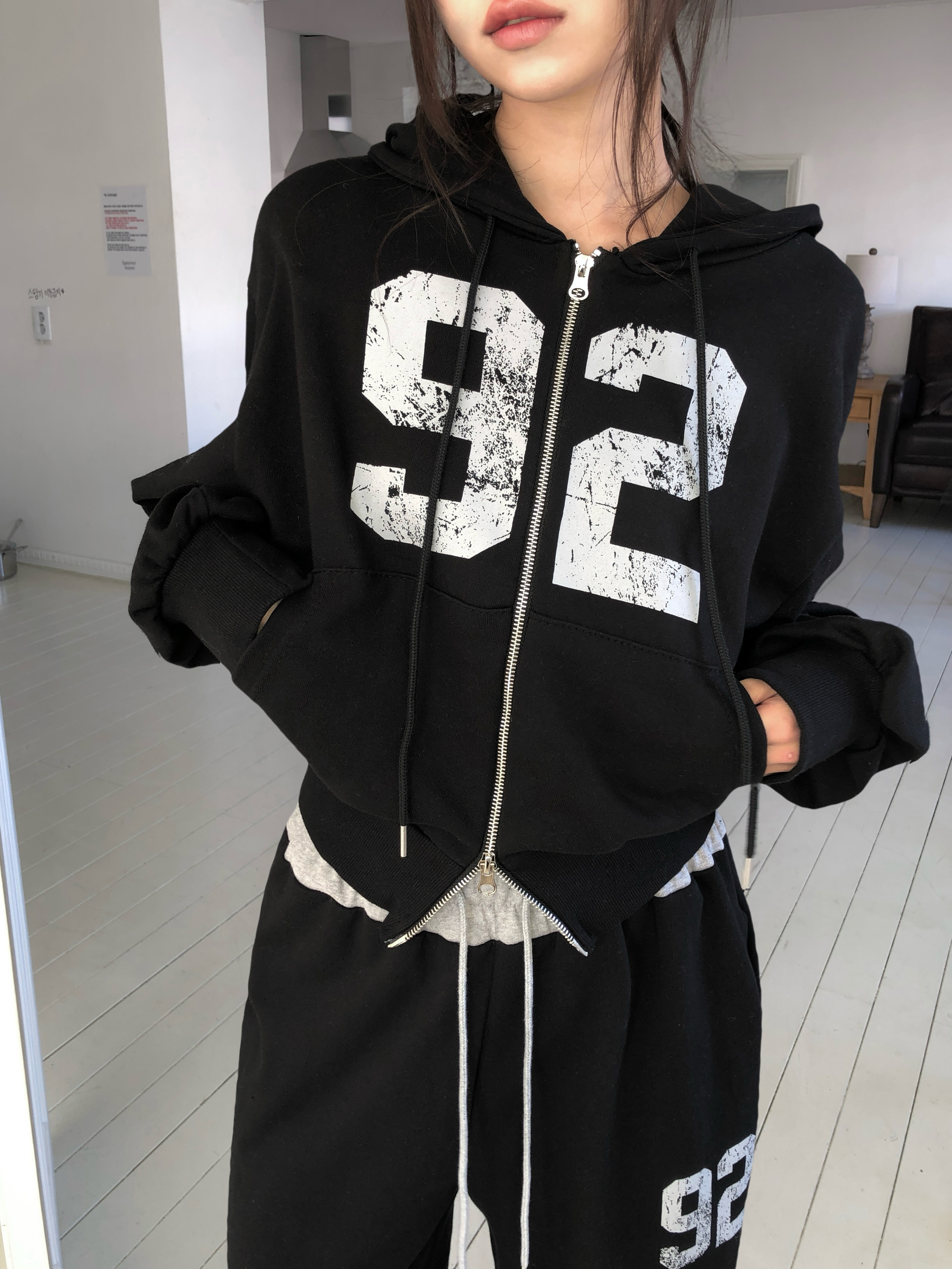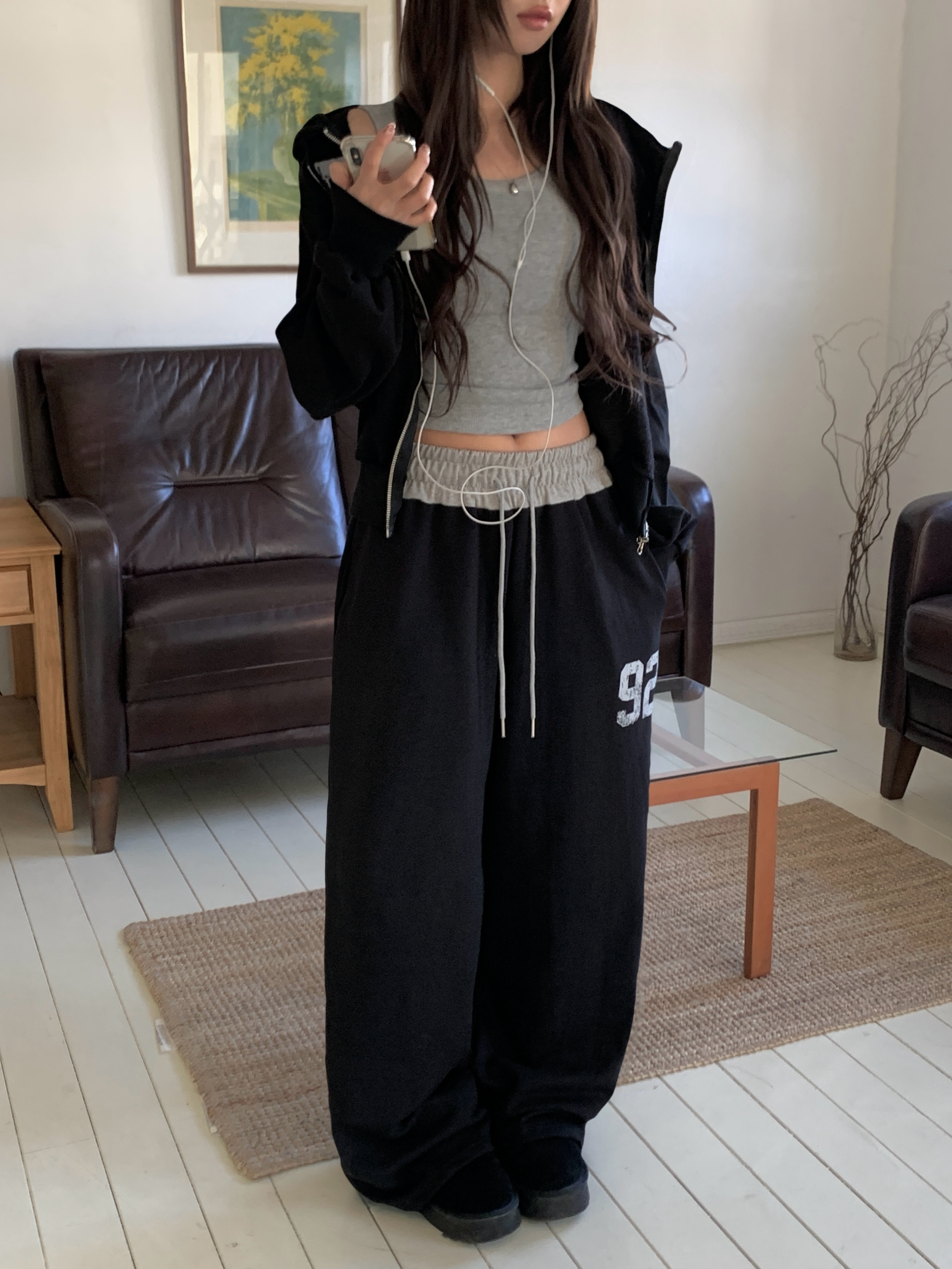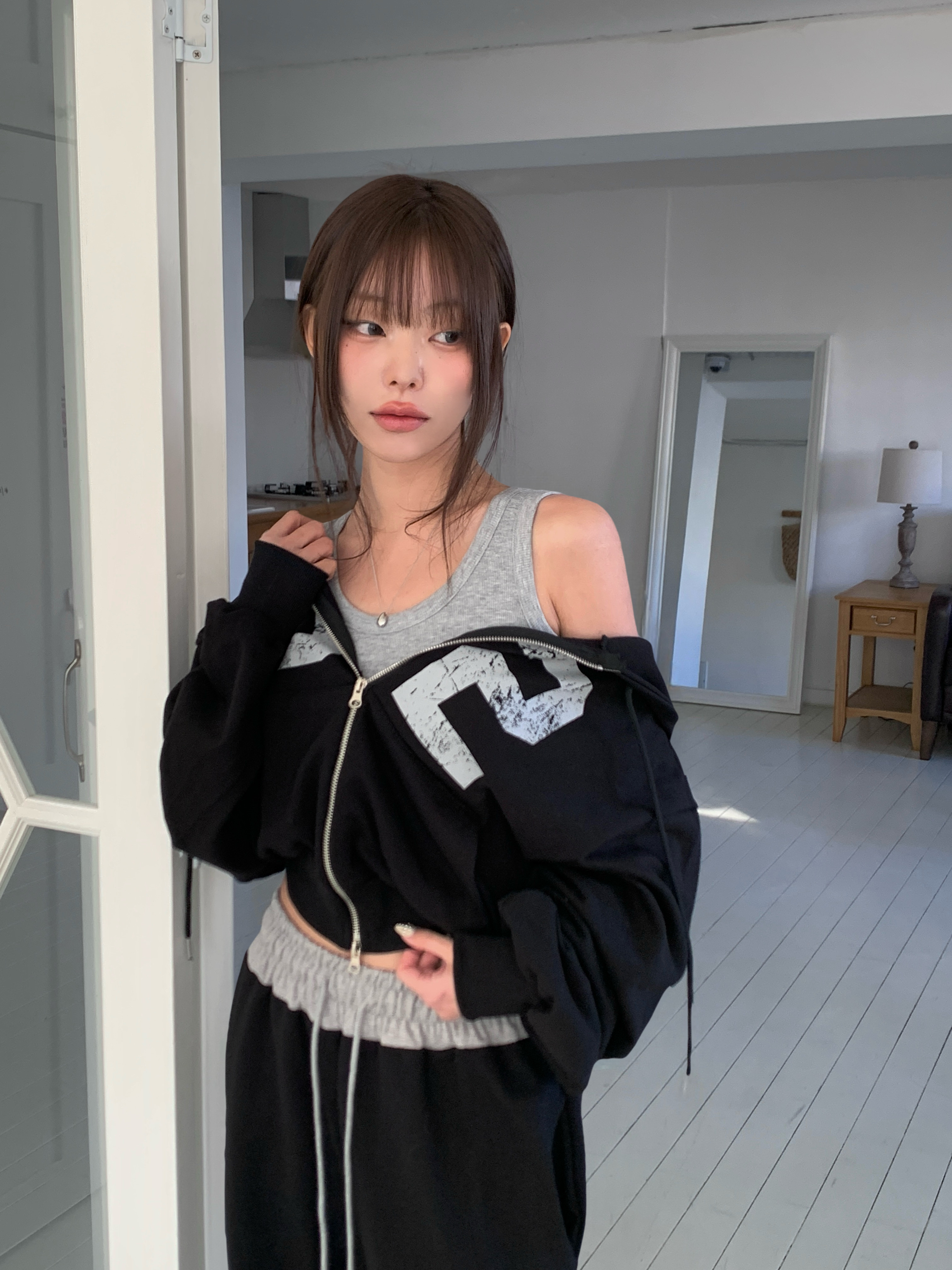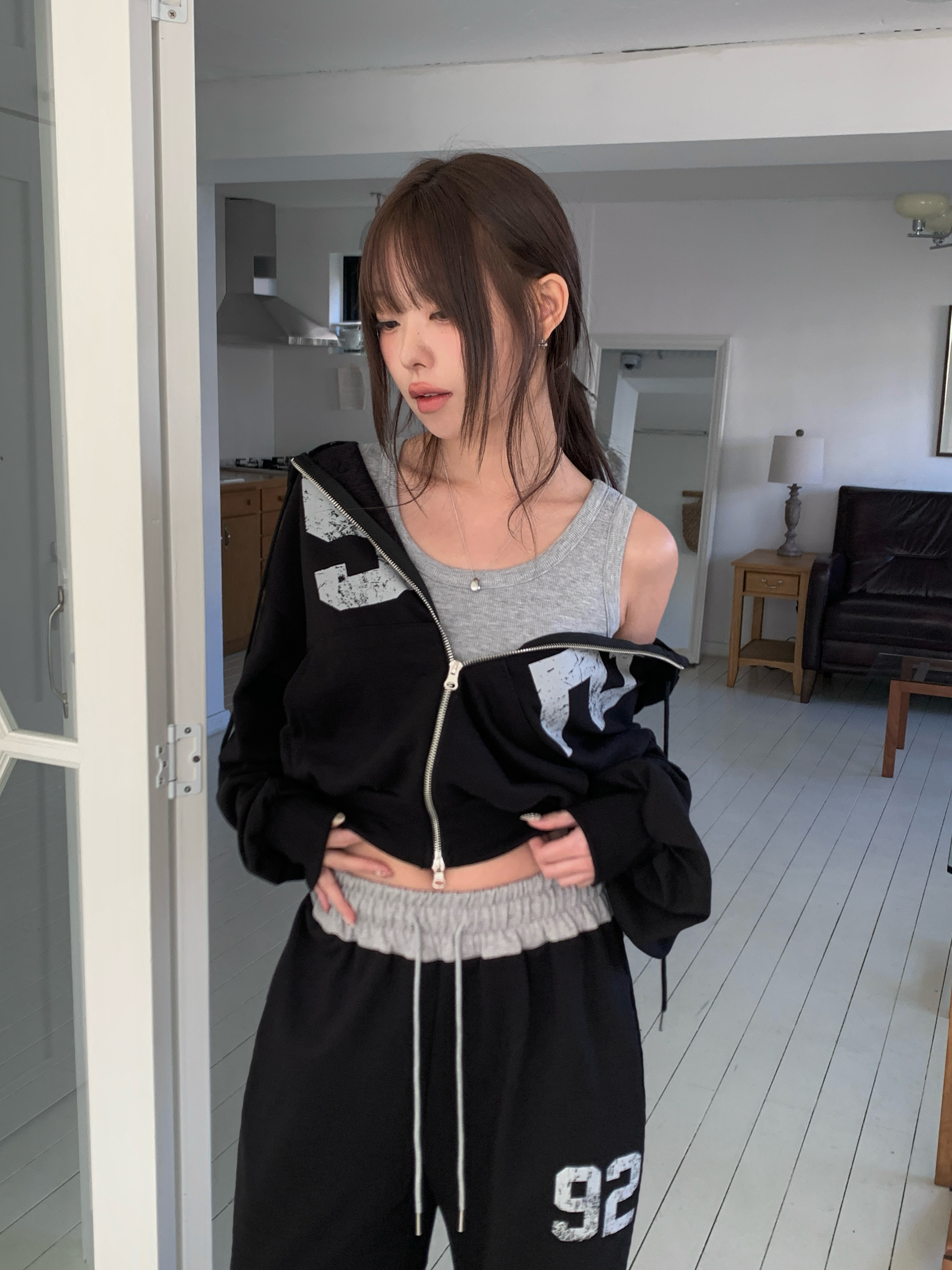 ナンバーダブルジップパーカー+ウエストゴムパンツトレーニングセットアップ