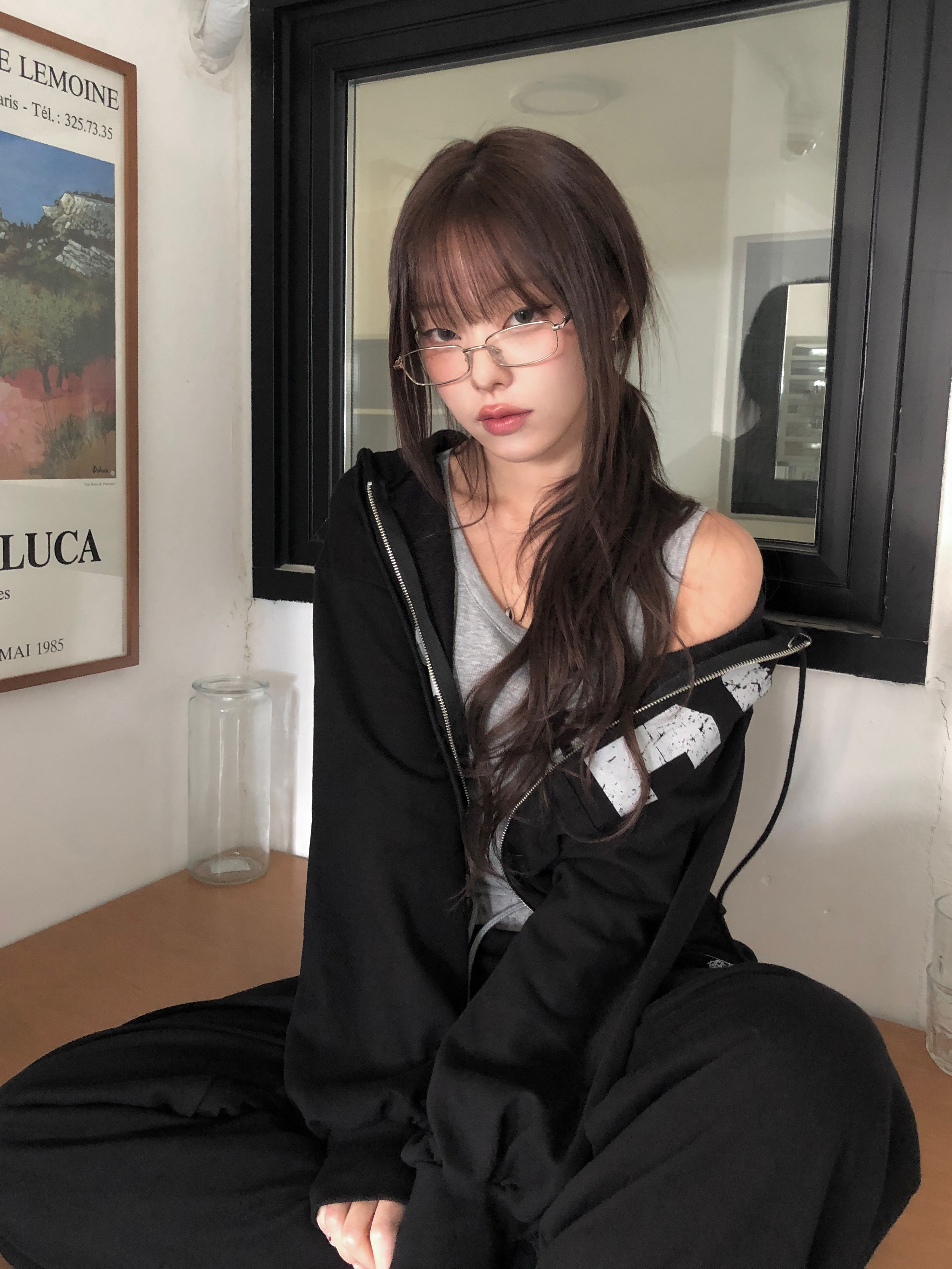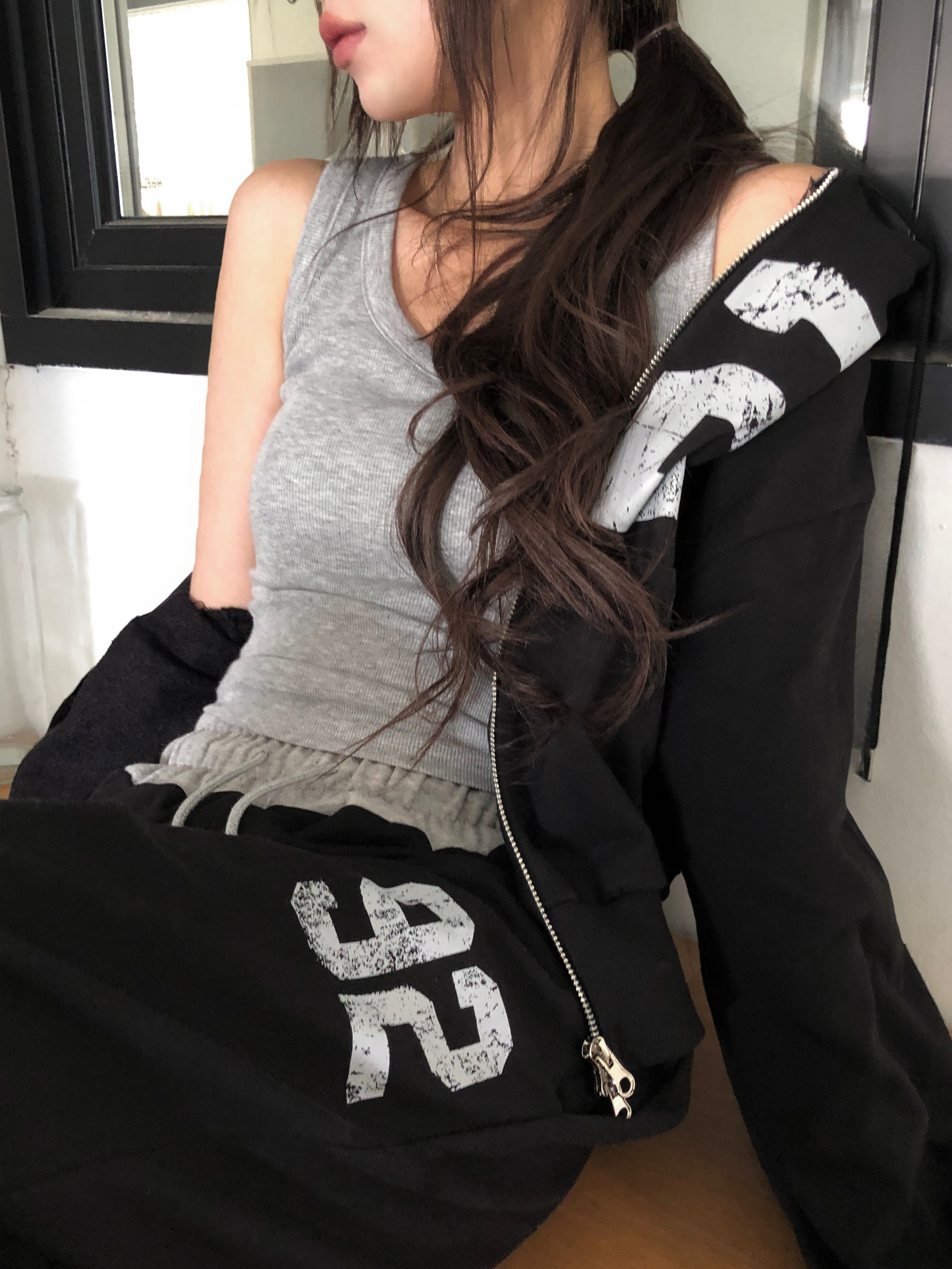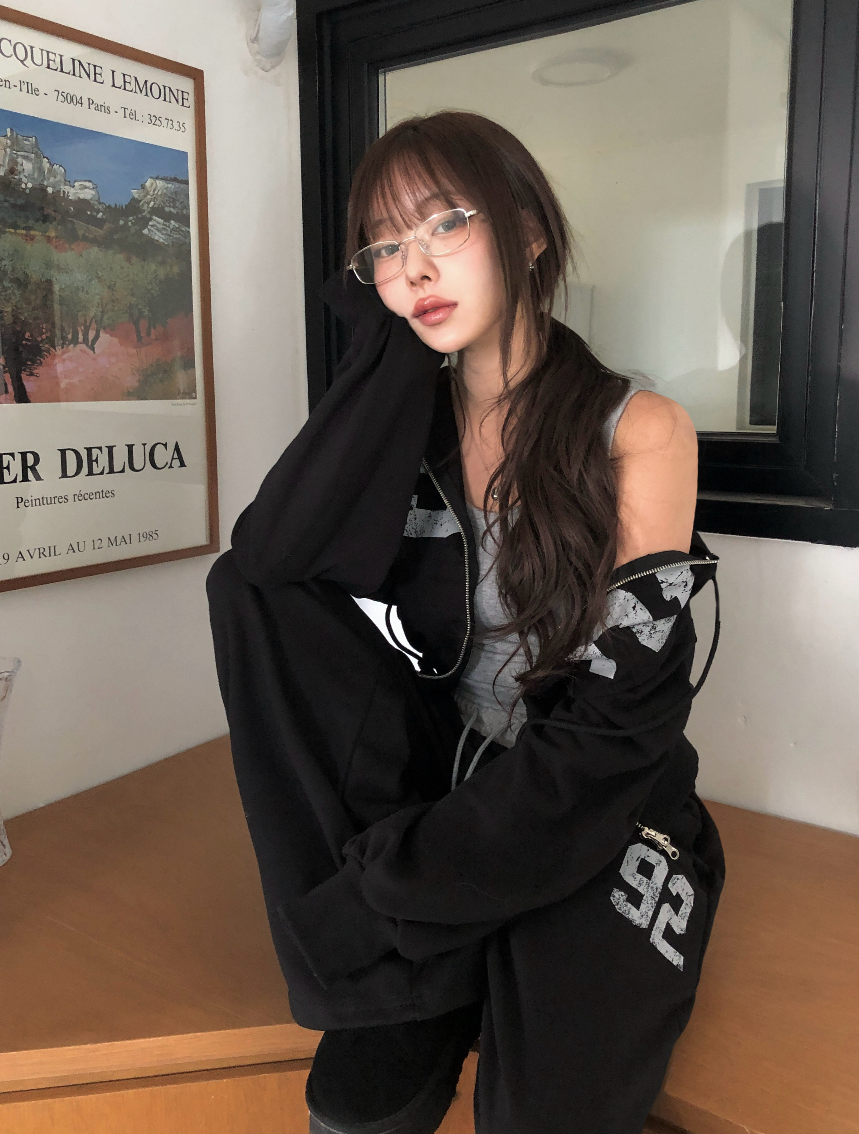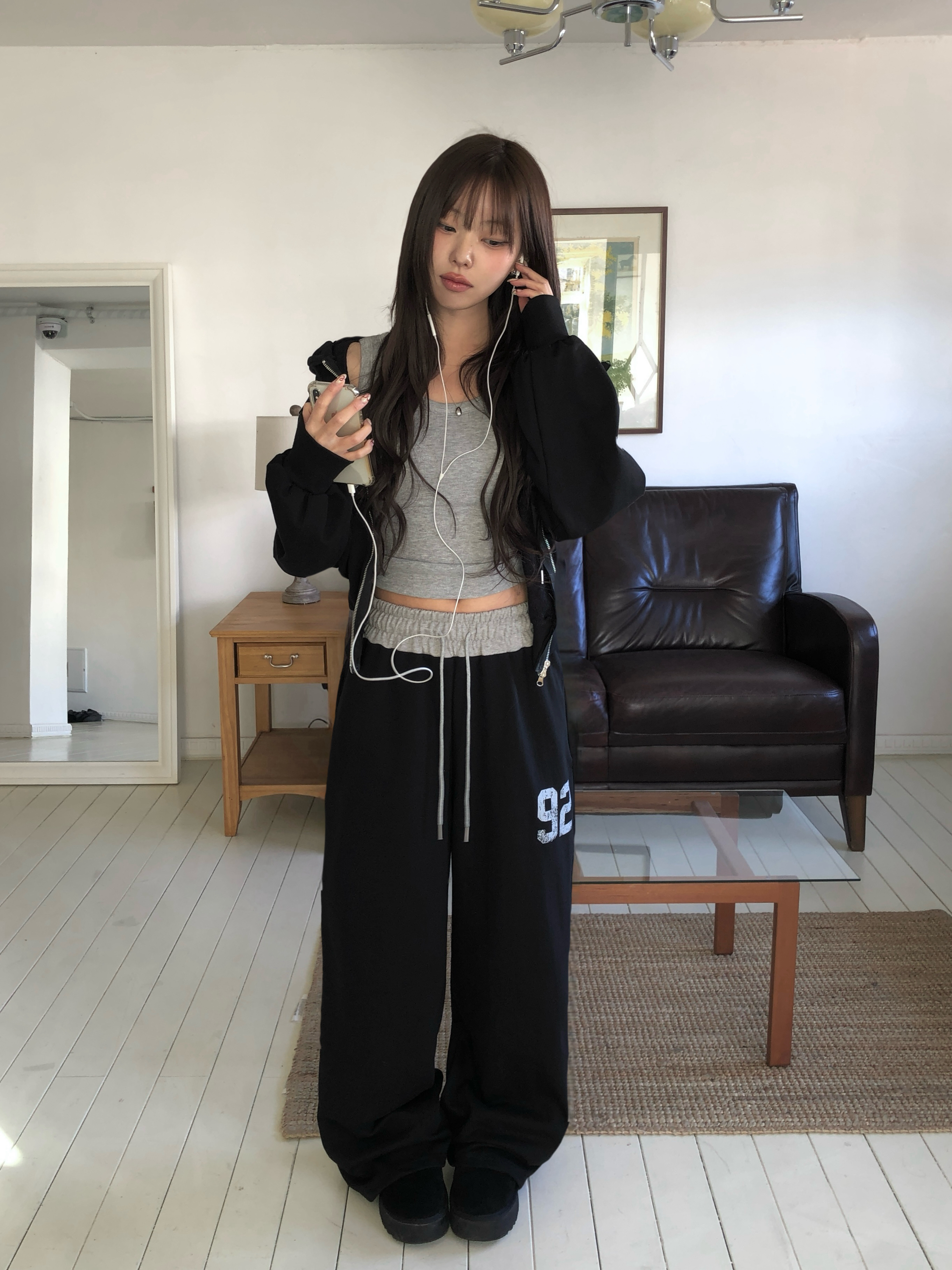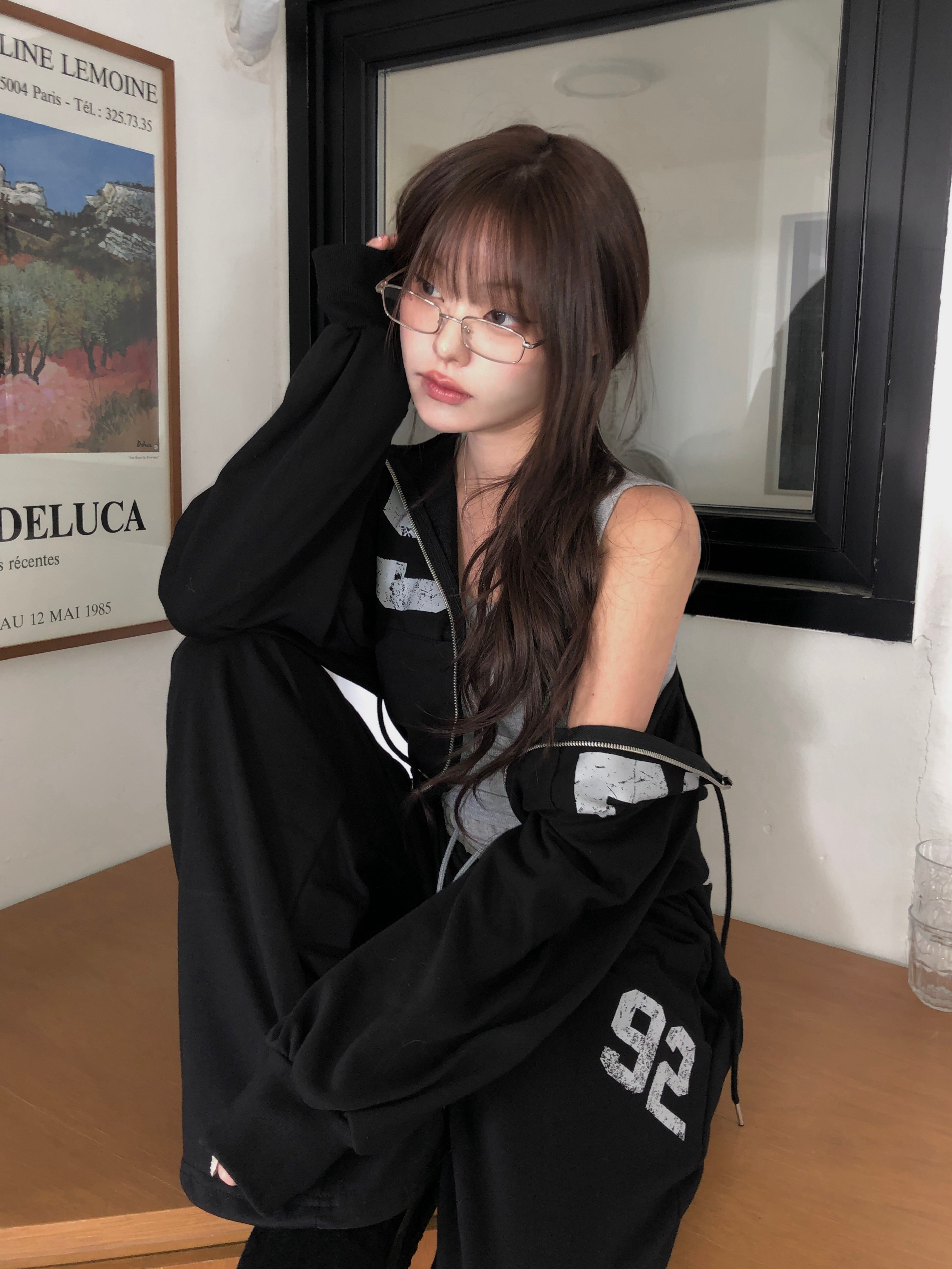 ナンバーダブルジップパーカー+ウエストゴムパンツトレーニングセットアップ