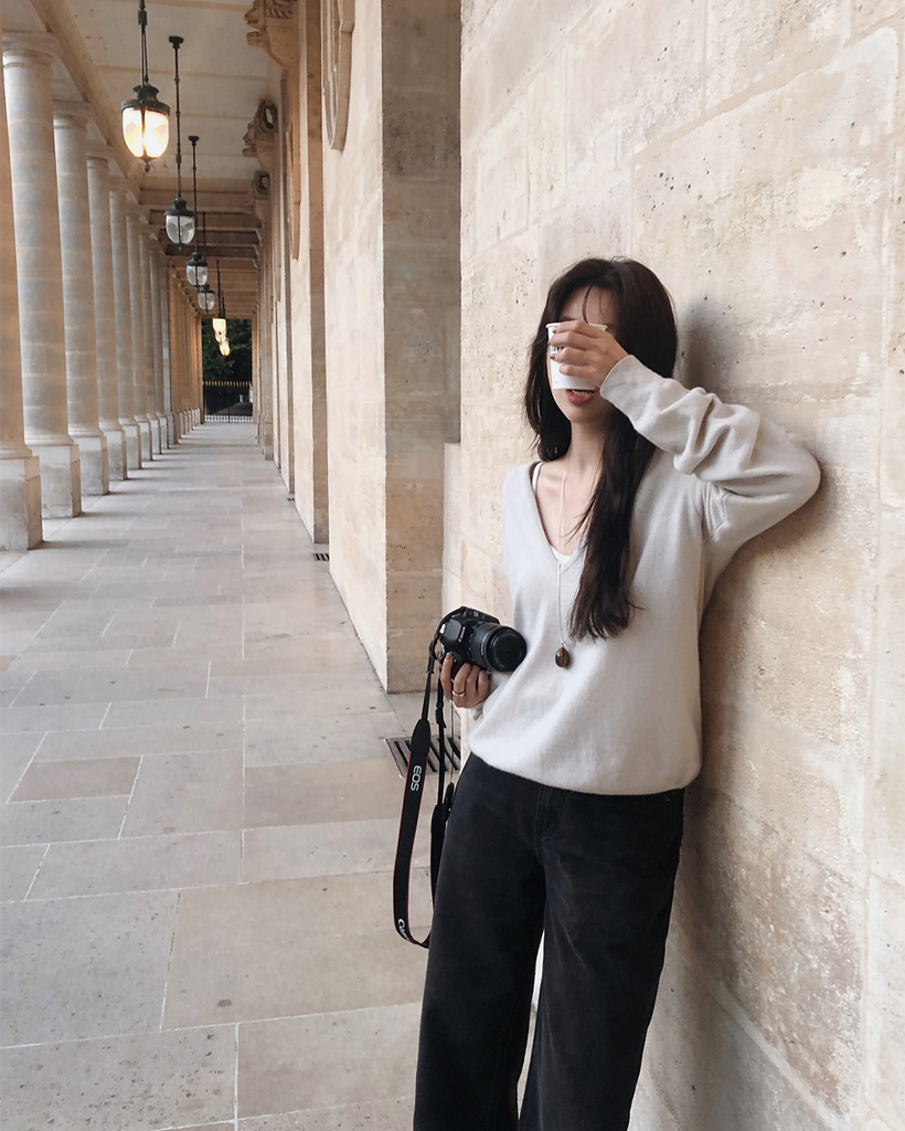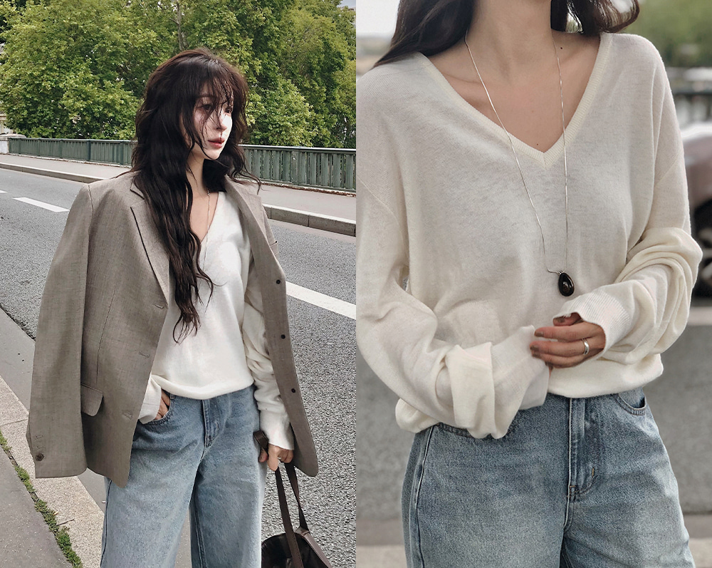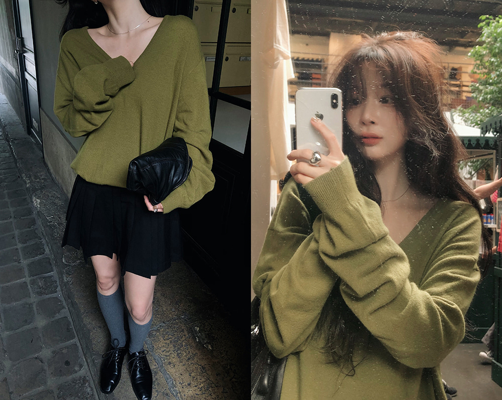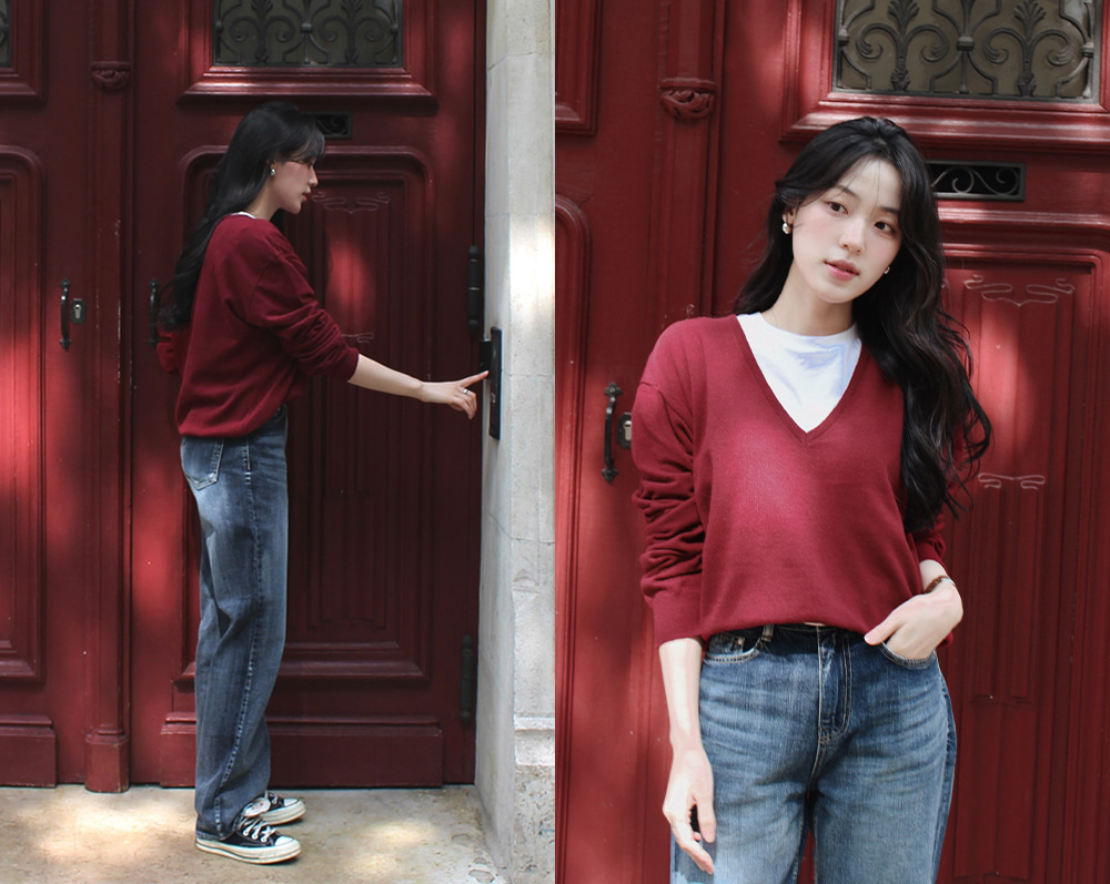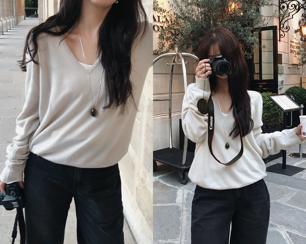 ディープVネックニット