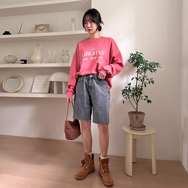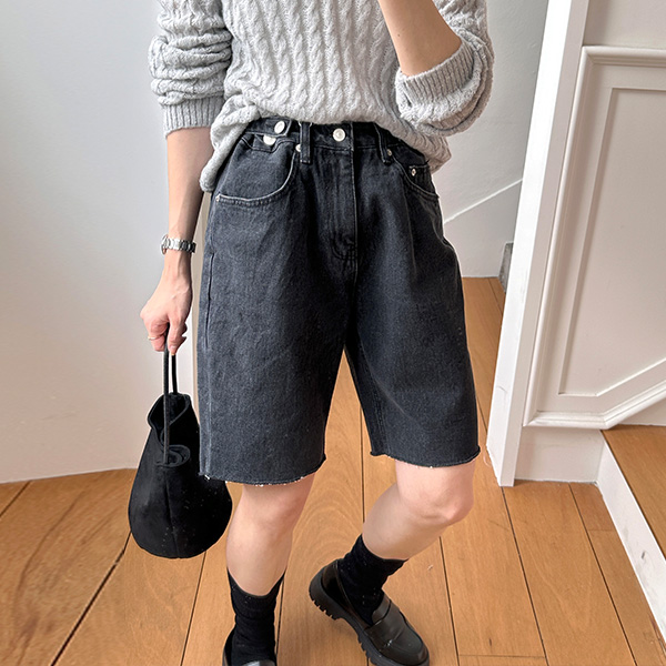 サイドバックルデニムハーフパンツ