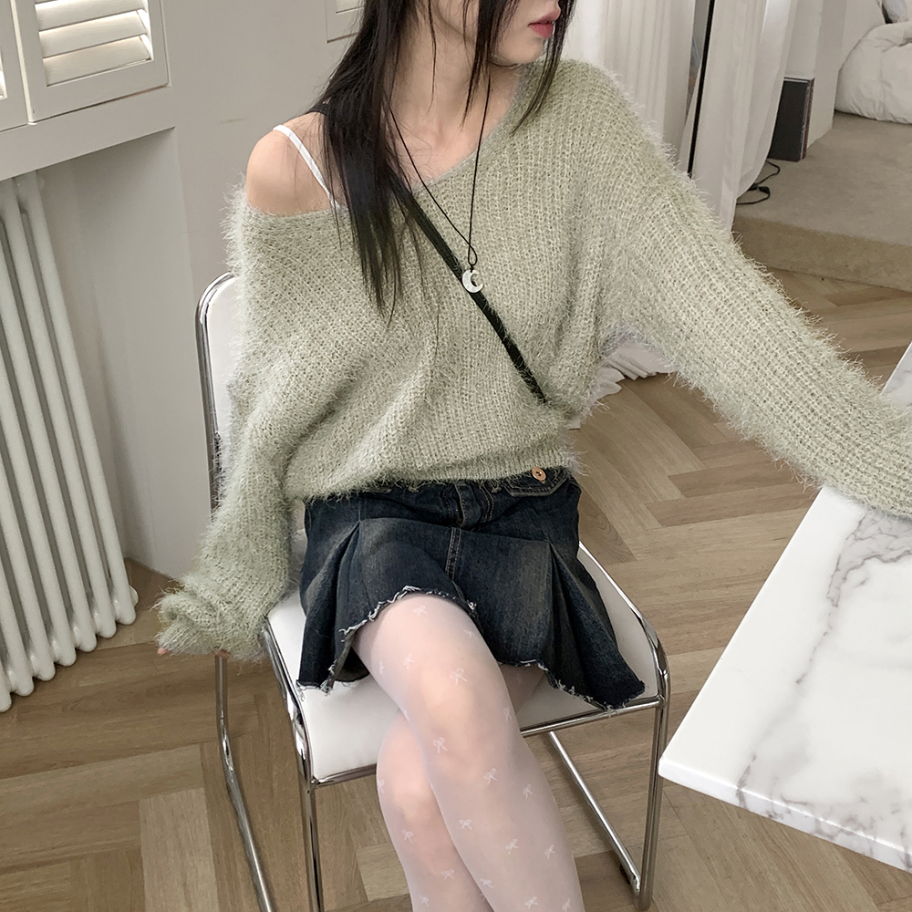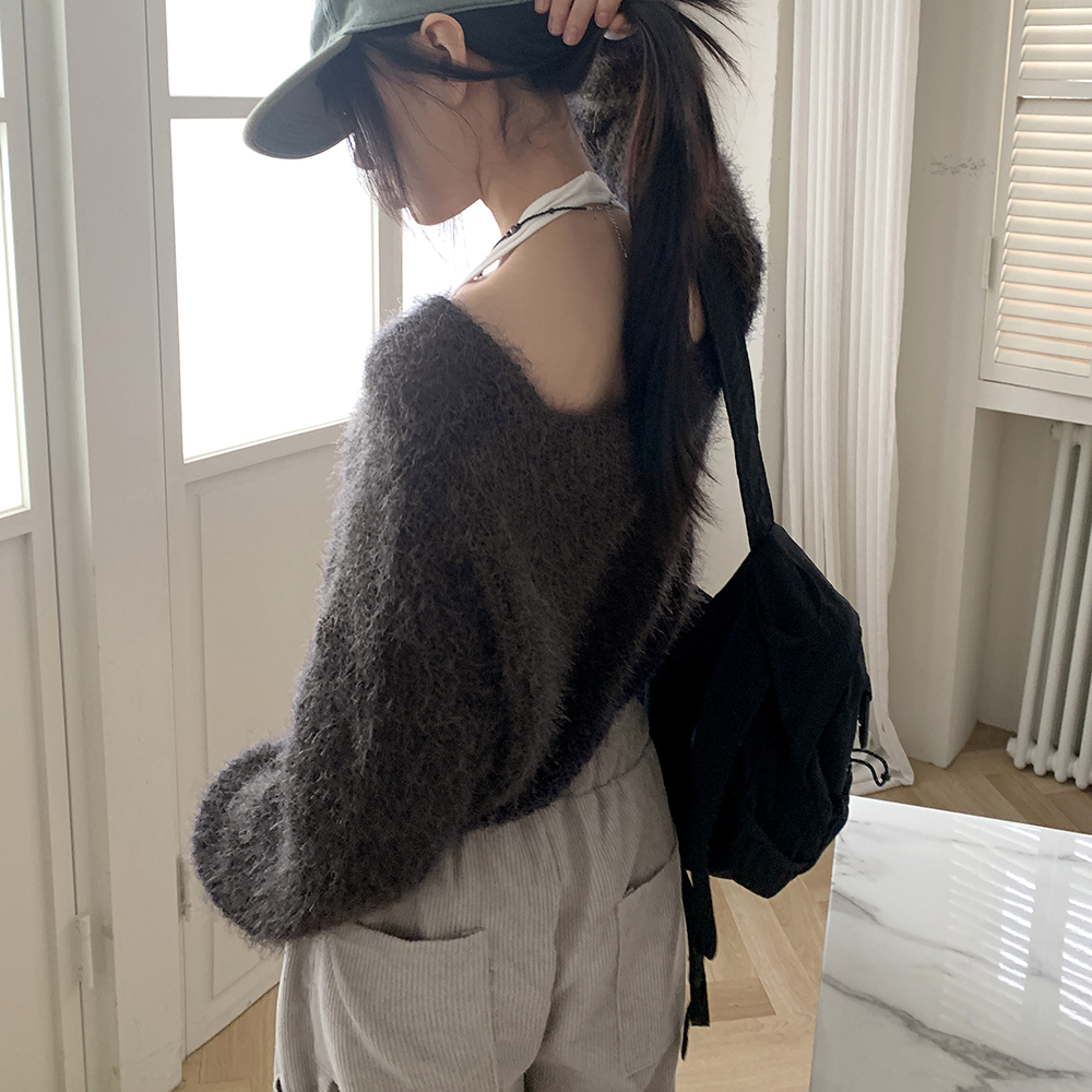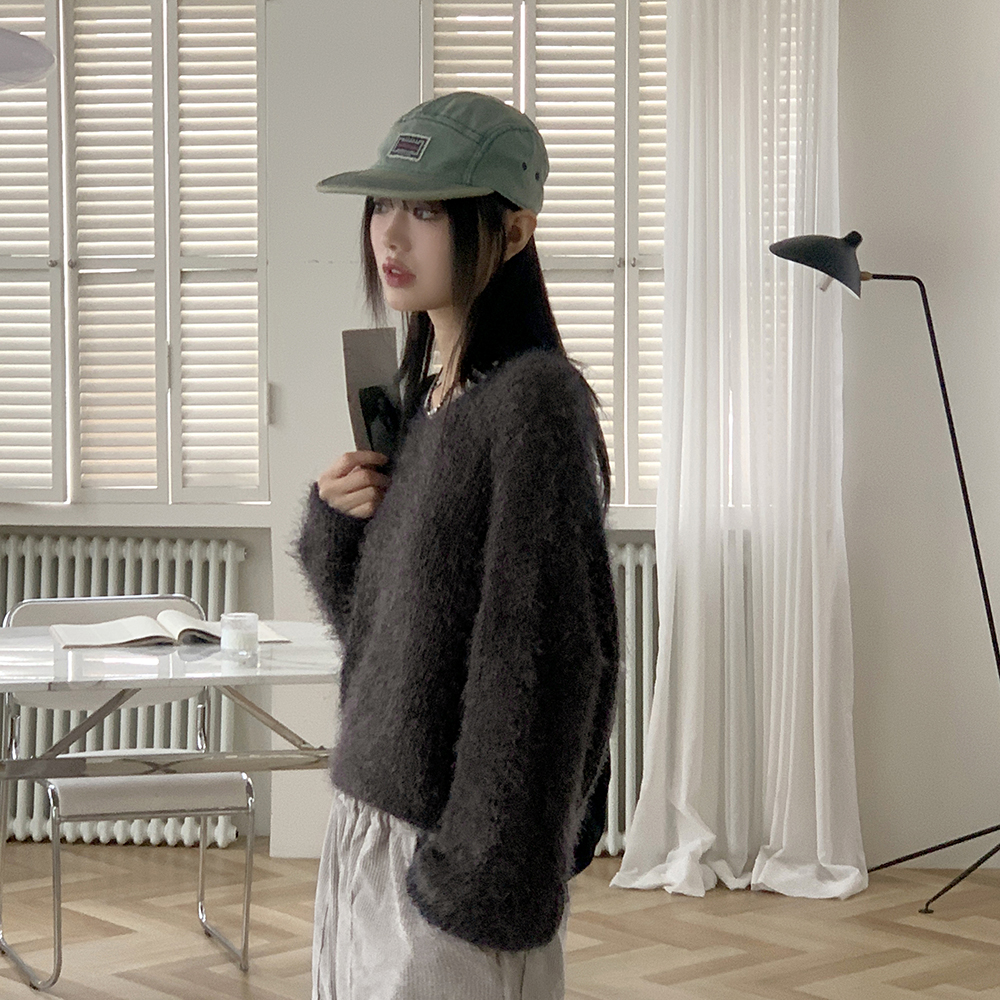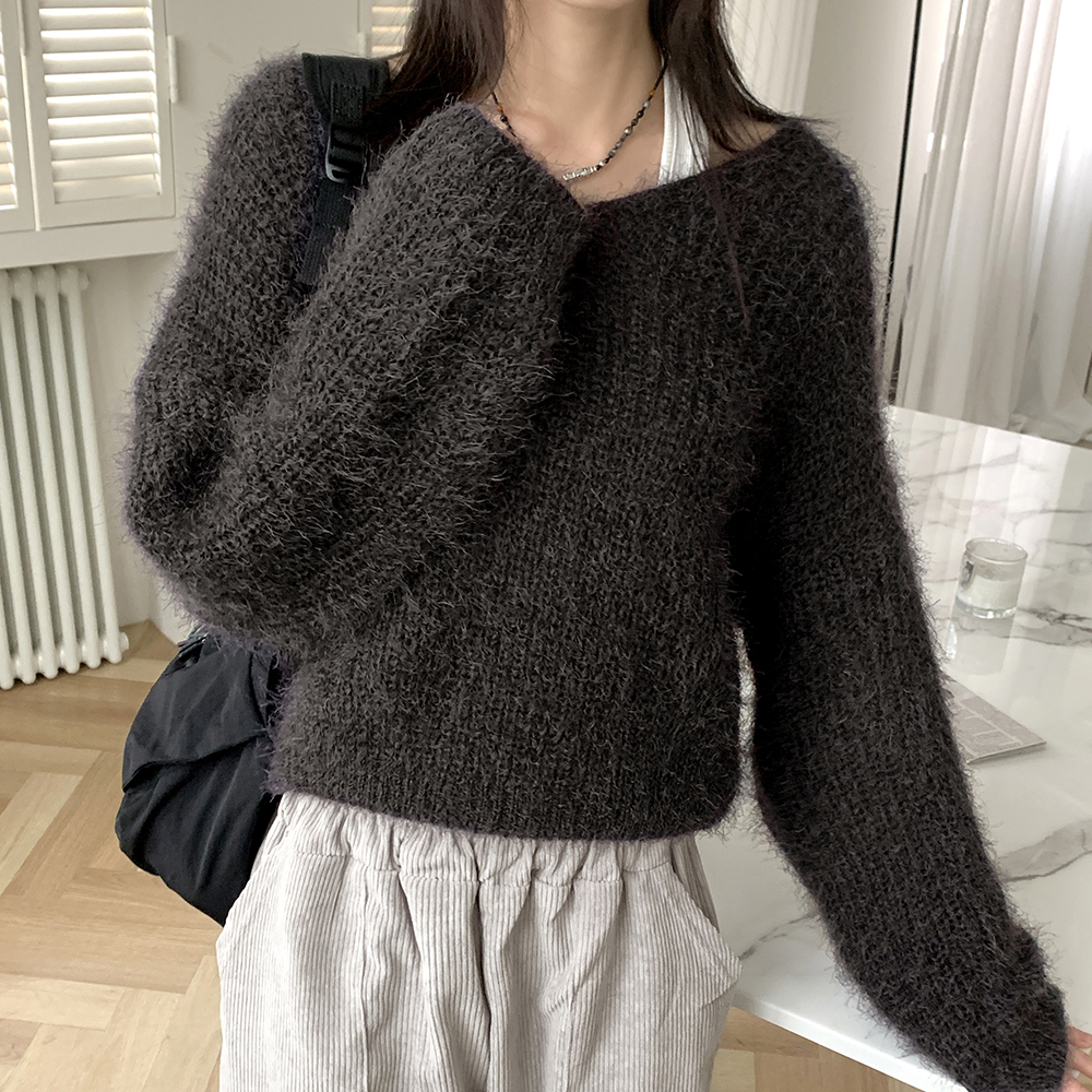 Vネックアンゴラ長袖ニット