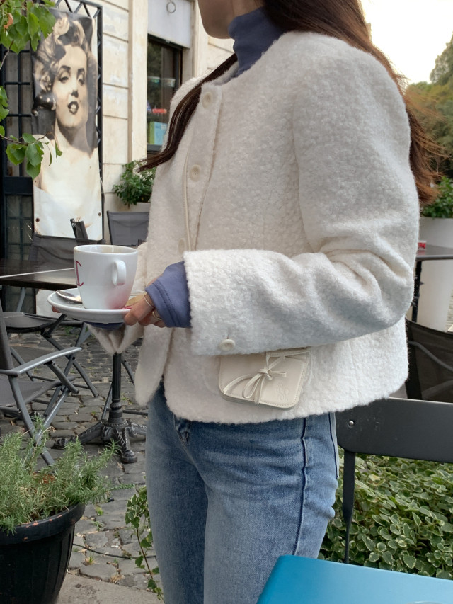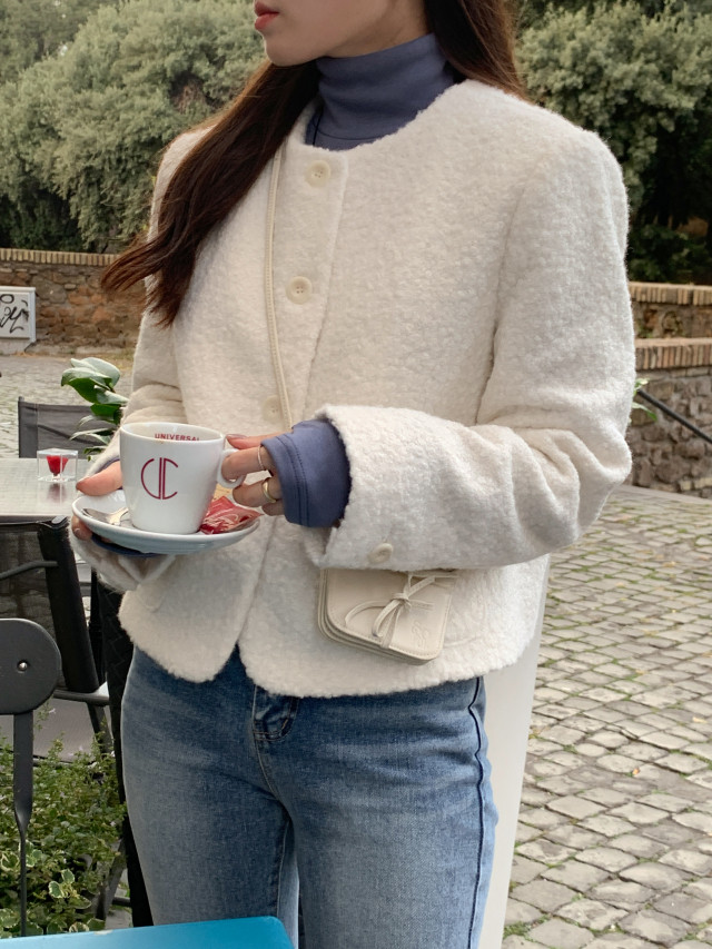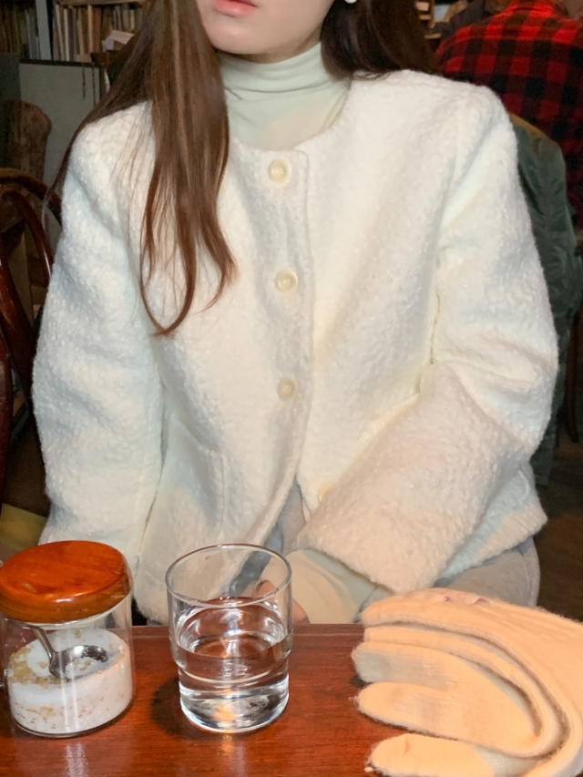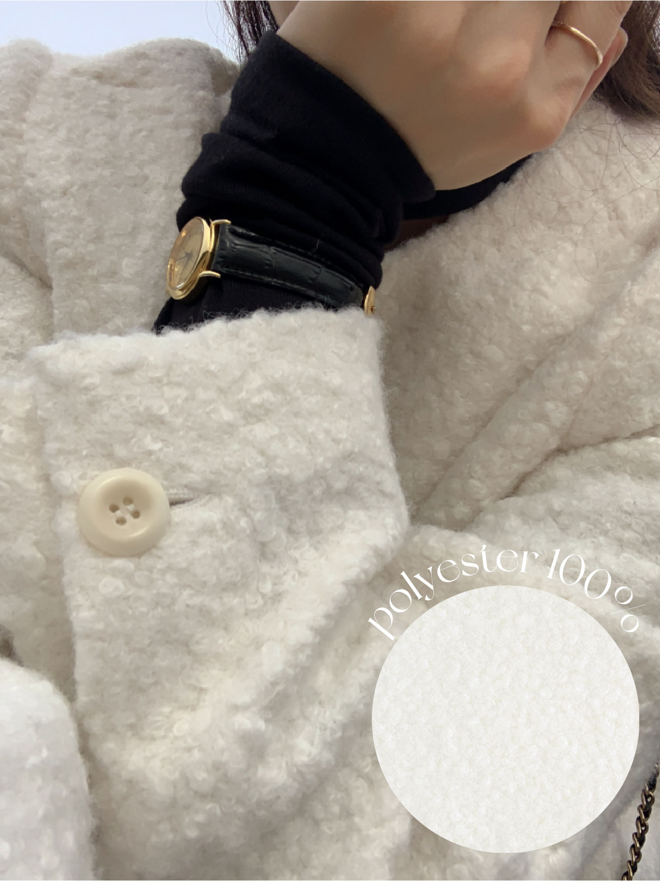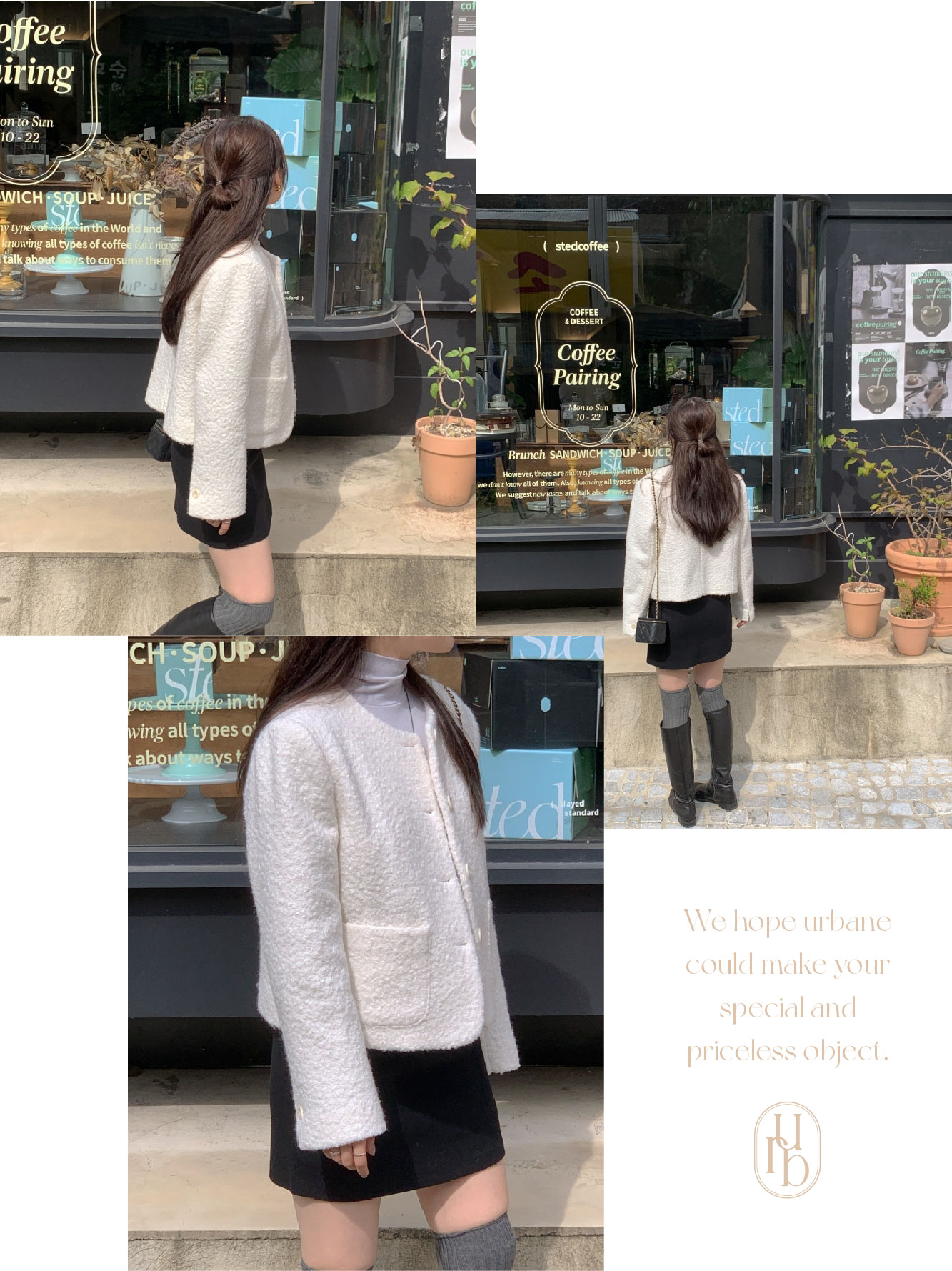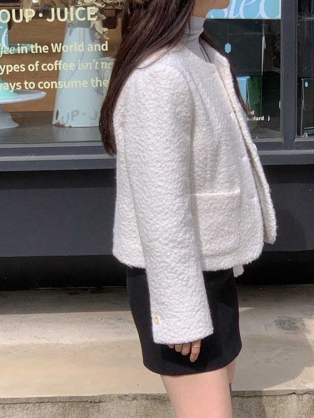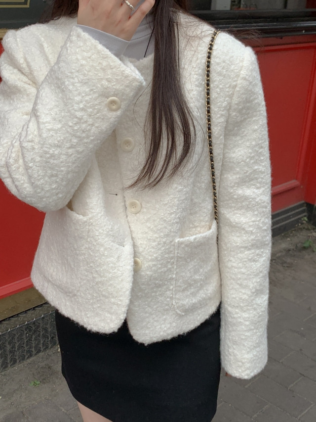 [original]クロップドショートノーカラーツイードブークレジャケット