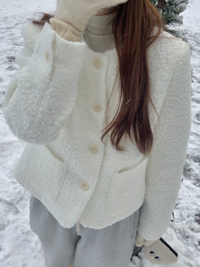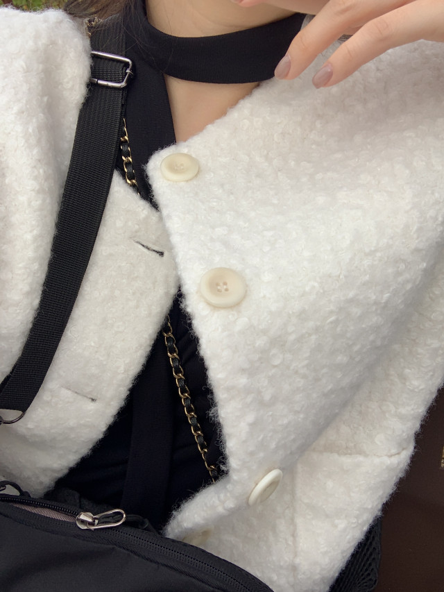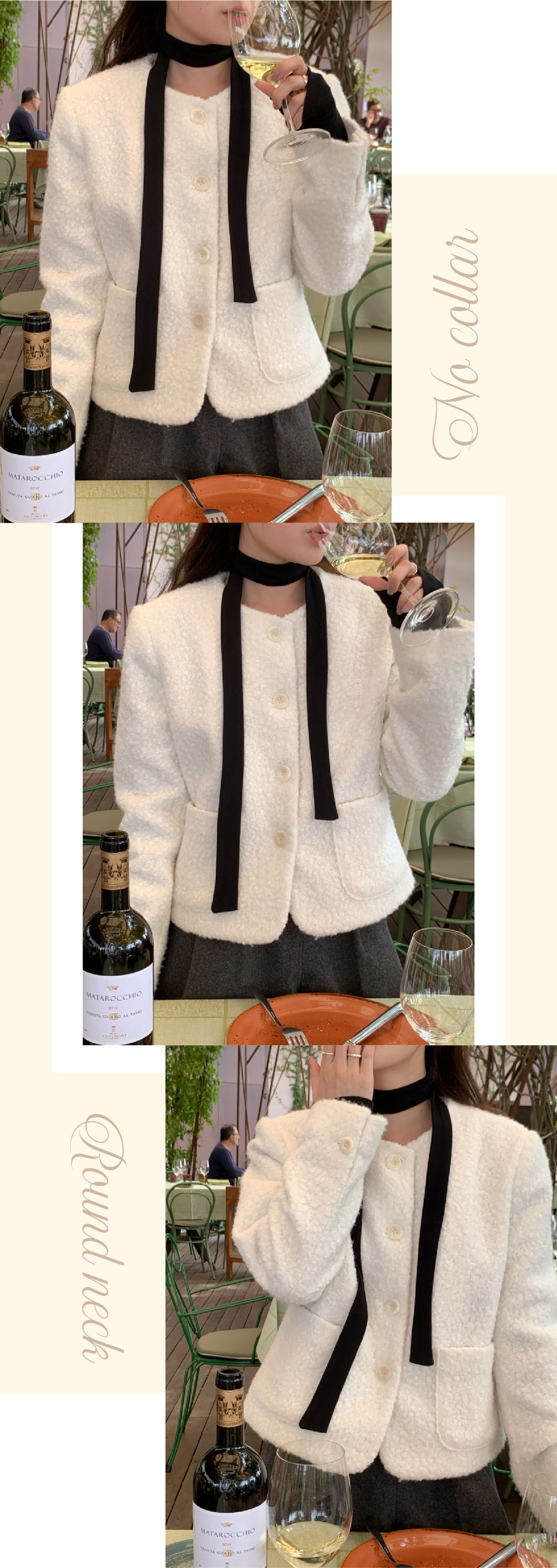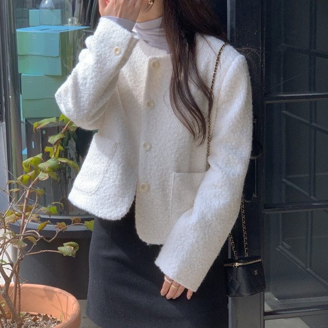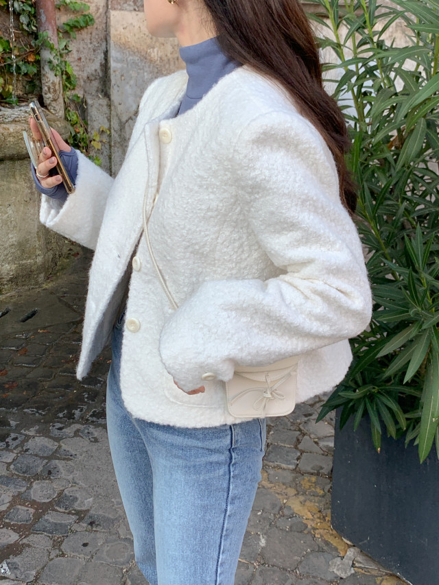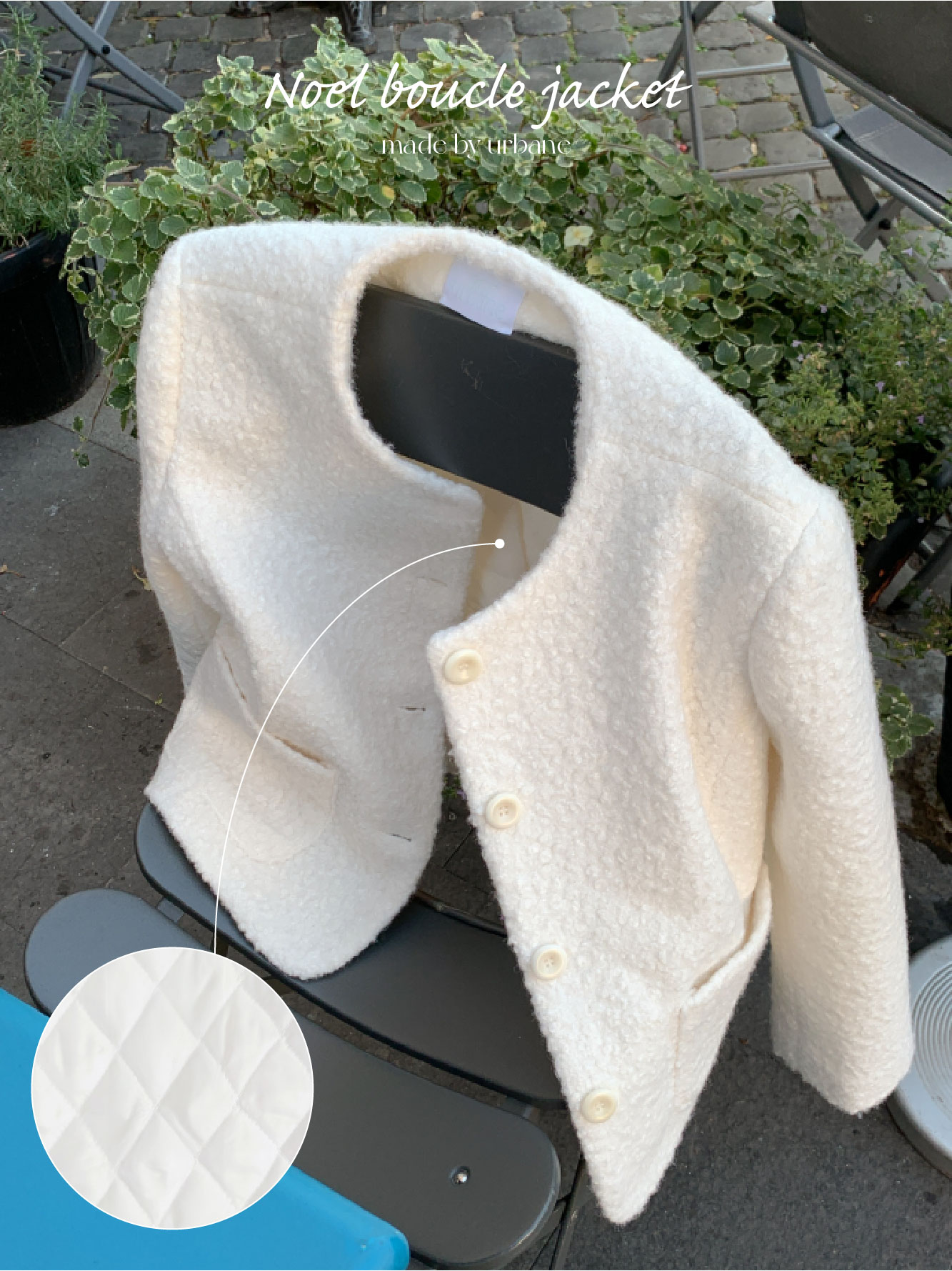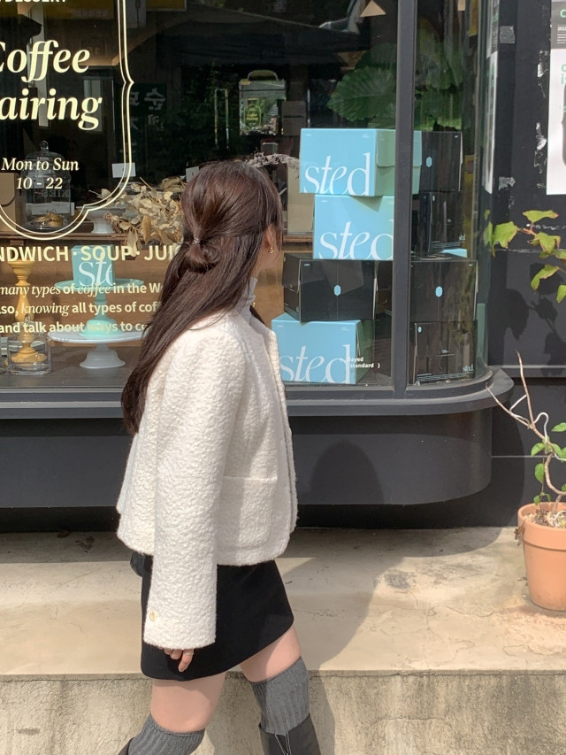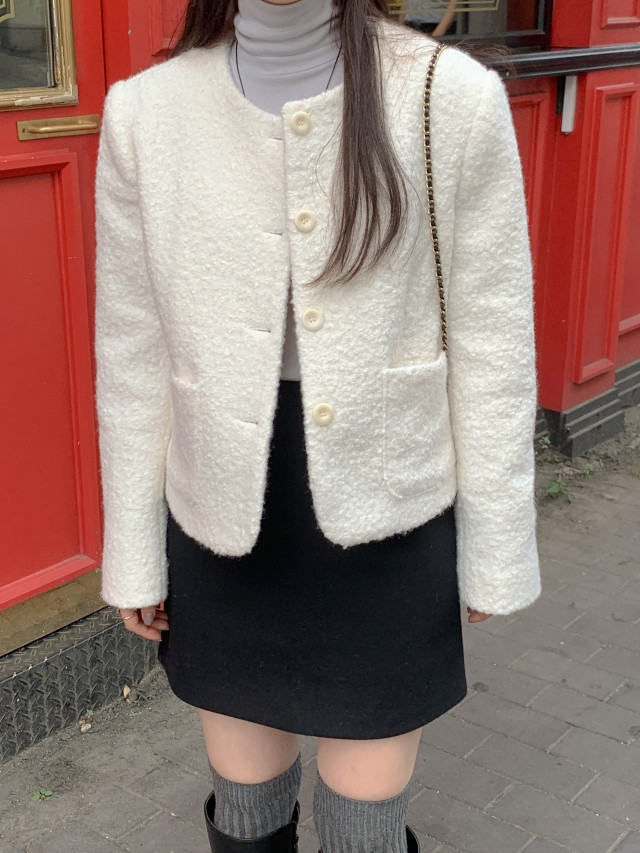 [original]クロップドショートノーカラーツイードブークレジャケット