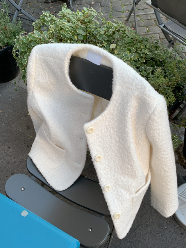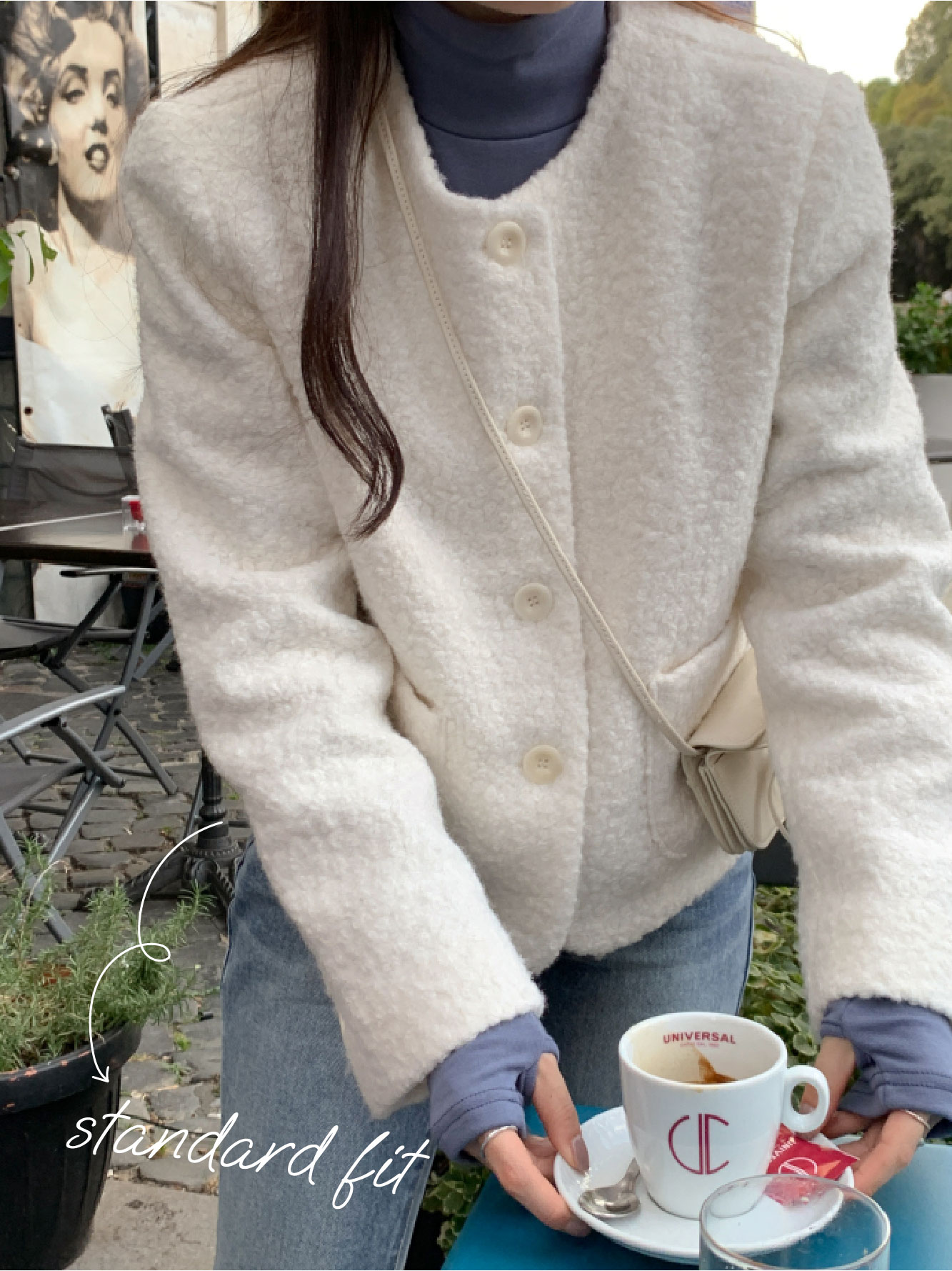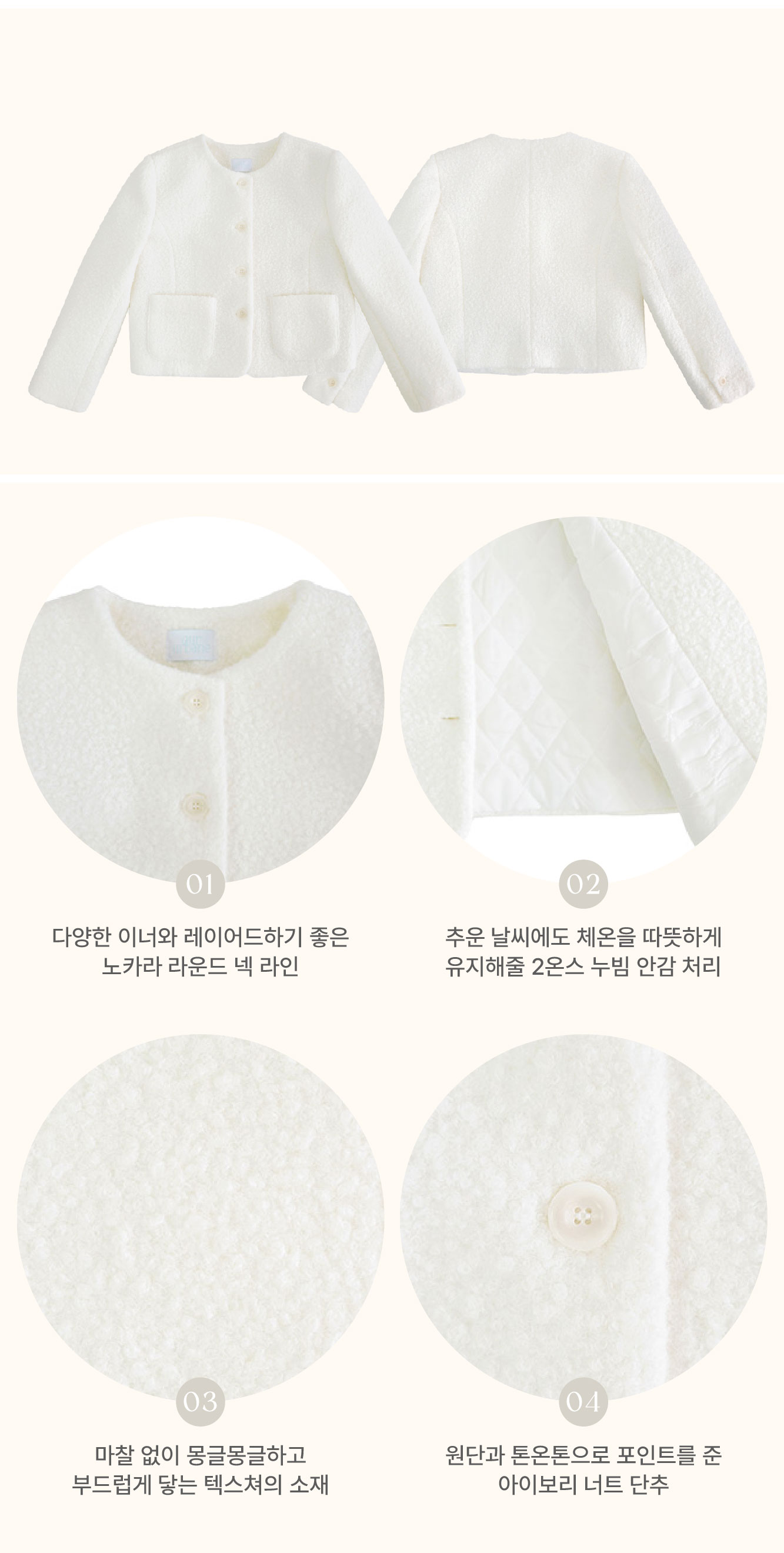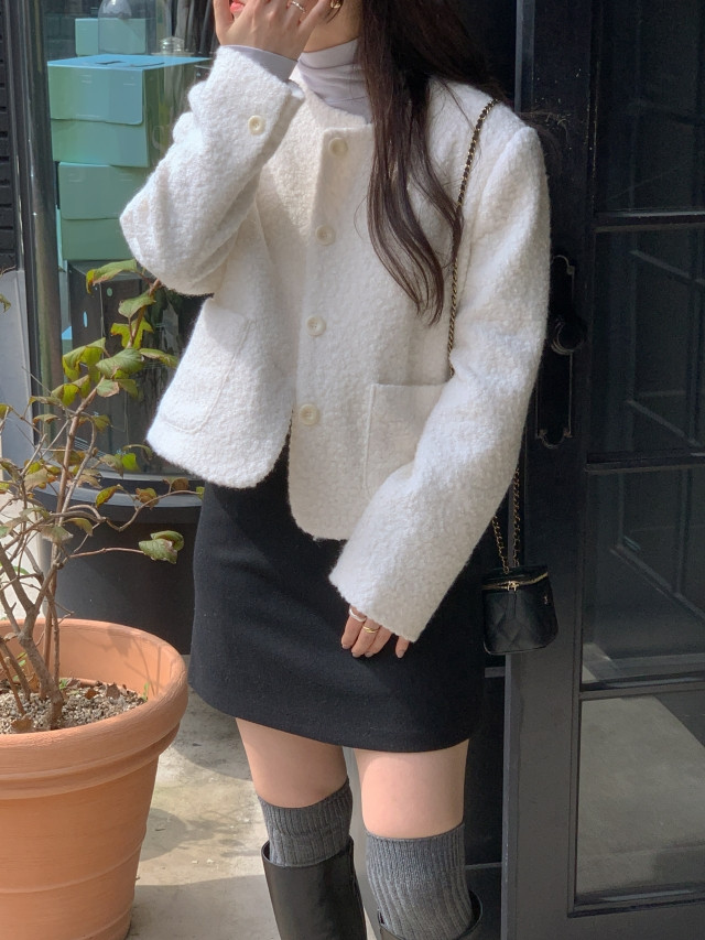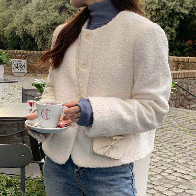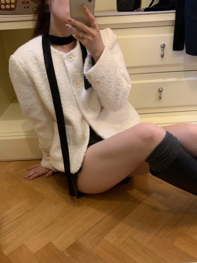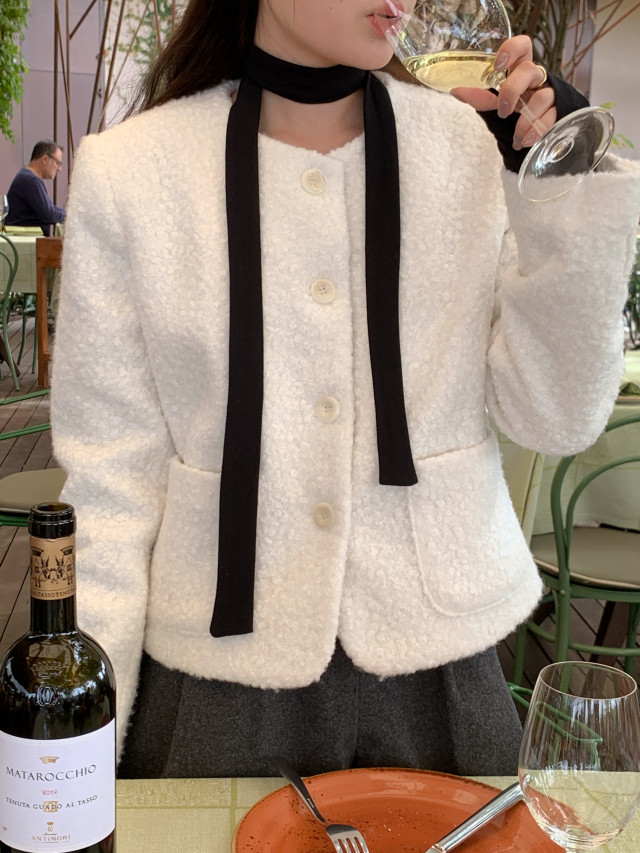 [original]クロップドショートノーカラーツイードブークレジャケット
