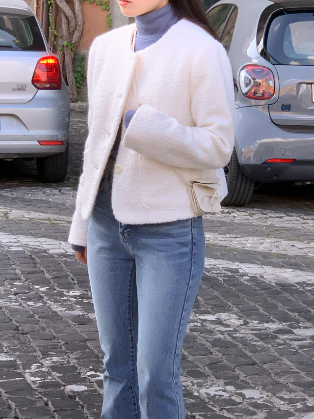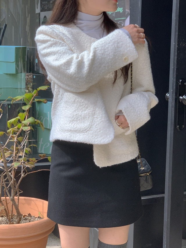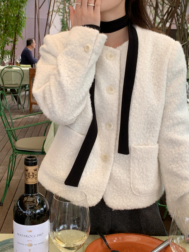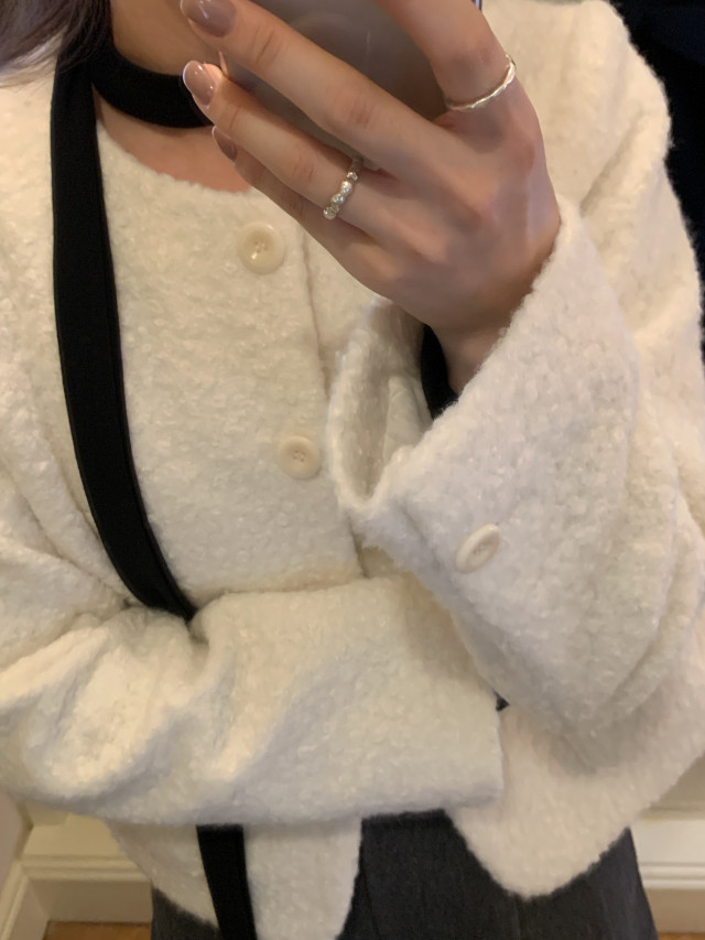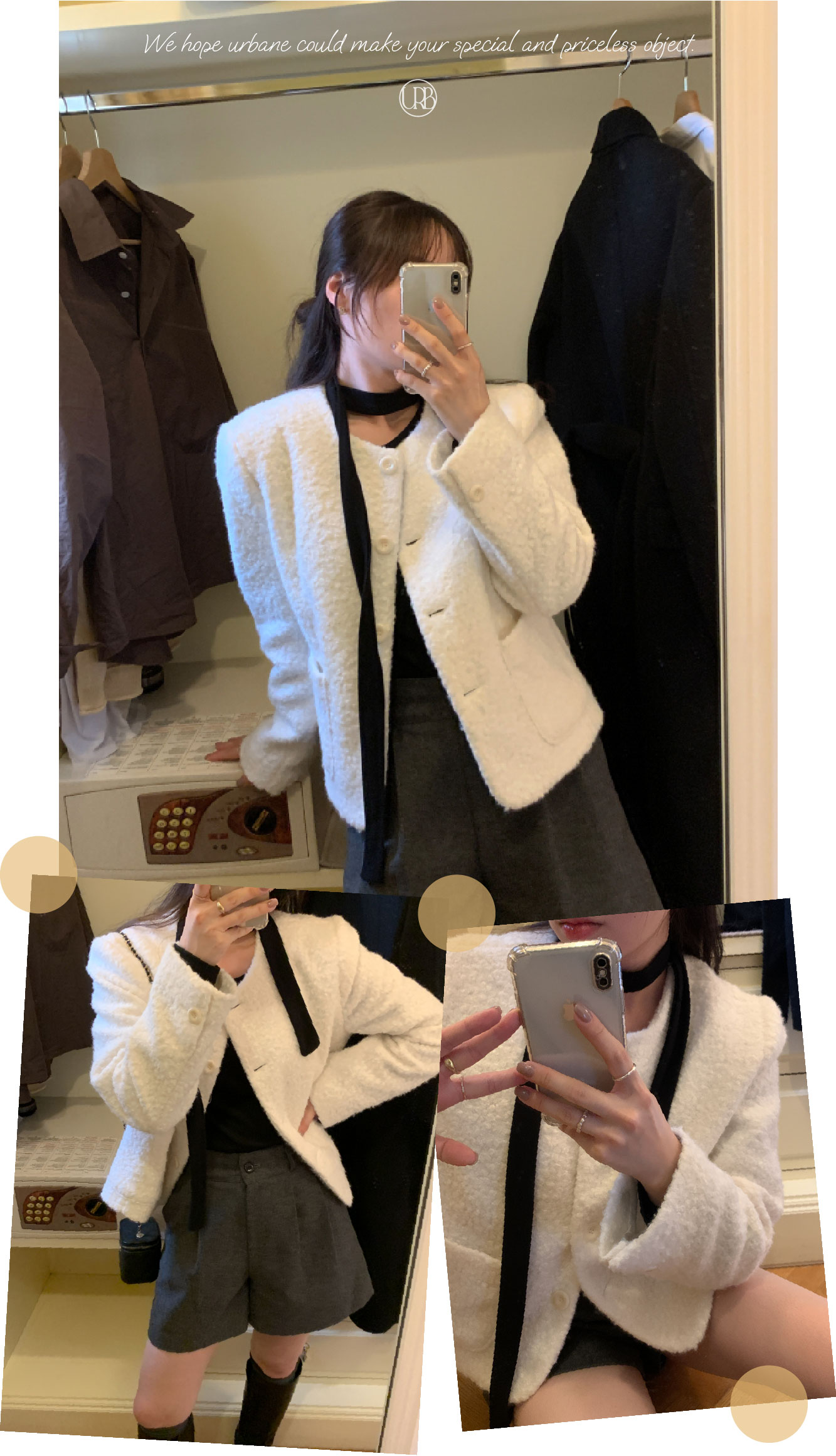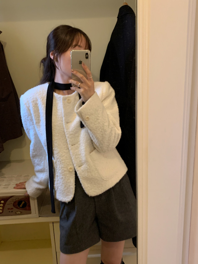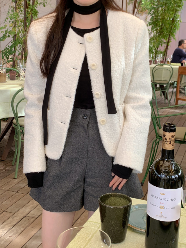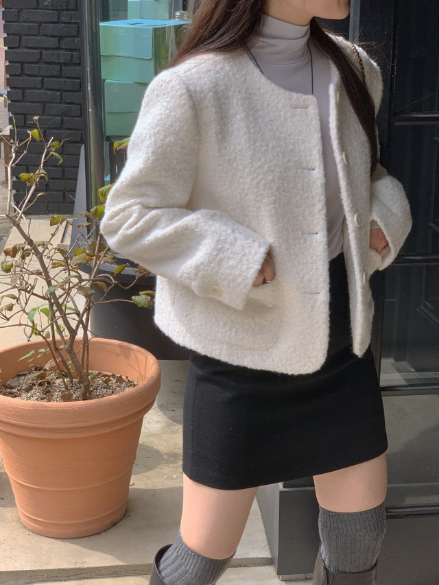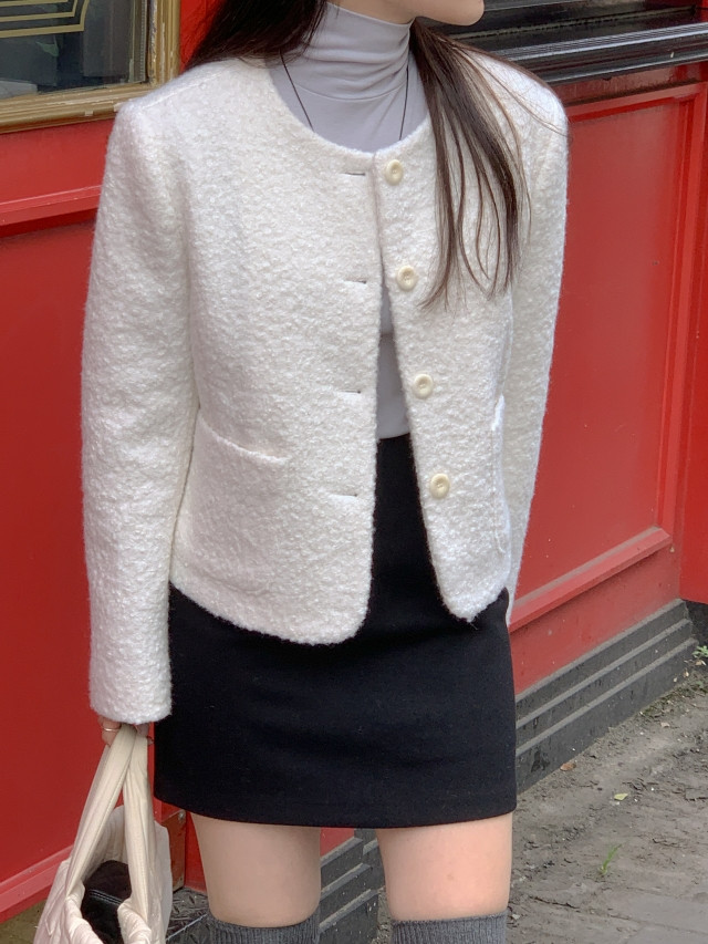 [original]クロップドショートノーカラーツイードブークレジャケット
