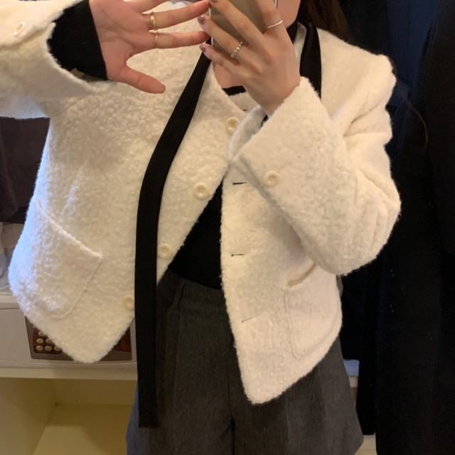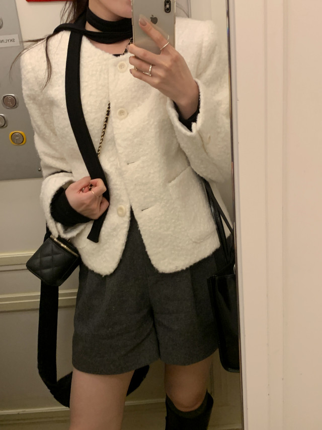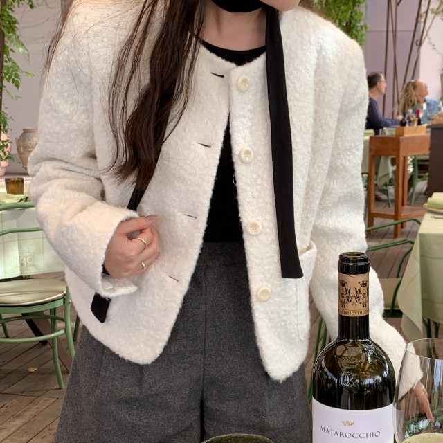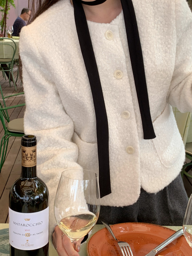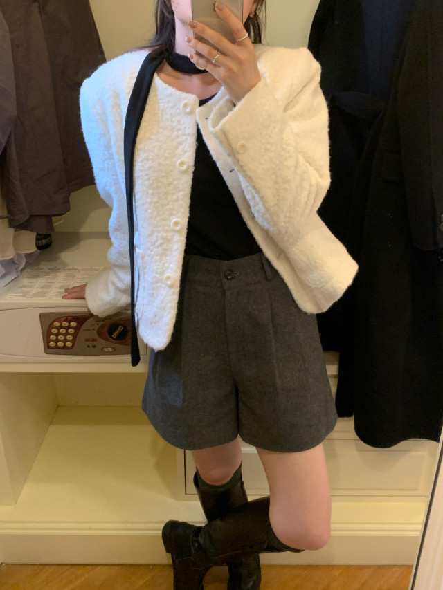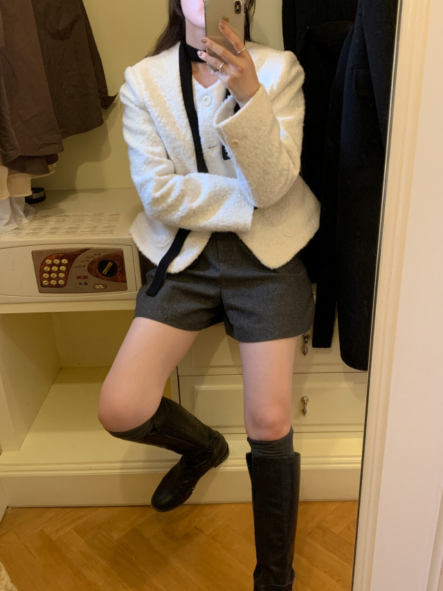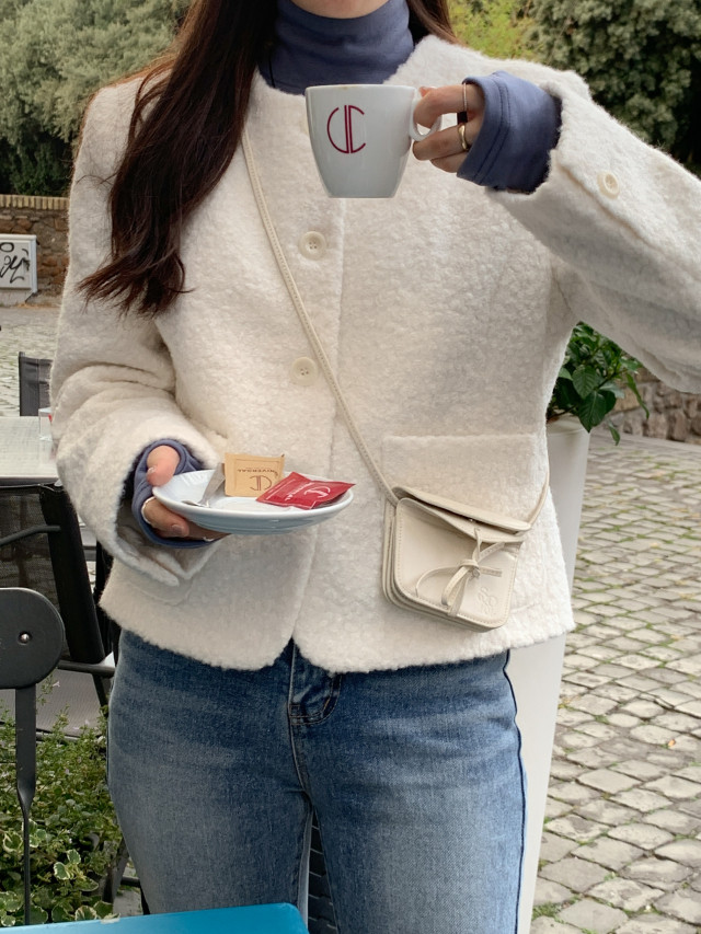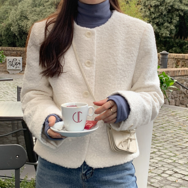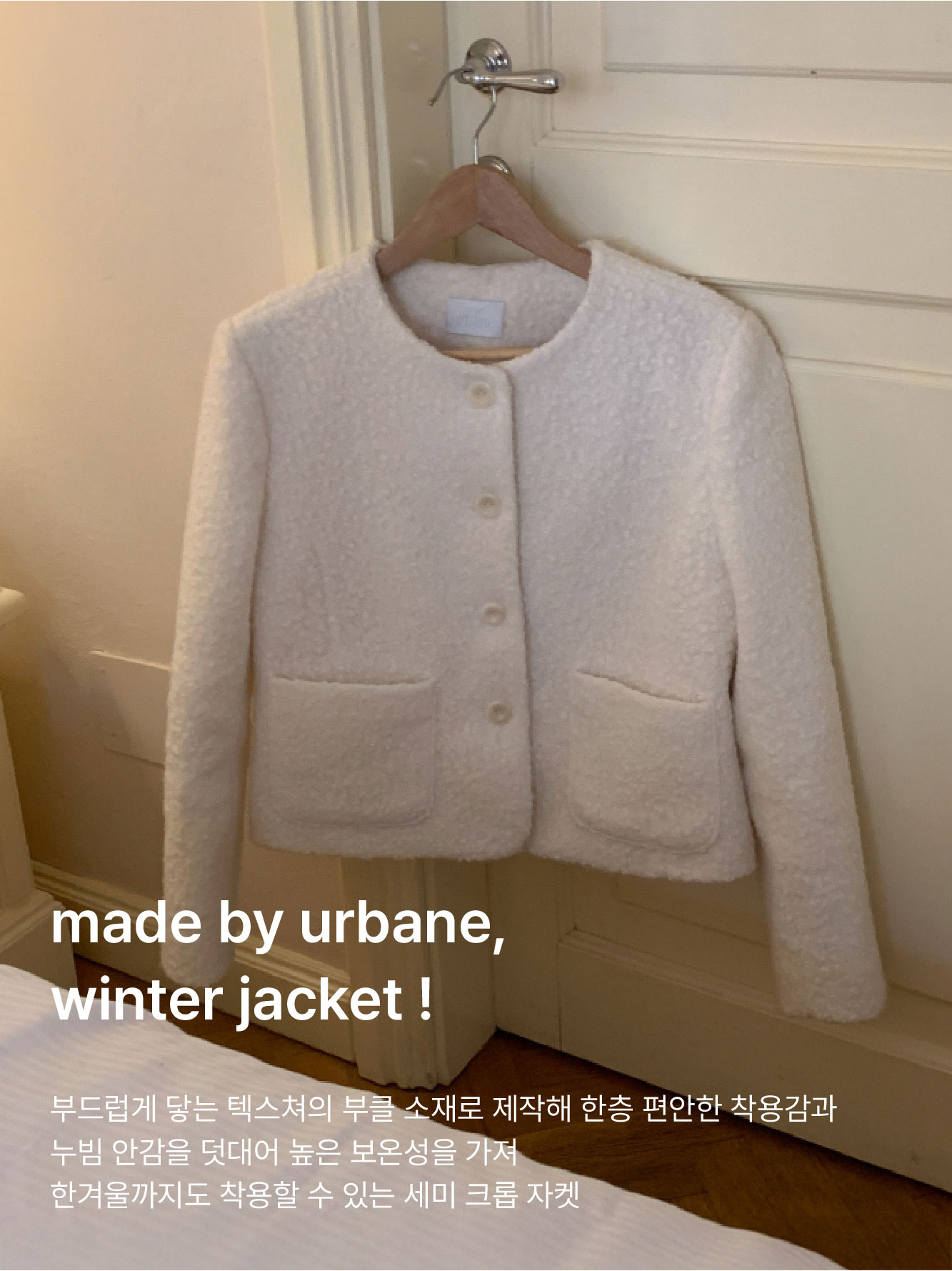 [original]クロップドショートノーカラーツイードブークレジャケット