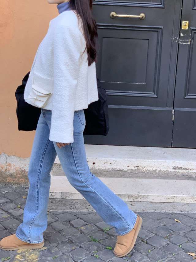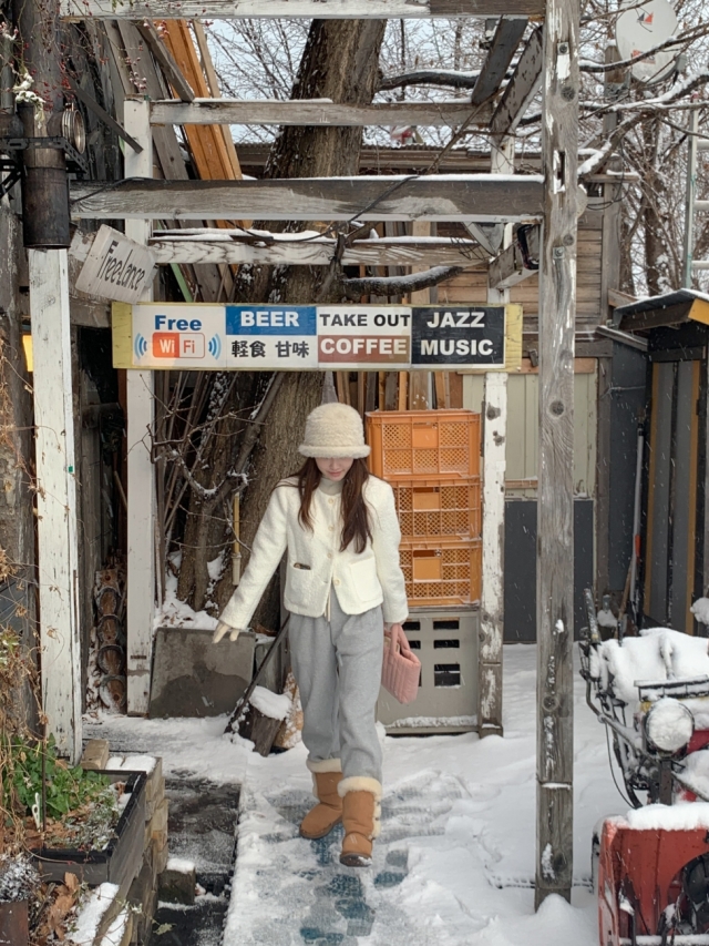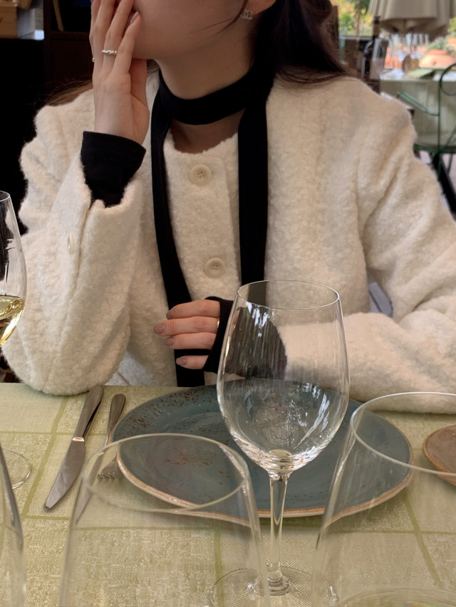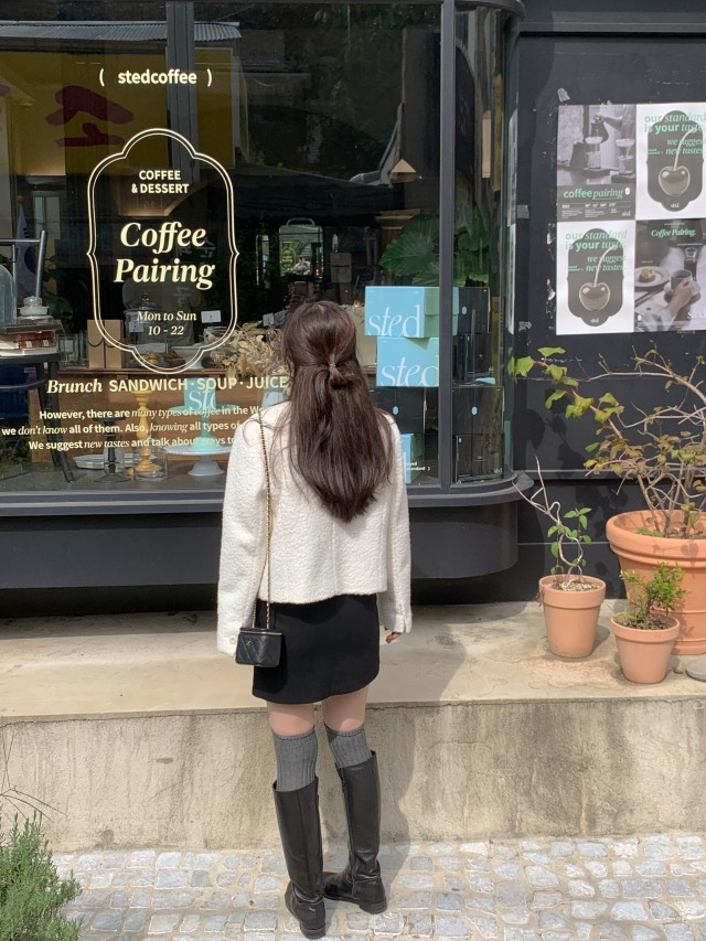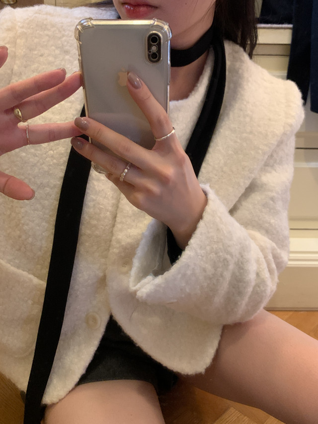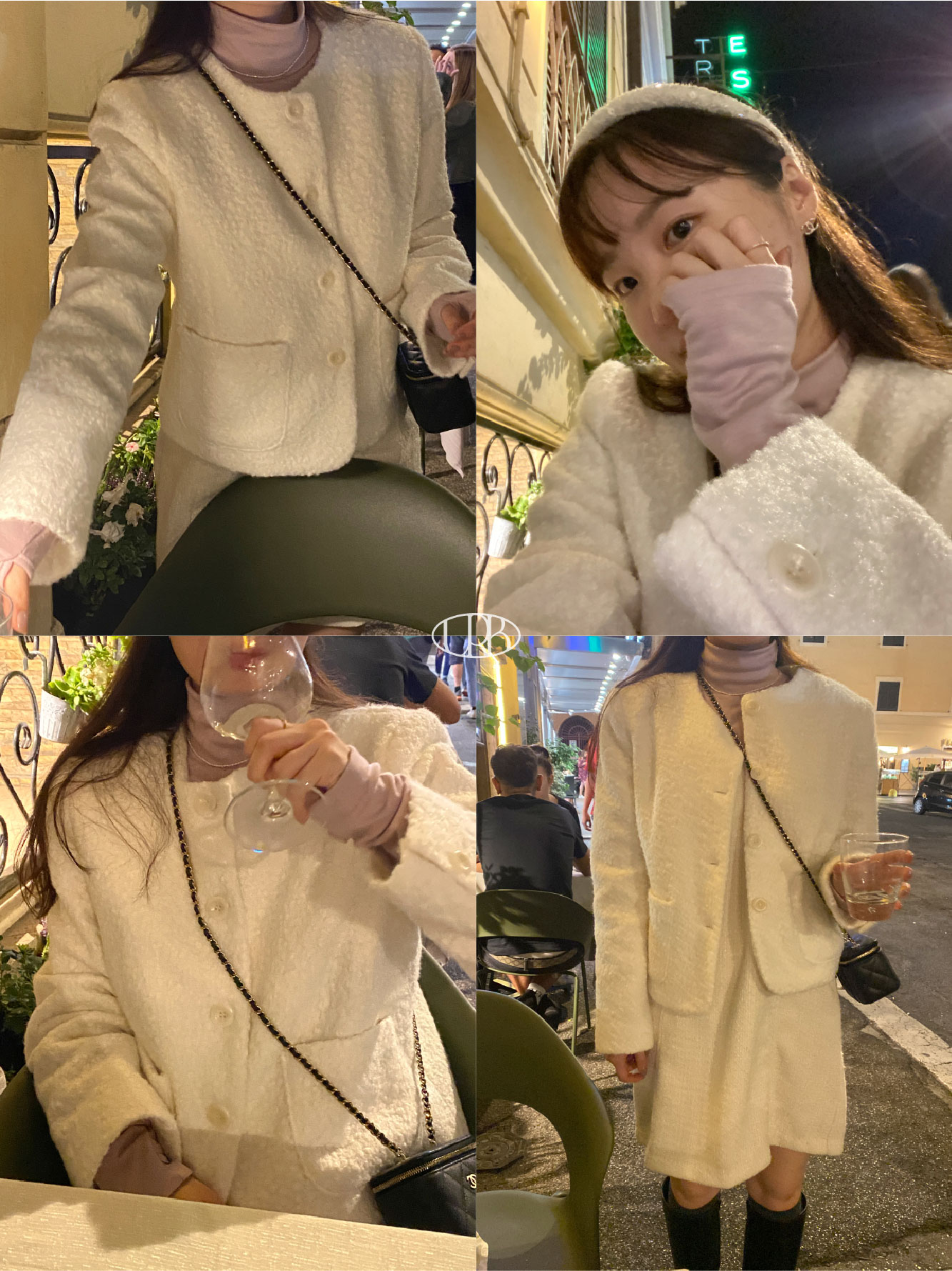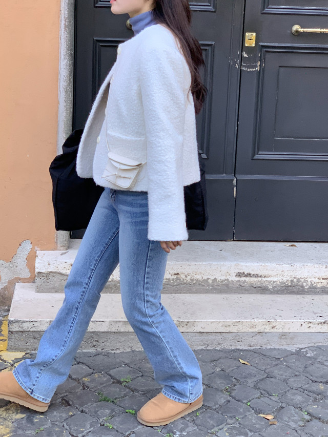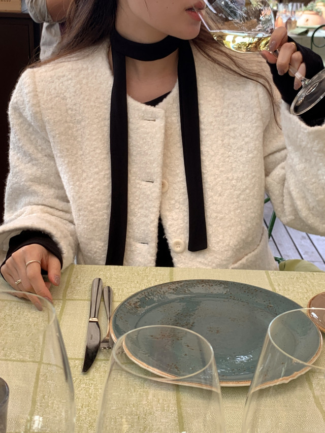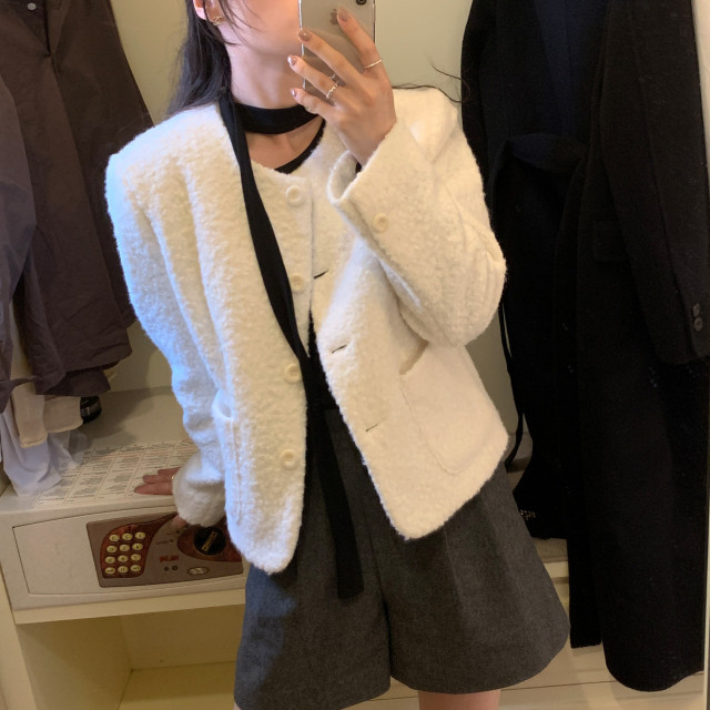 [original]クロップドショートノーカラーツイードブークレジャケット