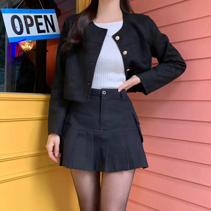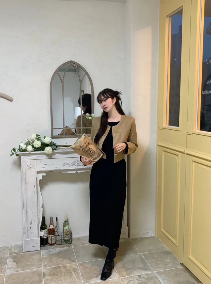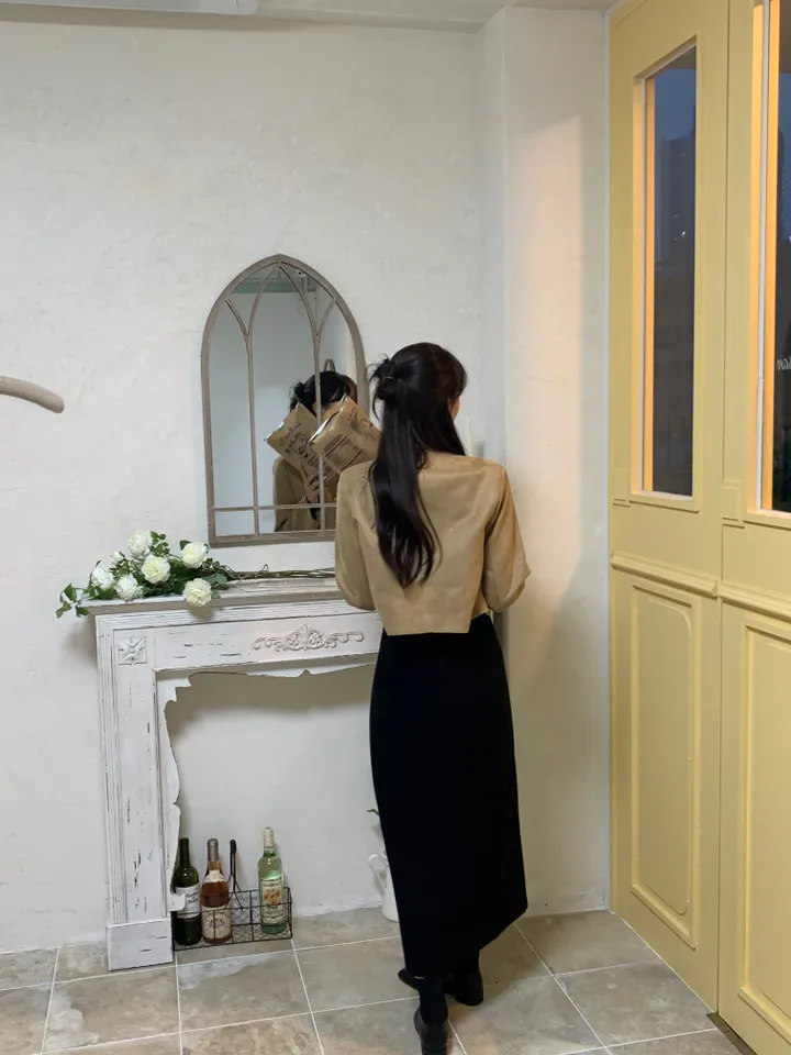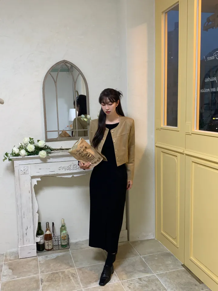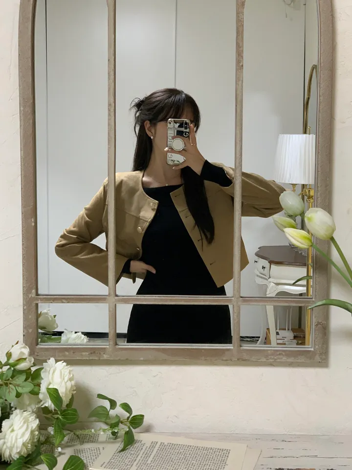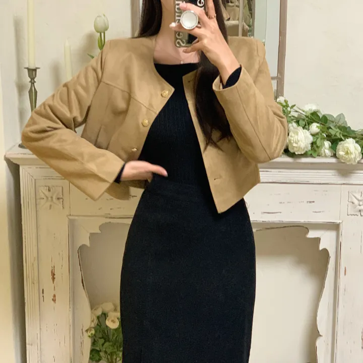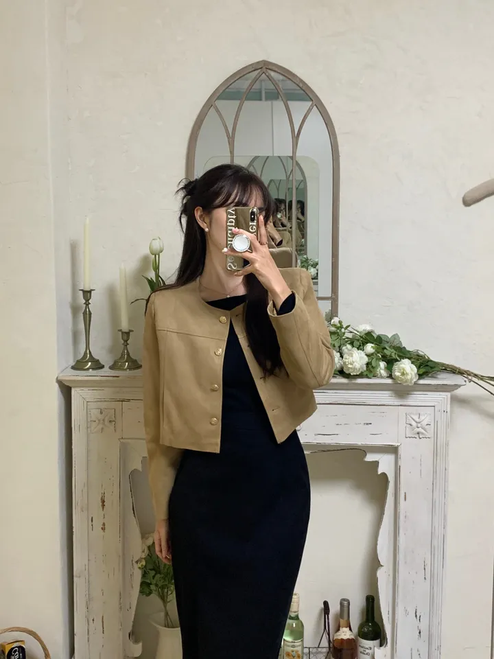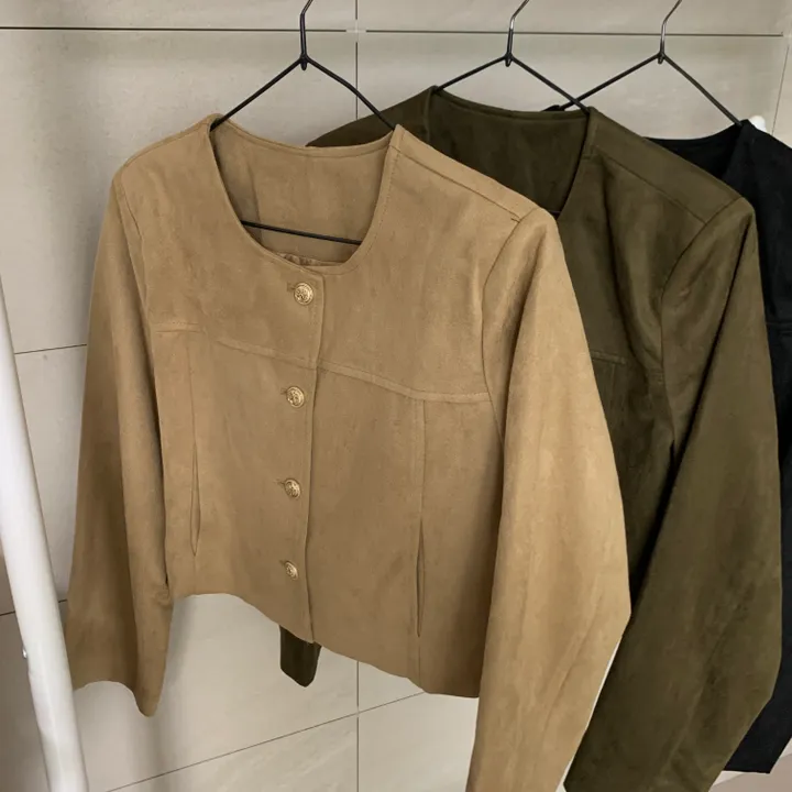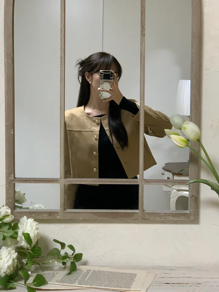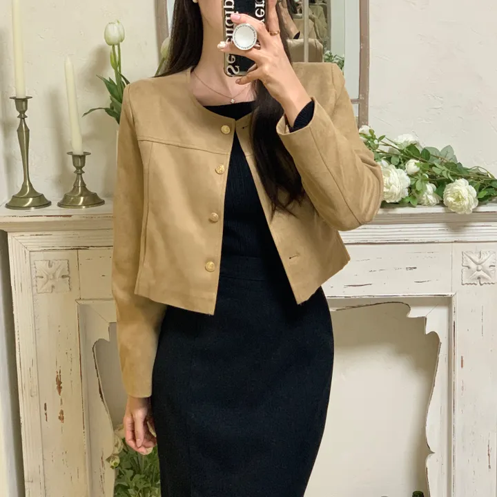 スエードノーカラーシングルジャケット