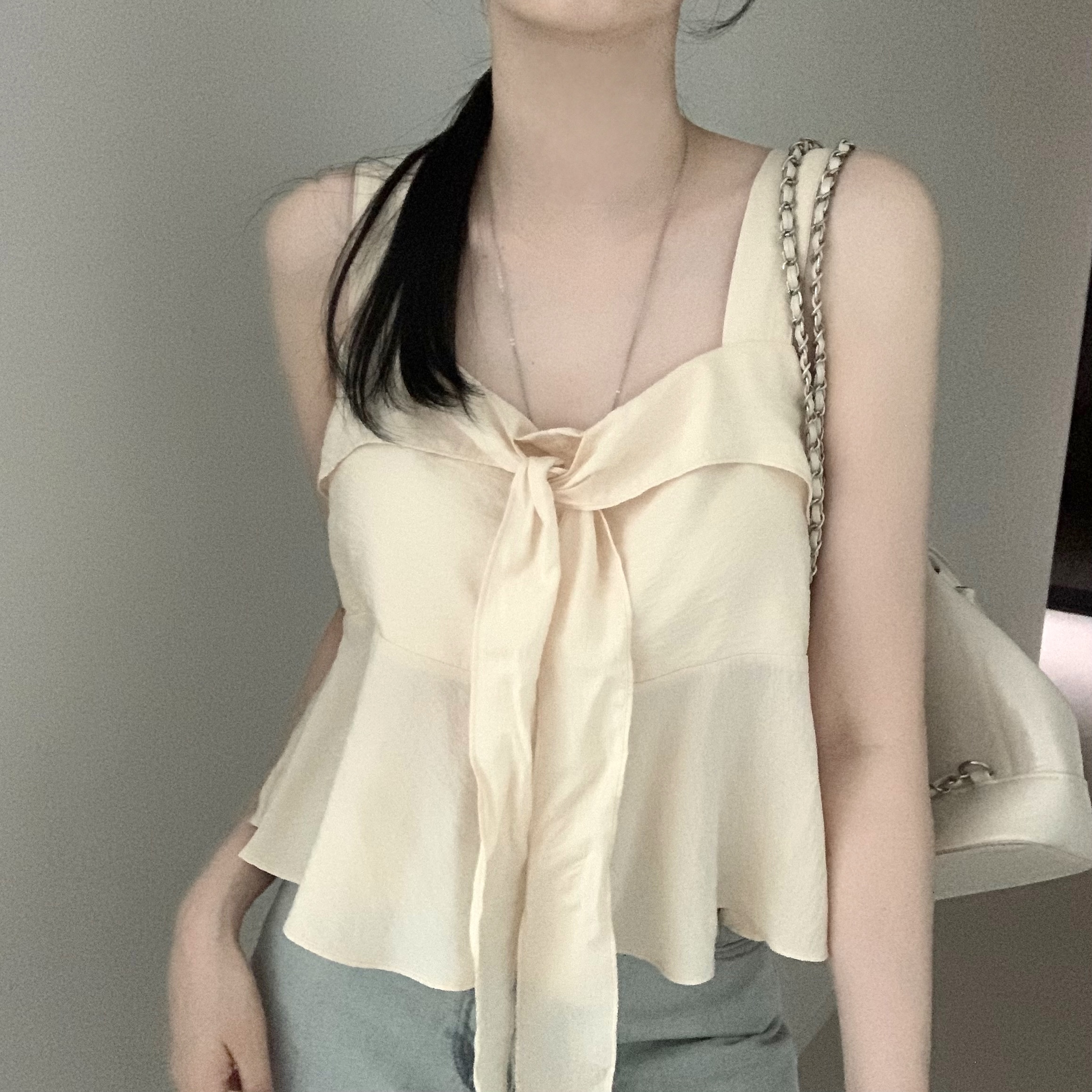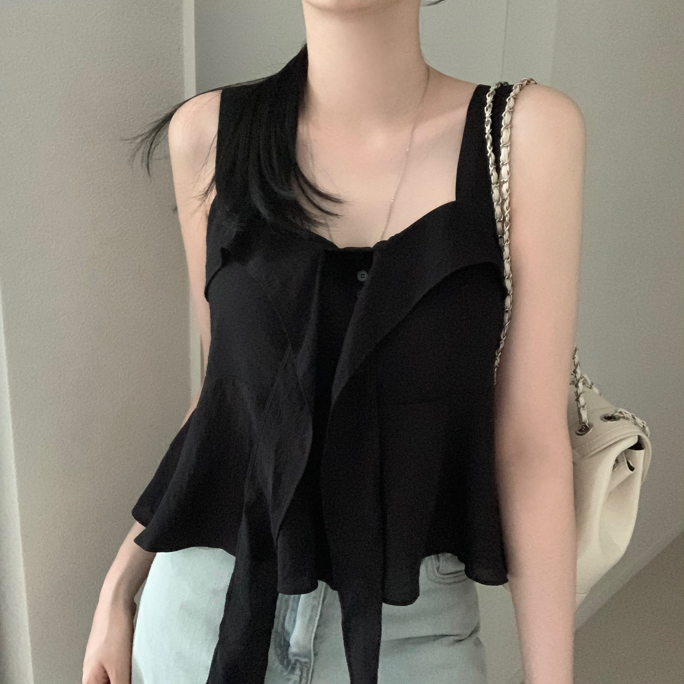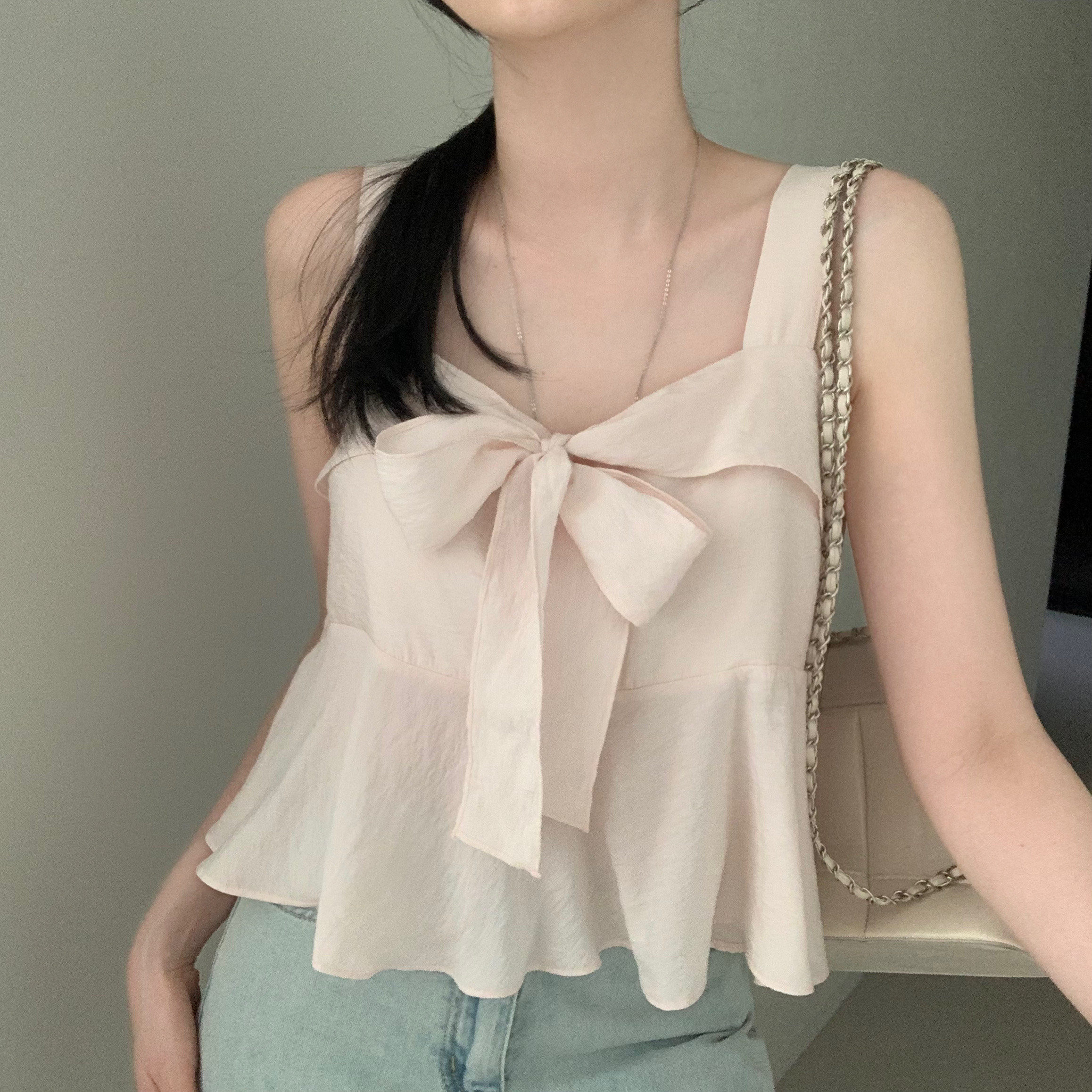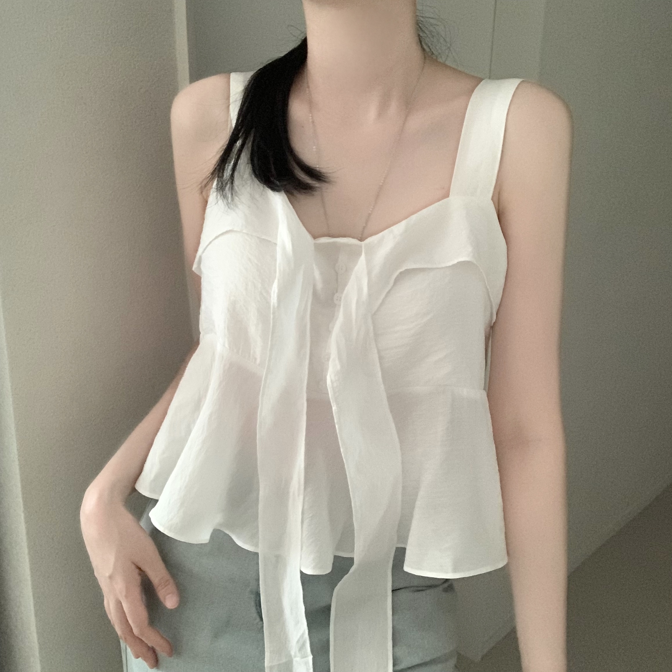 [2WAY]リボンフレアノースリーブブラウス