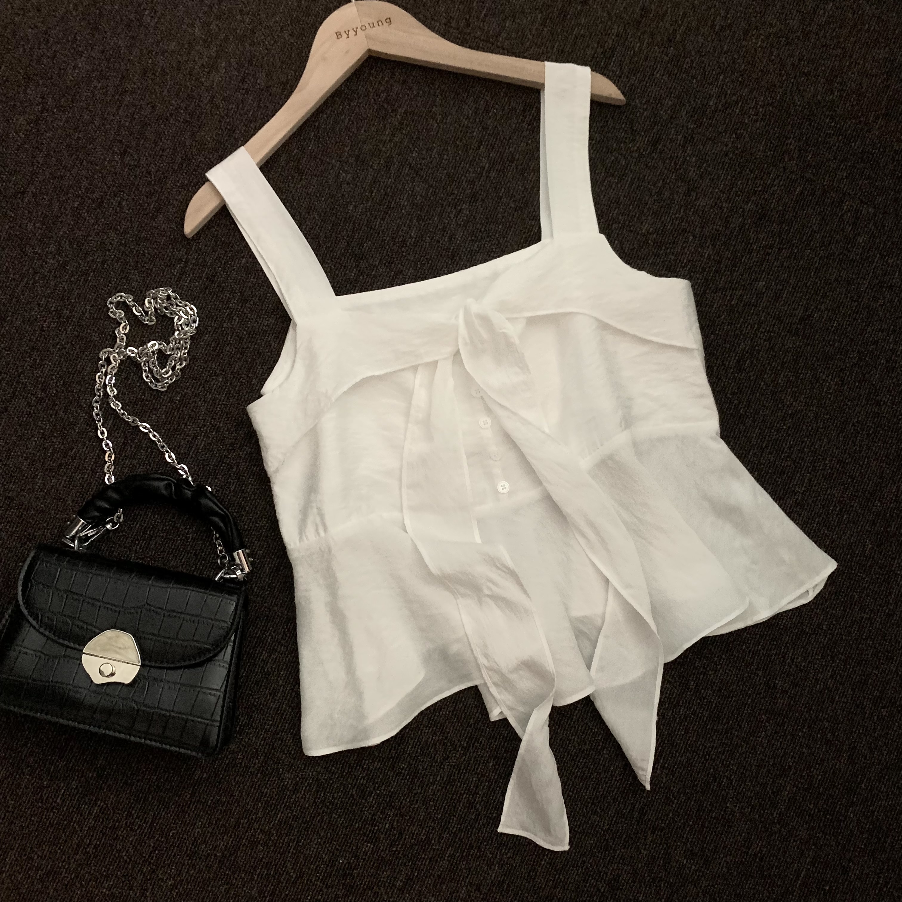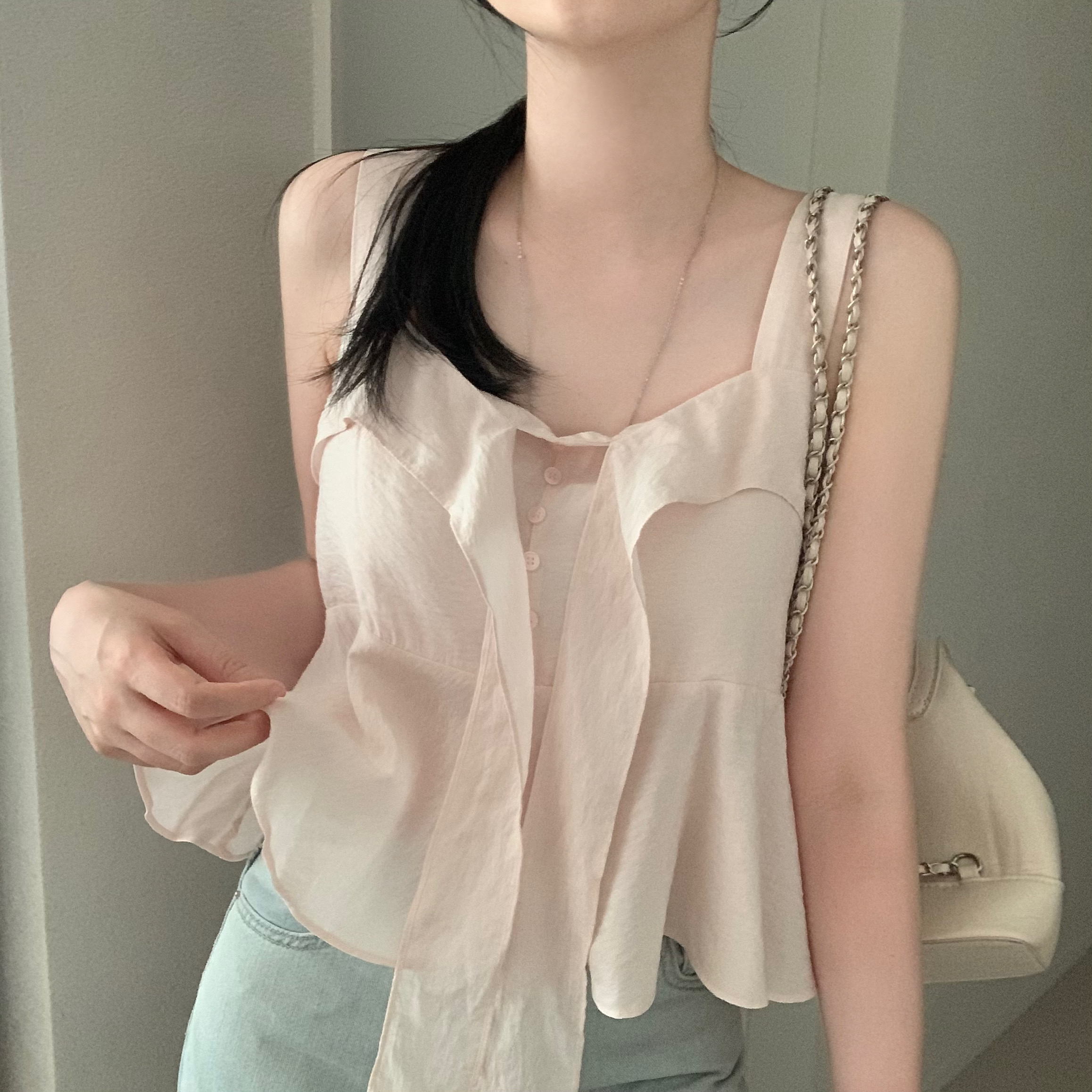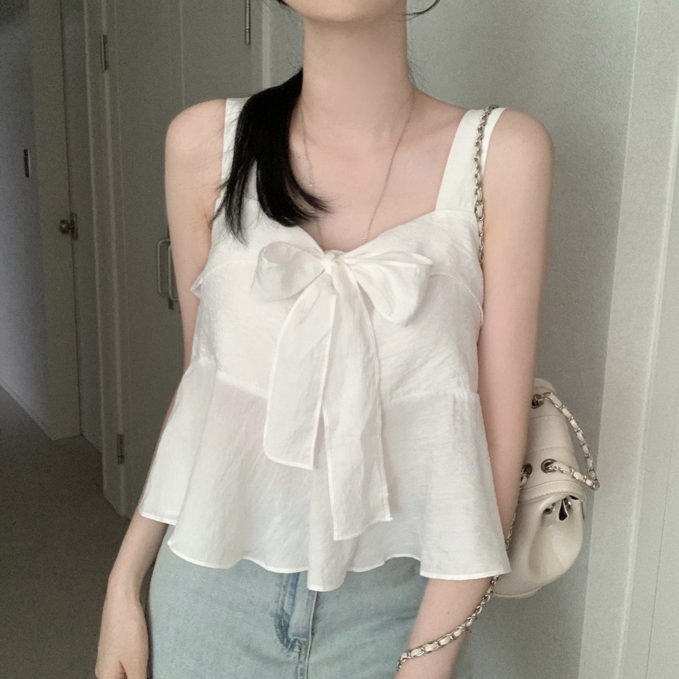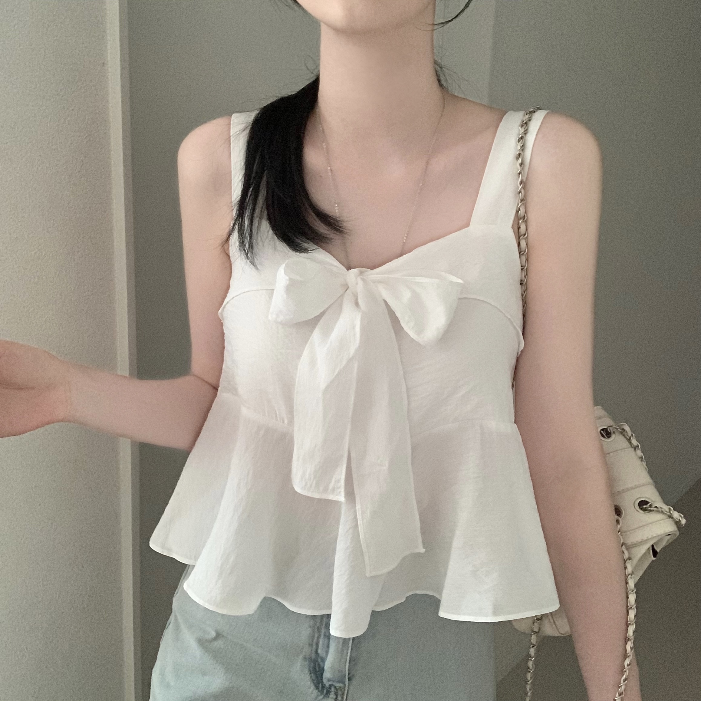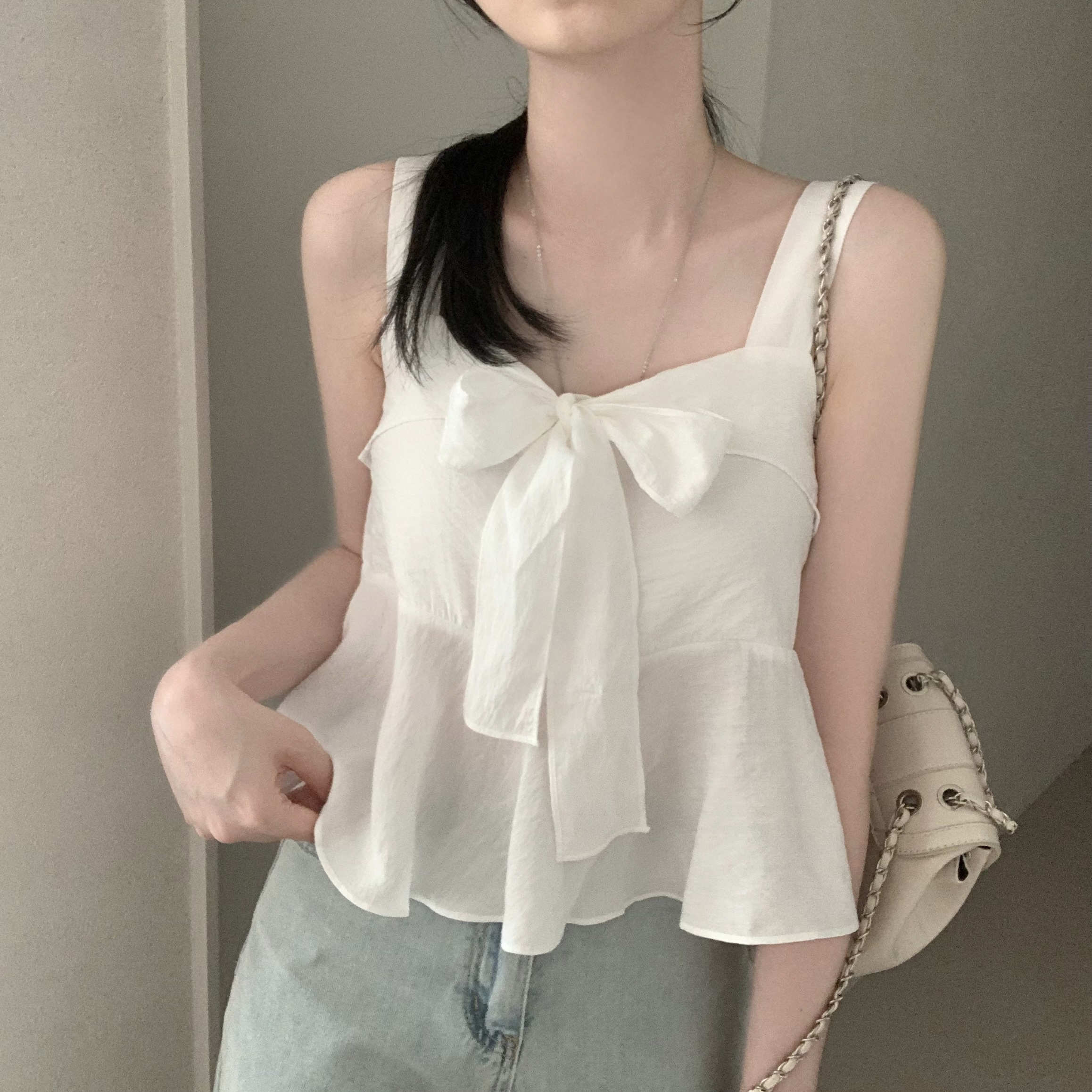 [2WAY]リボンフレアノースリーブブラウス