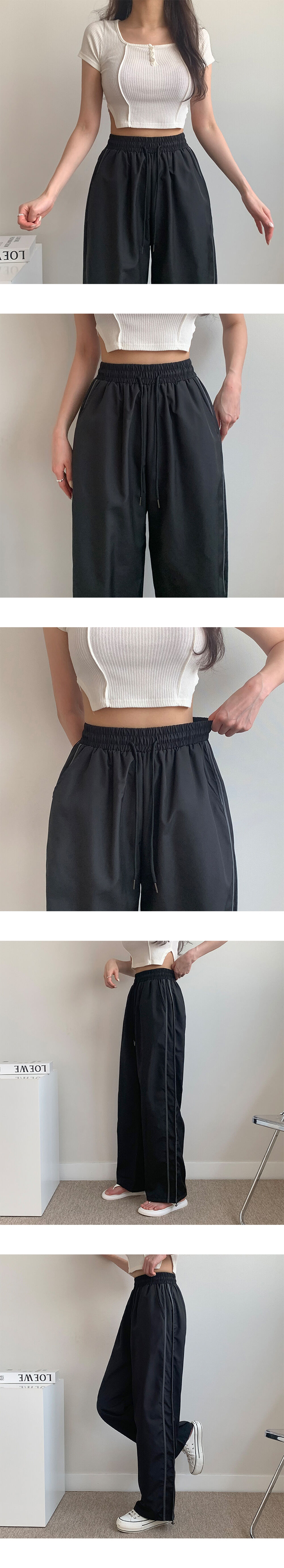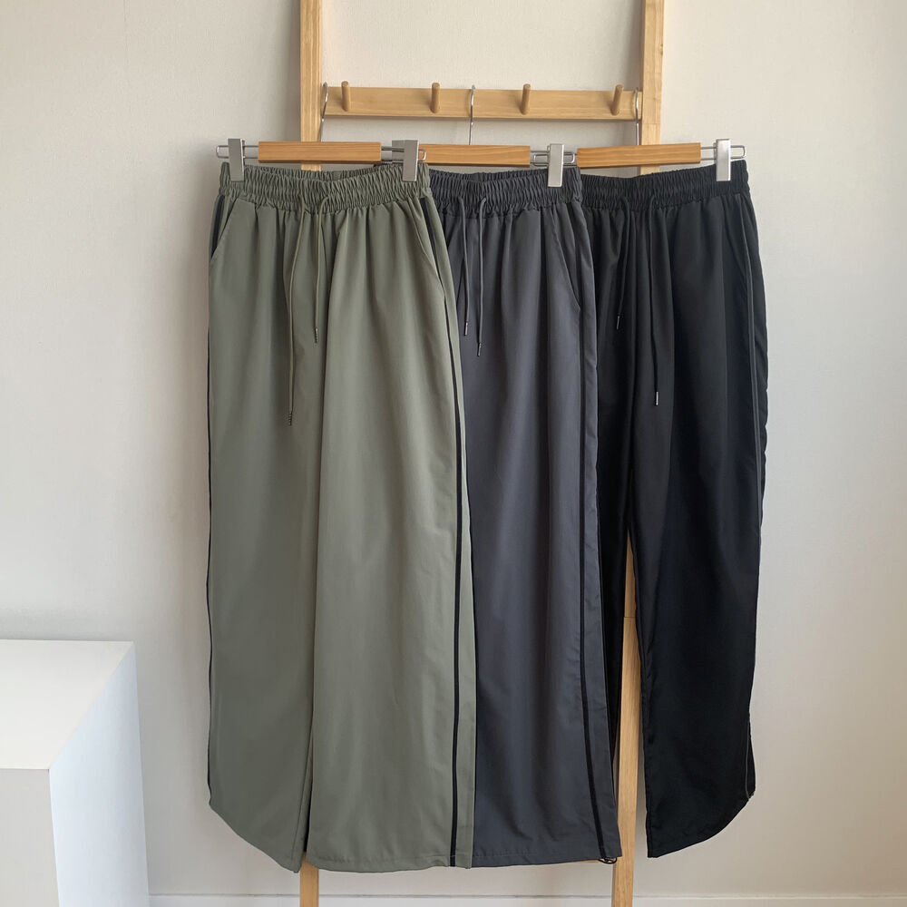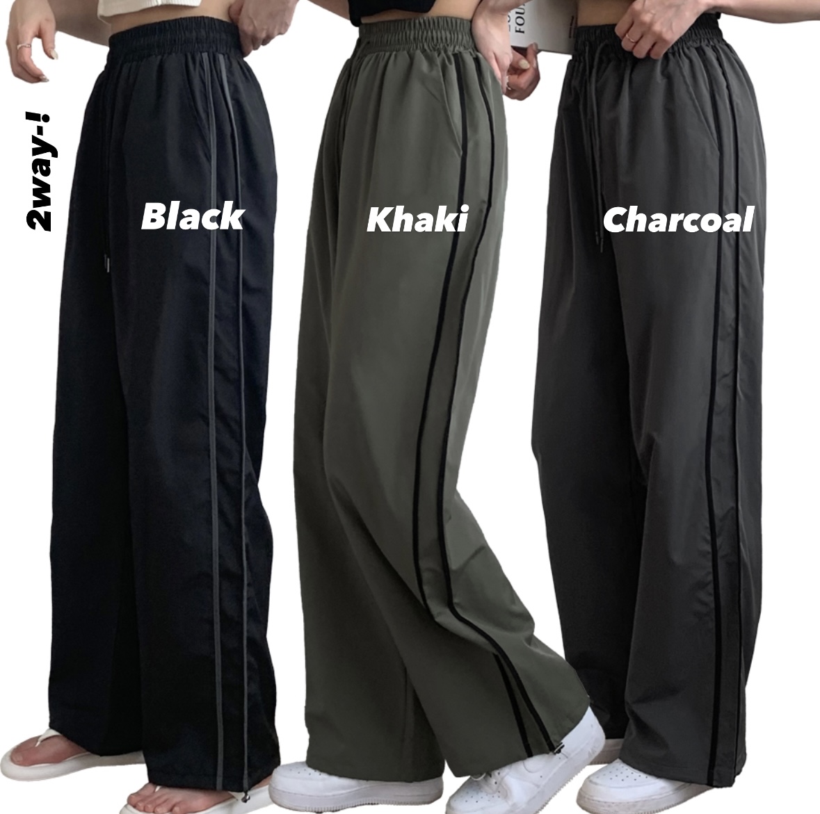 [ユニセックス] バイカラースポーティー防水ロングワイドパンツ