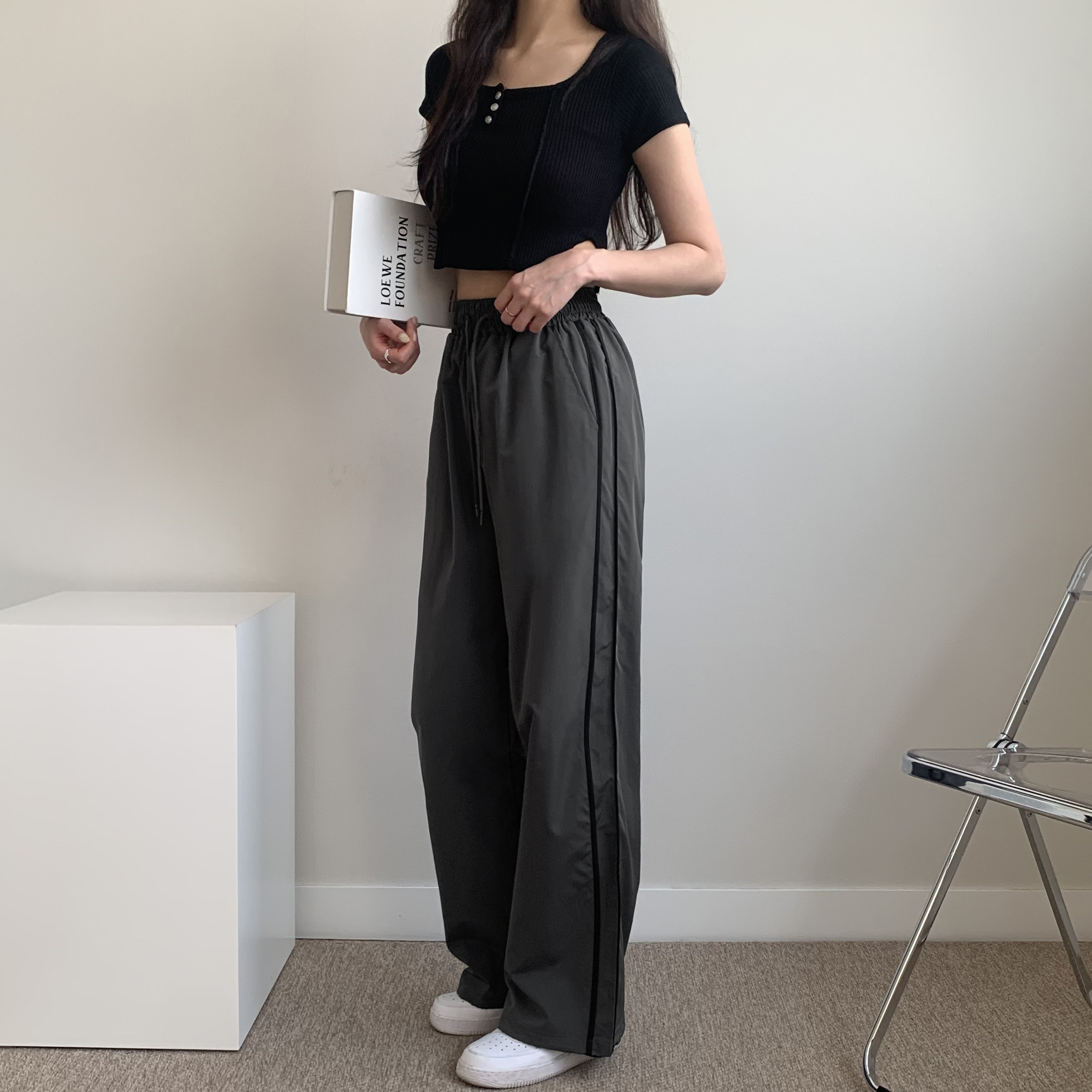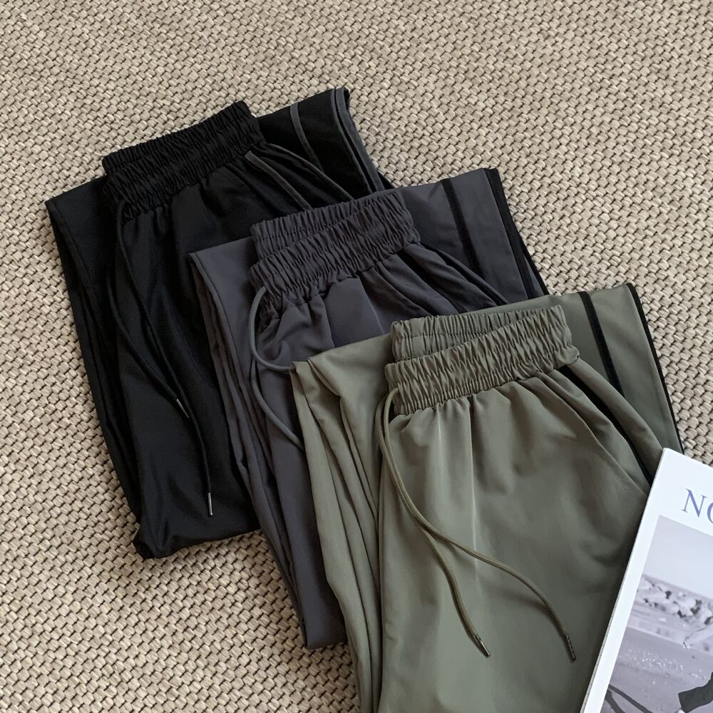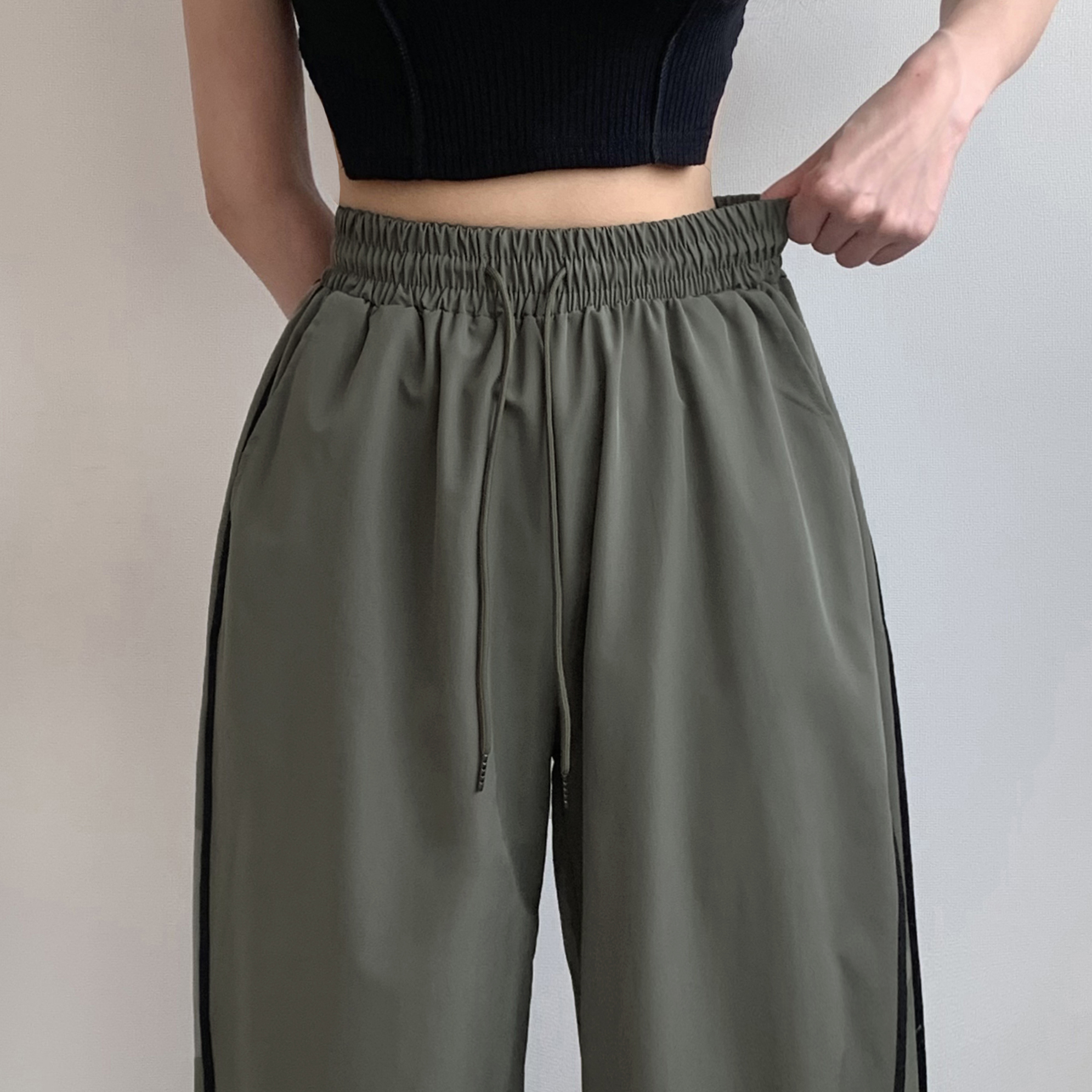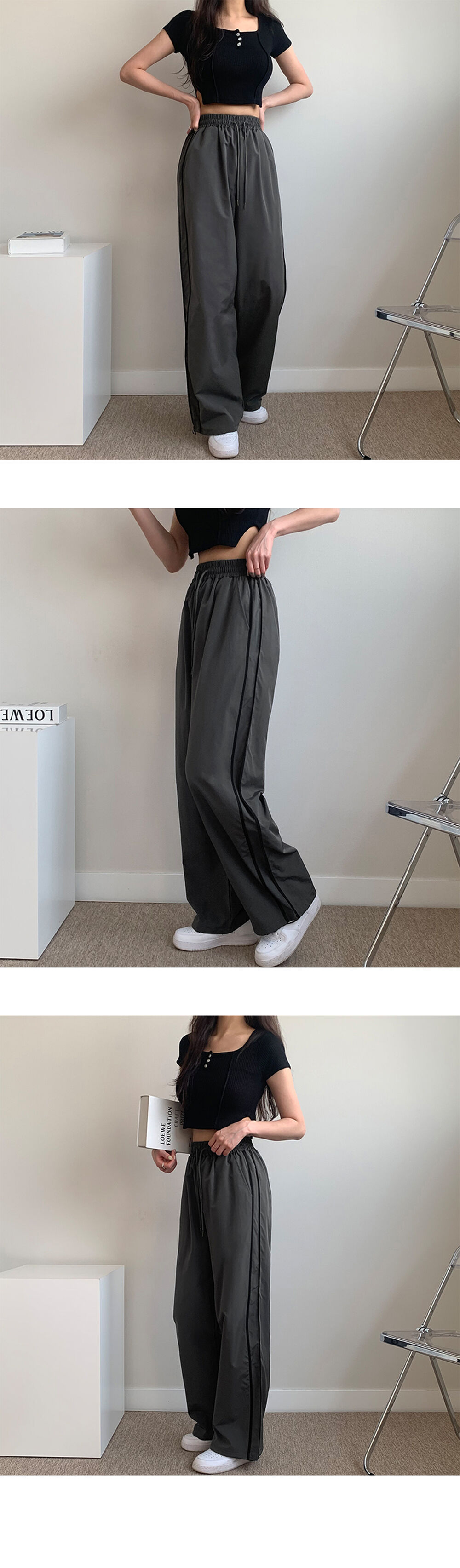 [ユニセックス] バイカラースポーティー防水ロングワイドパンツ