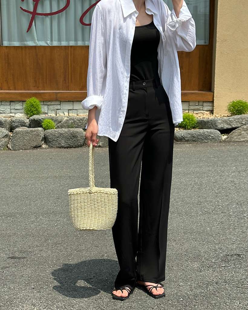 凹凸感のあるボトムスと合わせてもおしゃれにまとまる