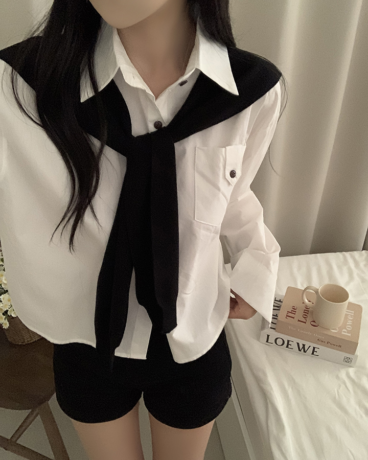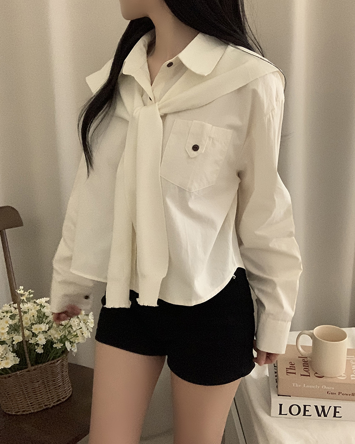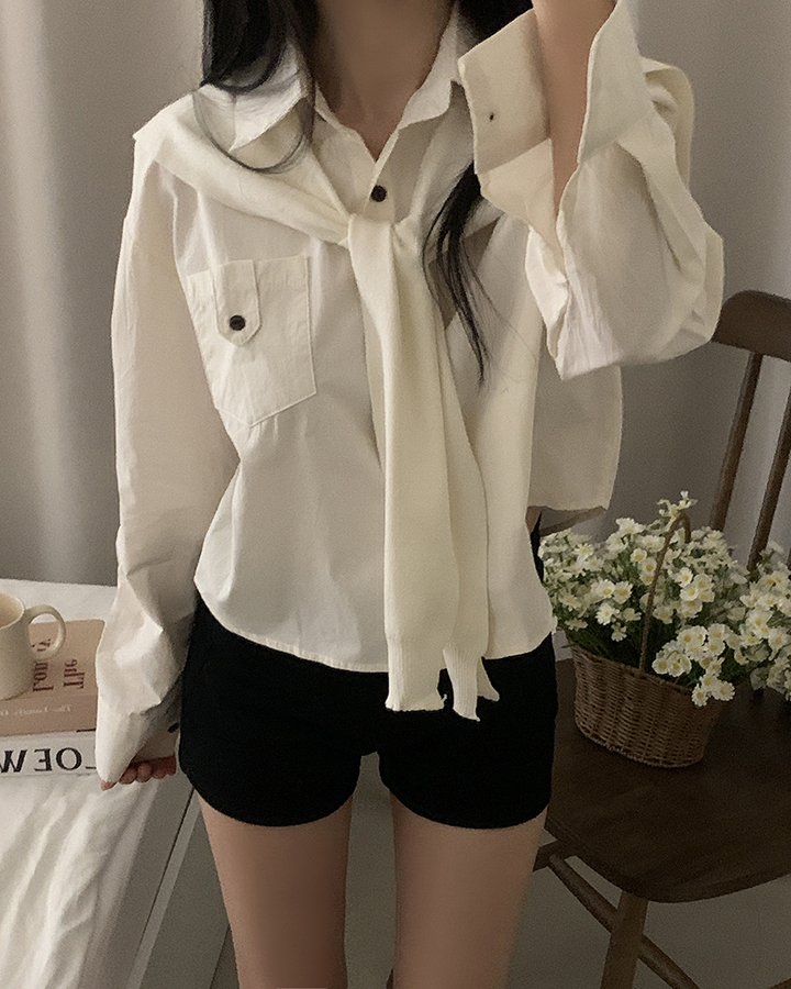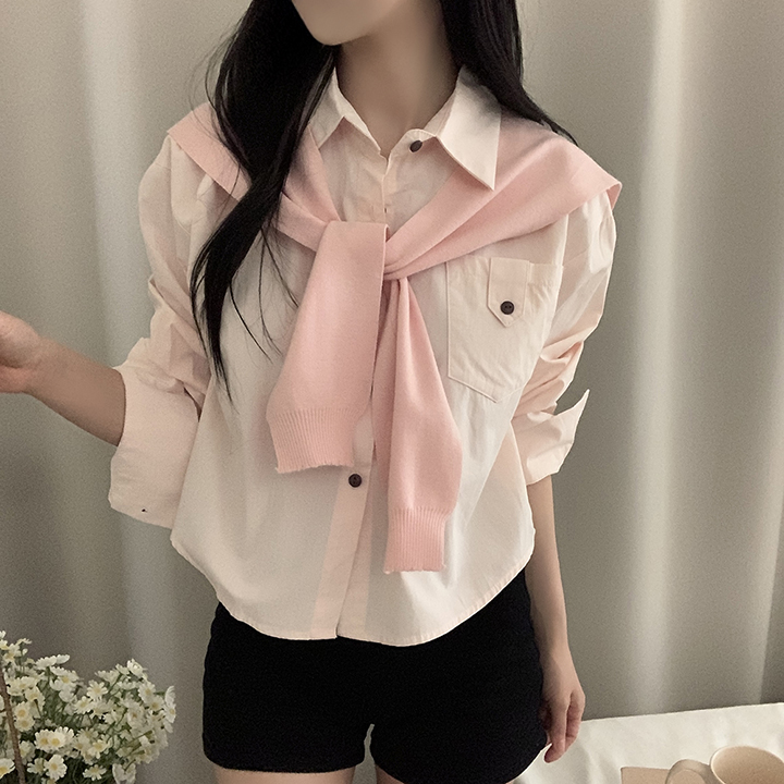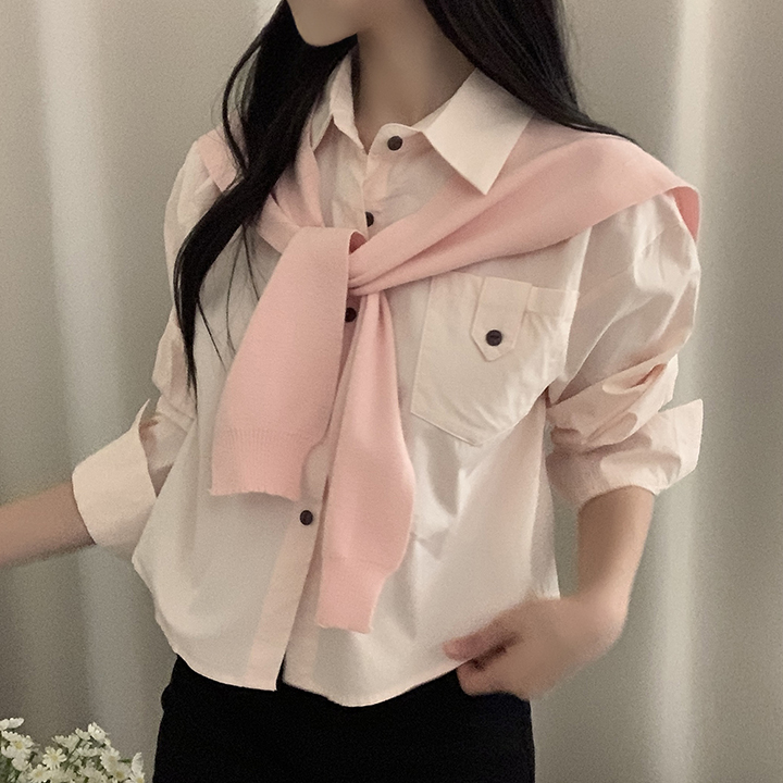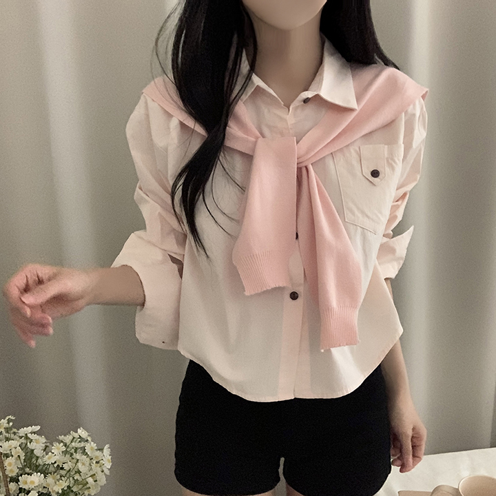 (set)(4color)ショールニットシャツセット