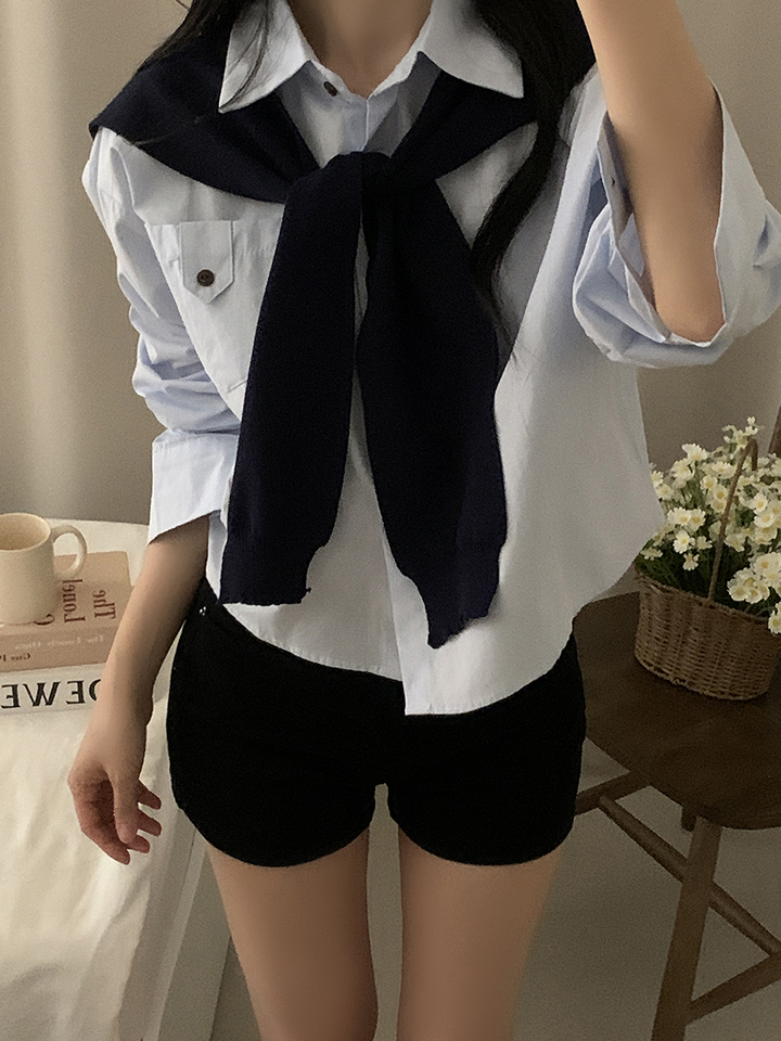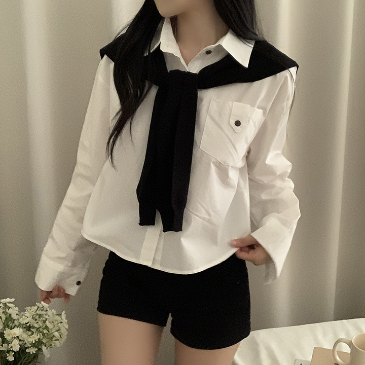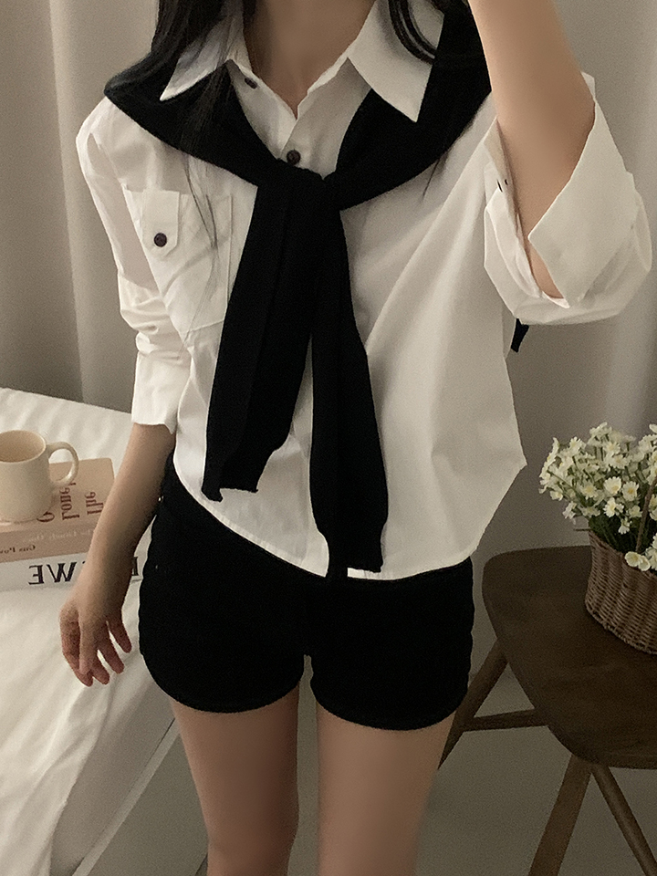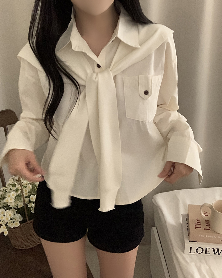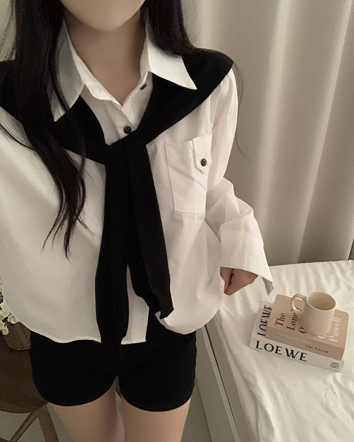 (set)(4color)ショールニットシャツセット