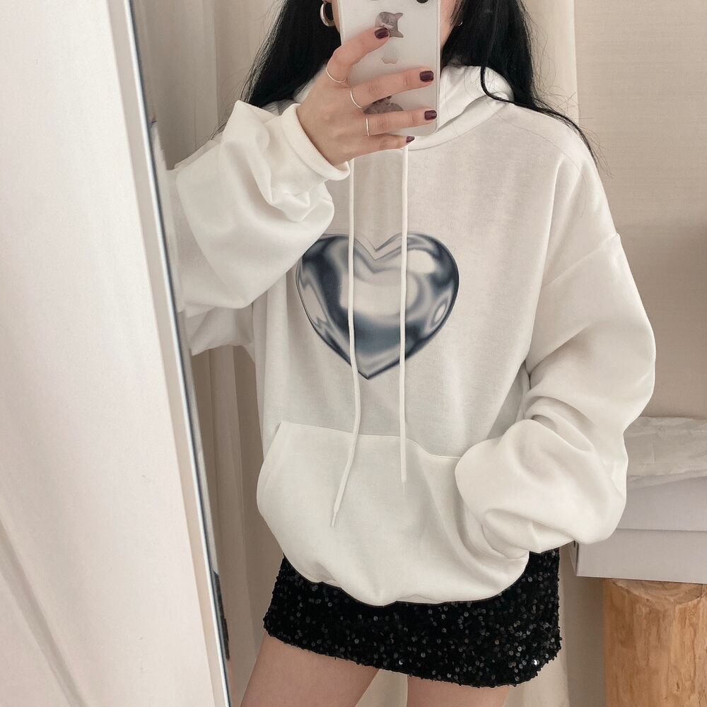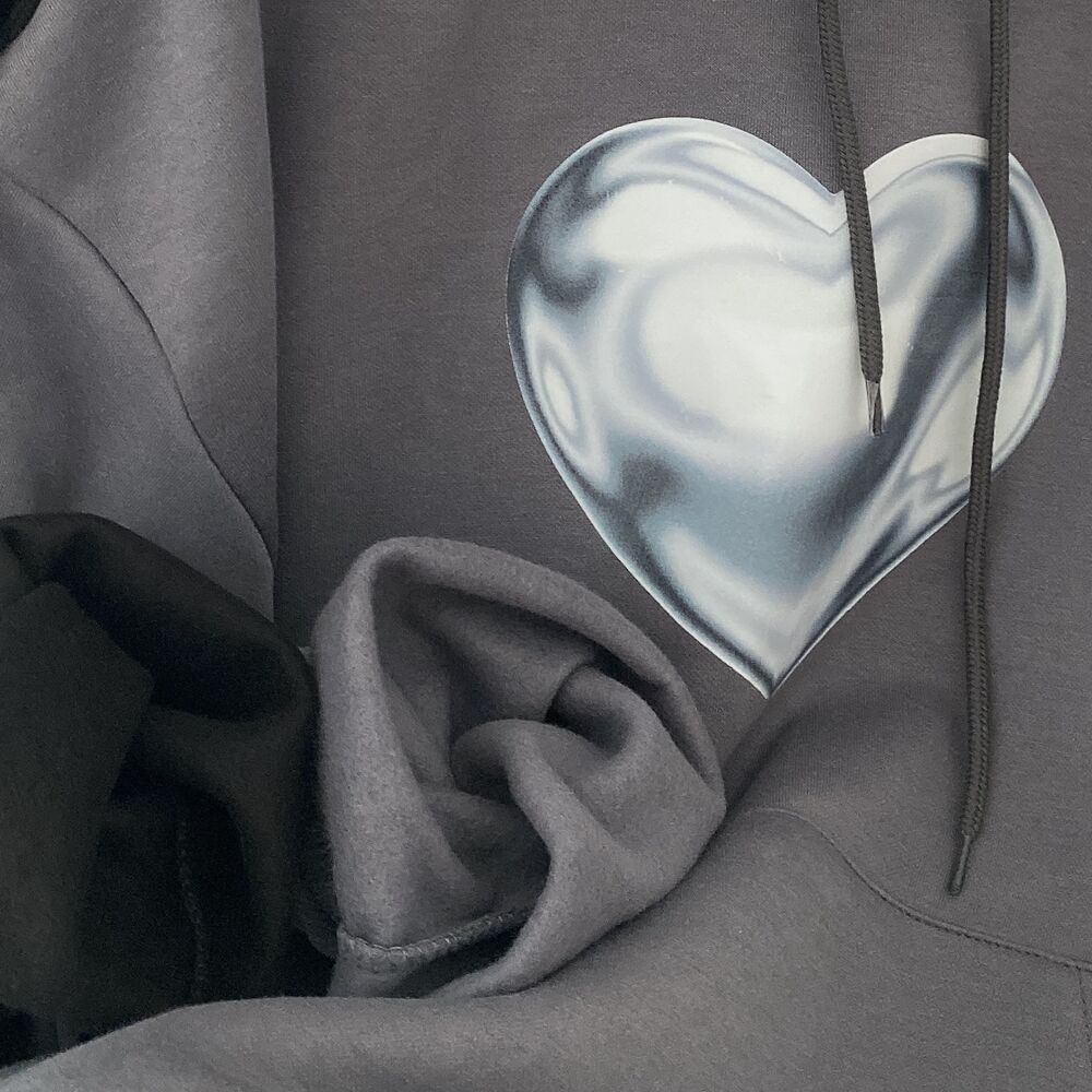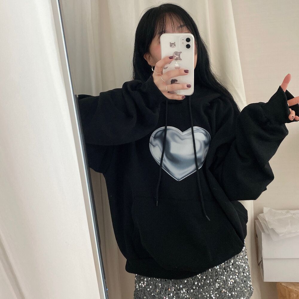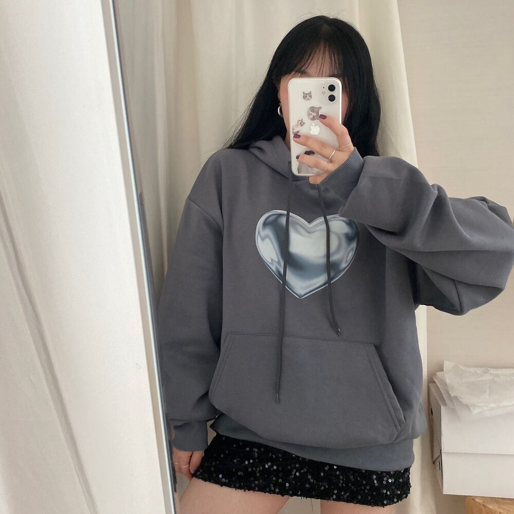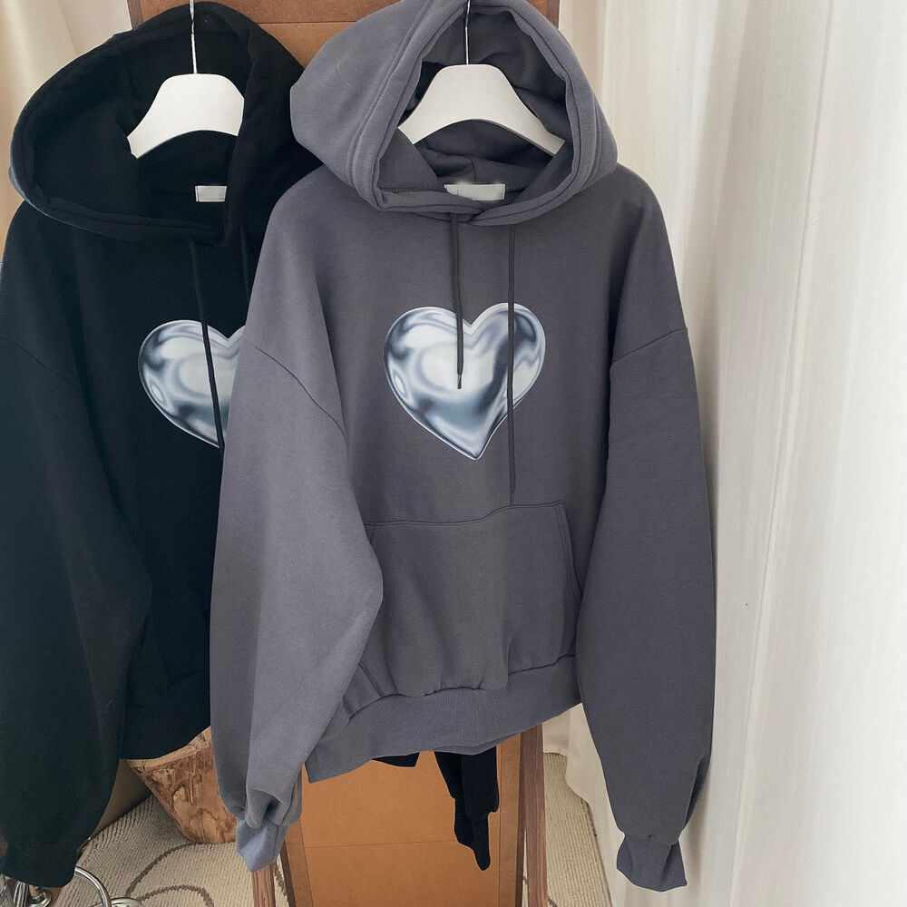 [裏地起毛] ハートグラフィックオーバーサイズポケットパーカー