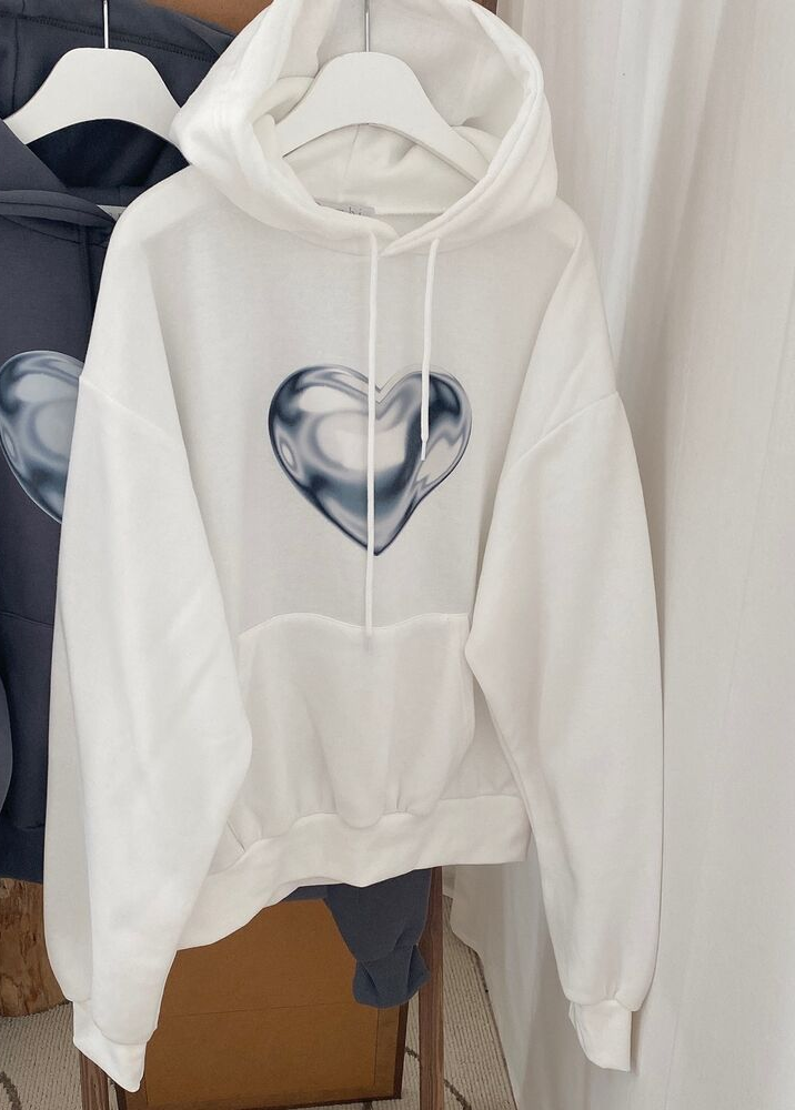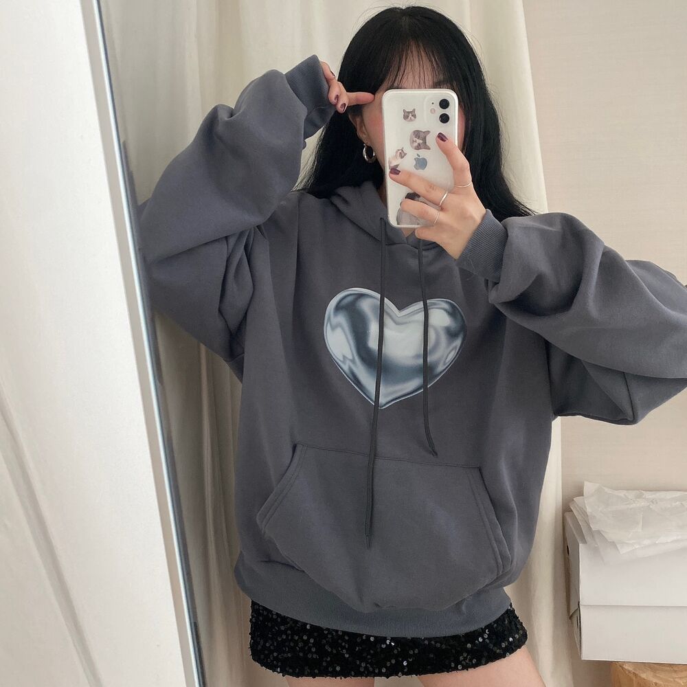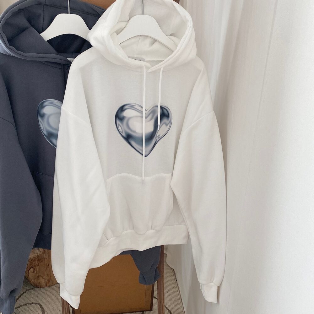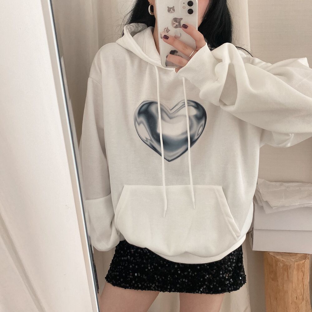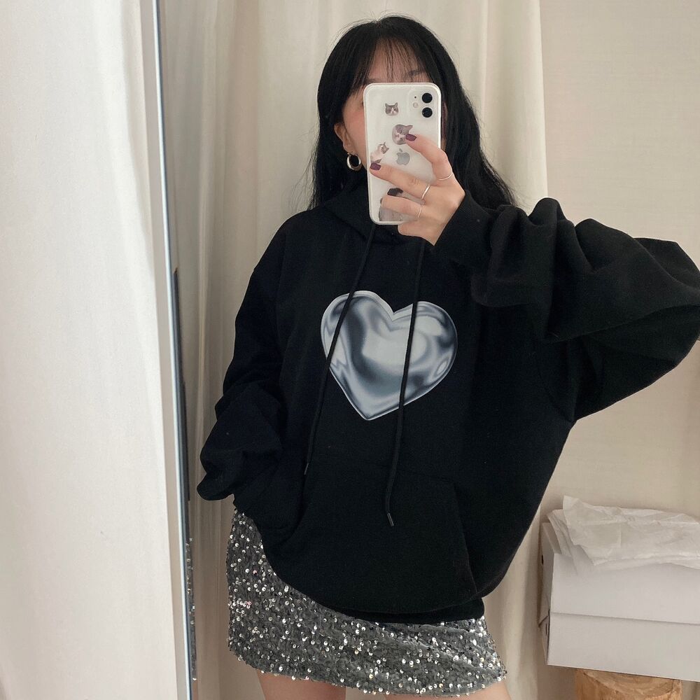 [裏地起毛] ハートグラフィックオーバーサイズポケットパーカー