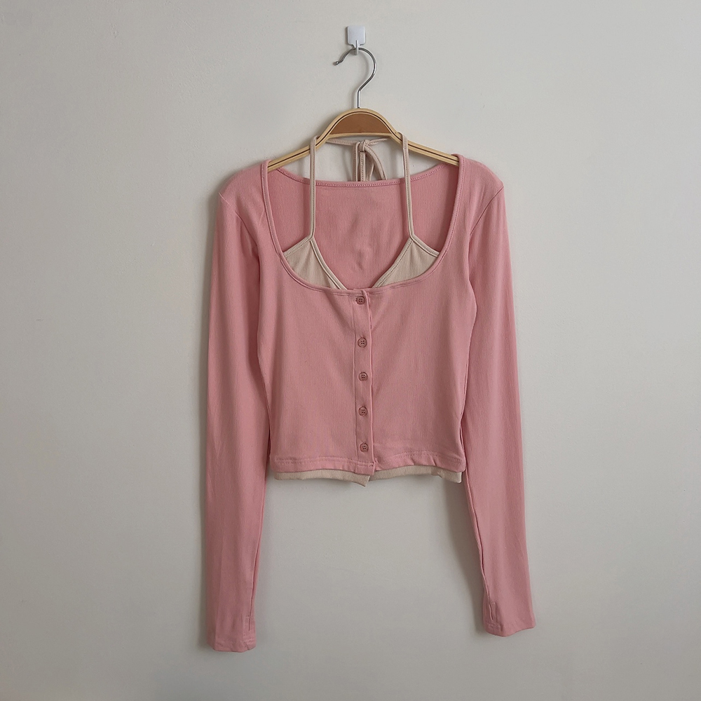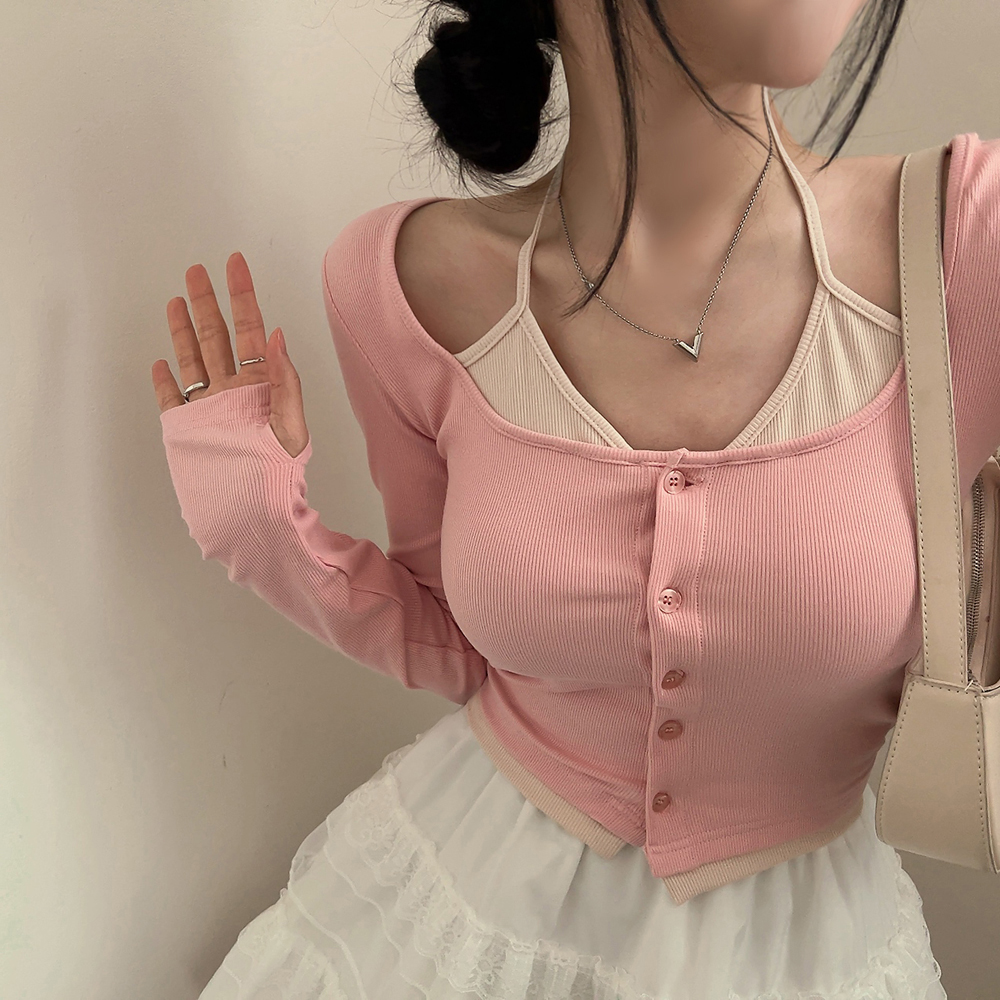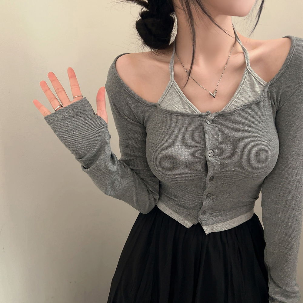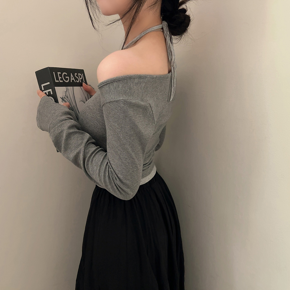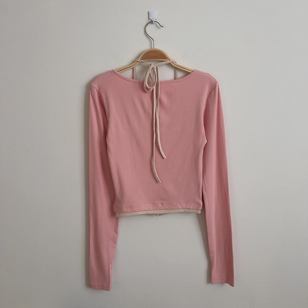 ウォーマーホルターネックノースリーブレイヤードクロップドTシャツ