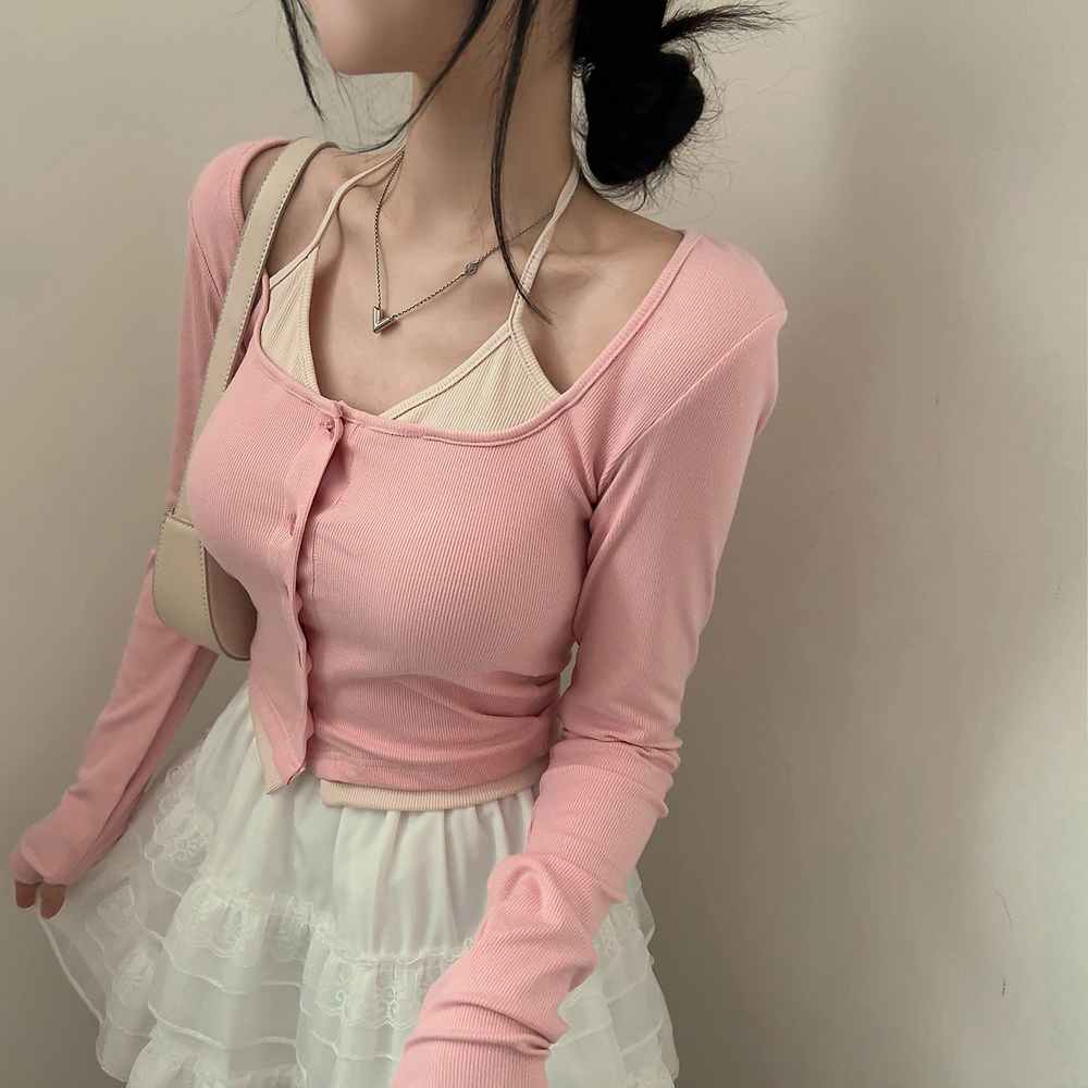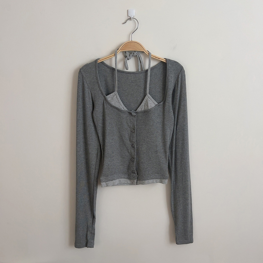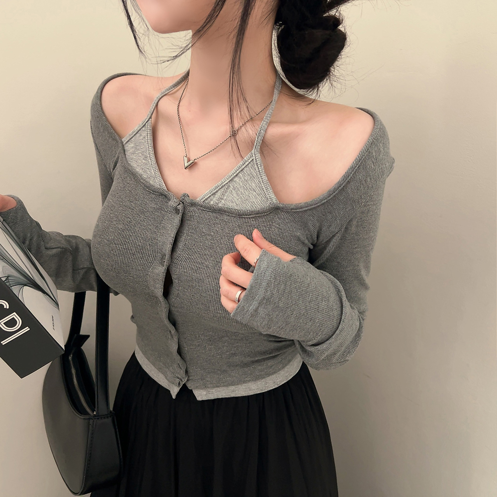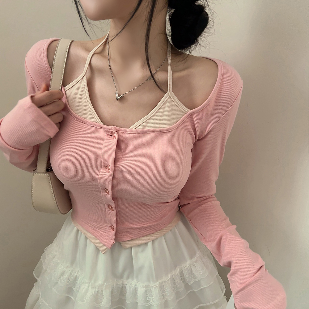 ウォーマーホルターネックノースリーブレイヤードクロップドTシャツ