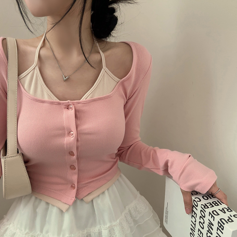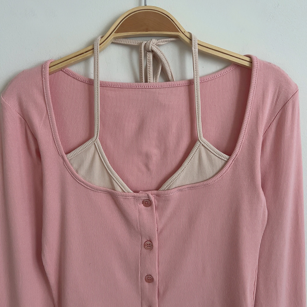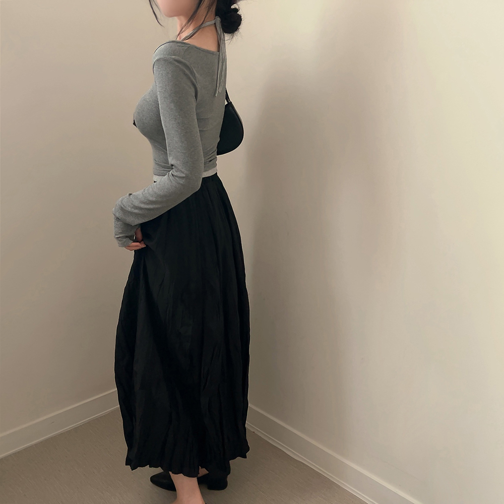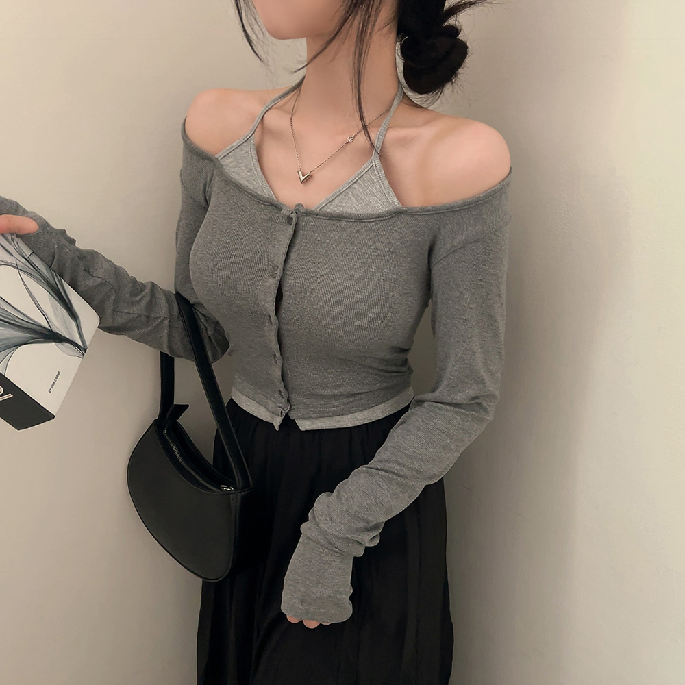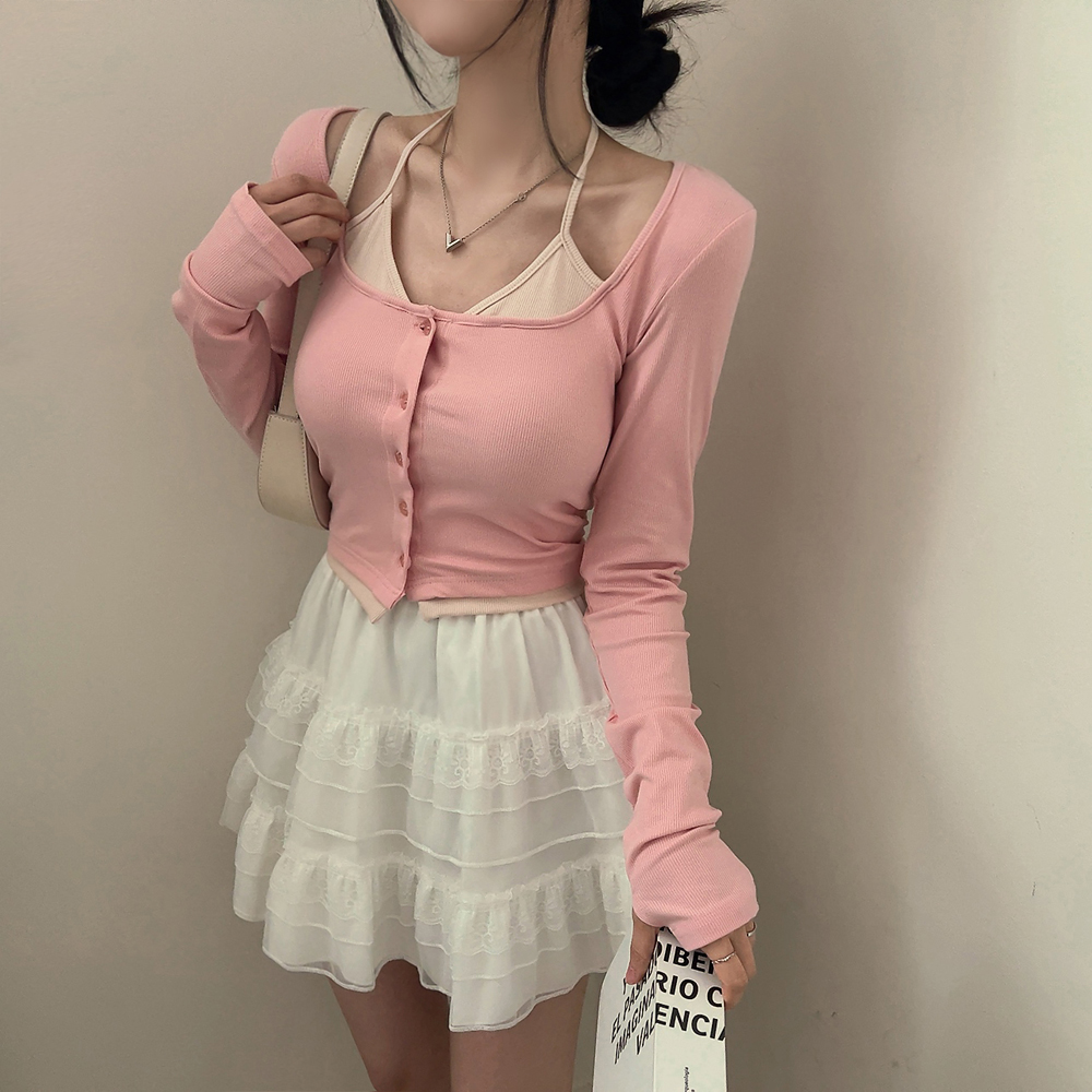 ウォーマーホルターネックノースリーブレイヤードクロップドTシャツ