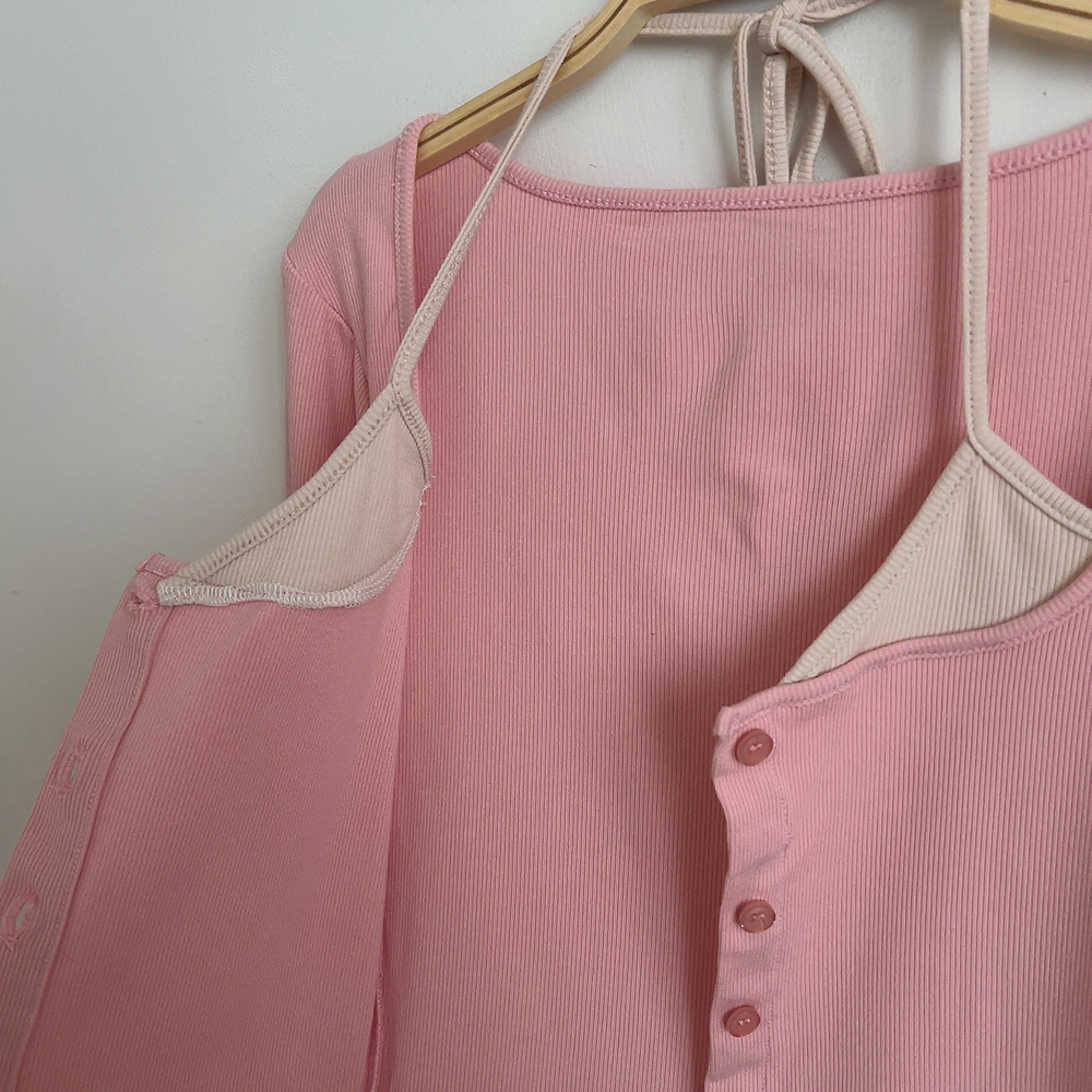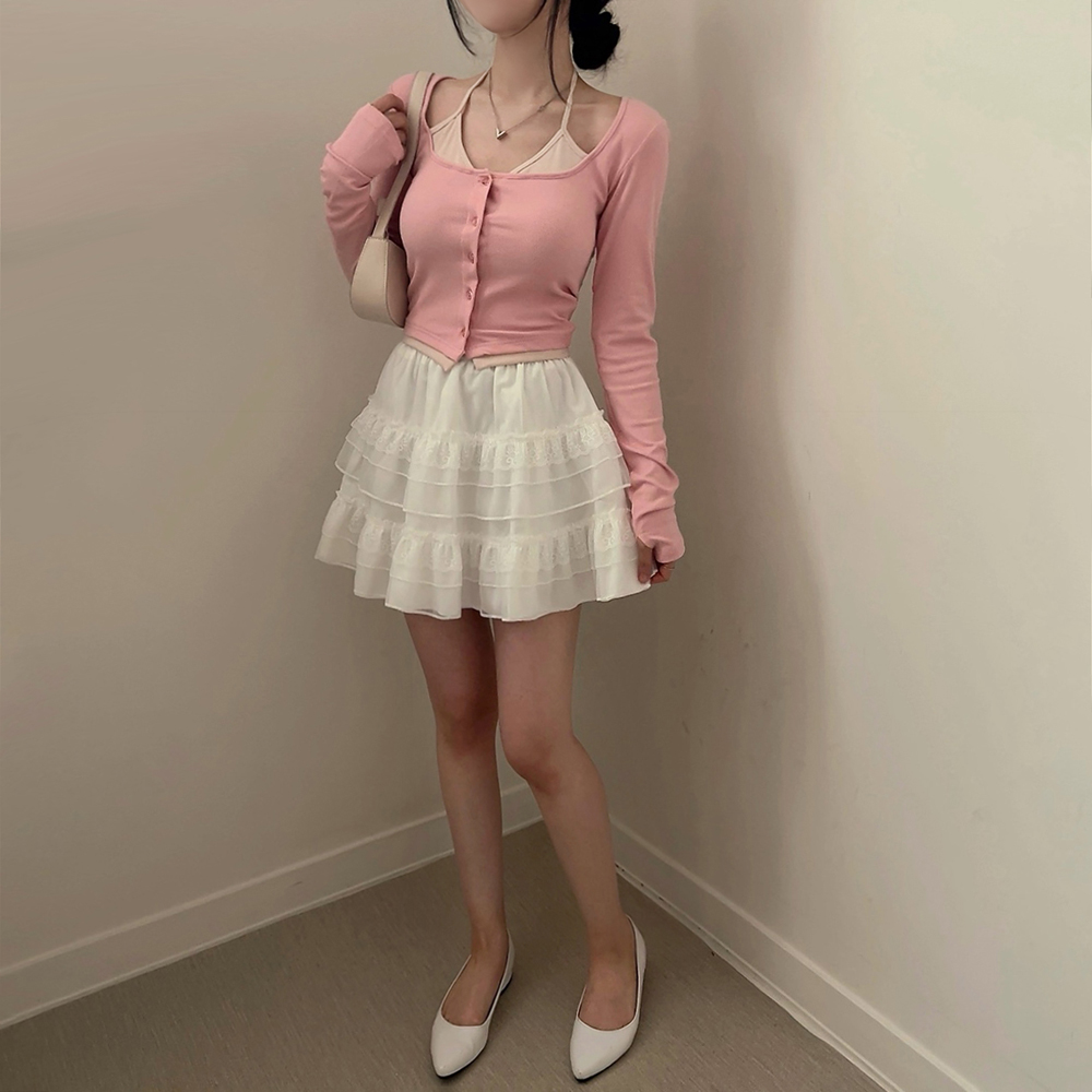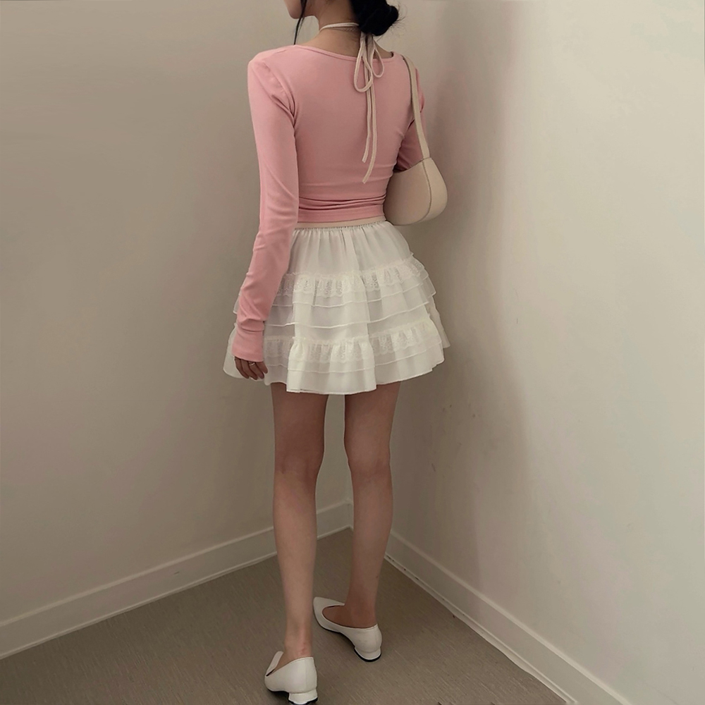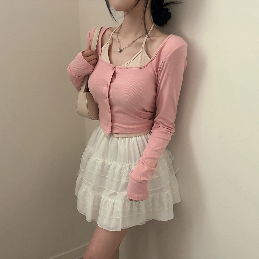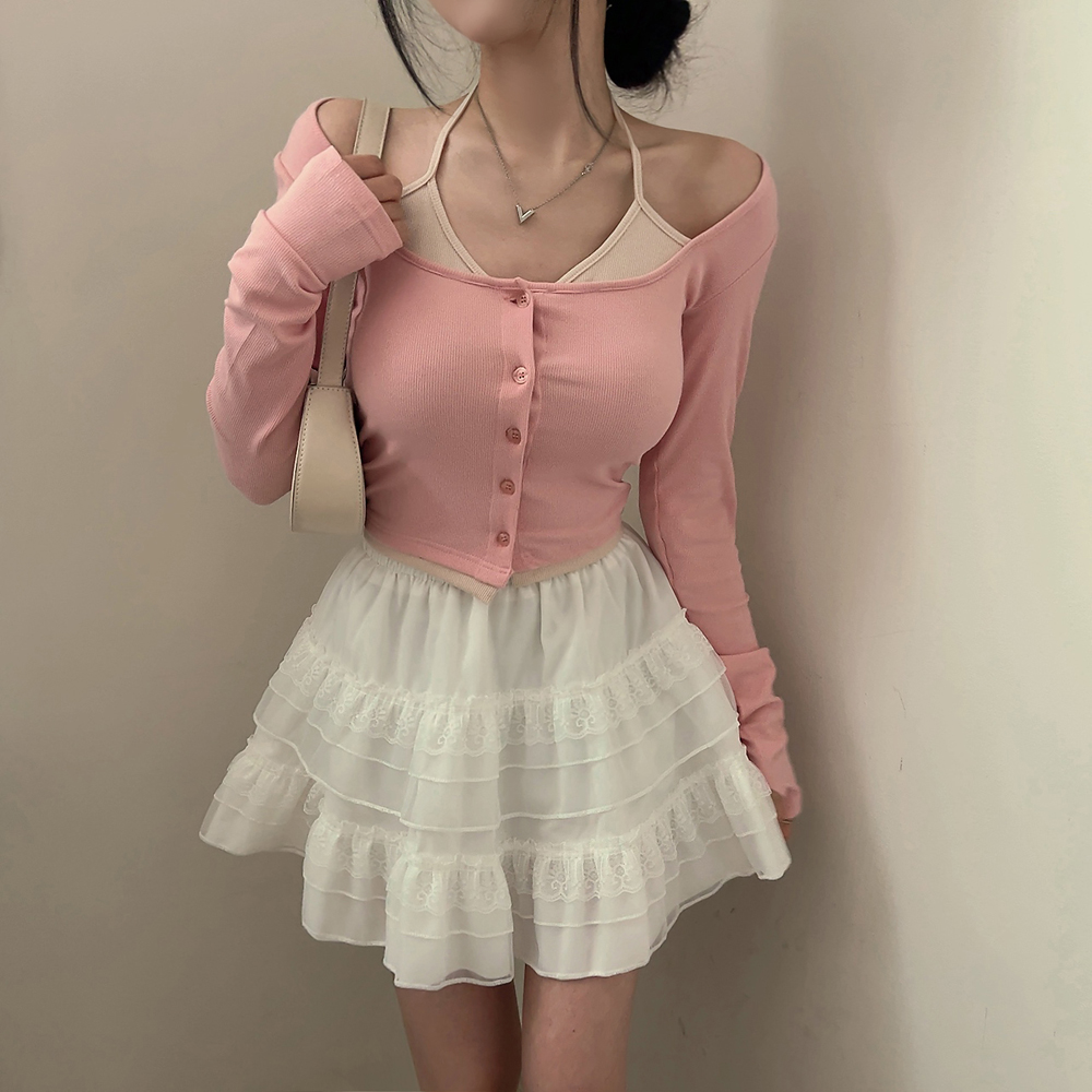 ウォーマーホルターネックノースリーブレイヤードクロップドTシャツ