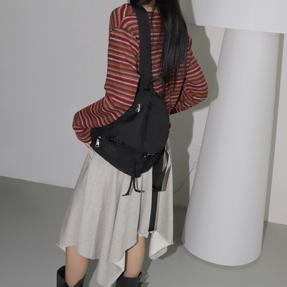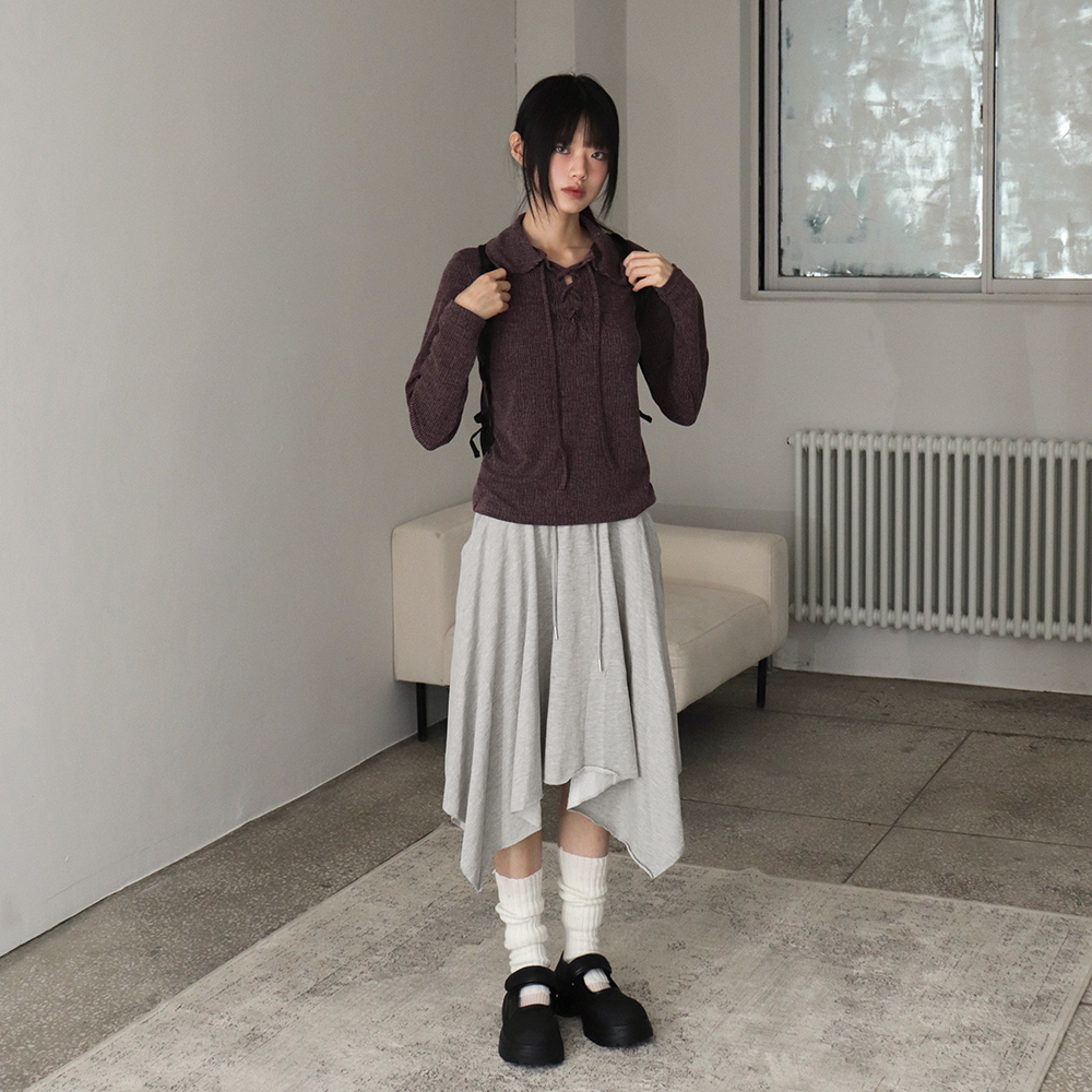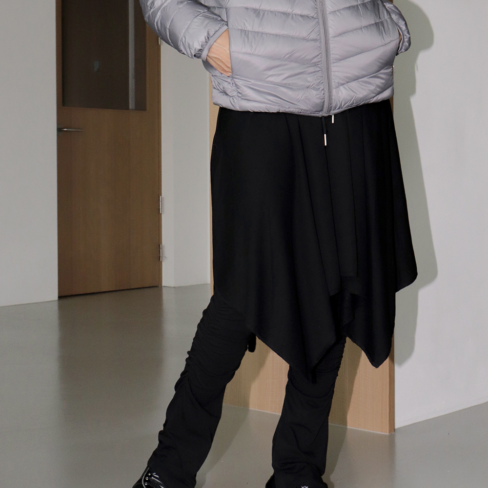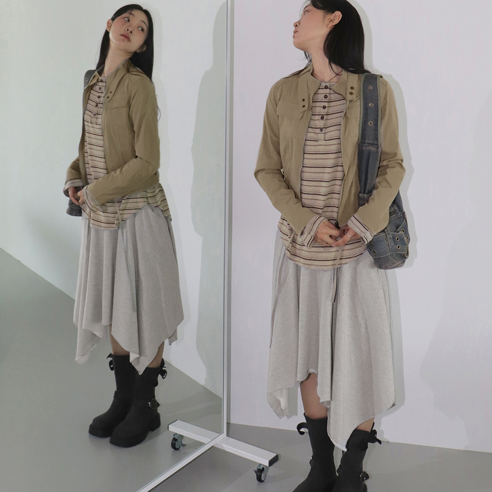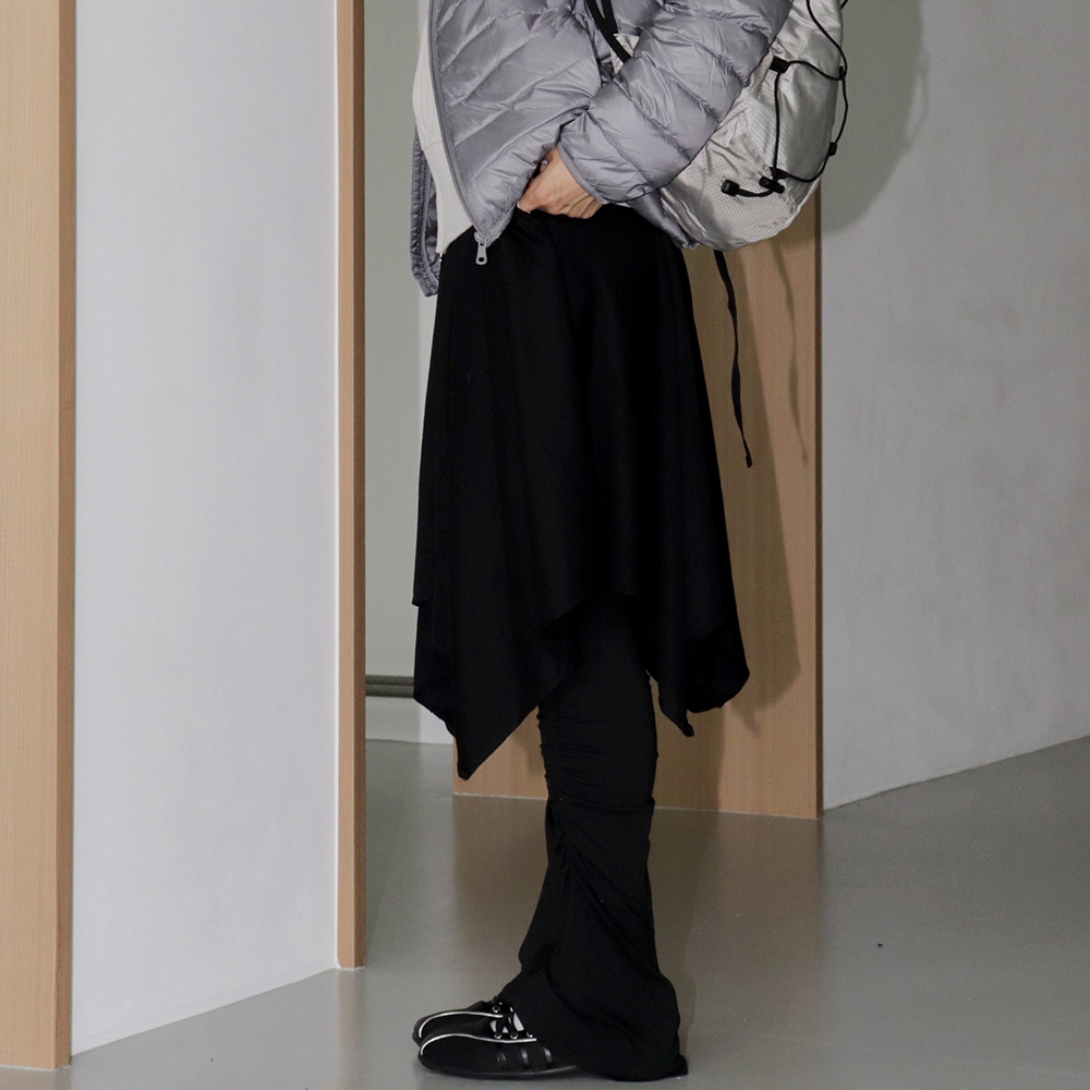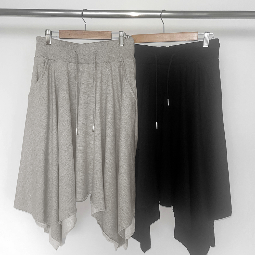 [original]パイルバイカラーアシンメトリーAラインレイヤードミドル丈スカート