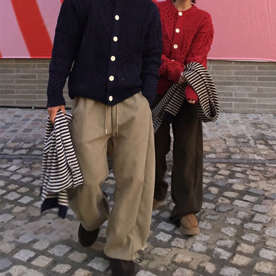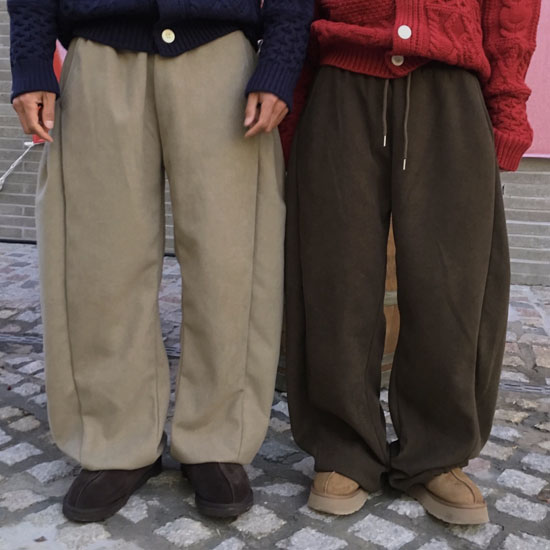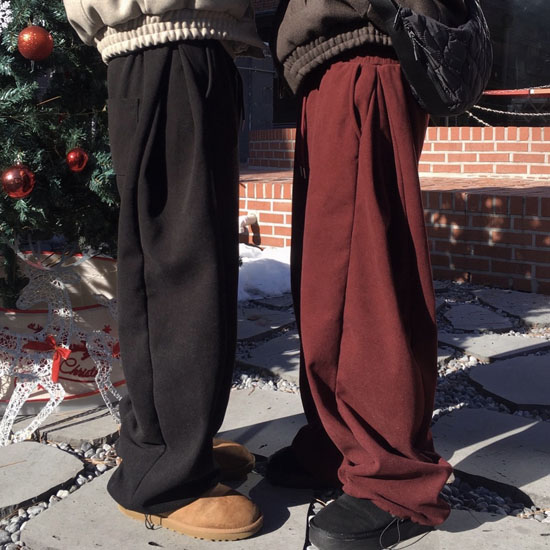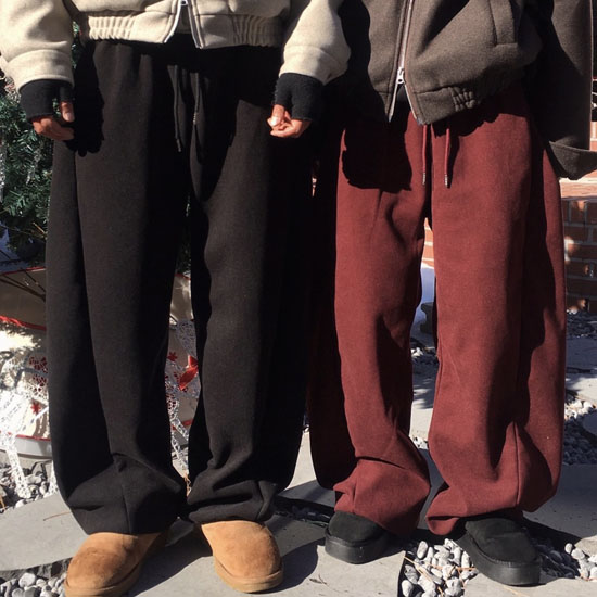 [UNISEX]サイドシャーリング裏起毛パンツ