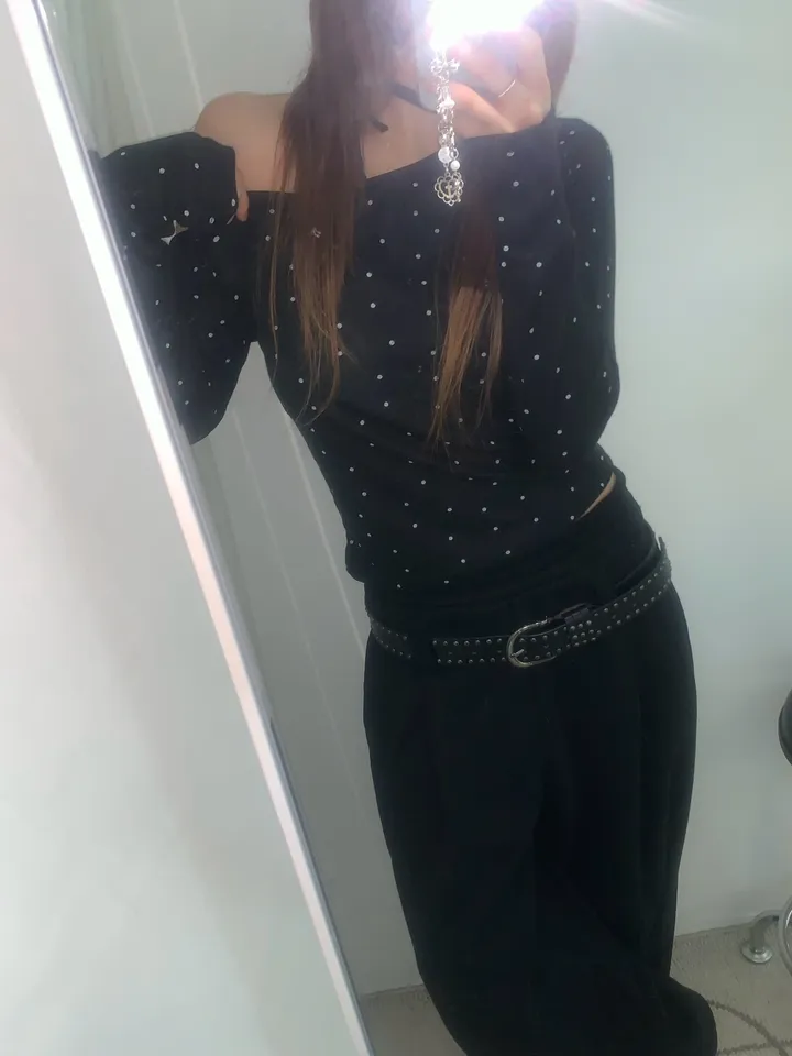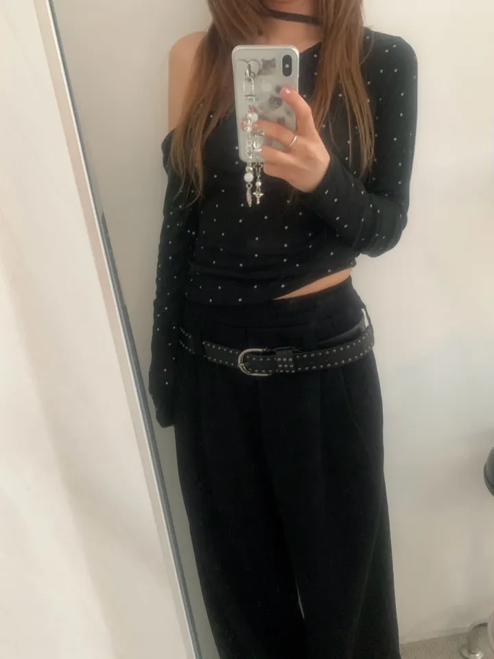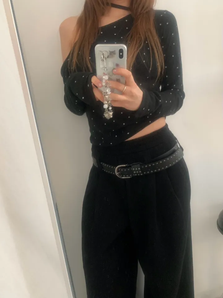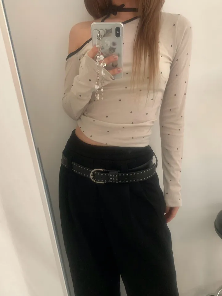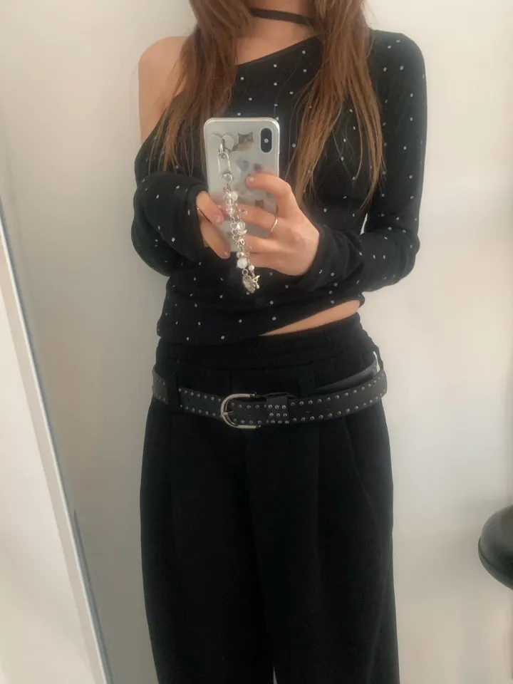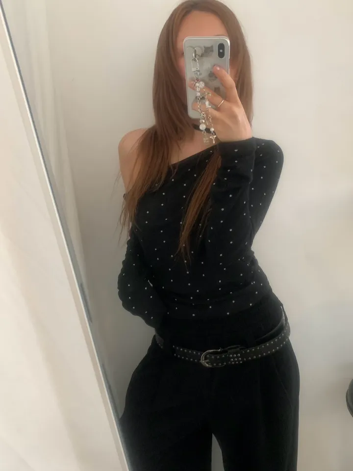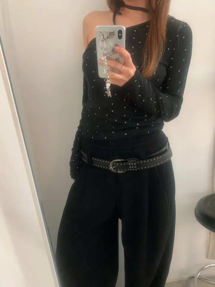 ドットアシンメトリーオフショルチョーカーTシャツ