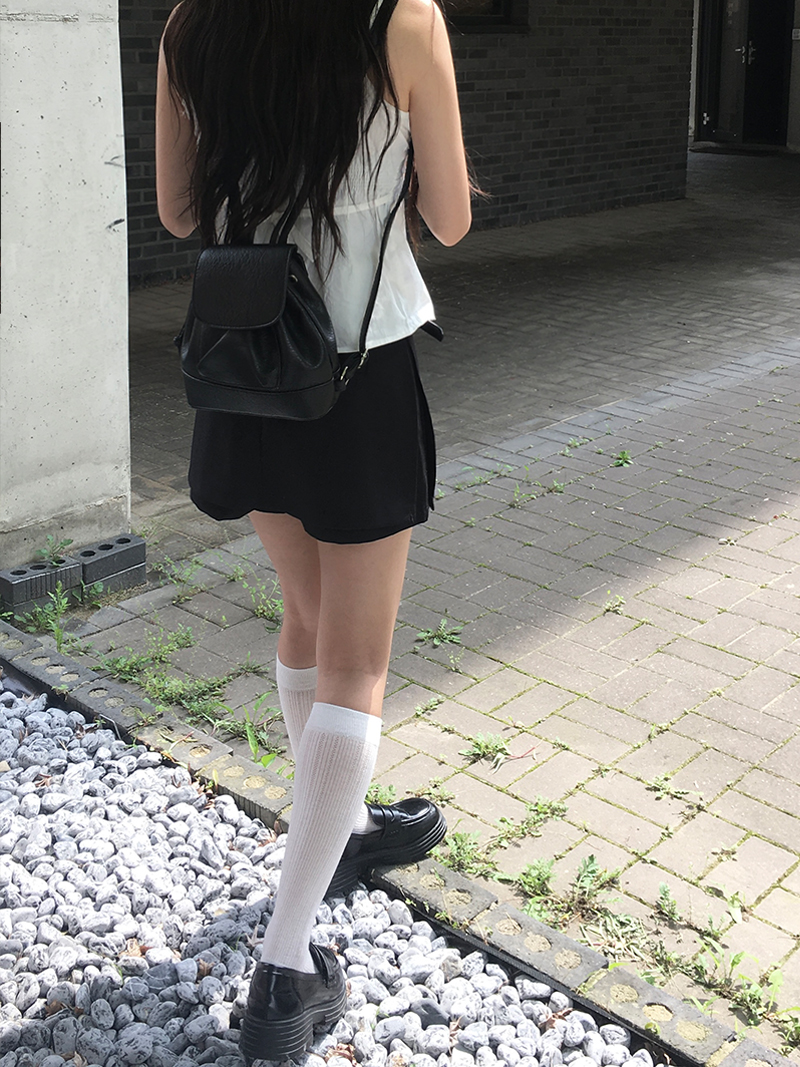 ブラックフェイクレザー巾着型フラップミニリュック