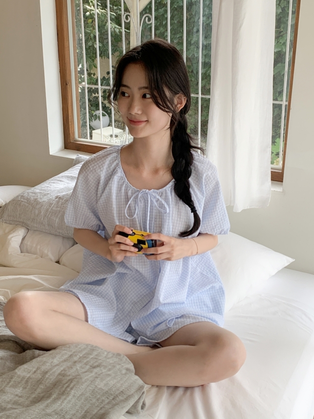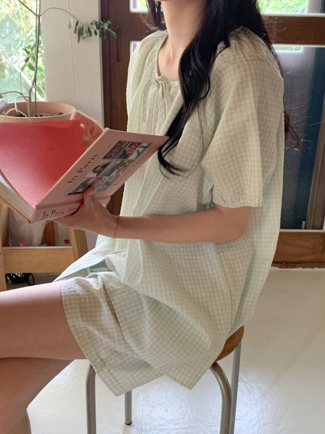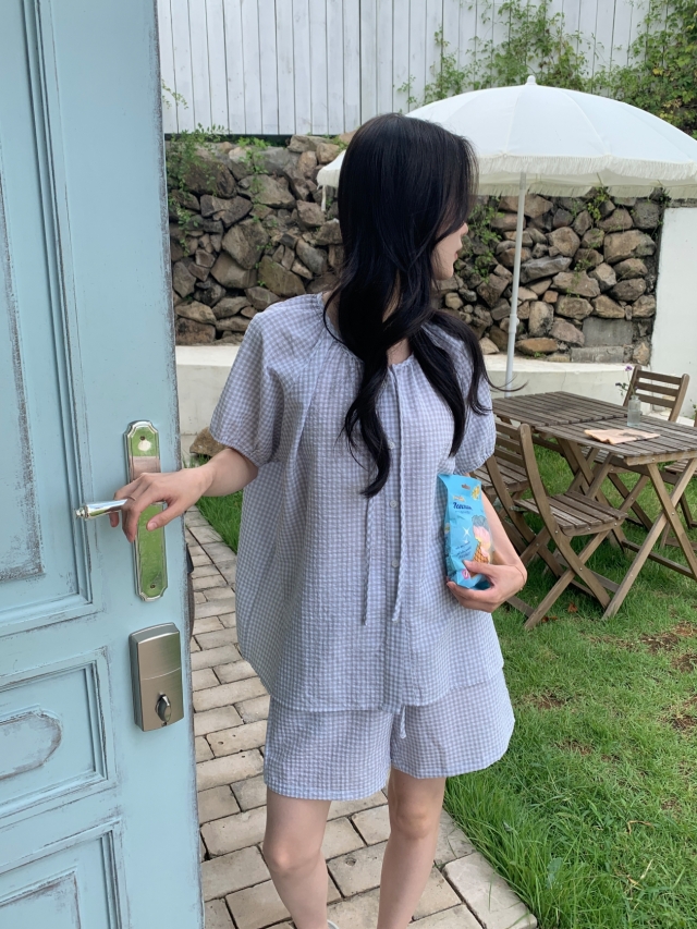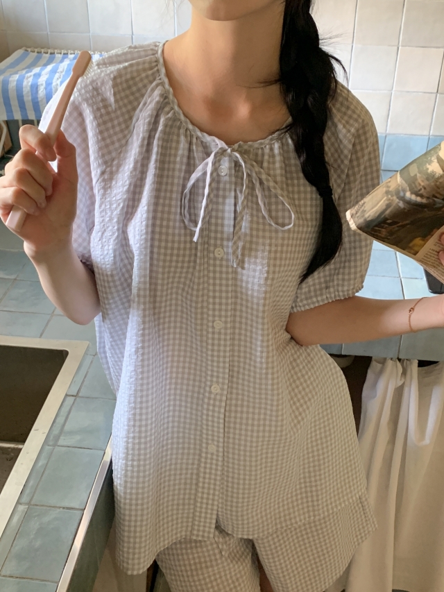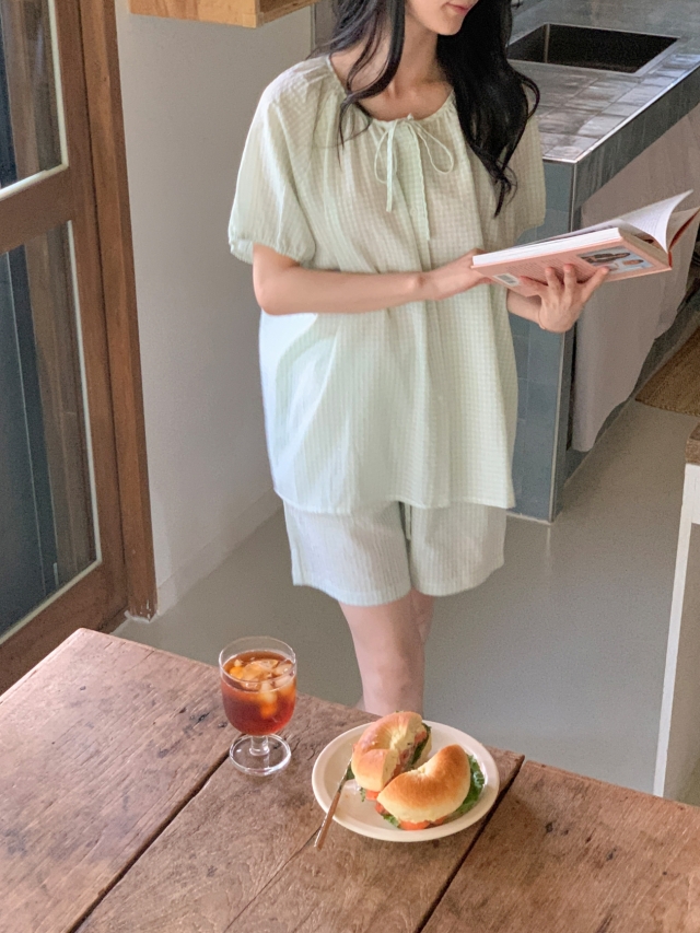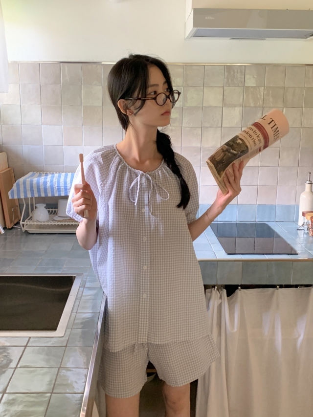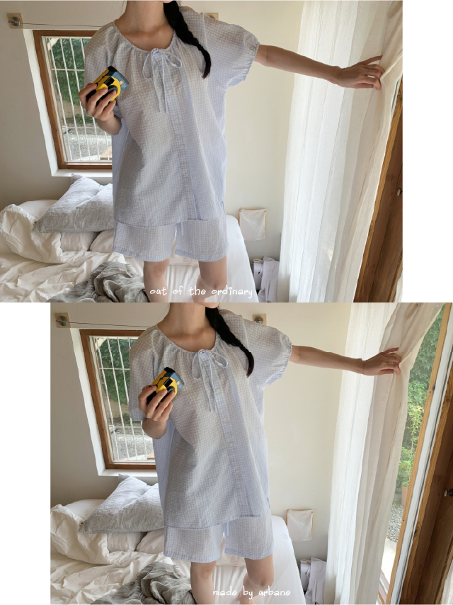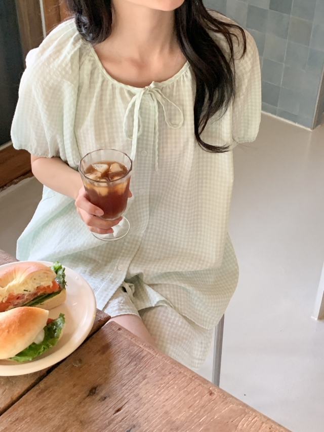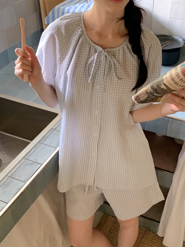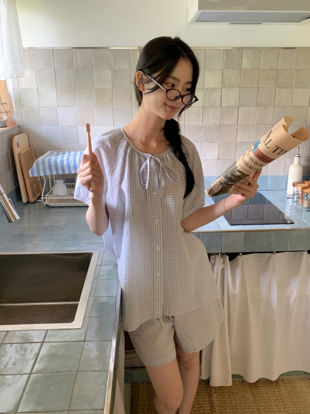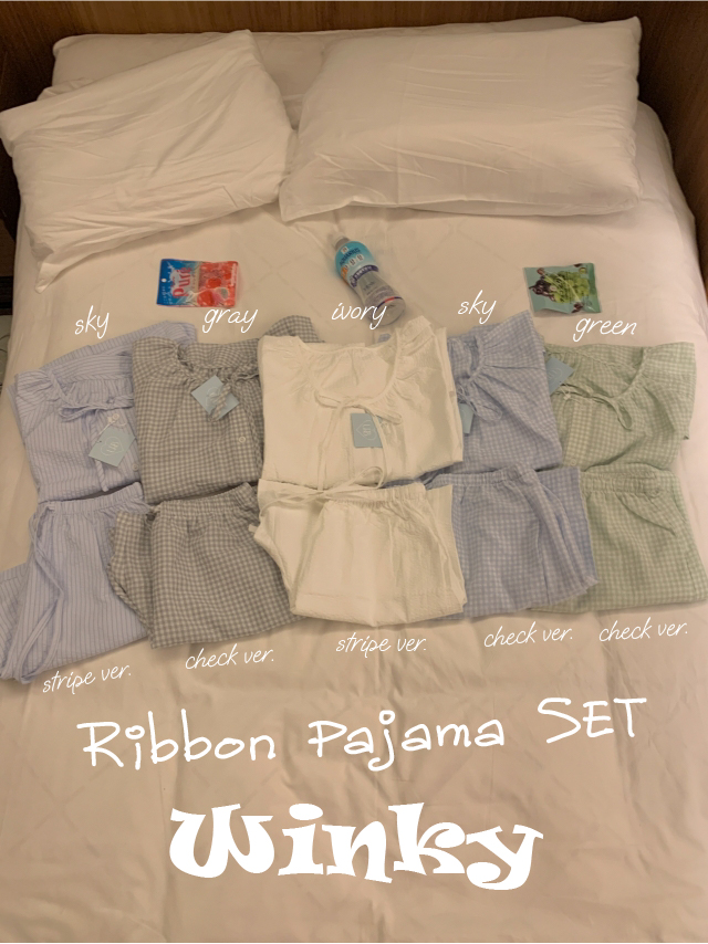 [original]リボンストライプ ボーダーチェックパジャマセット