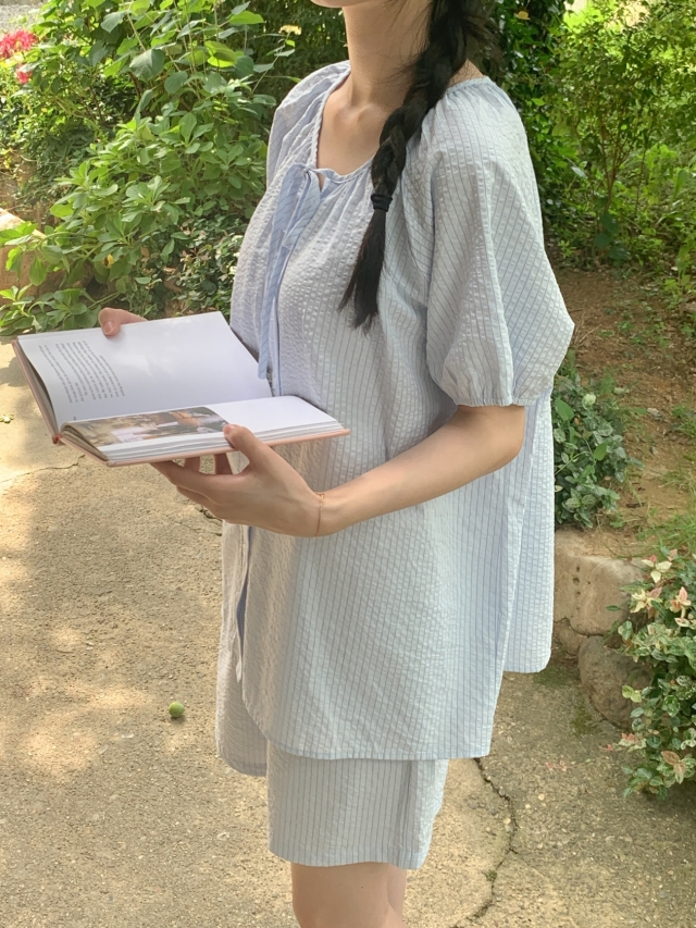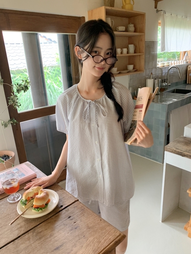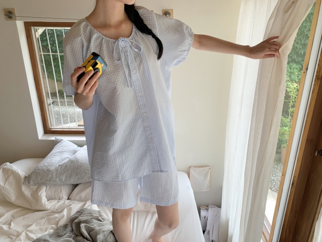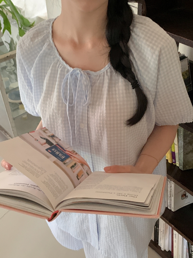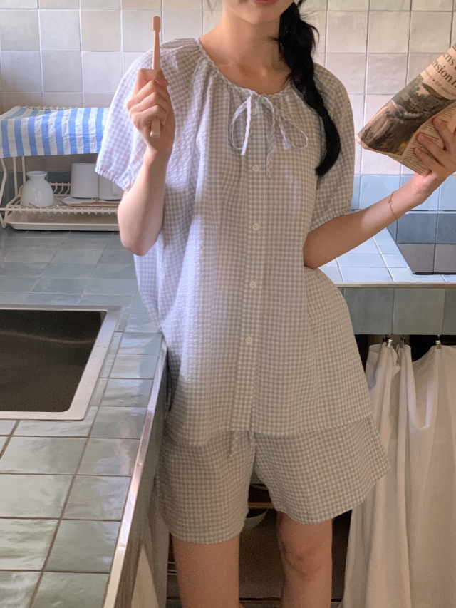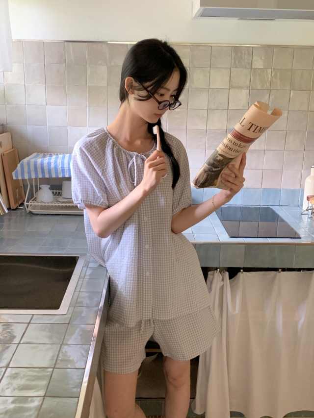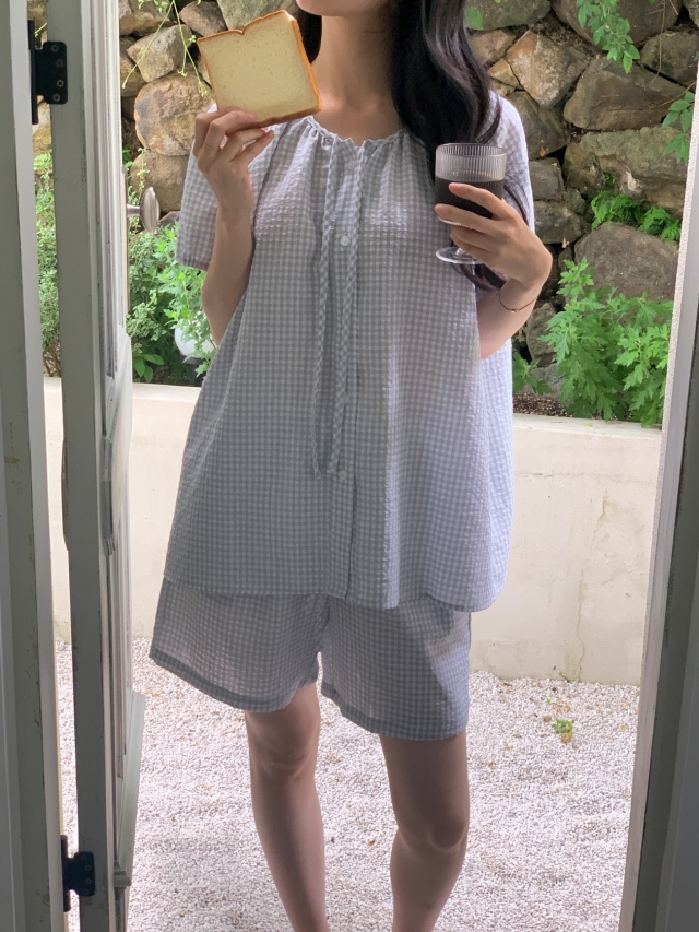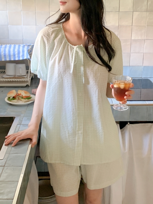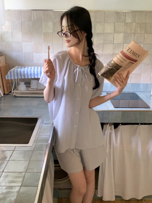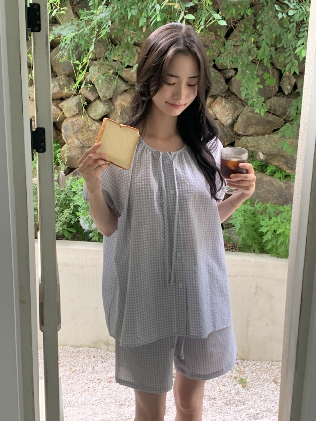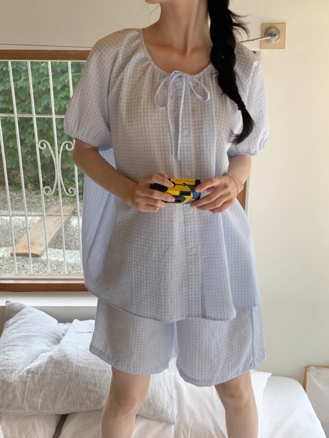 [original]リボンストライプ ボーダーチェックパジャマセット