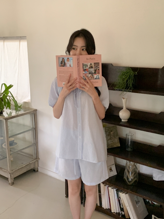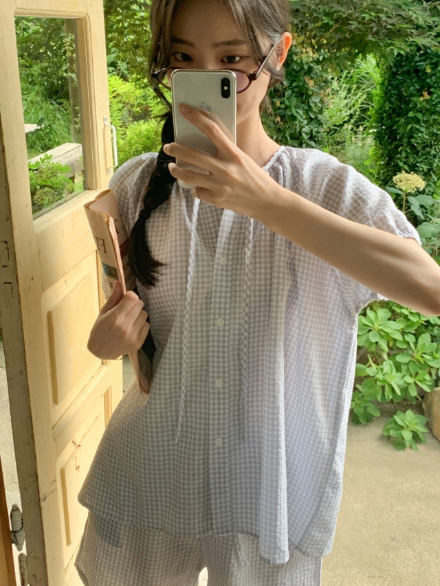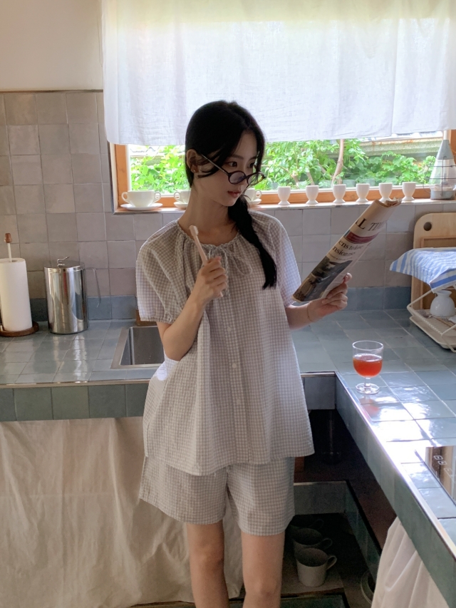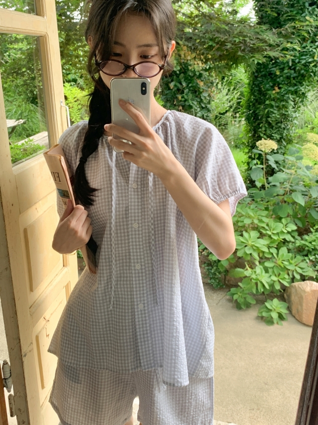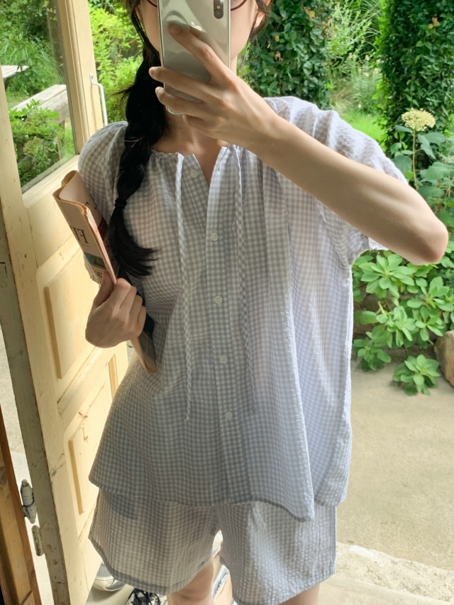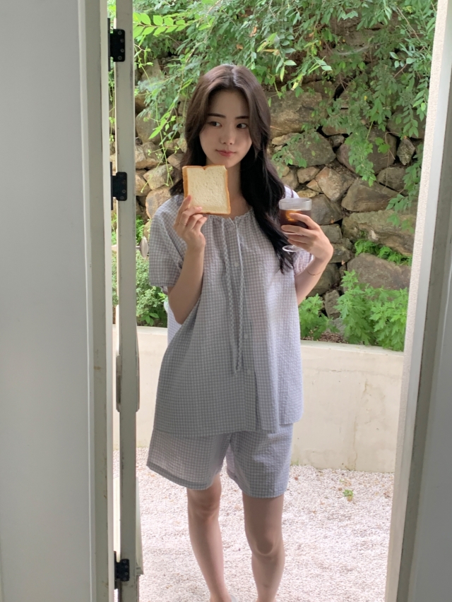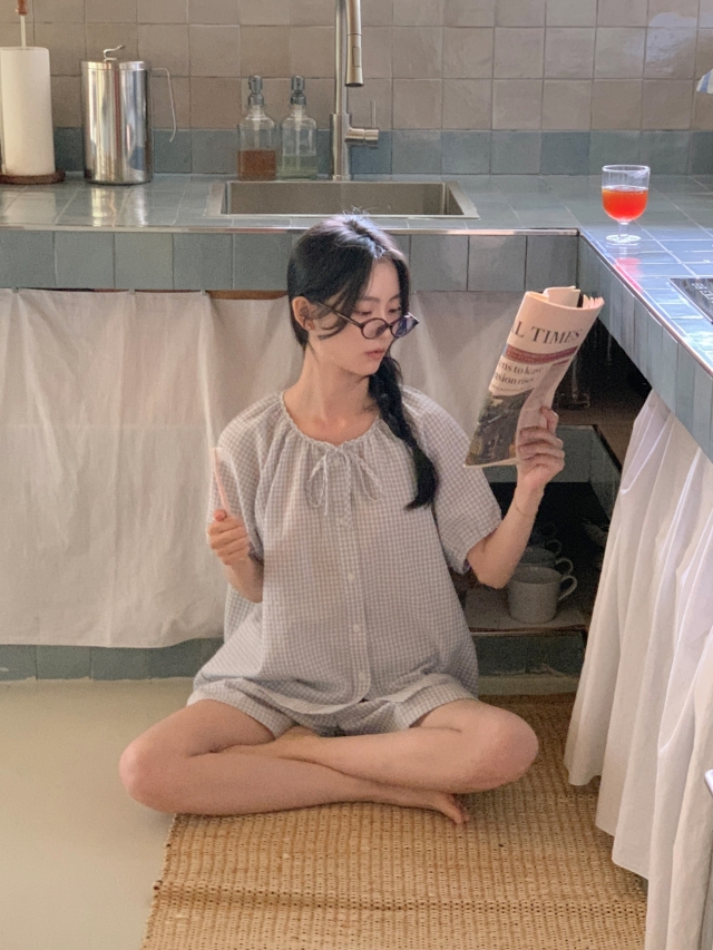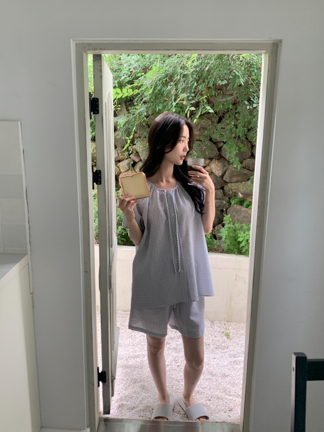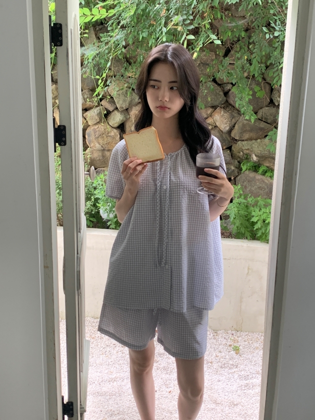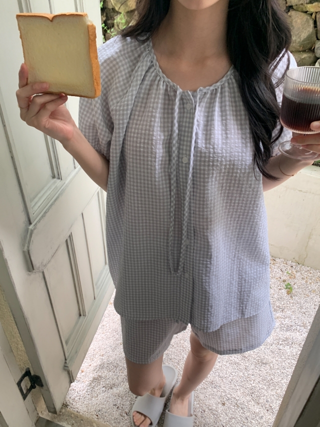 [original]リボンストライプ ボーダーチェックパジャマセット