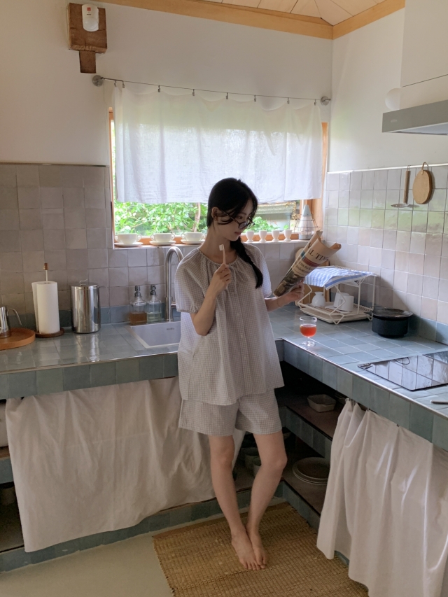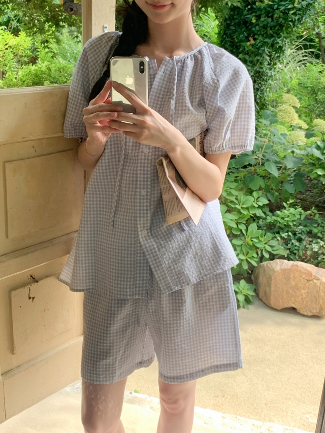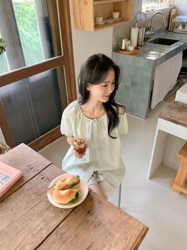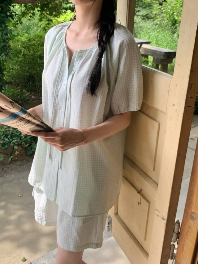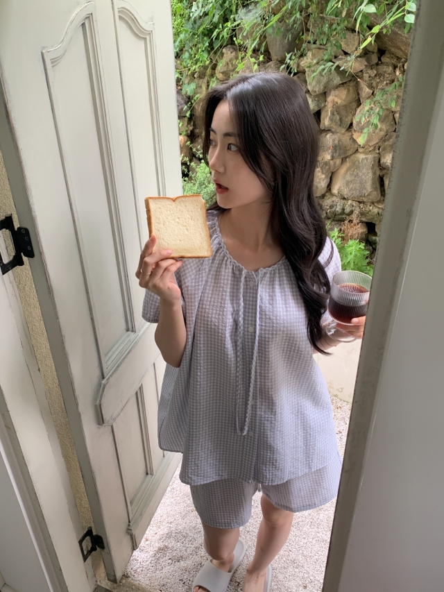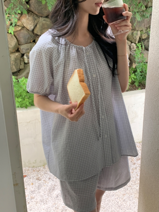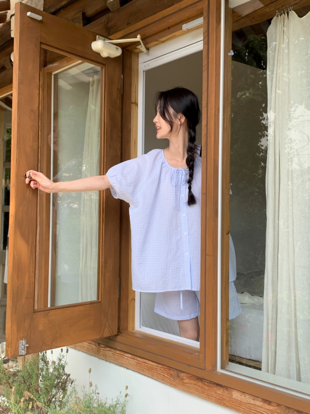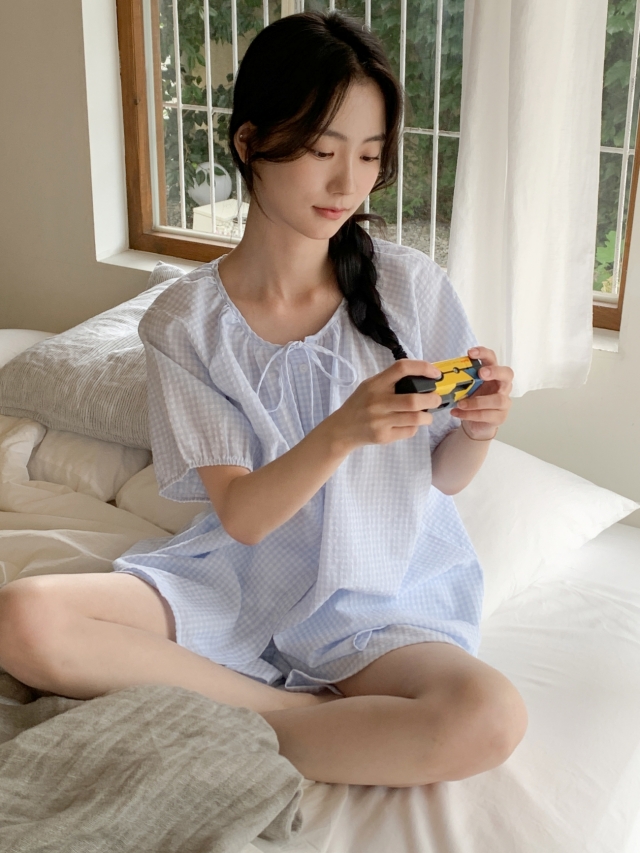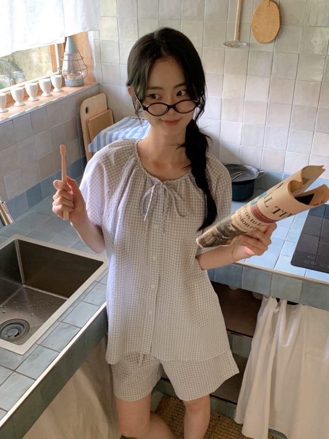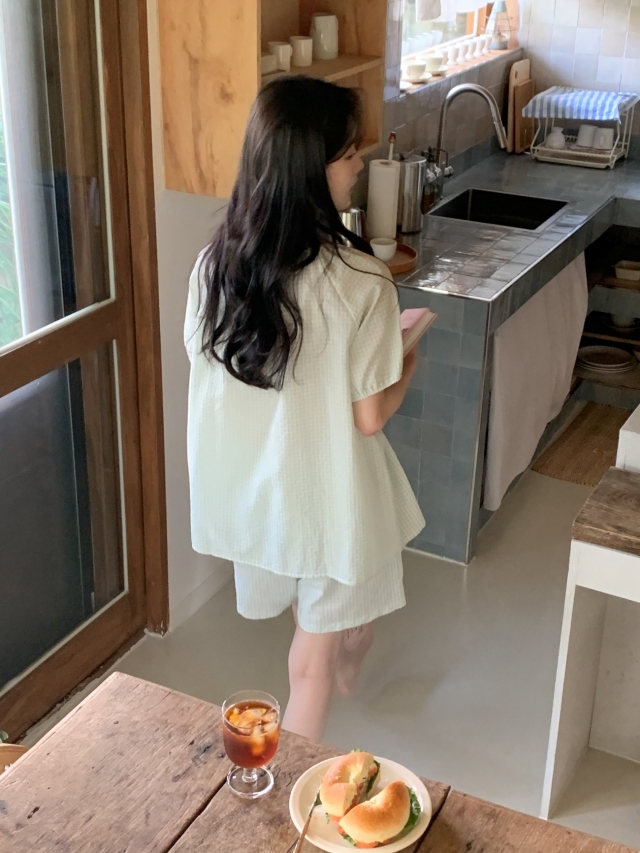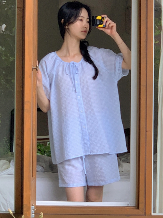 [original]リボンストライプ ボーダーチェックパジャマセット