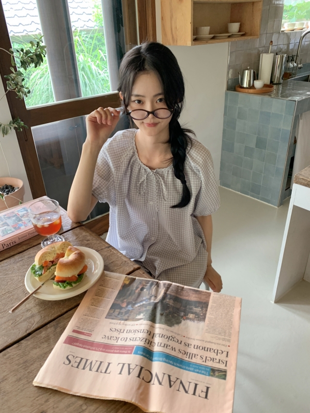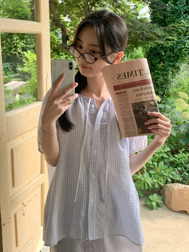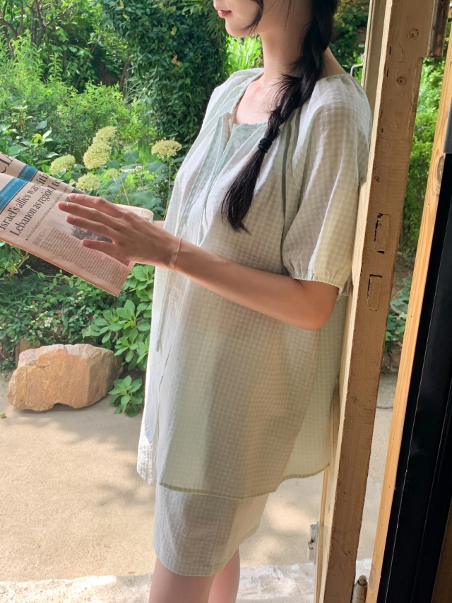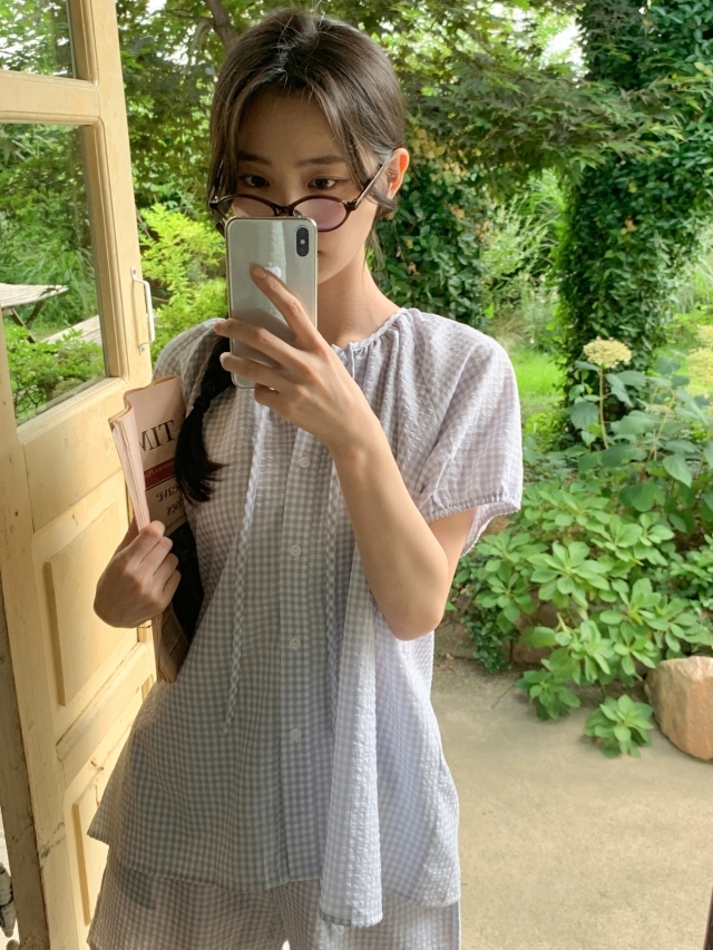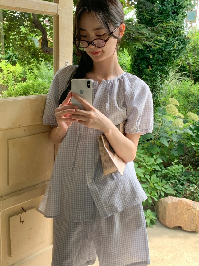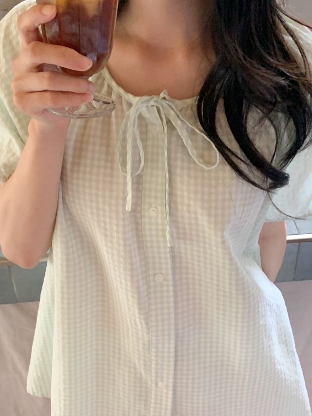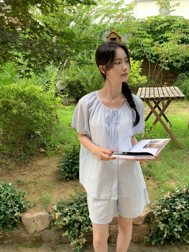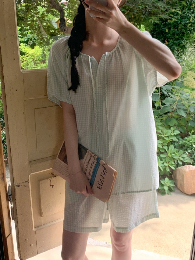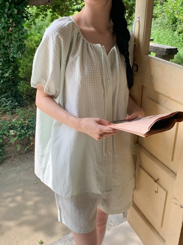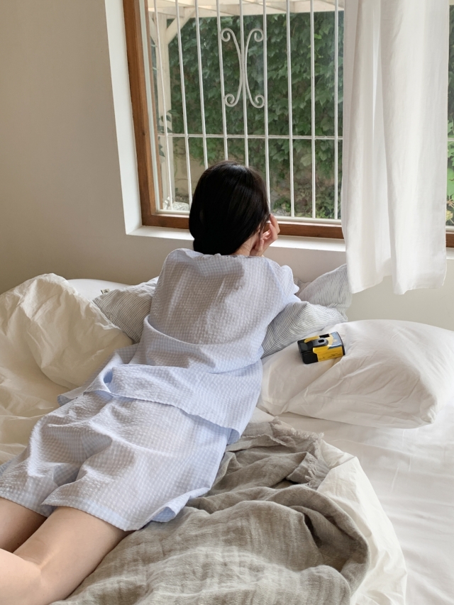 [original]リボンストライプ ボーダーチェックパジャマセット
