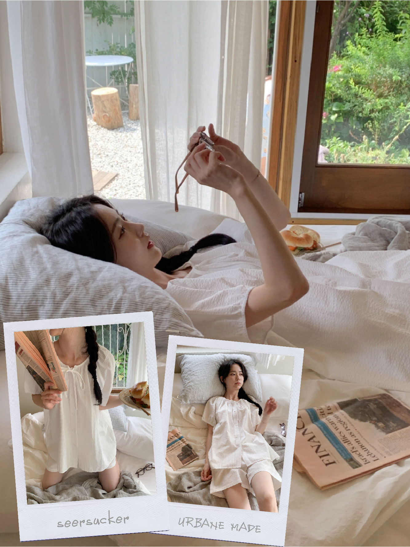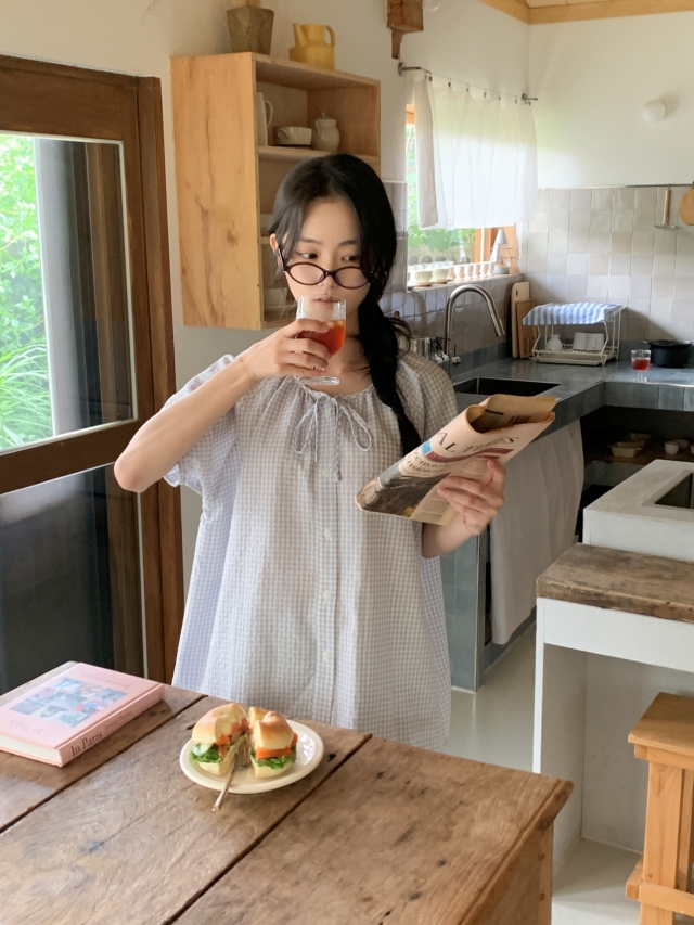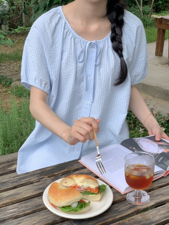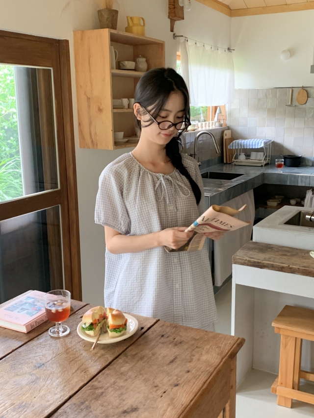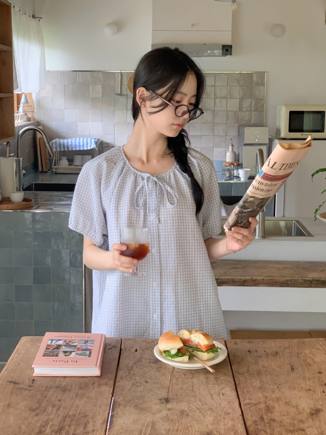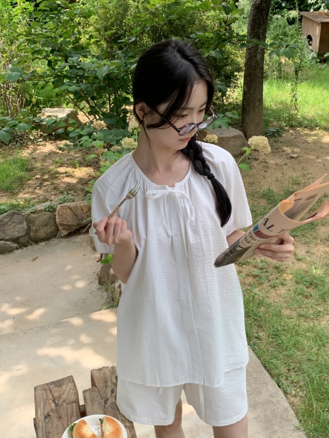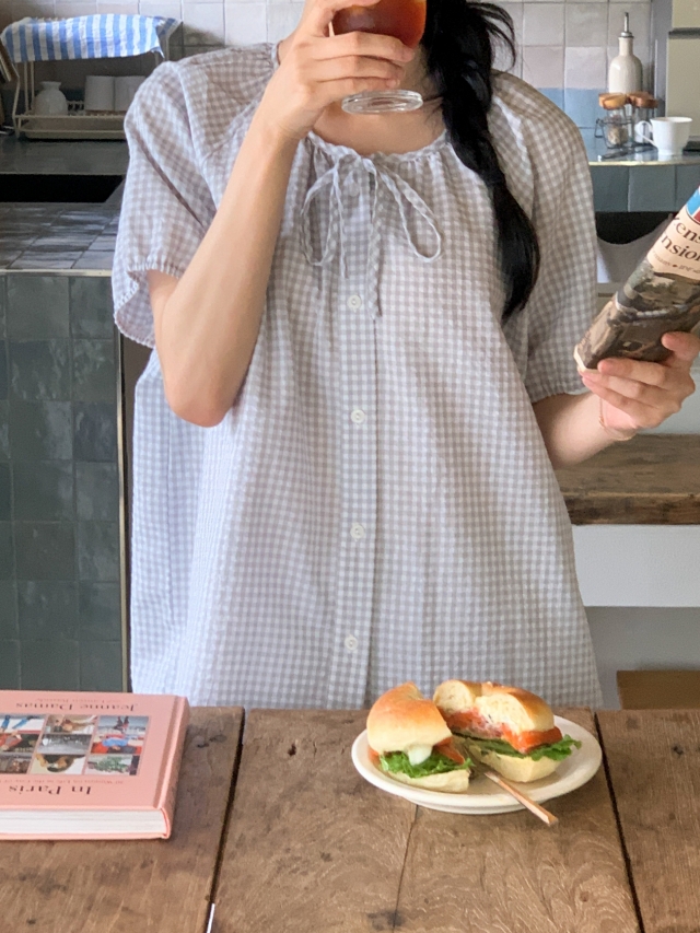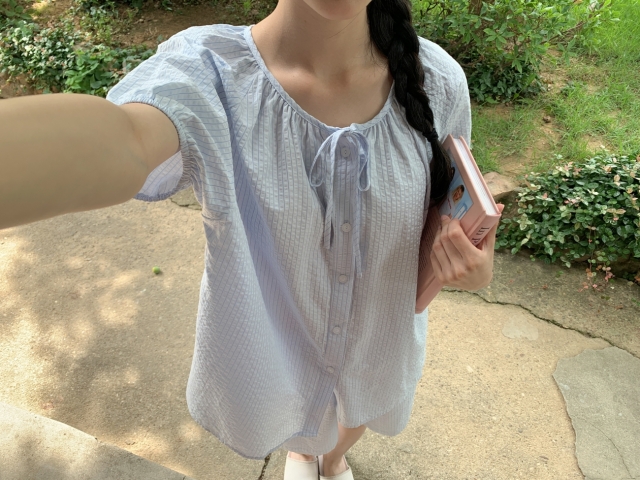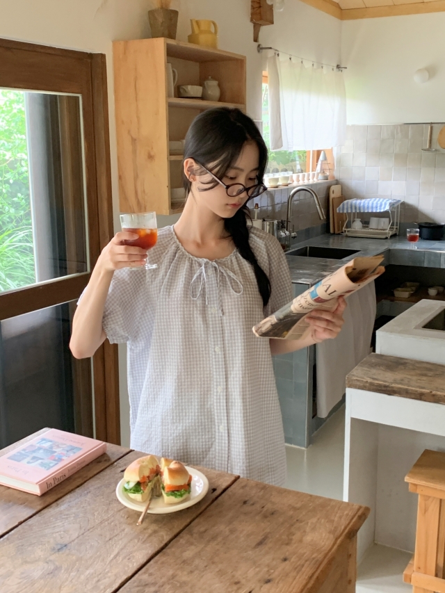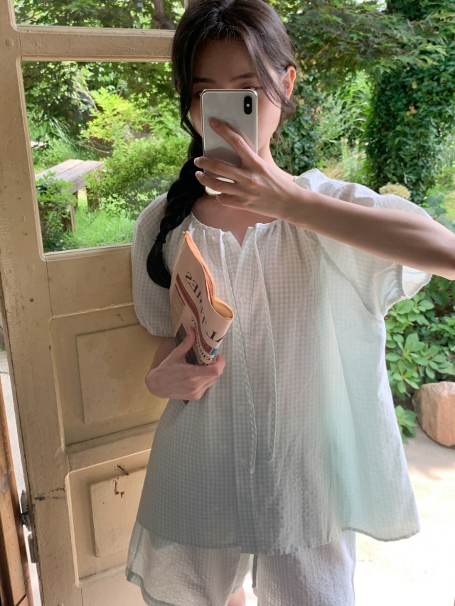[original]リボンストライプ ボーダーチェックパジャマセット