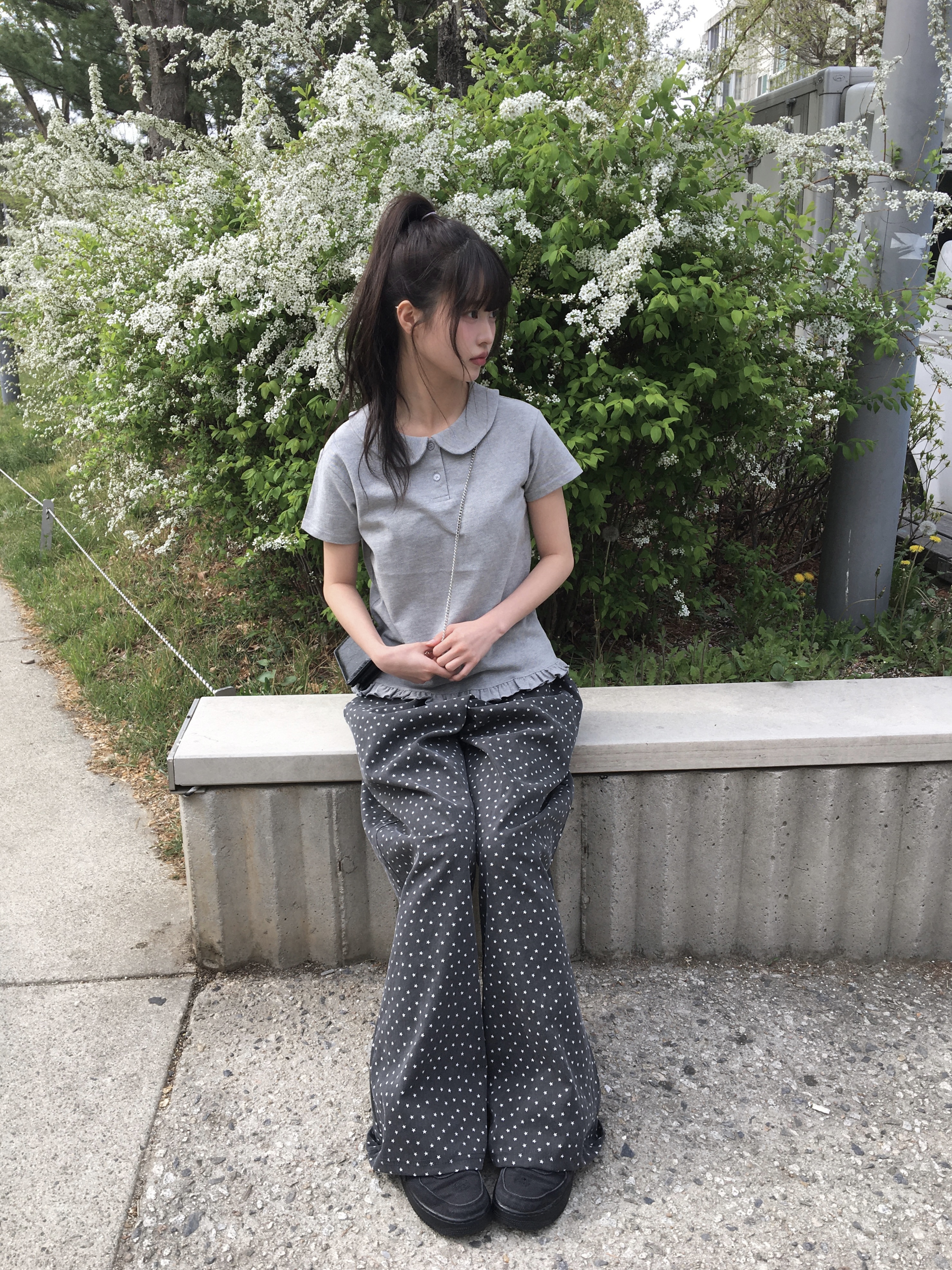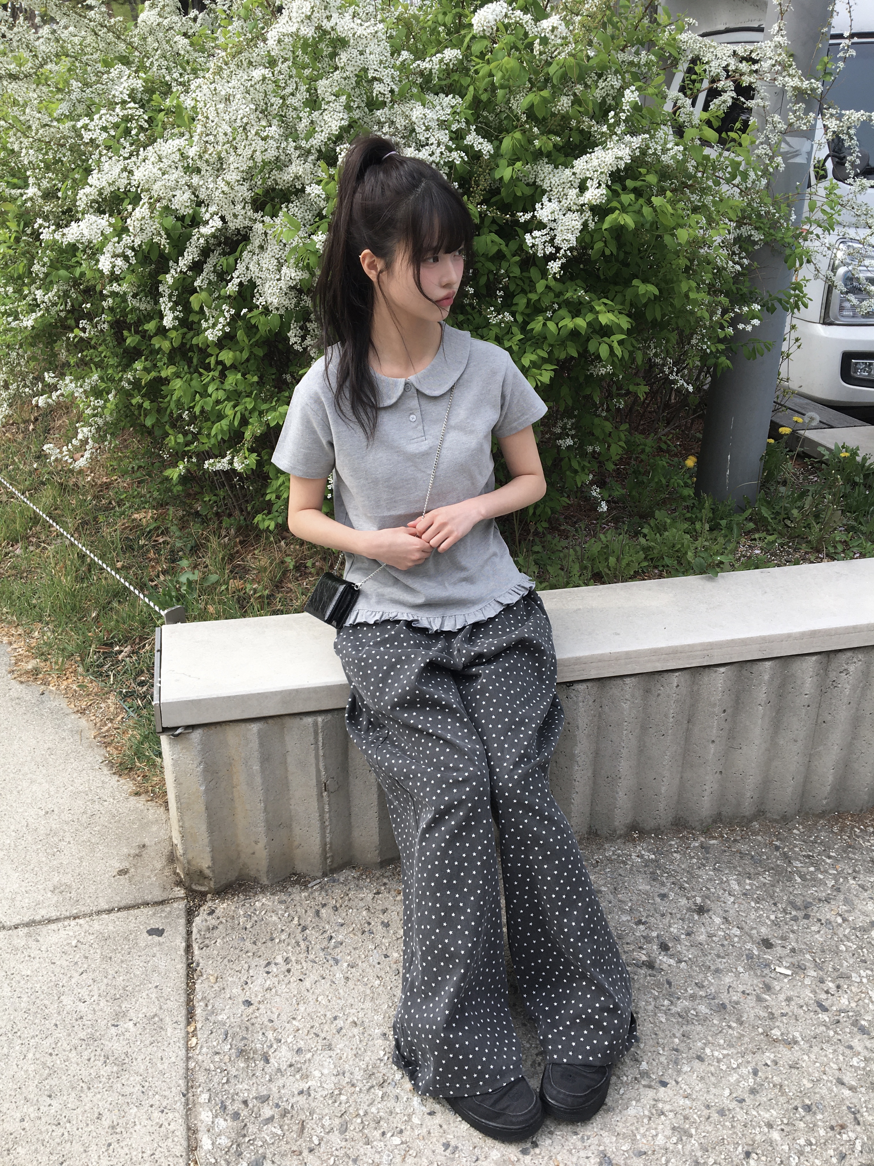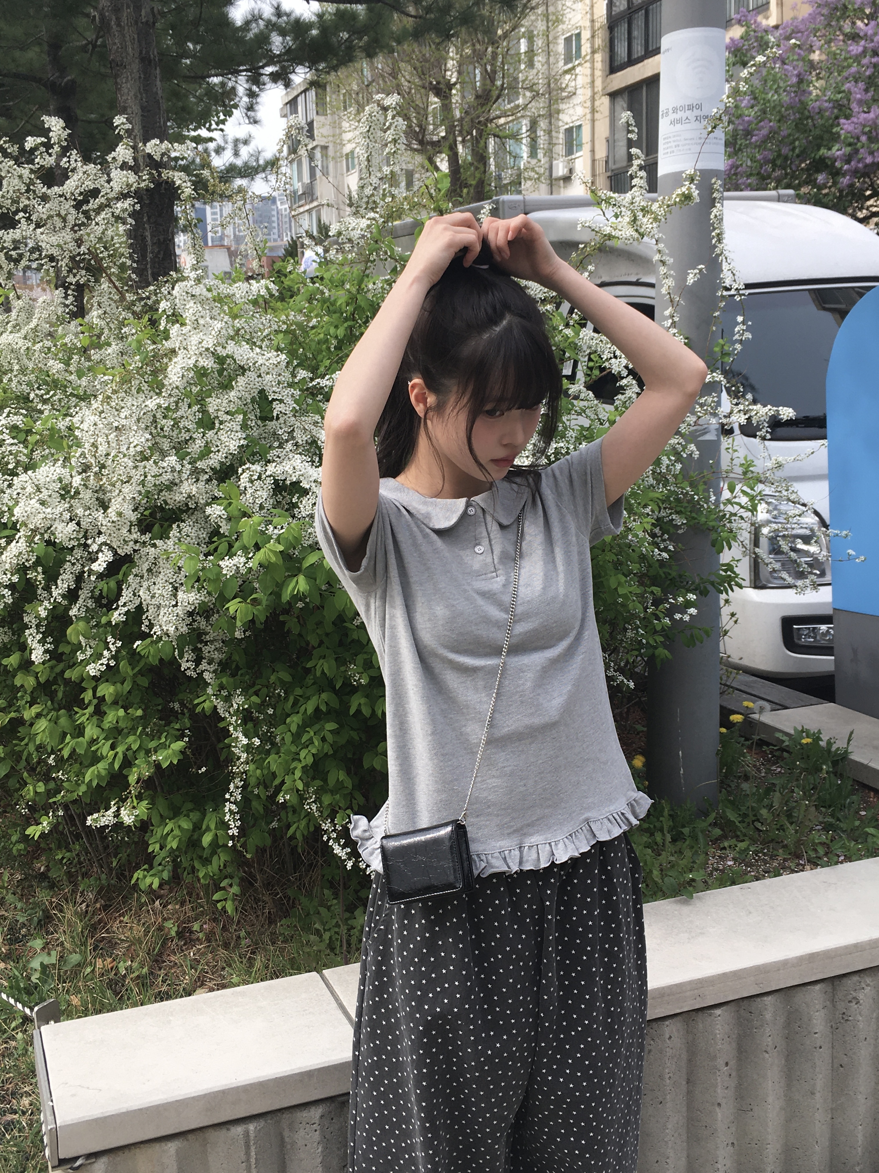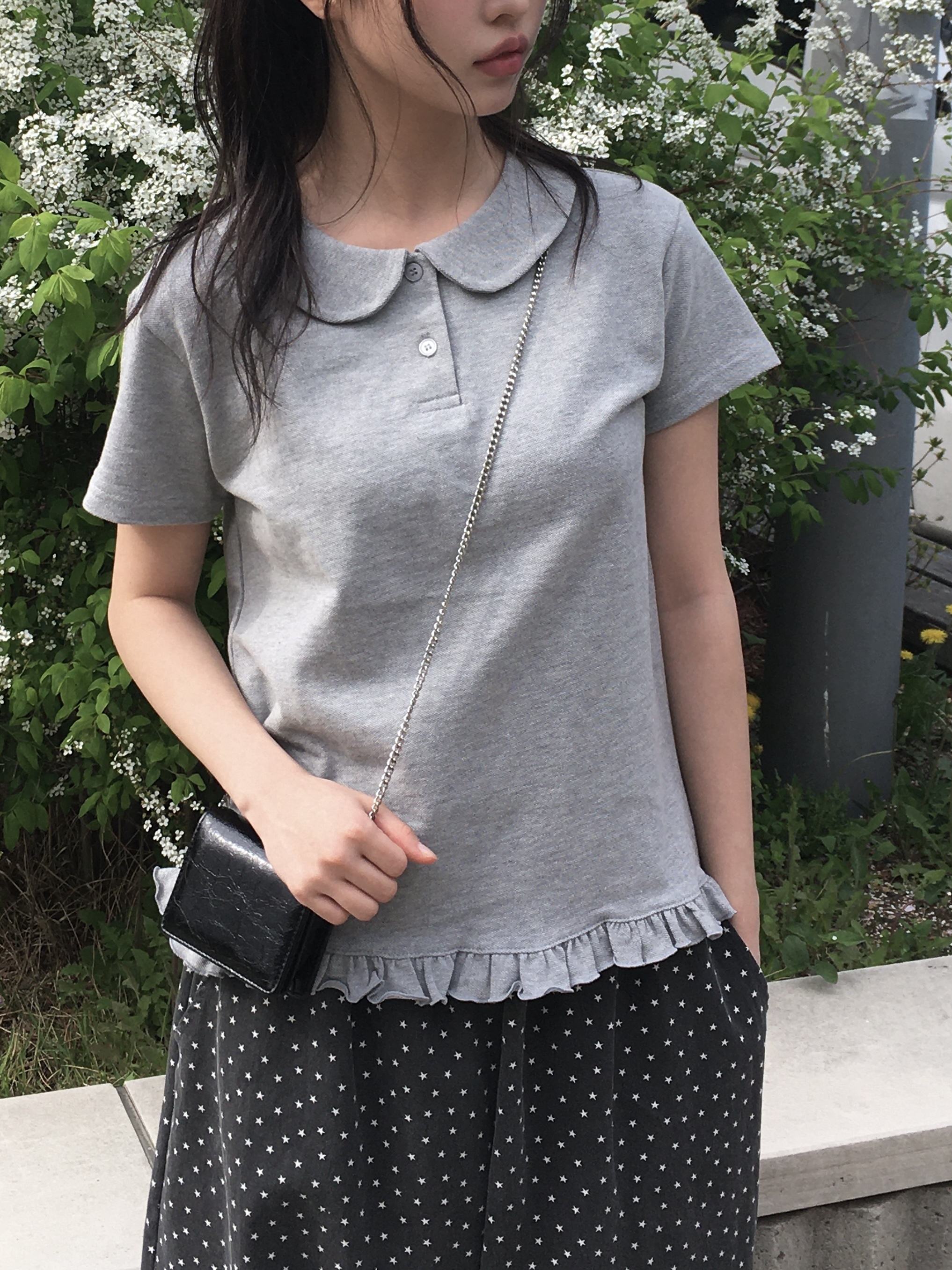 [コーデおすすめ] 裾フリルラウンドカラー半袖Tシャツ (2color)