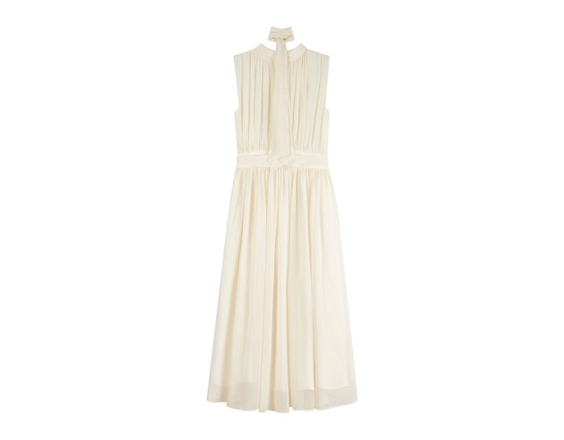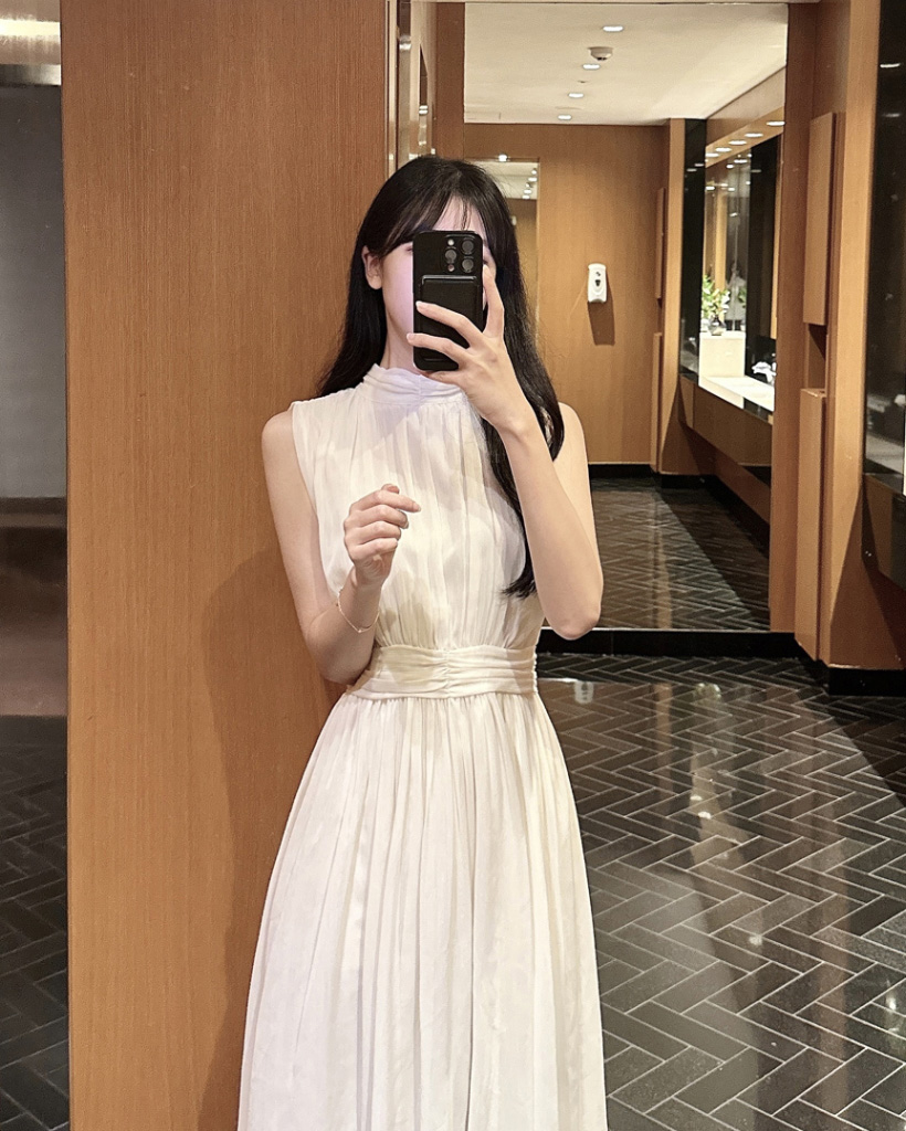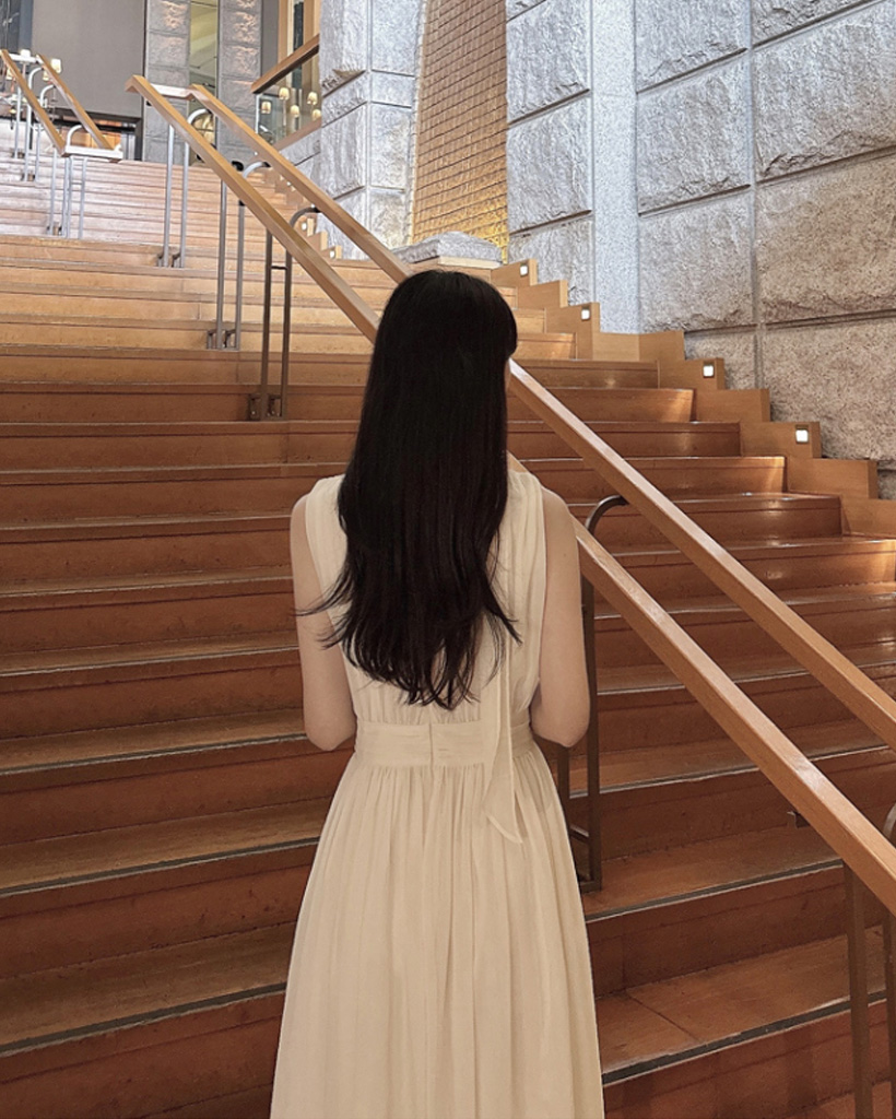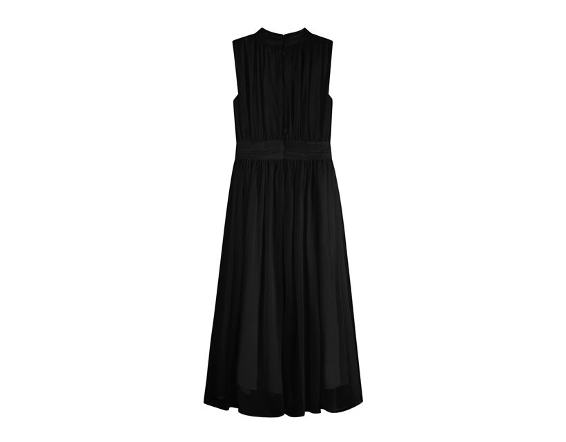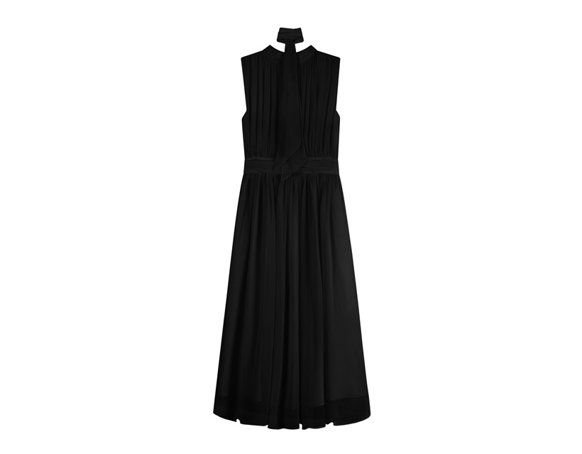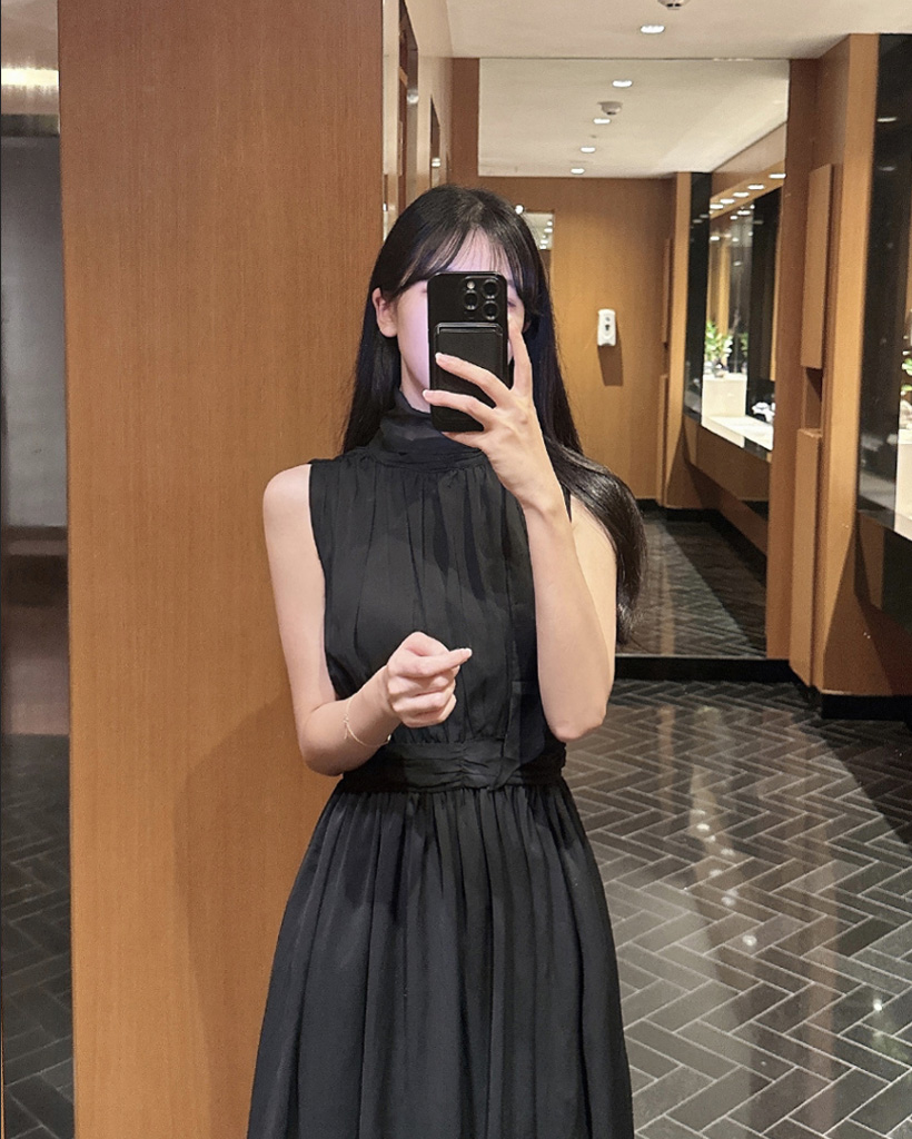 シルキー シフォン ボウタイ ホルターネック フレア ロング ワンピース