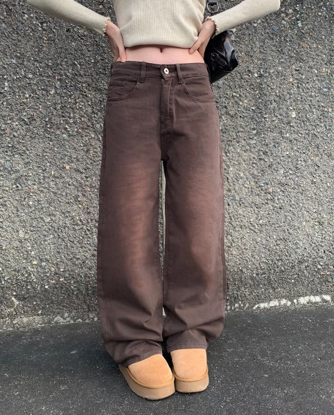 [低身長さんパンツ][A/M] ブラウンウォッシングワイドパンツ