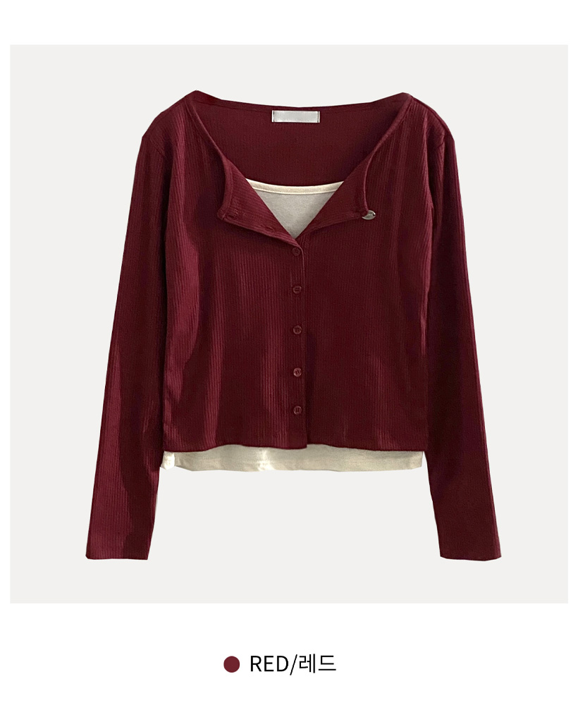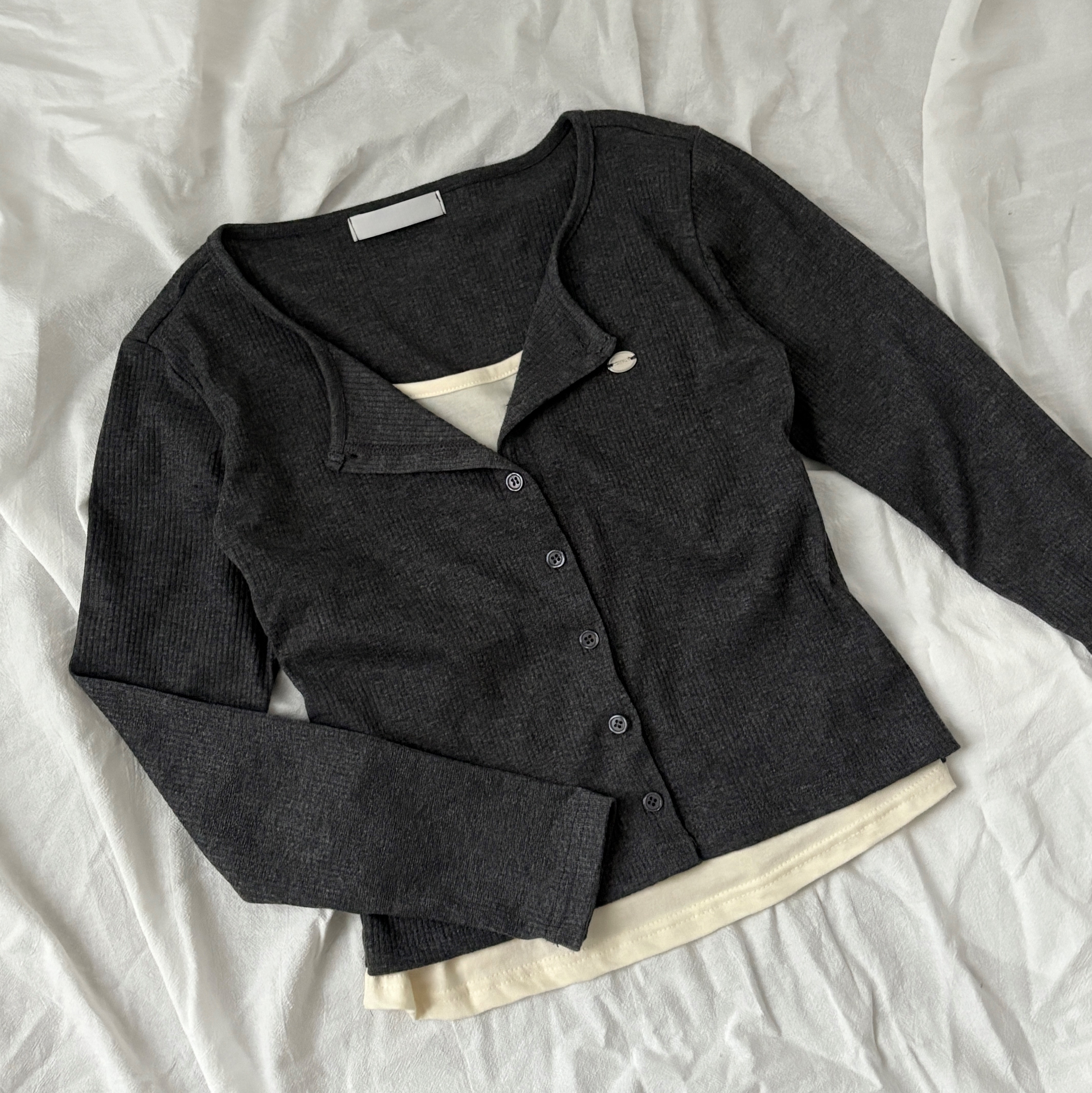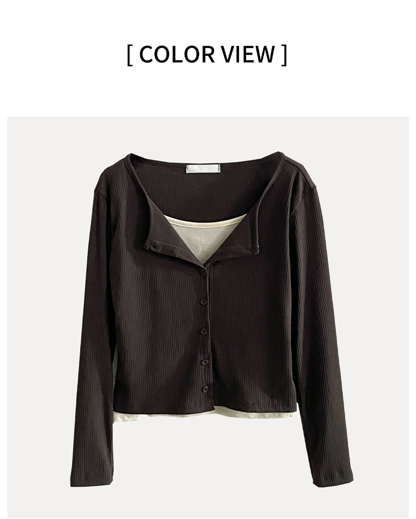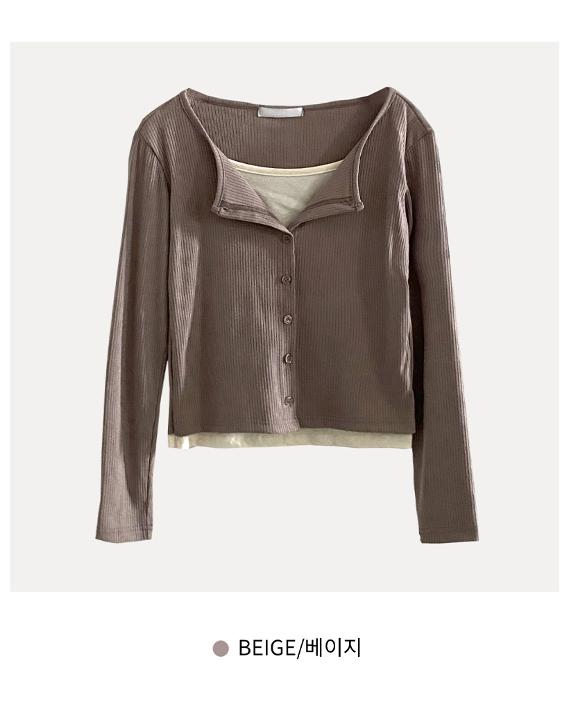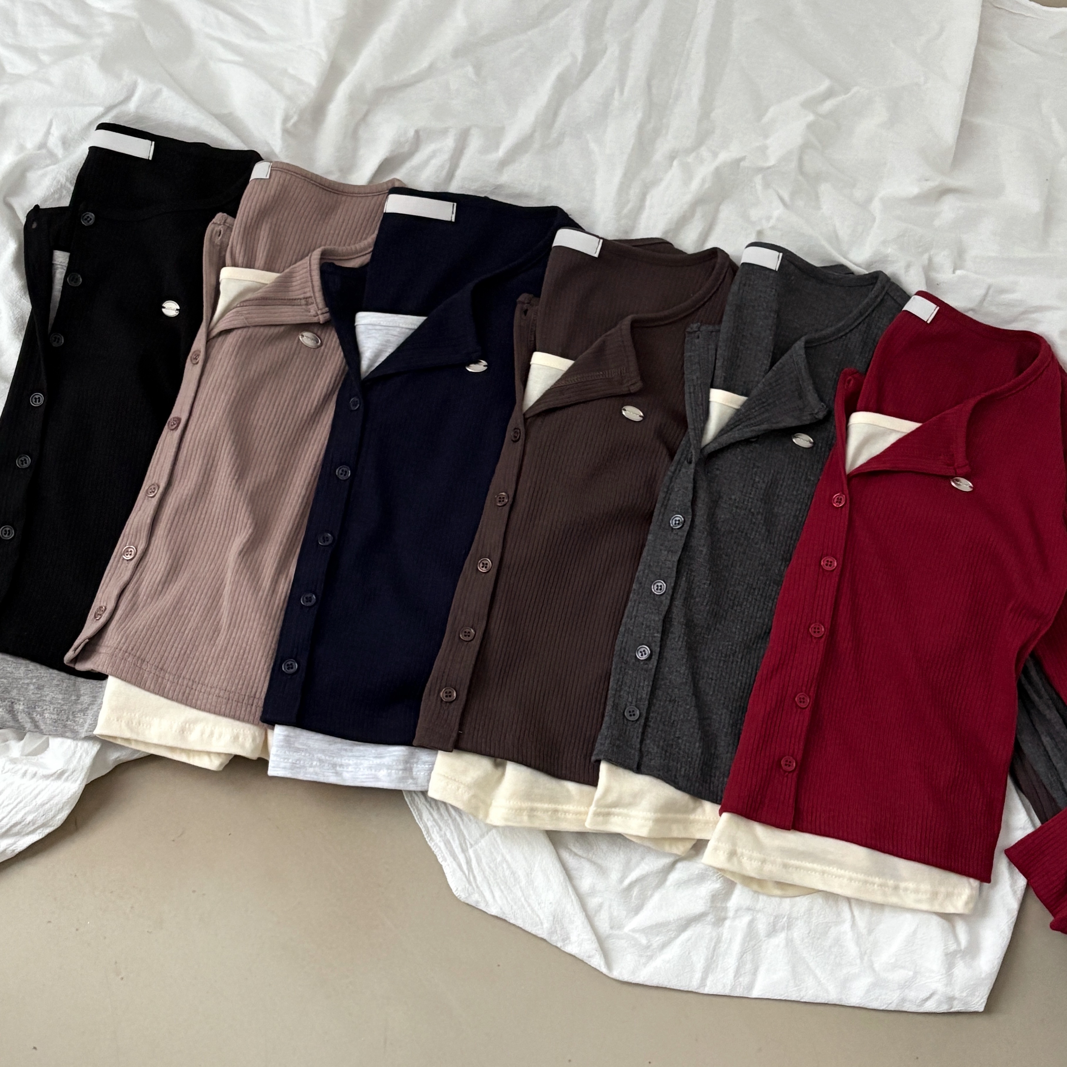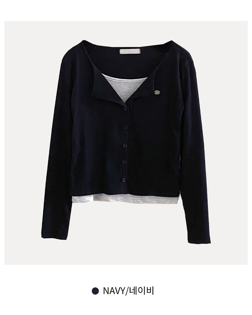 [6color/一体型]ペンダントレイヤードリブニットカーディガン