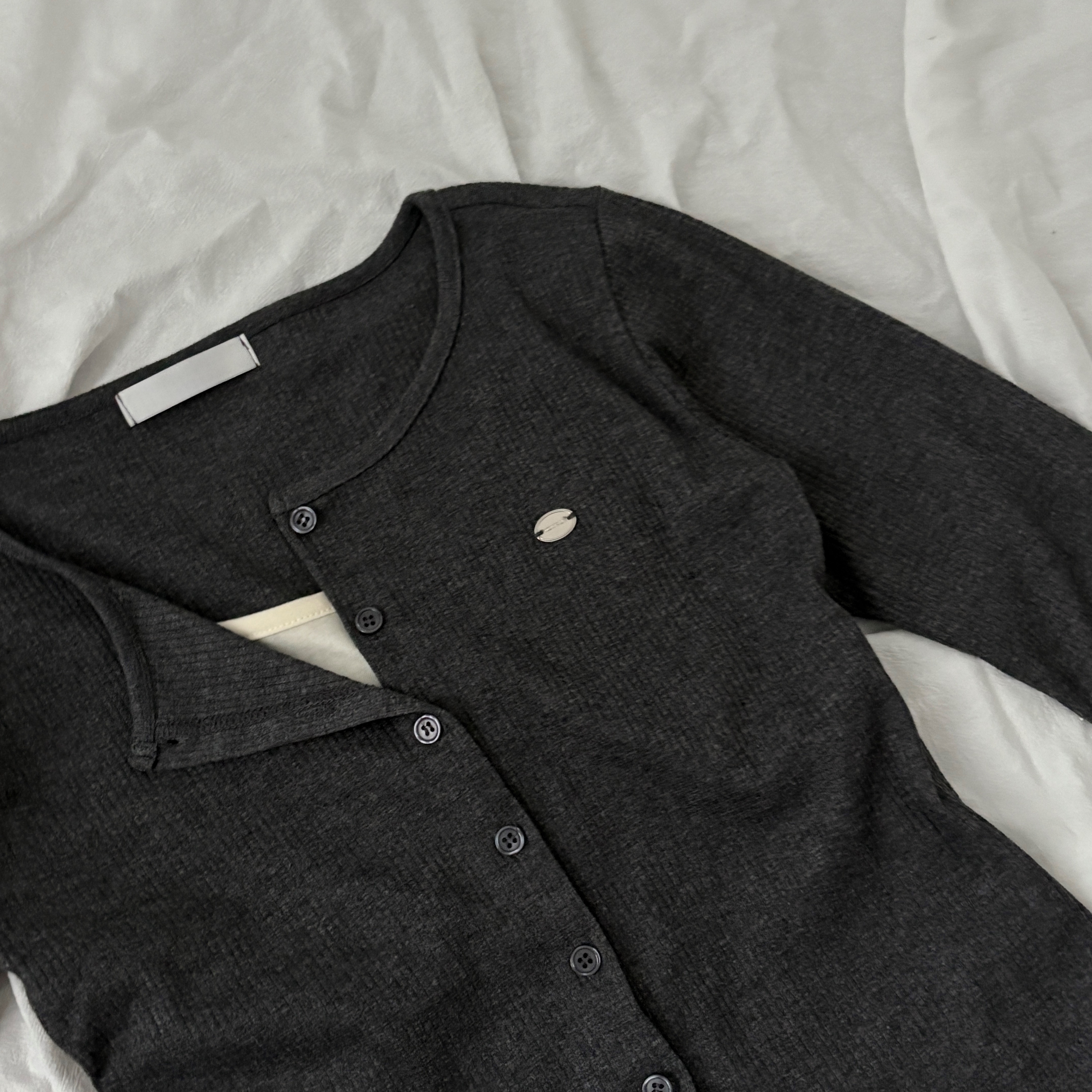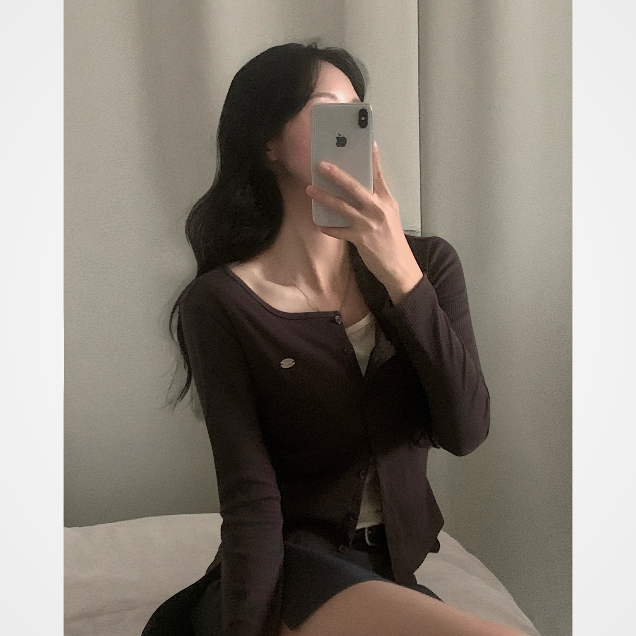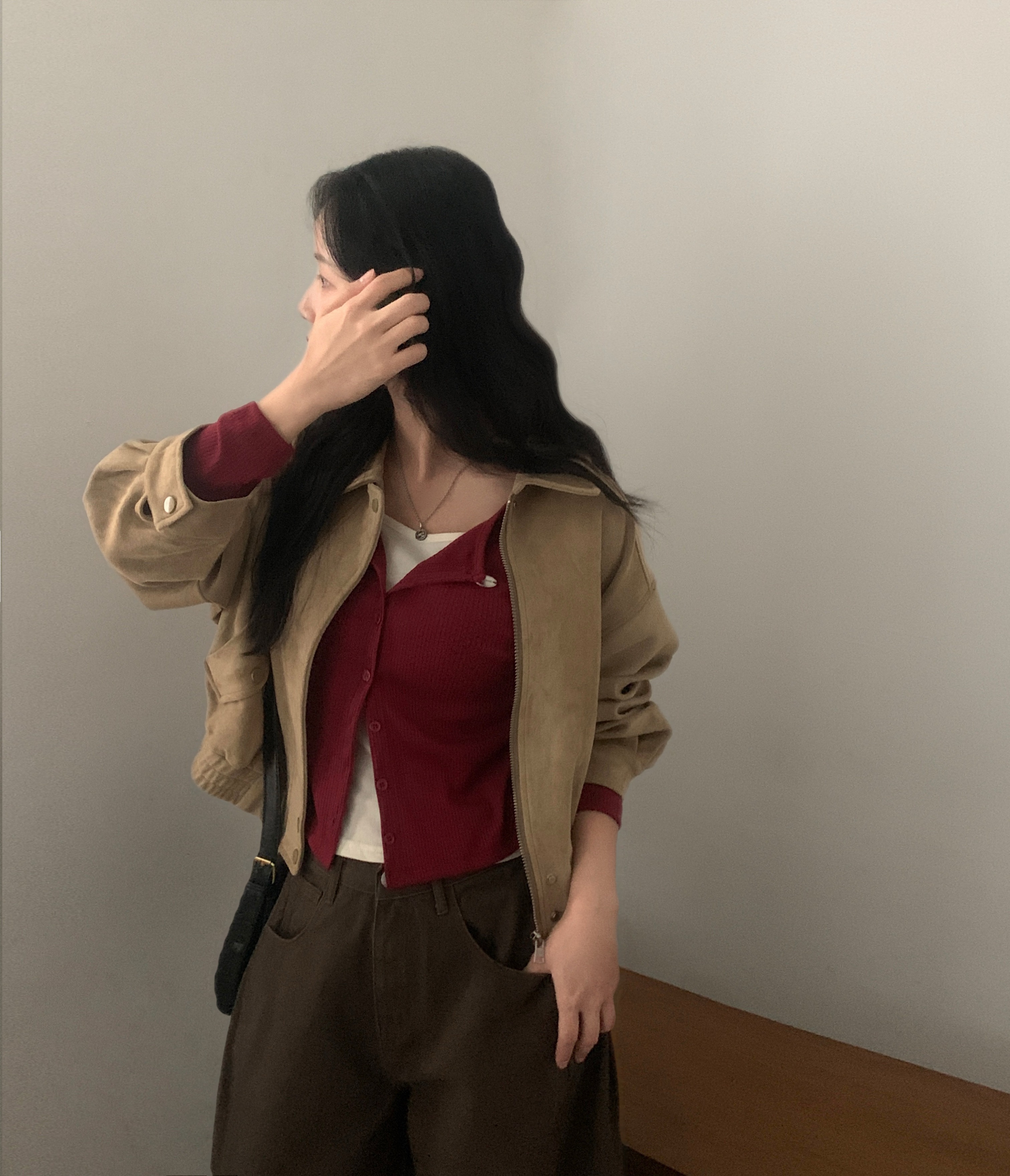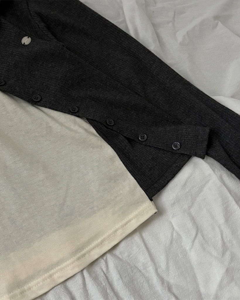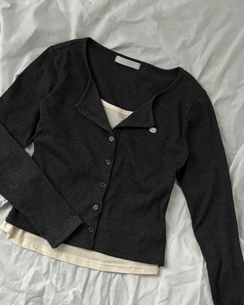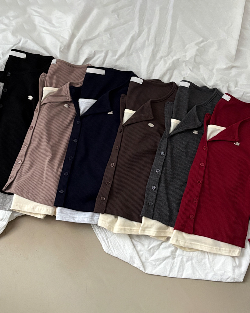 [6color/一体型]ペンダントレイヤードリブニットカーディガン