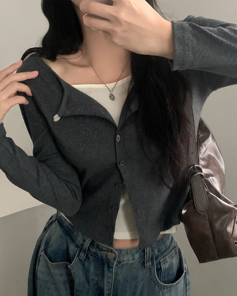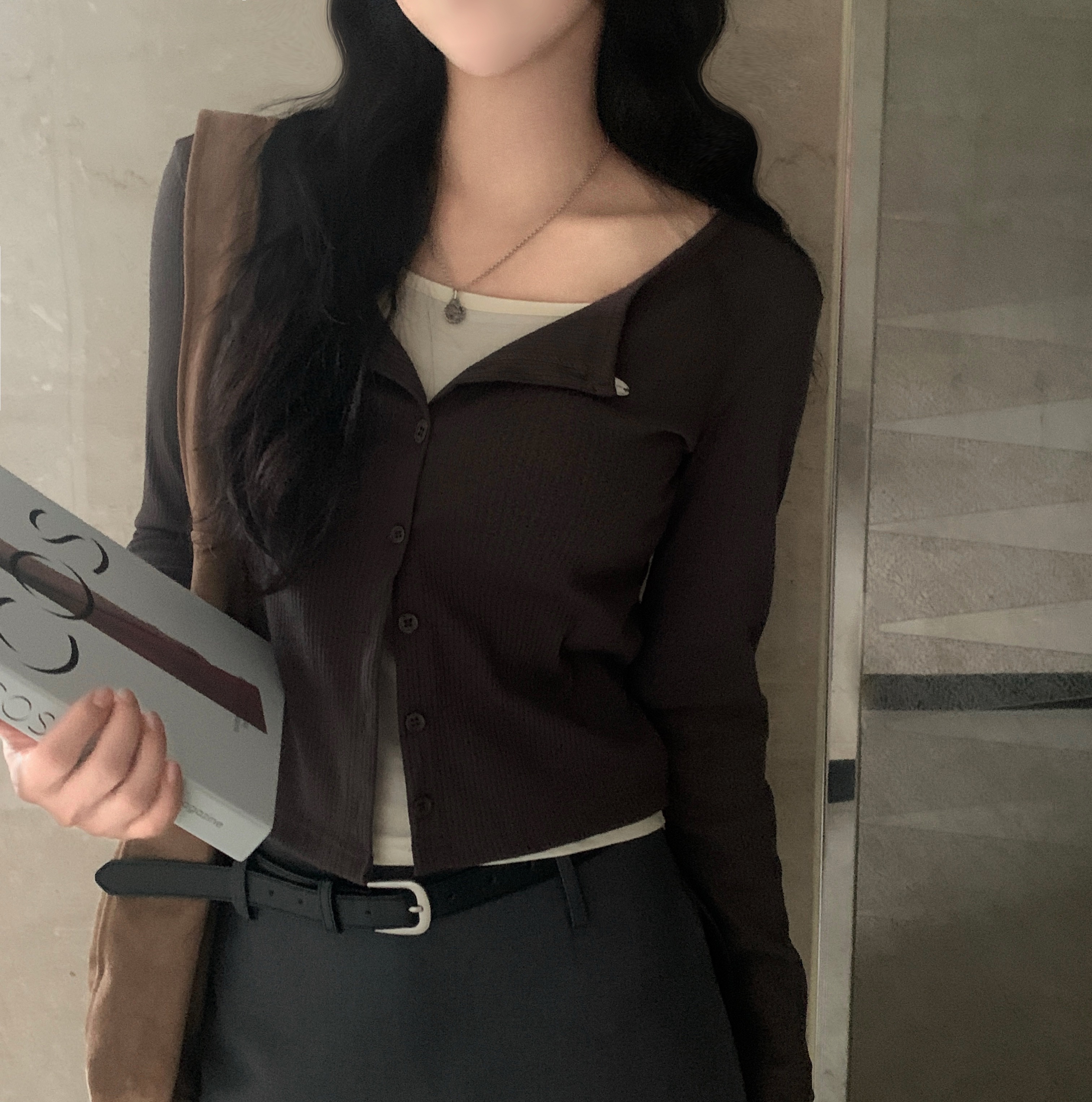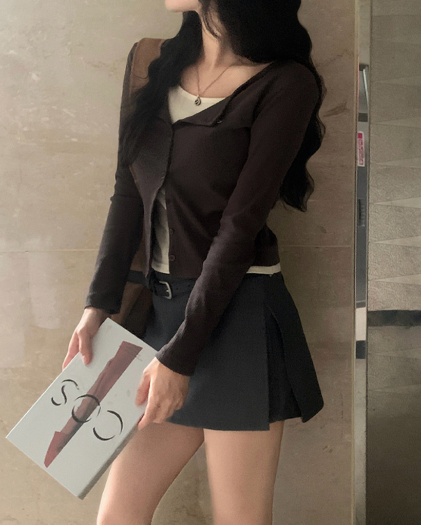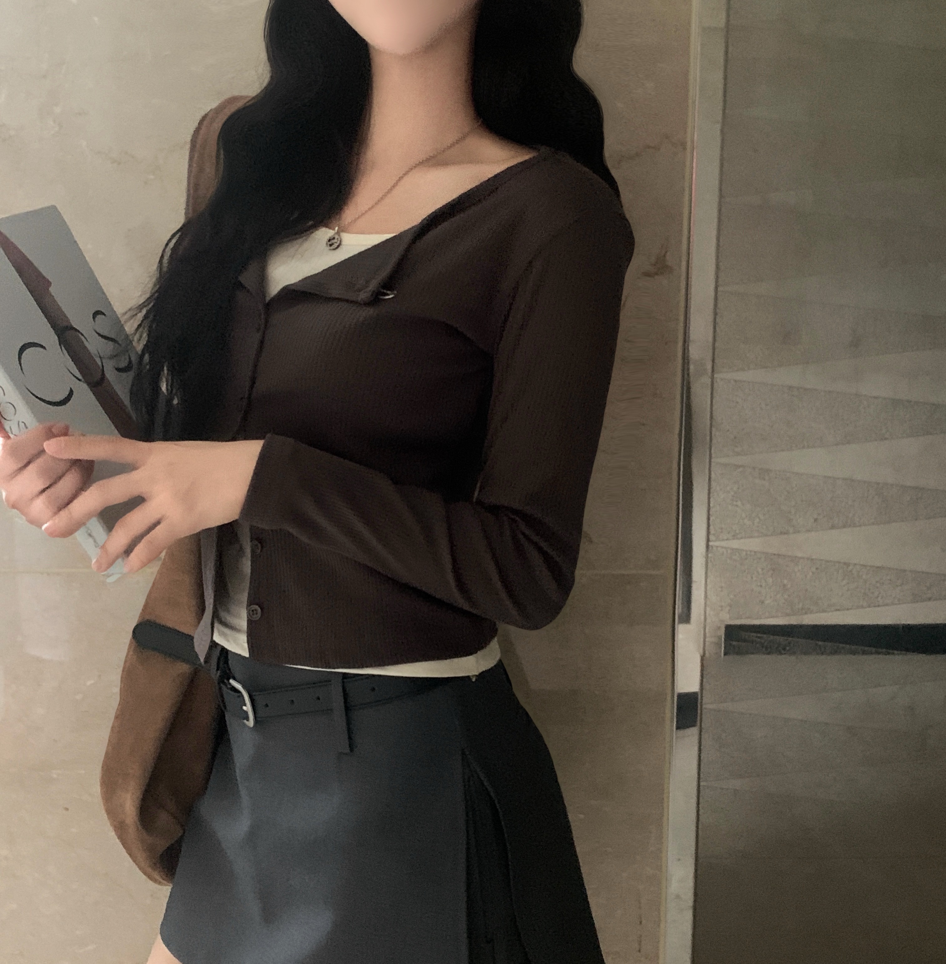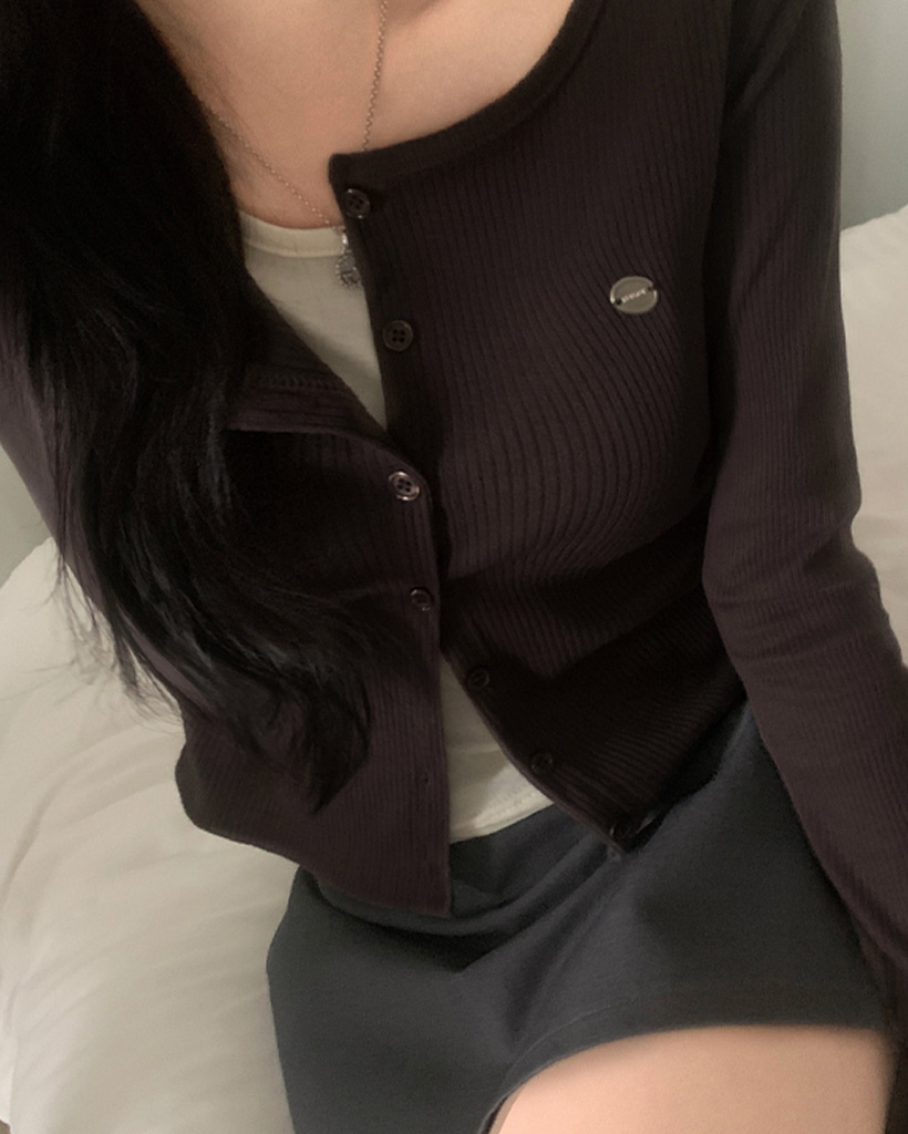 [6color/一体型]ペンダントレイヤードリブニットカーディガン