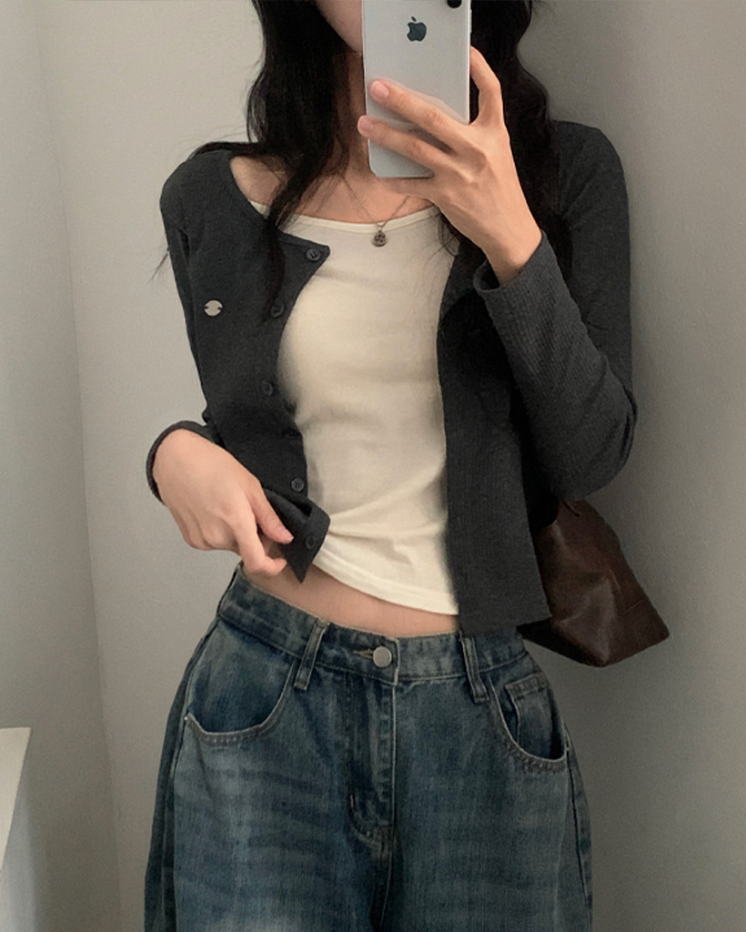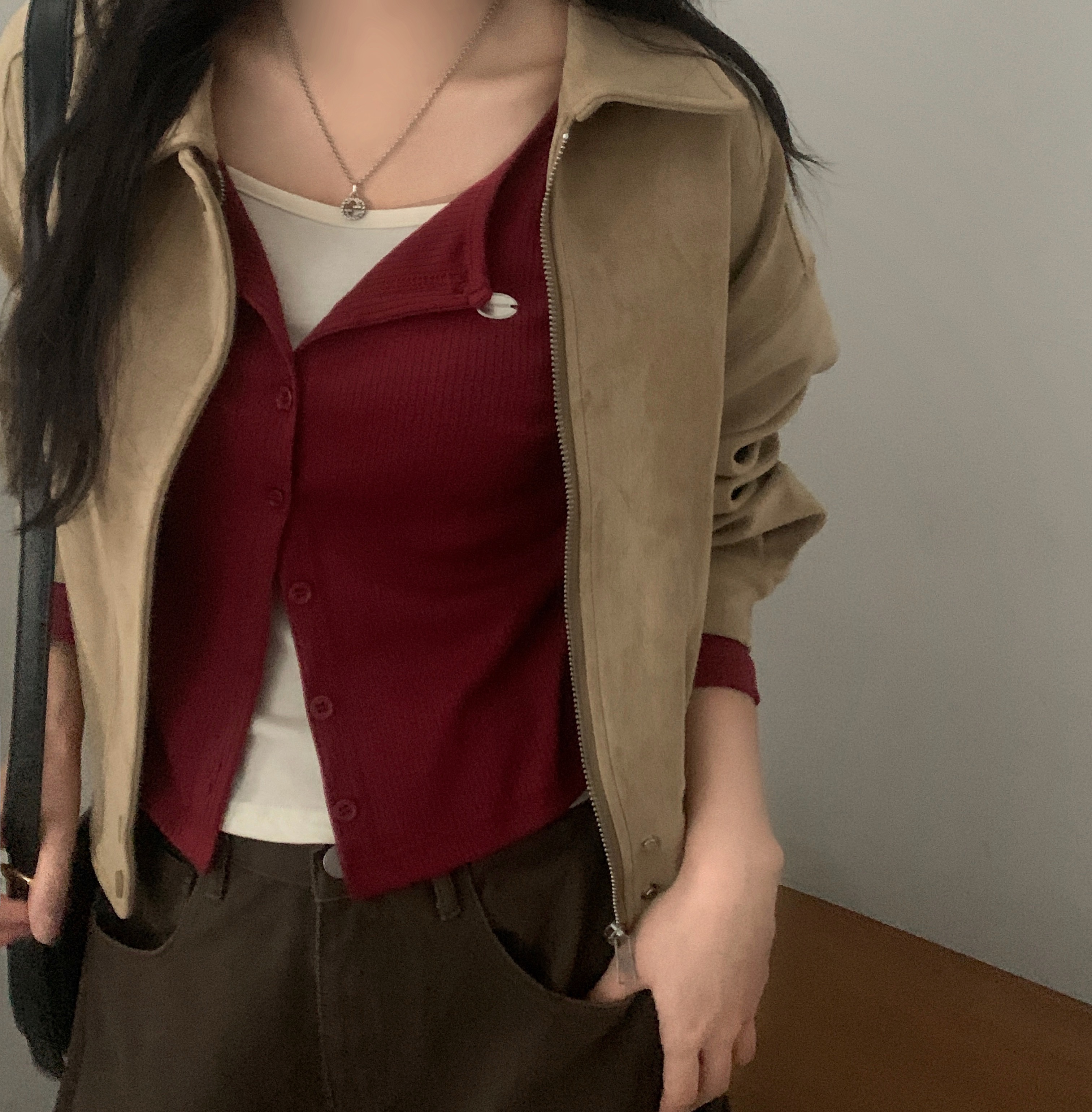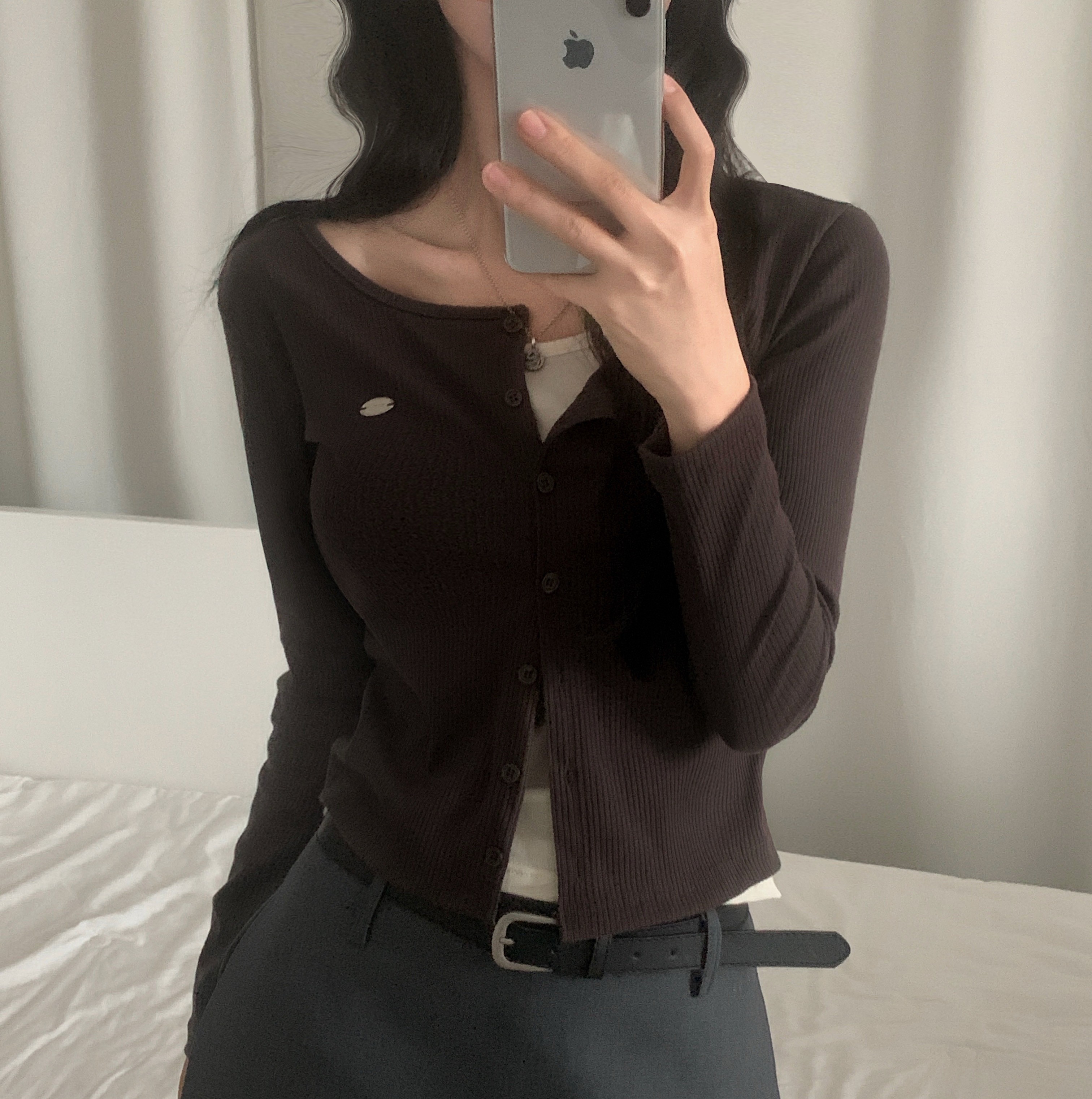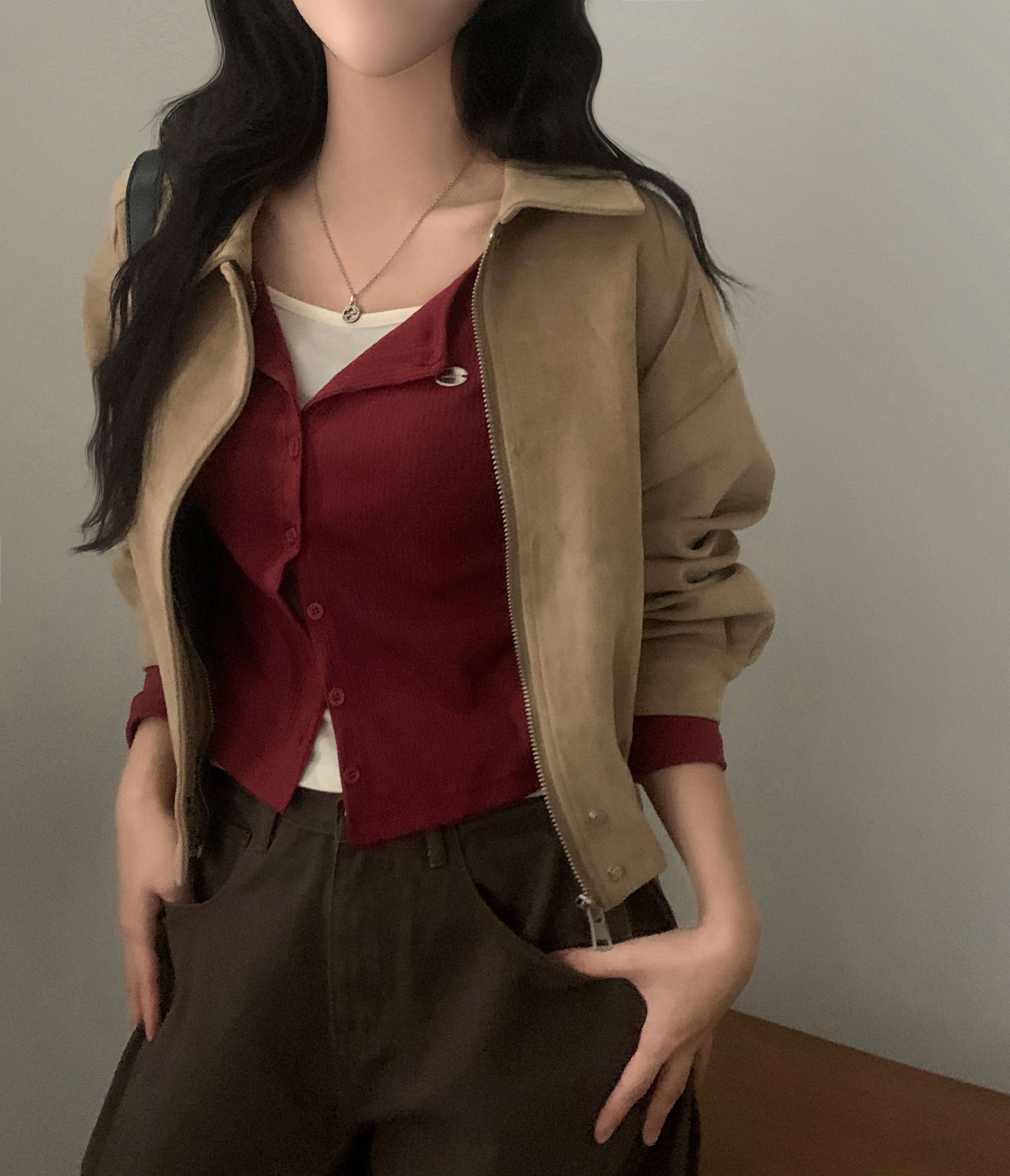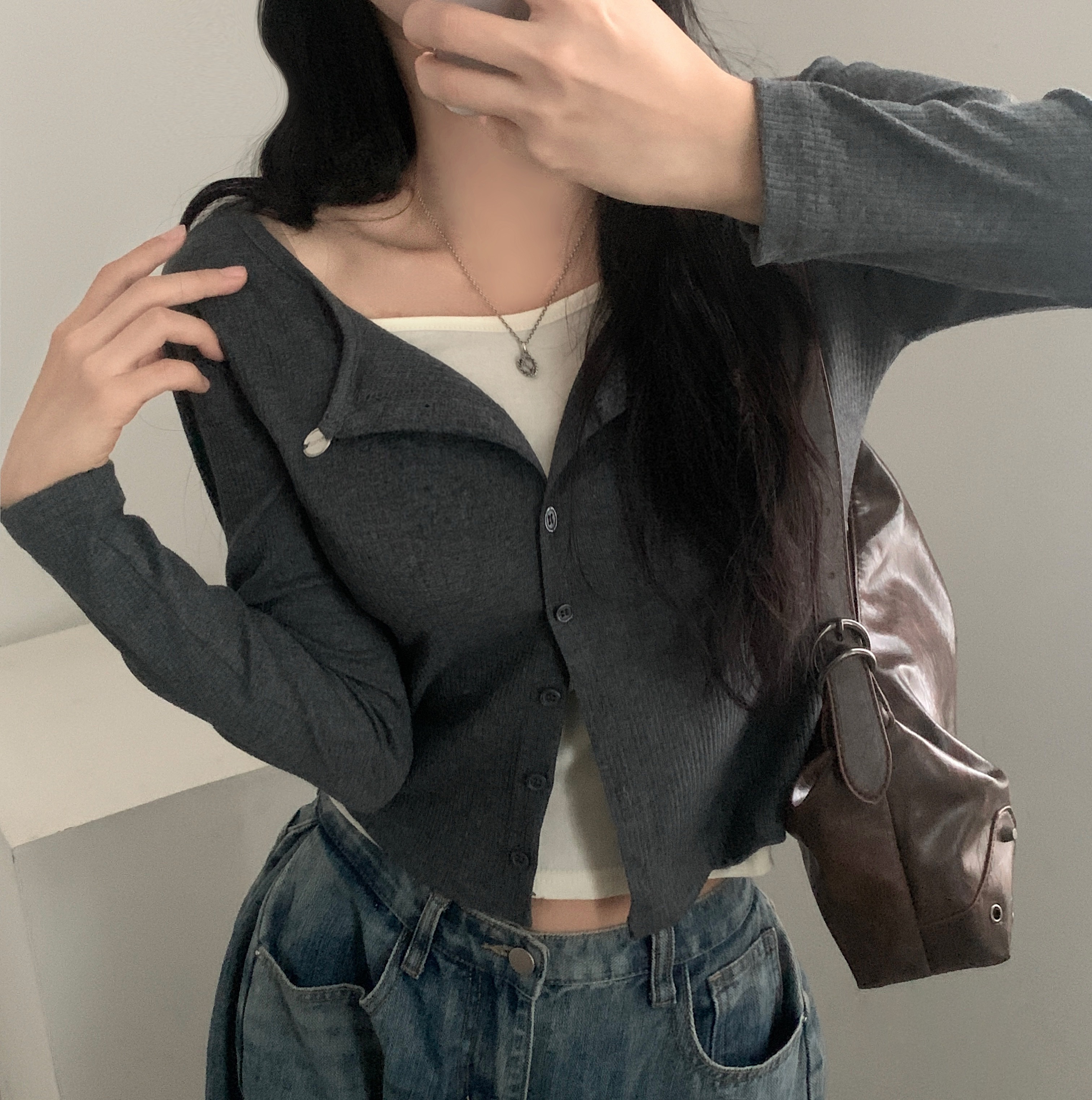 [6color/一体型]ペンダントレイヤードリブニットカーディガン