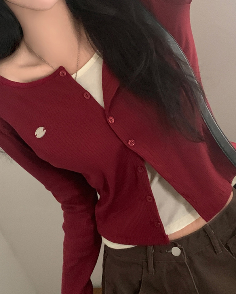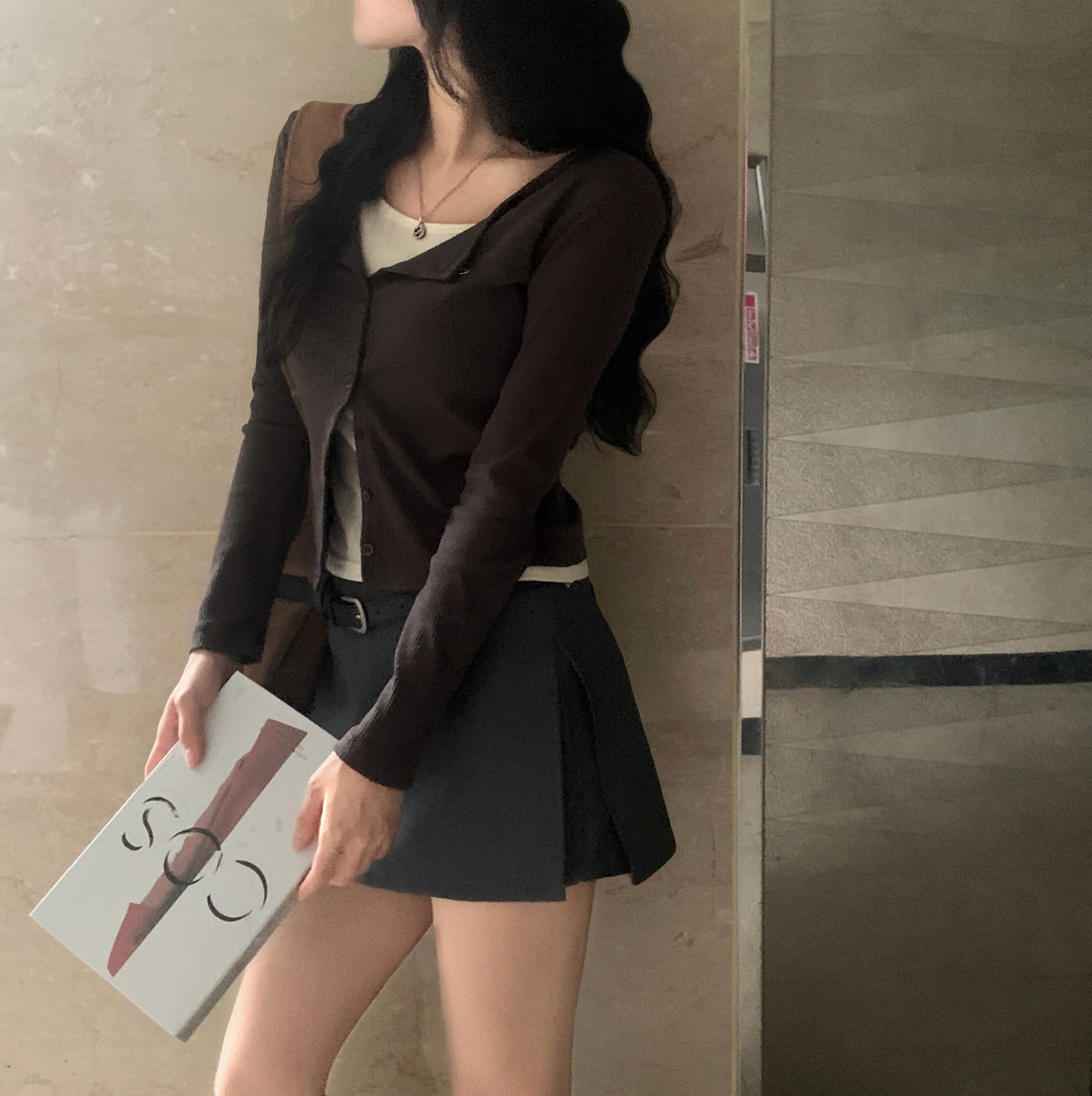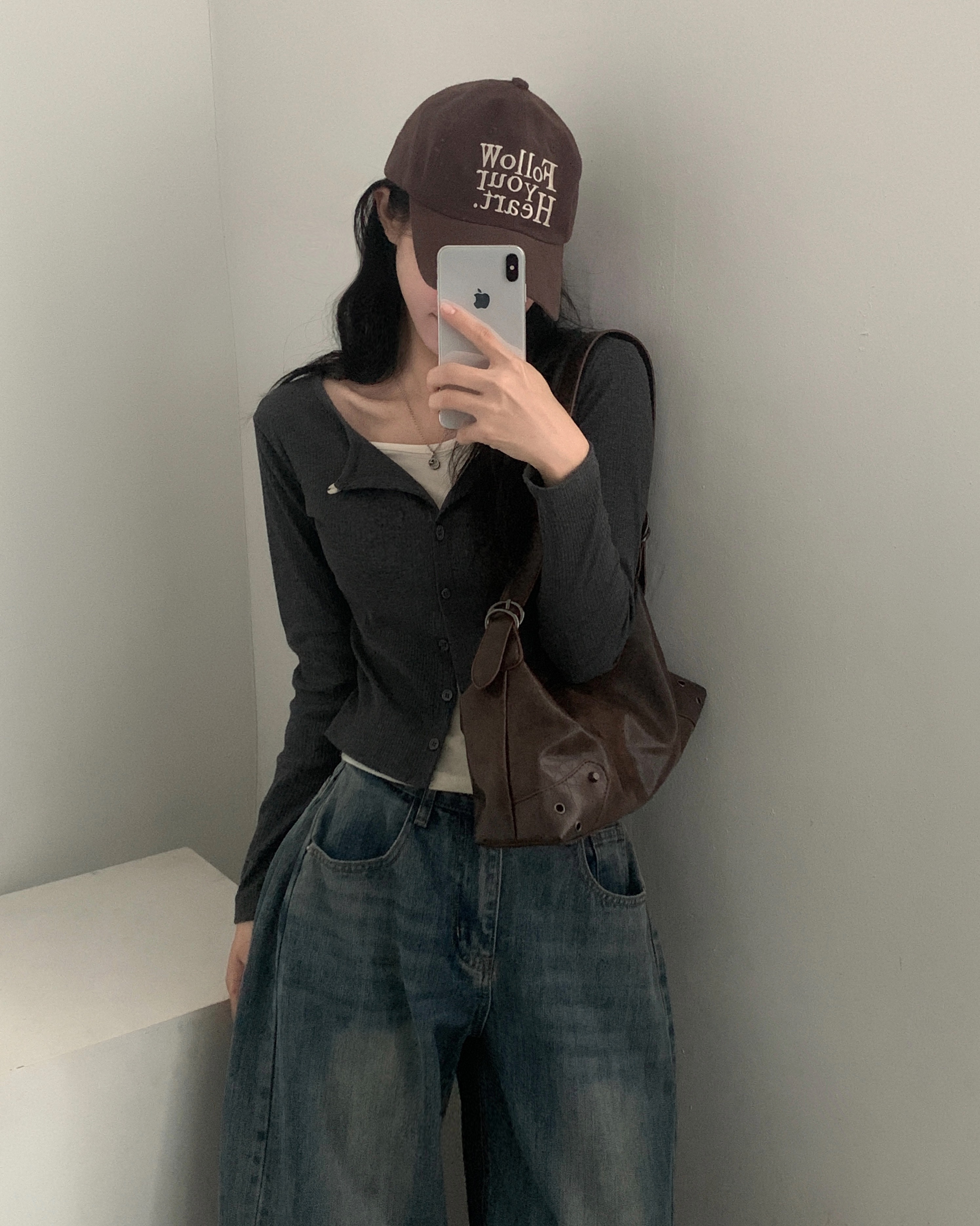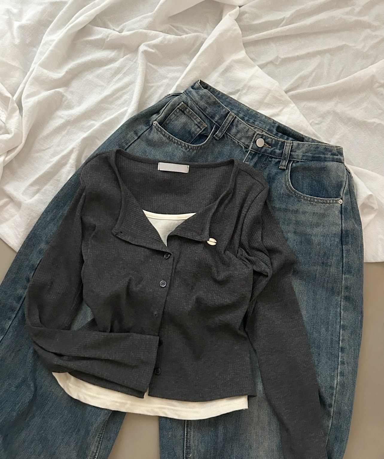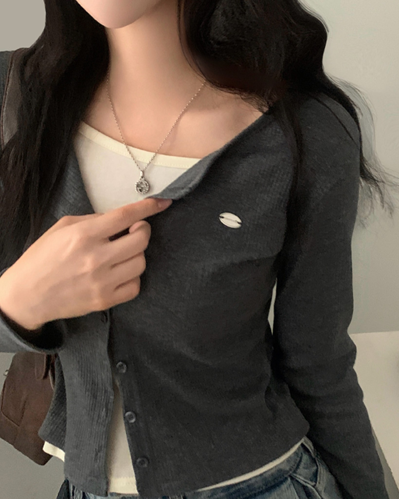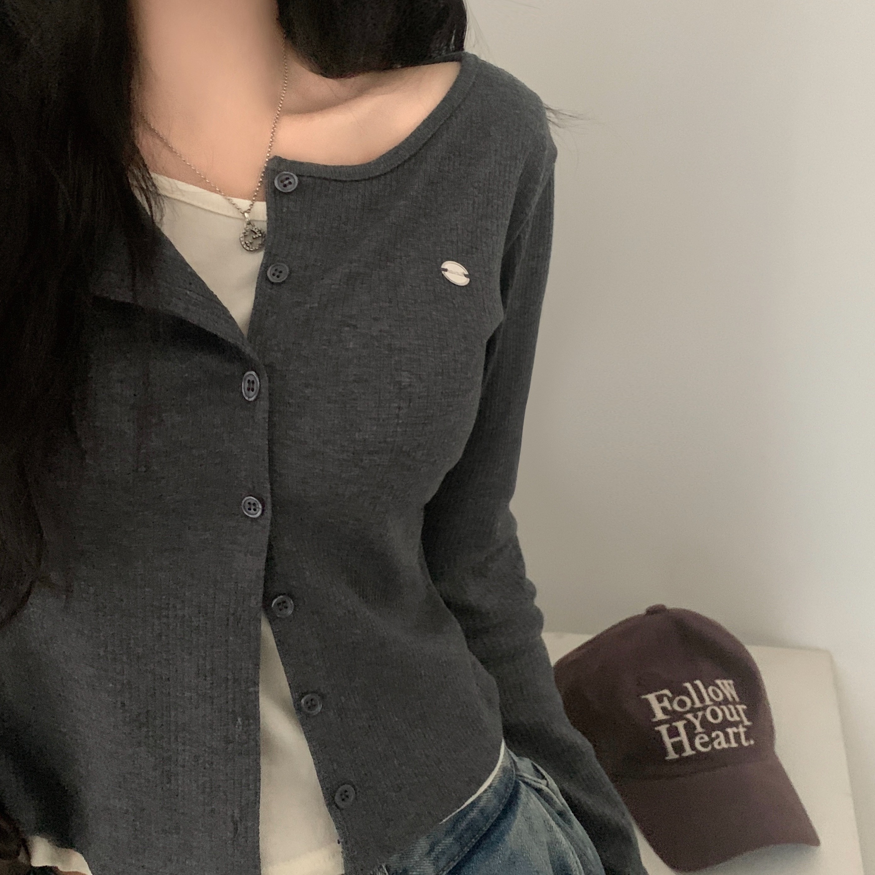 [6color/一体型]ペンダントレイヤードリブニットカーディガン