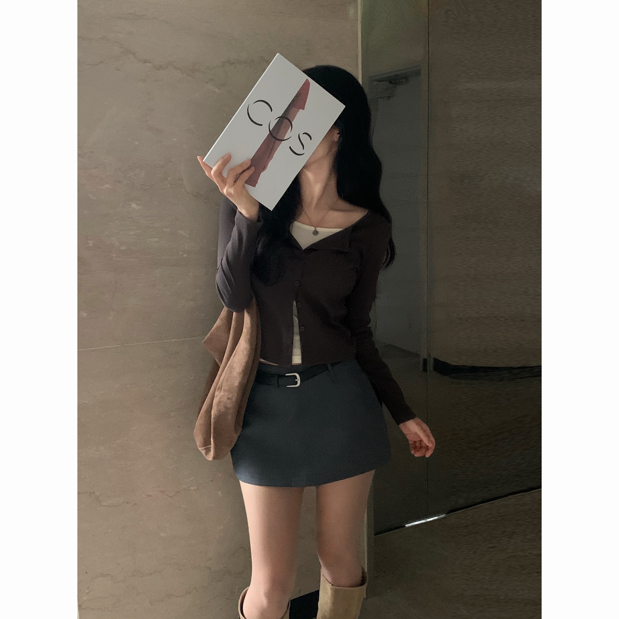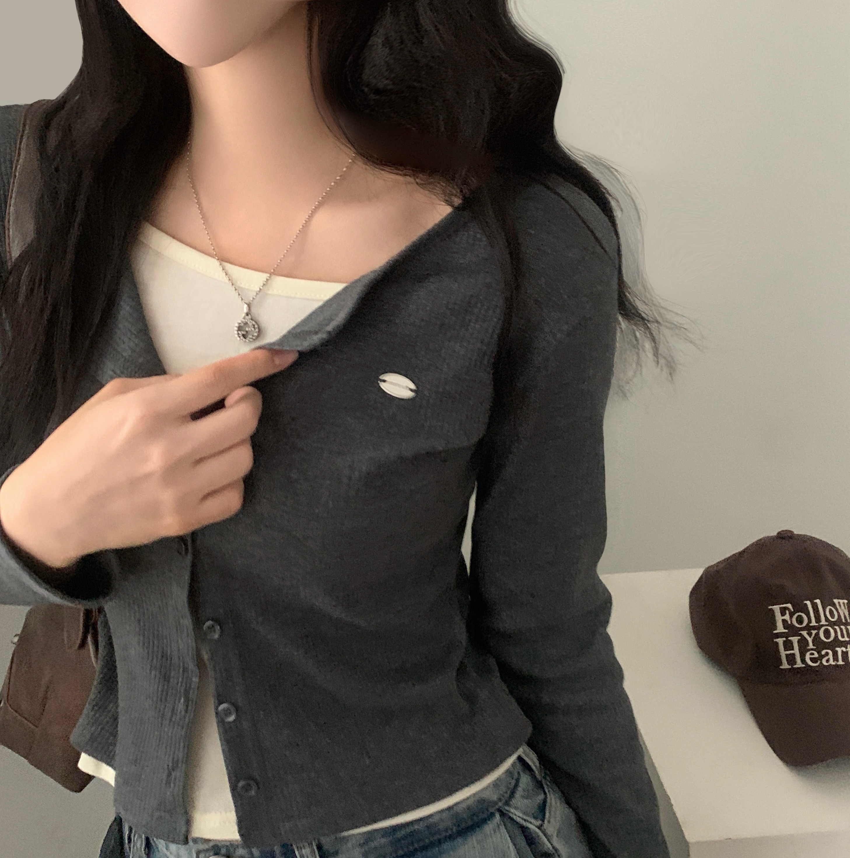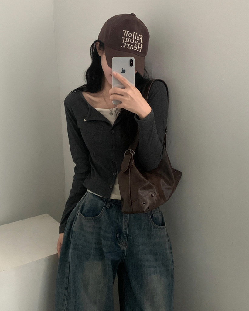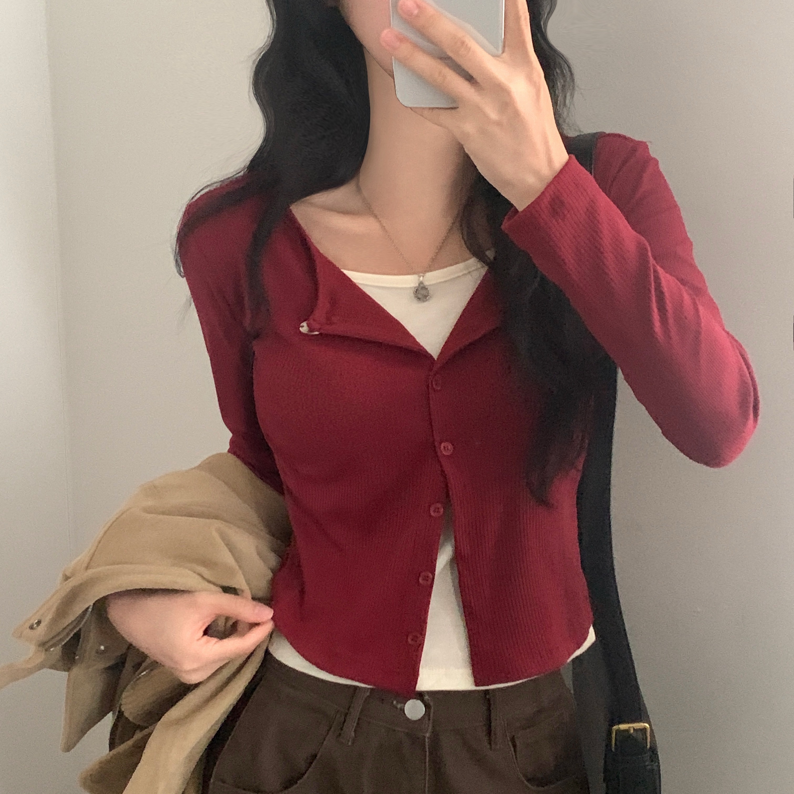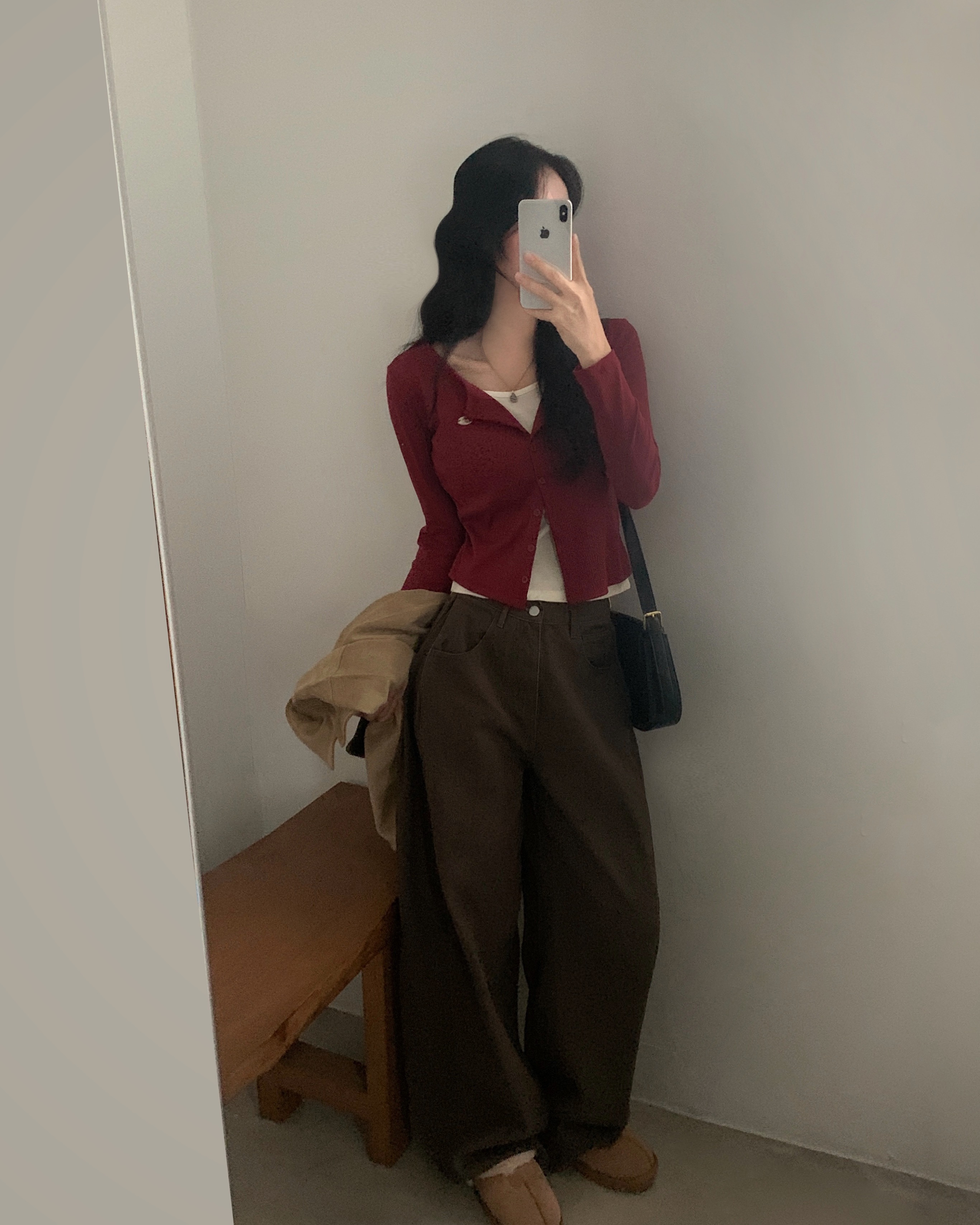 [6color/一体型]ペンダントレイヤードリブニットカーディガン
