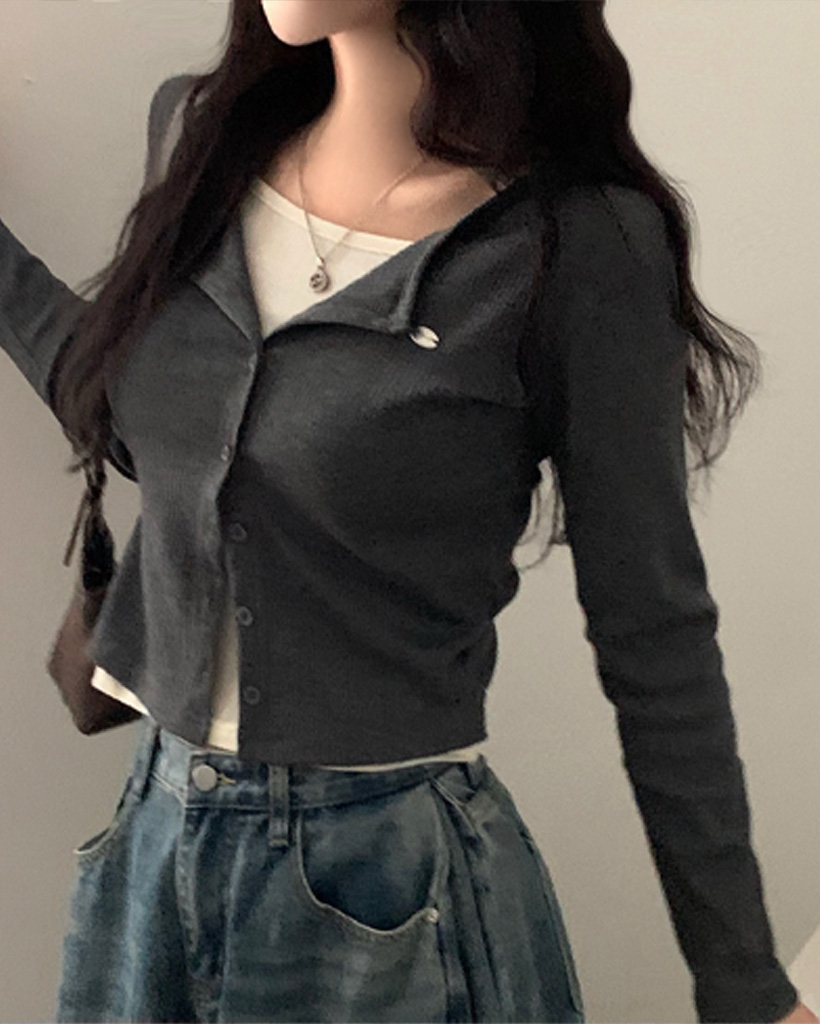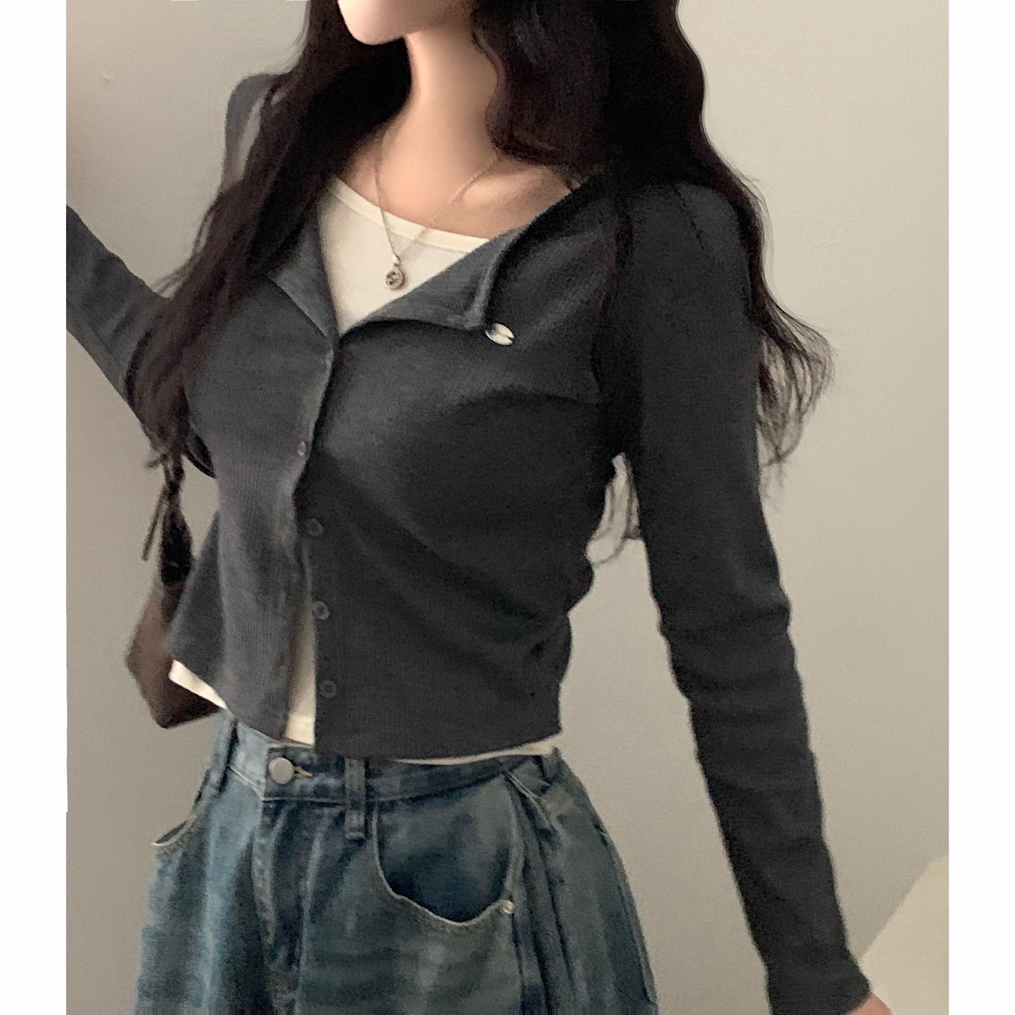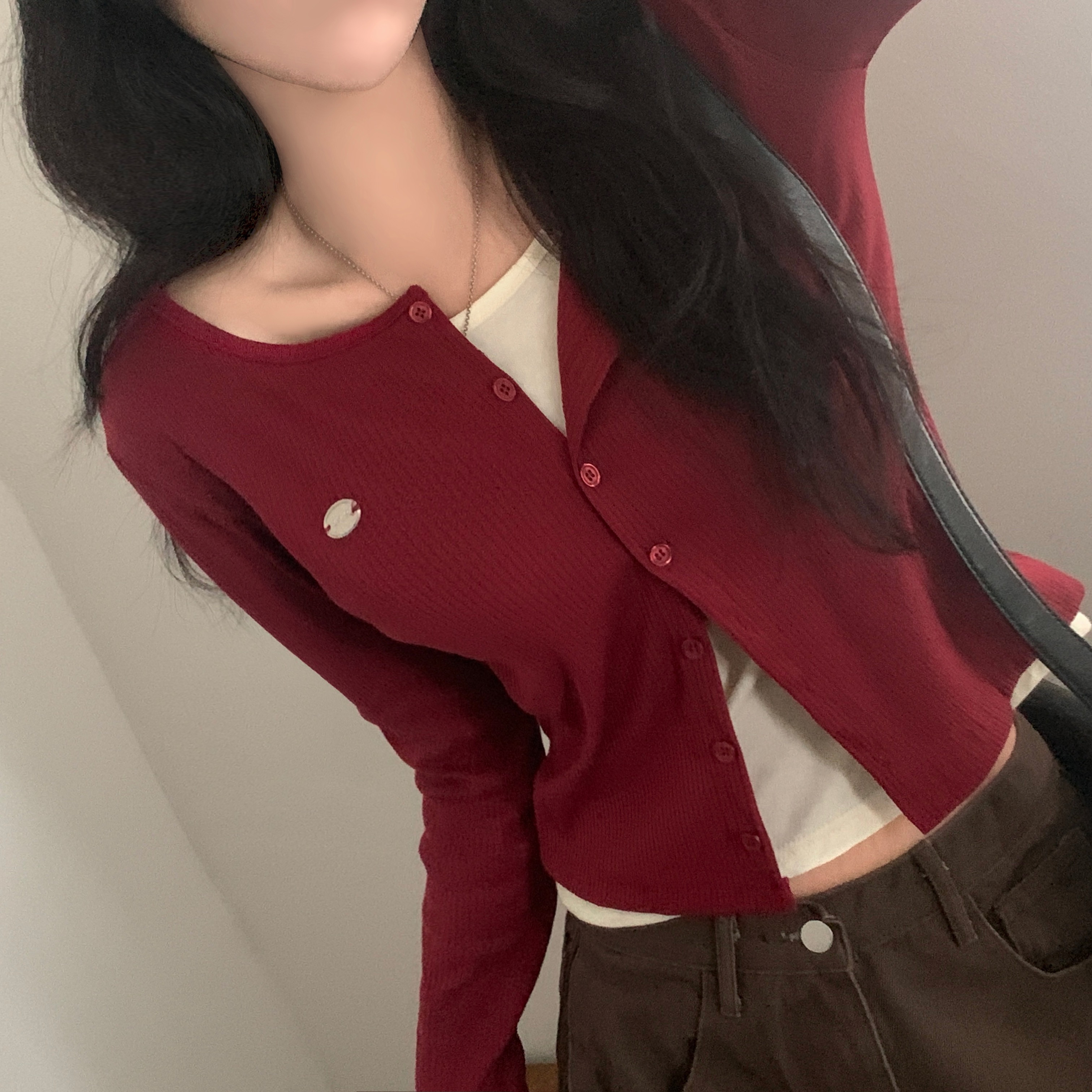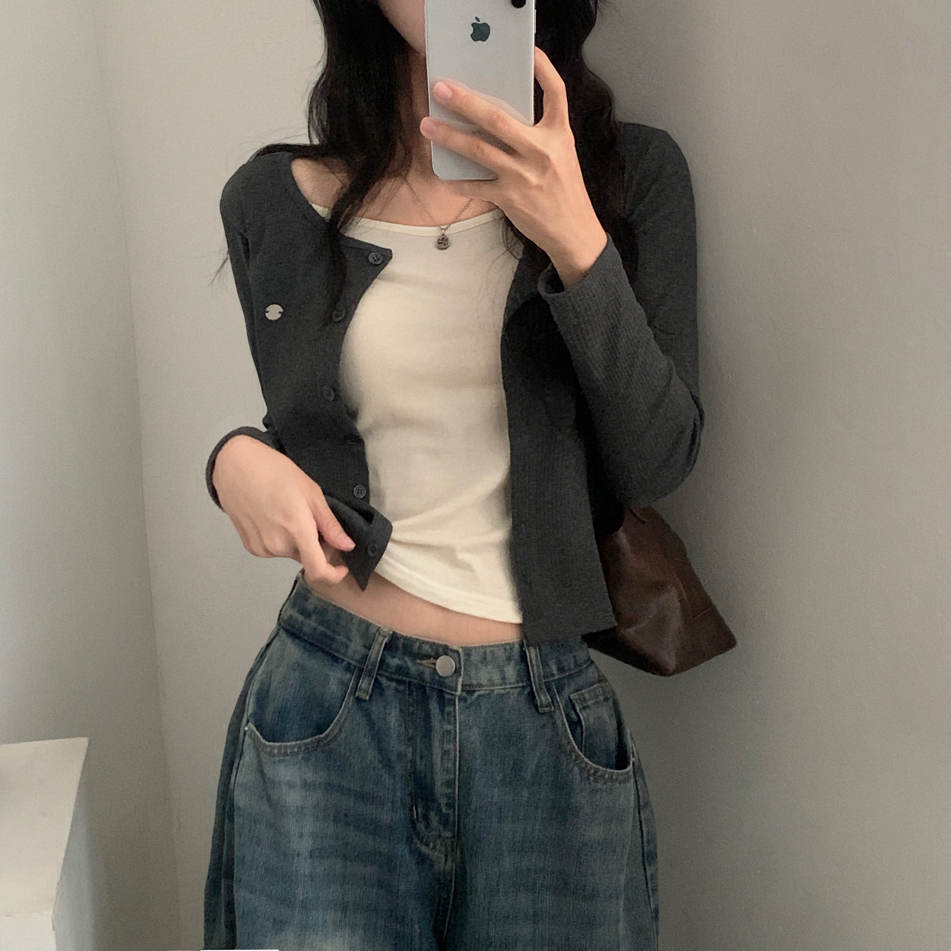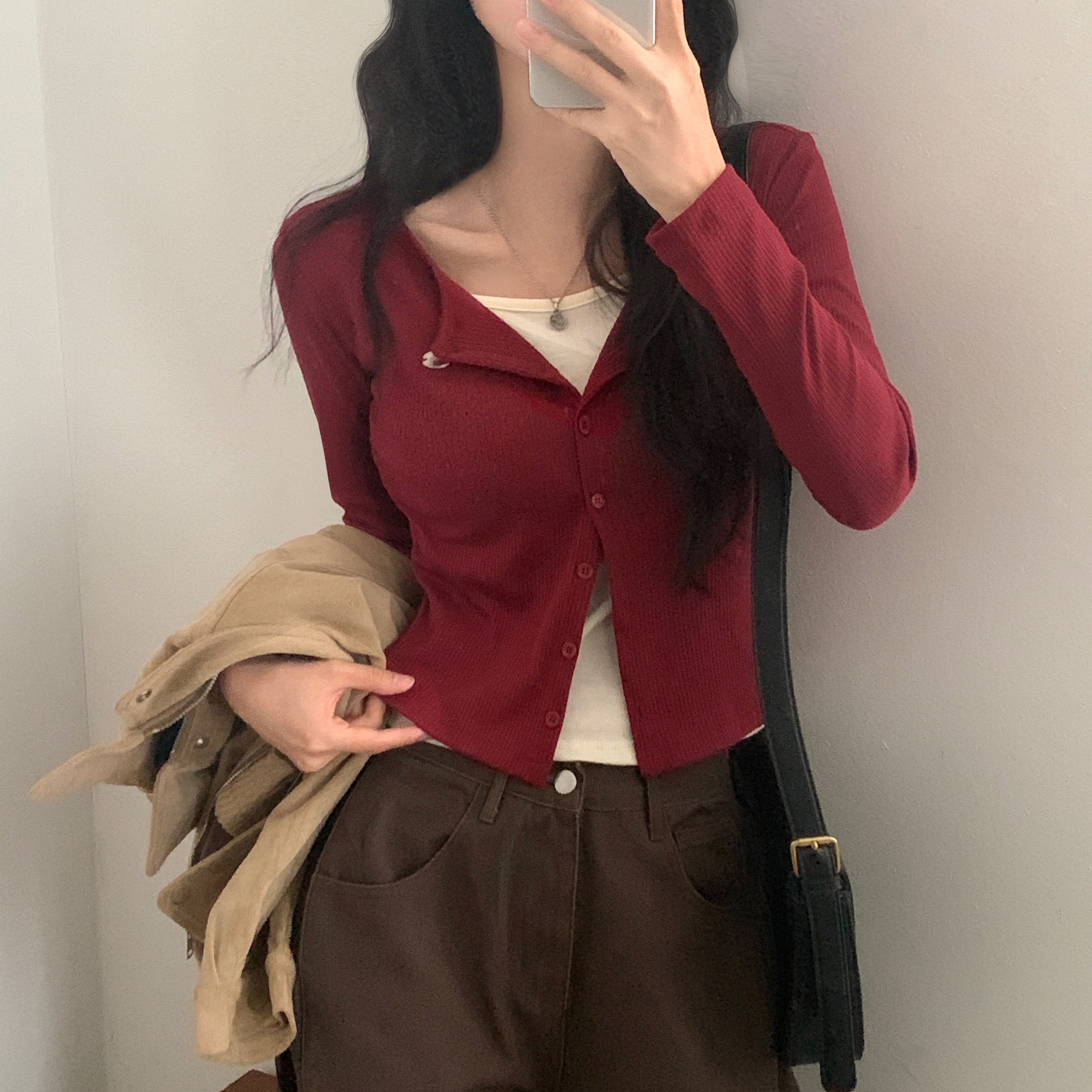 [6color/一体型]ペンダントレイヤードリブニットカーディガン