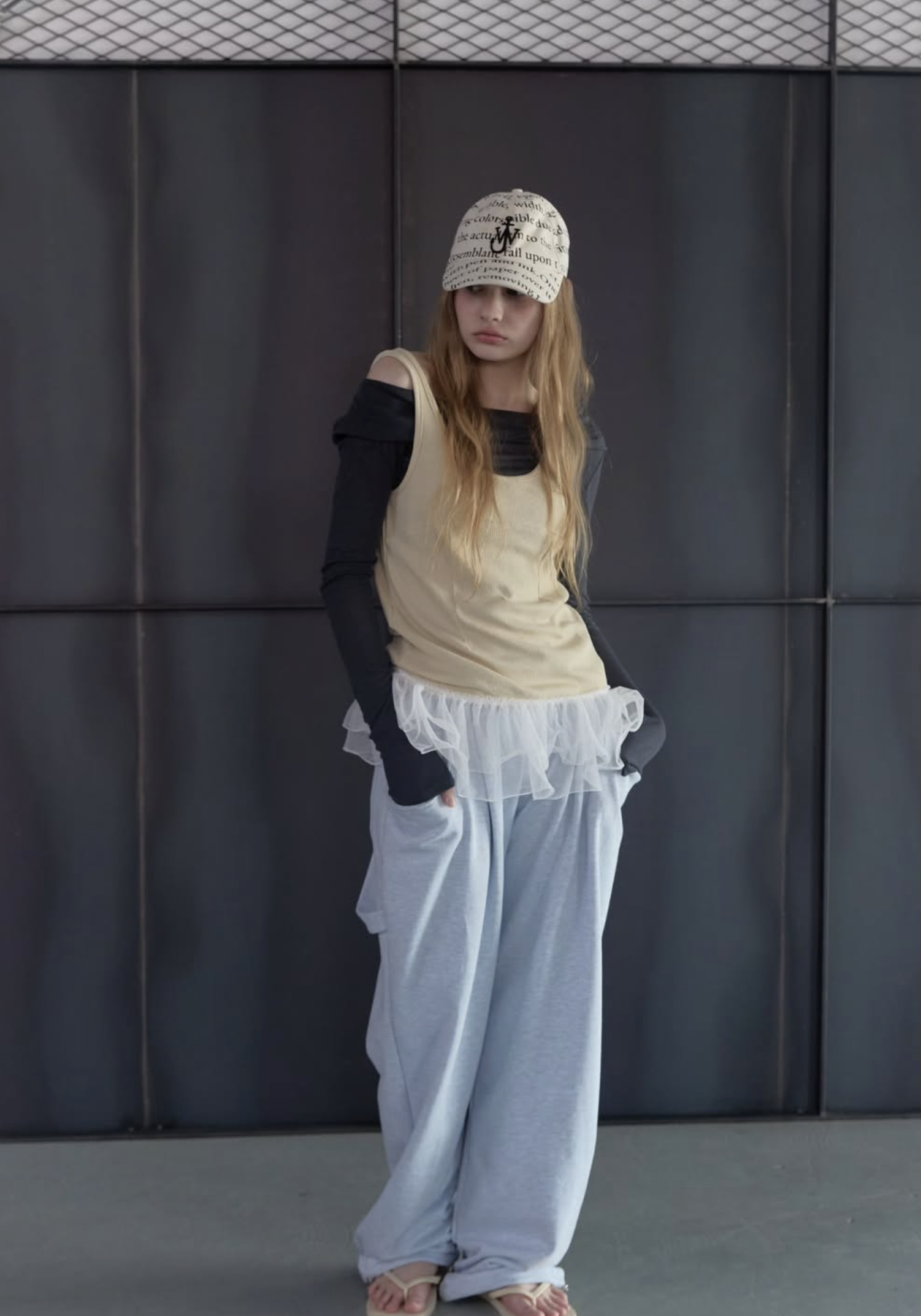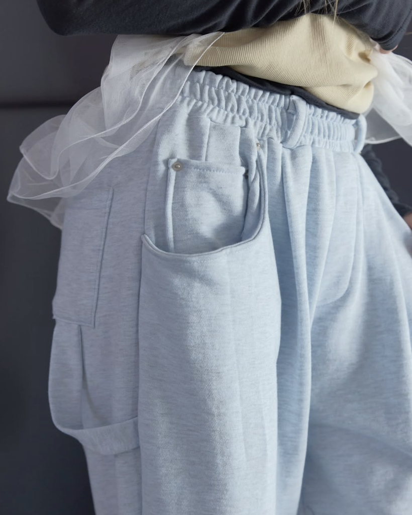裾のストリングを絞ればジョガー風に、緩めればワイドにと、気分に合わせてシルエットを自由自在に調節可能です。