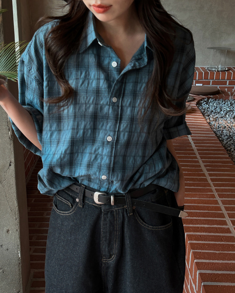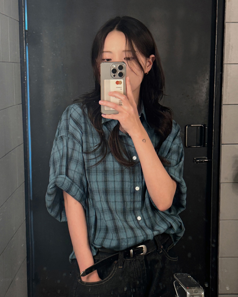[ユニセックス] ヴィンテージチェック半袖シャツ