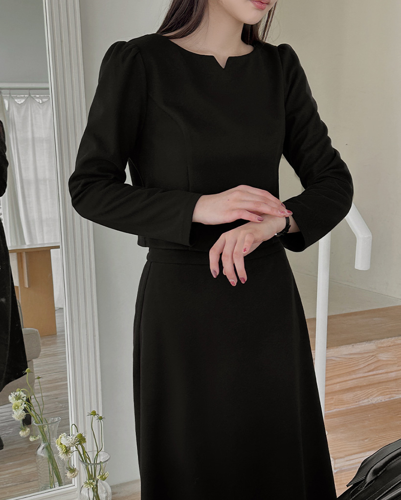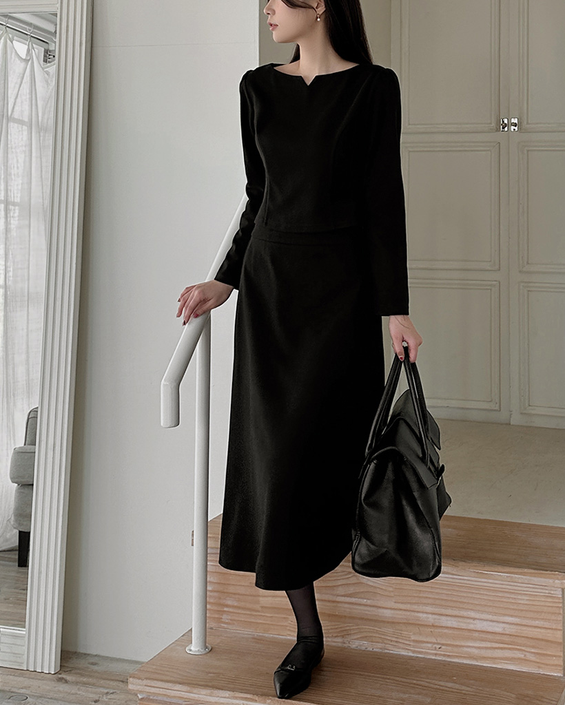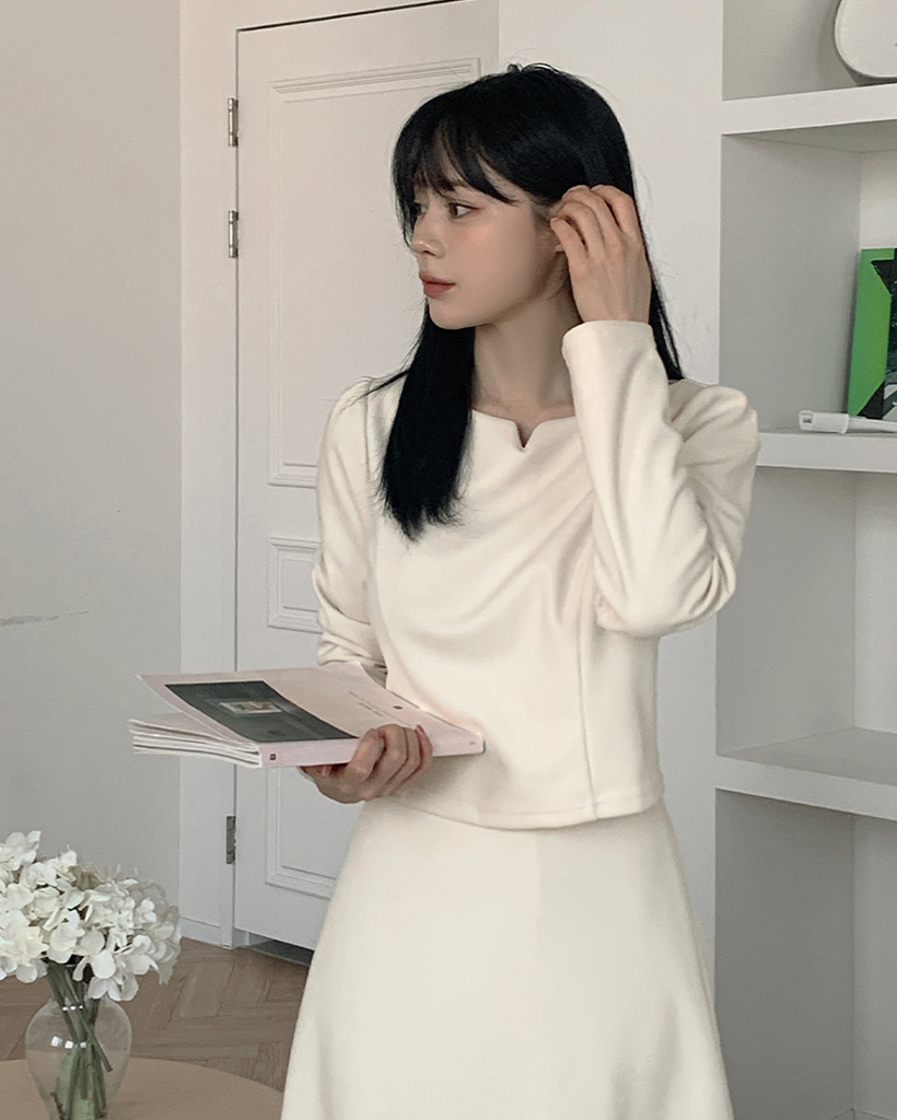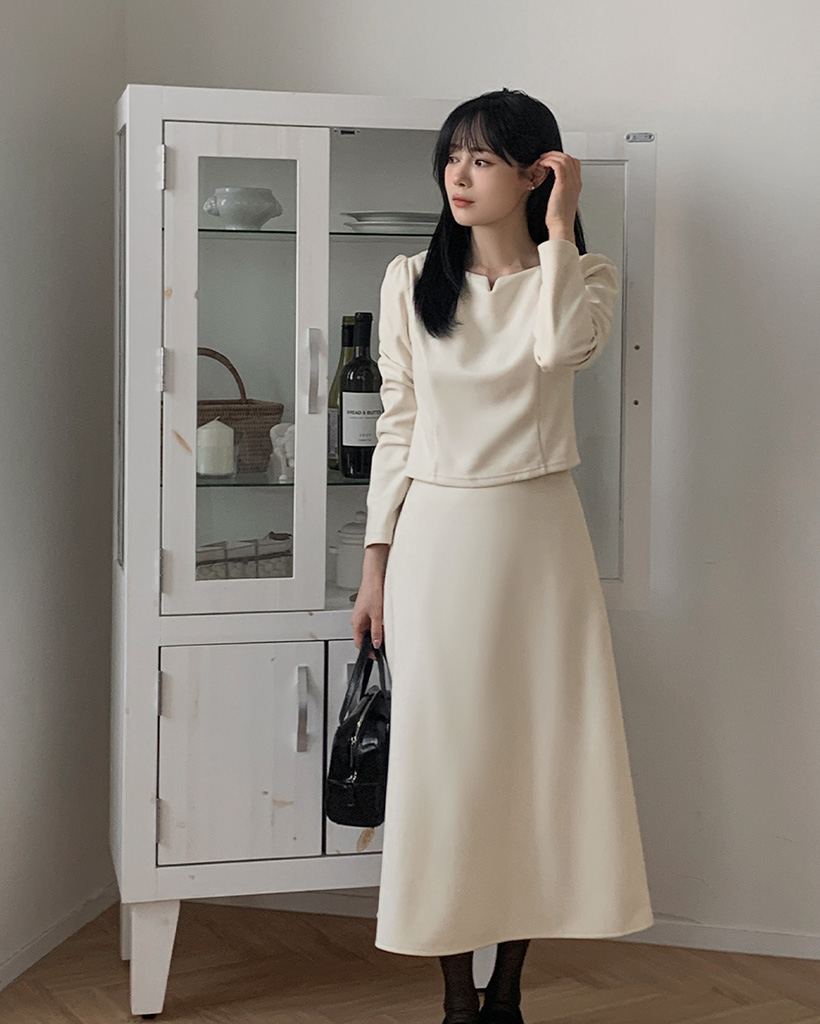ピーチ起毛ボートネックブラウス&バックゴムスカートセット