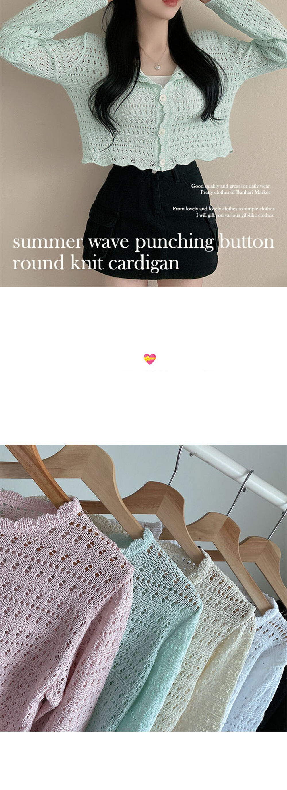 サマーウェーブラウンドクロップド長袖ニットカーディガン